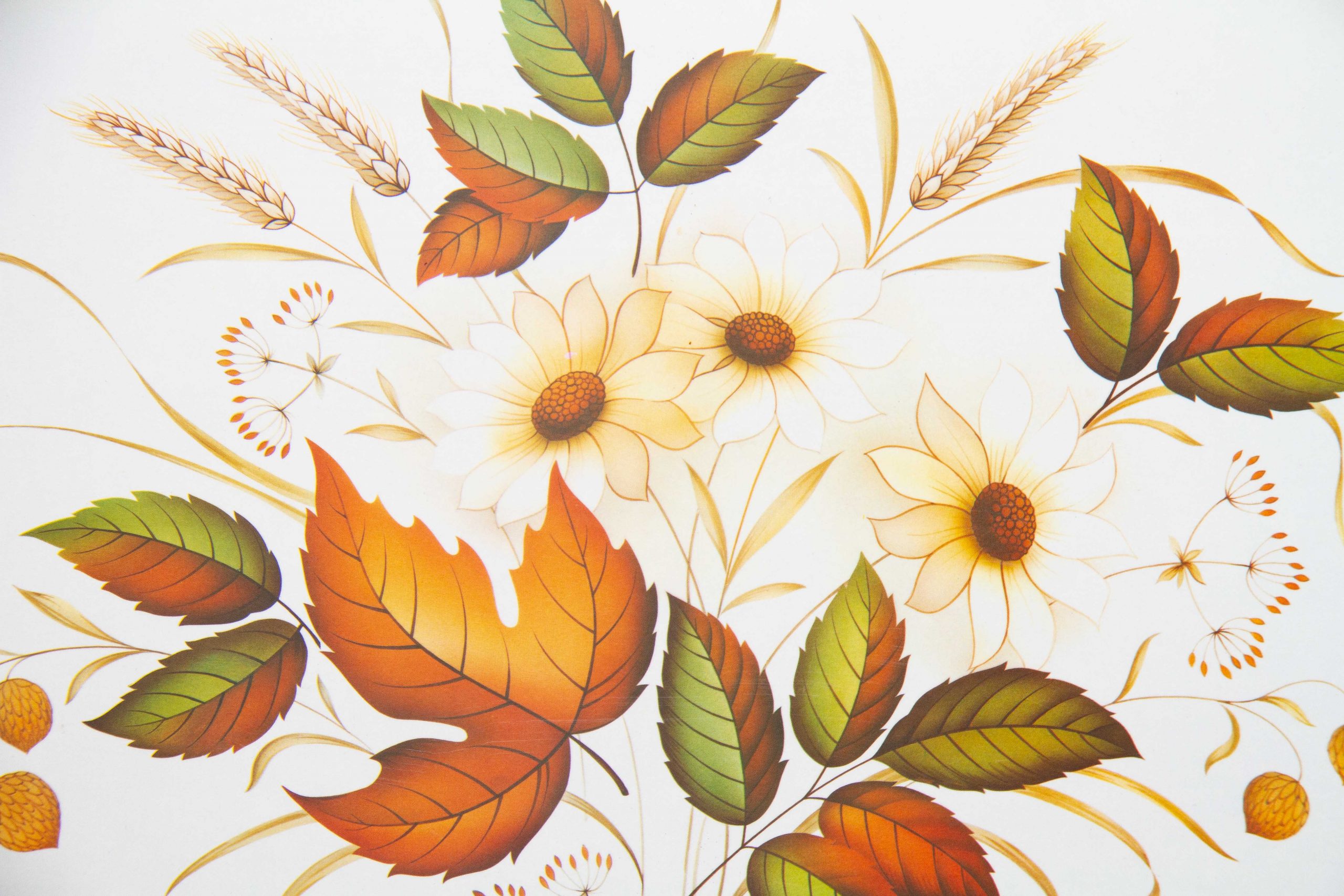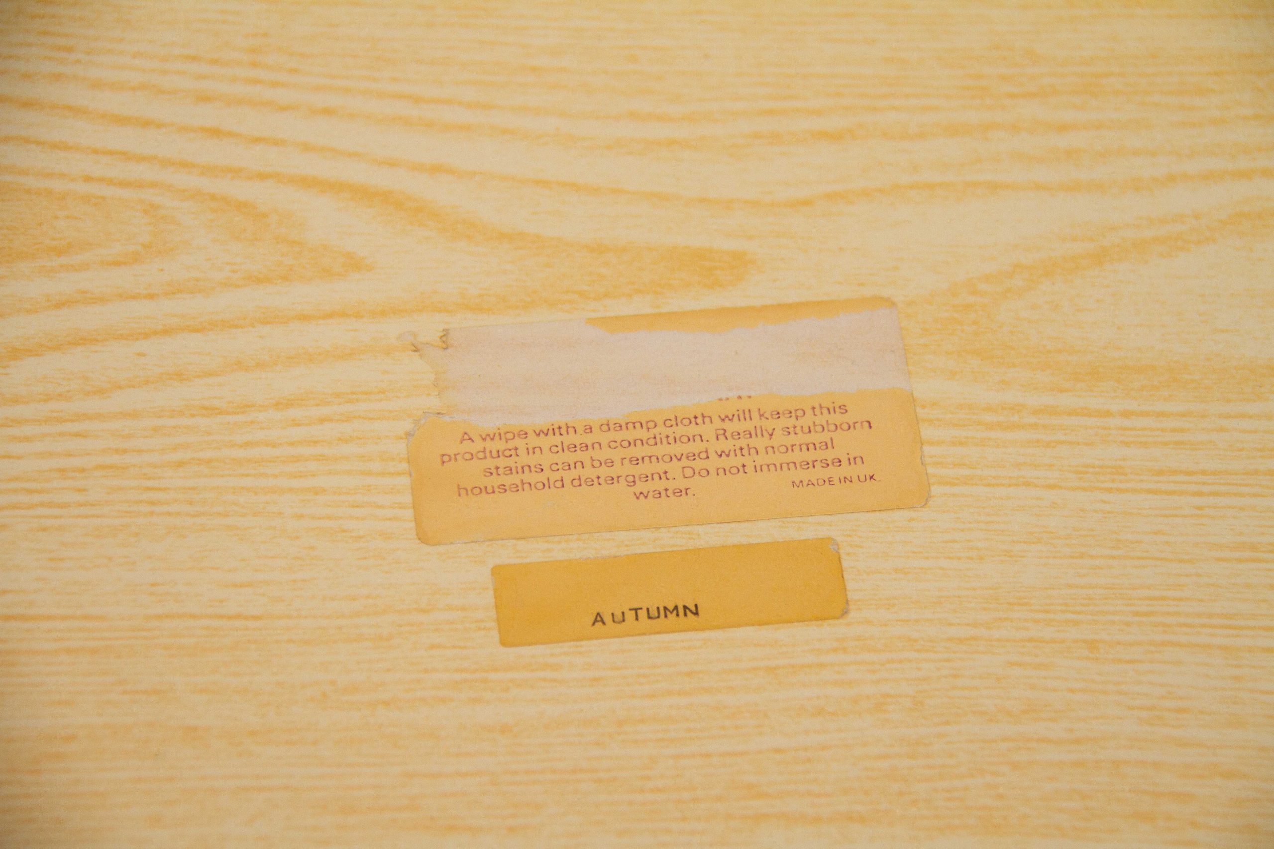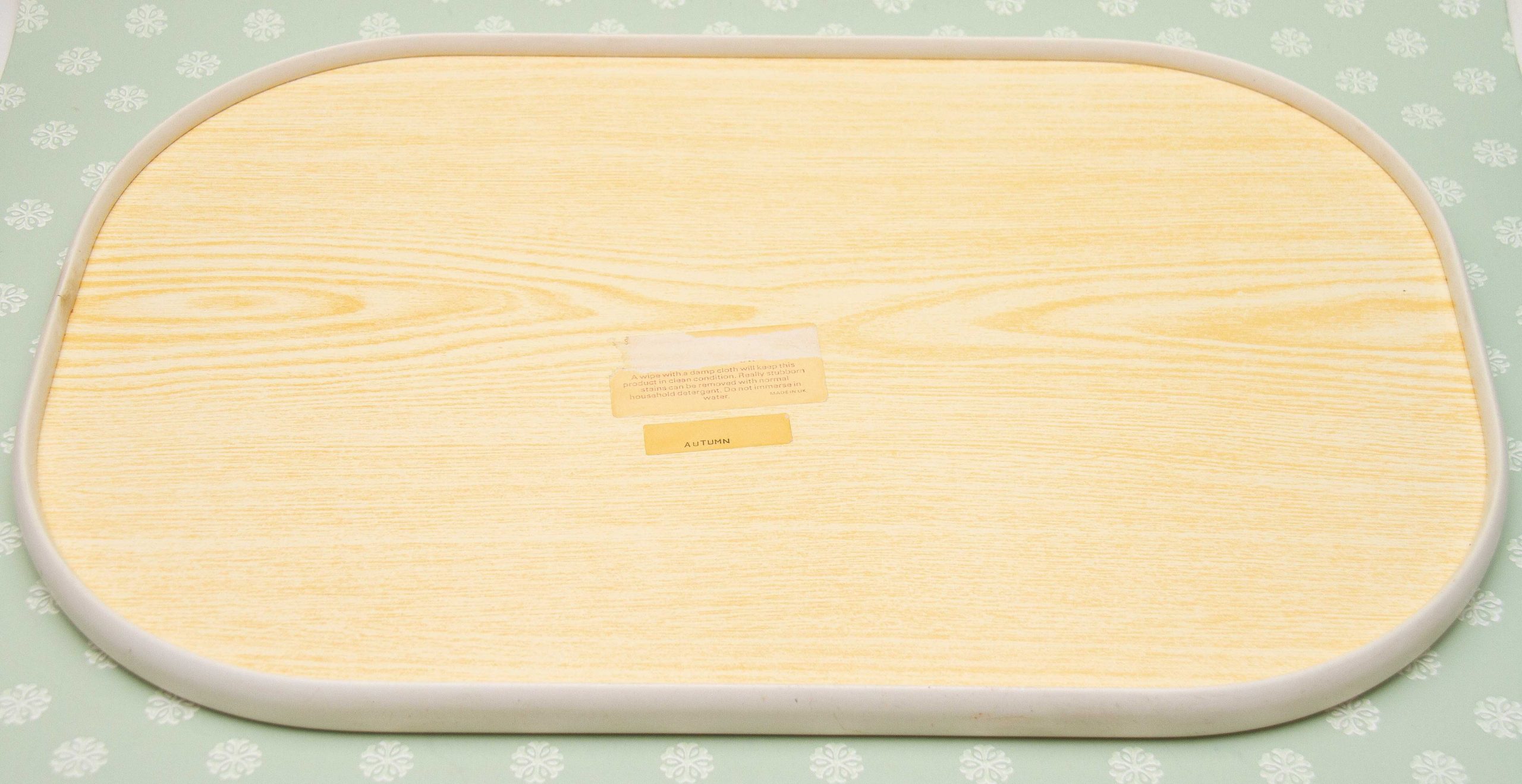 A 1970’s melamine tray with an Autumn leaves design on . Edged with plastic, Made in England