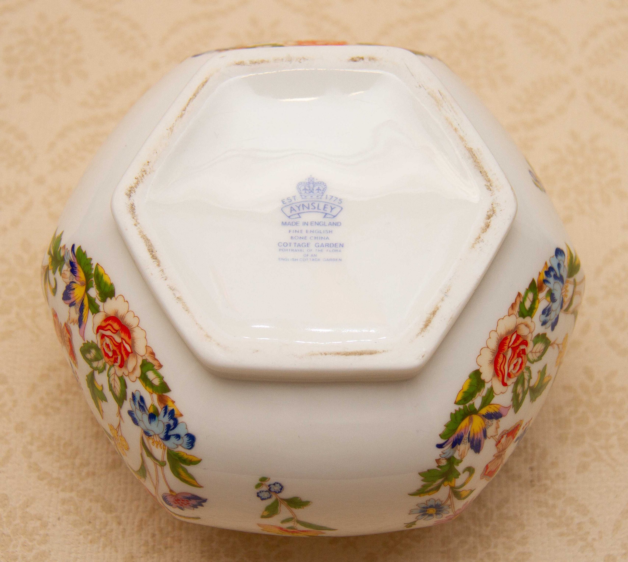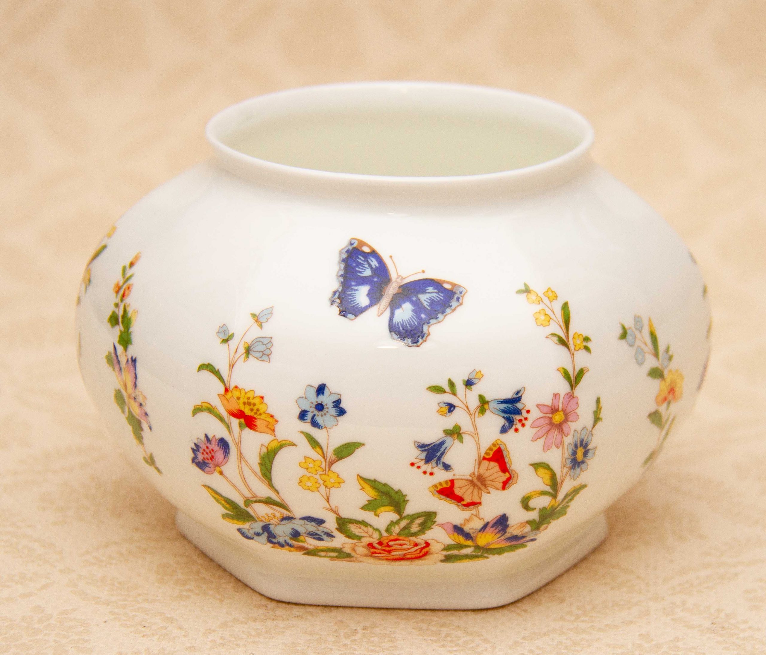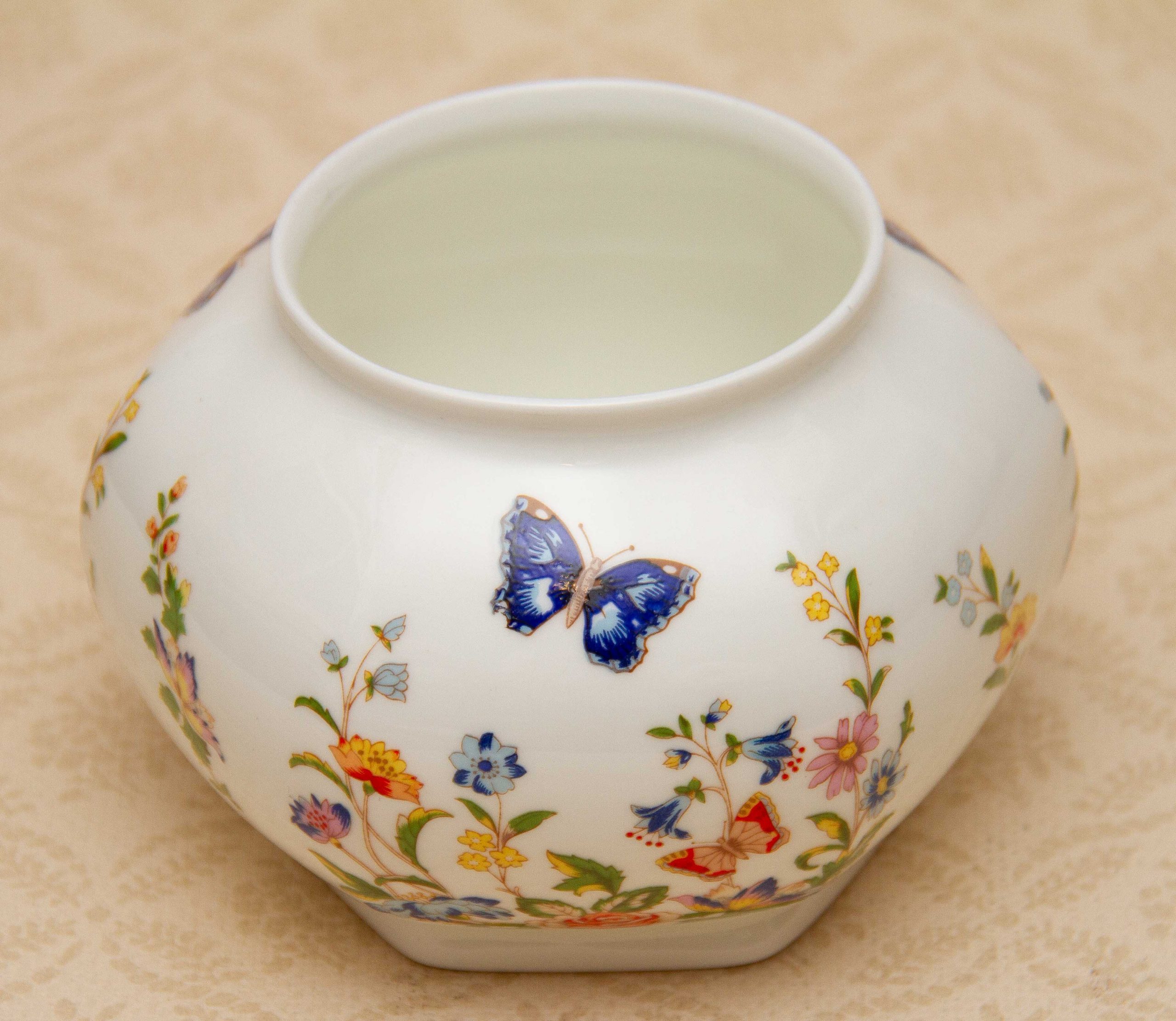 Aynsley Fine Bone China small planter, decorated in The Cottage Garden pattern, depicting English country cottage flora and butterflies. Could be used as a planter or as a posy bowl.