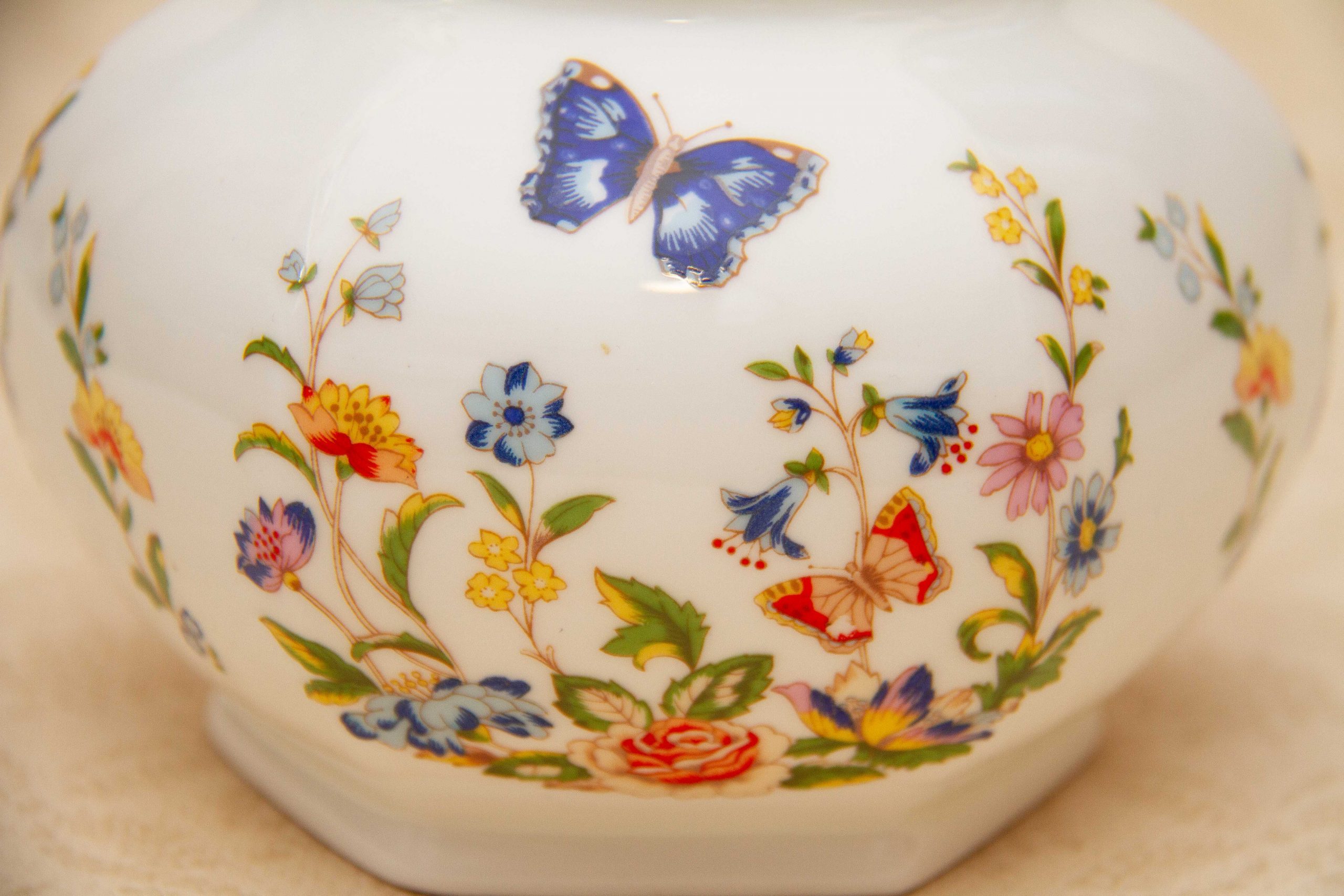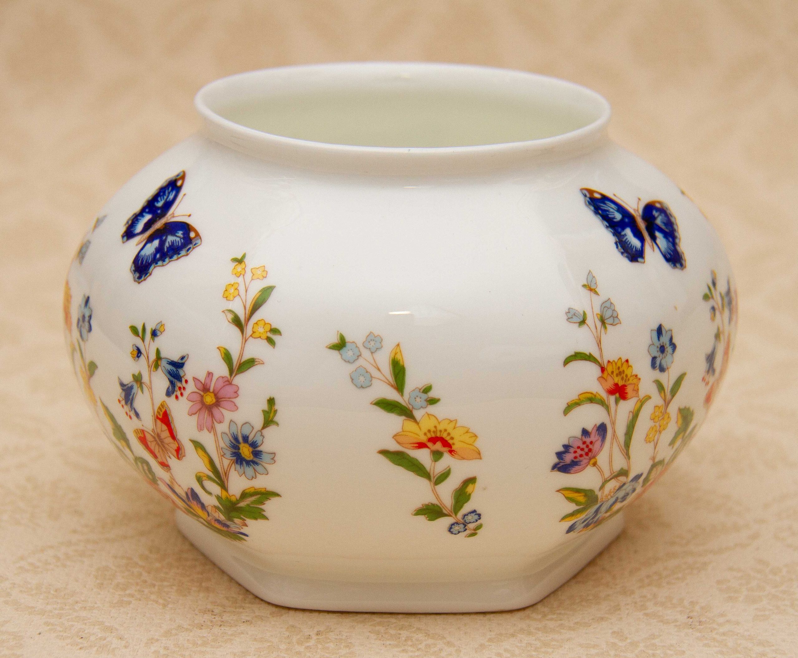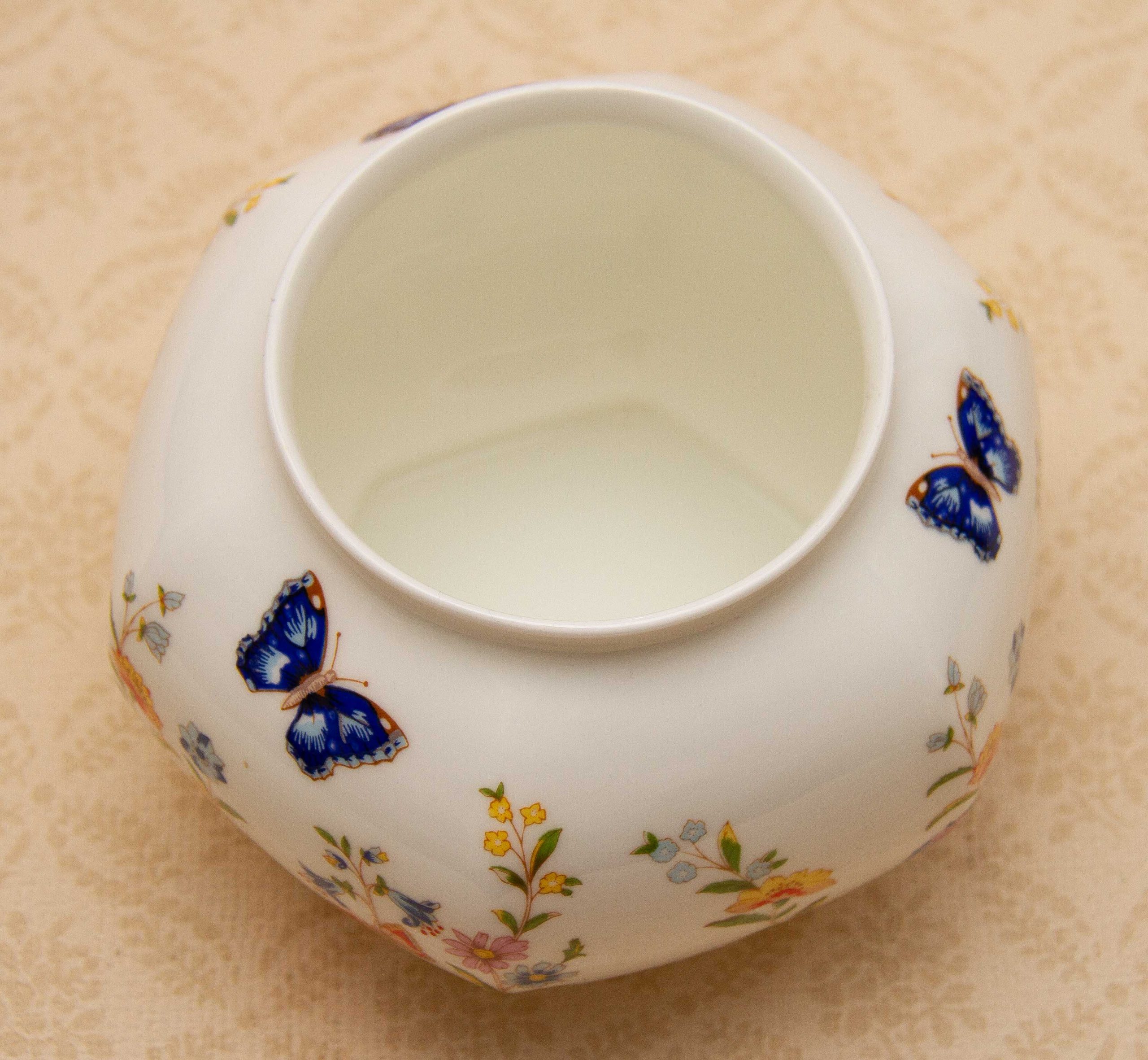Aynsley Fine Bone China small planter, decorated in The Cottage Garden pattern, depicting English country cottage flora and butterflies. Could be used as a planter or as a posy bowl.
