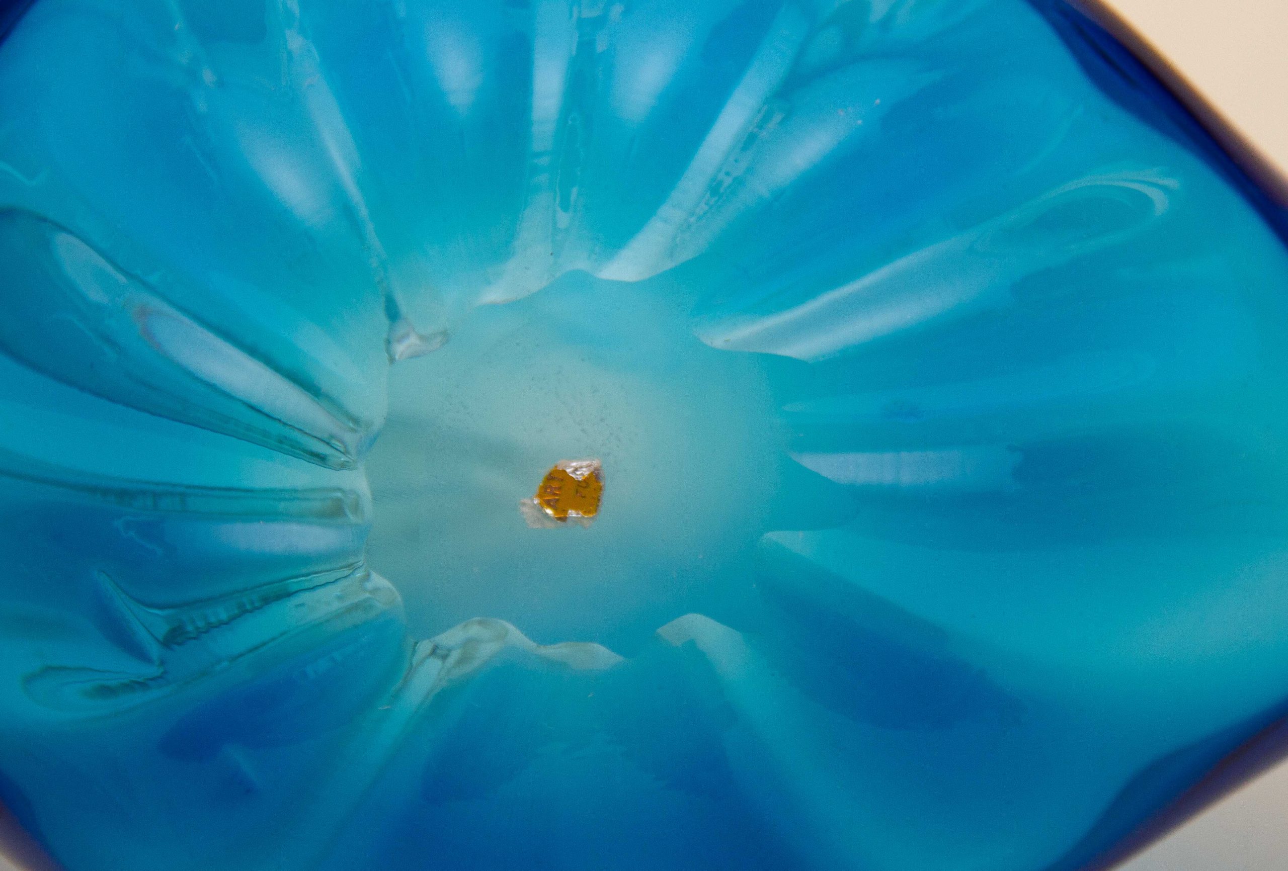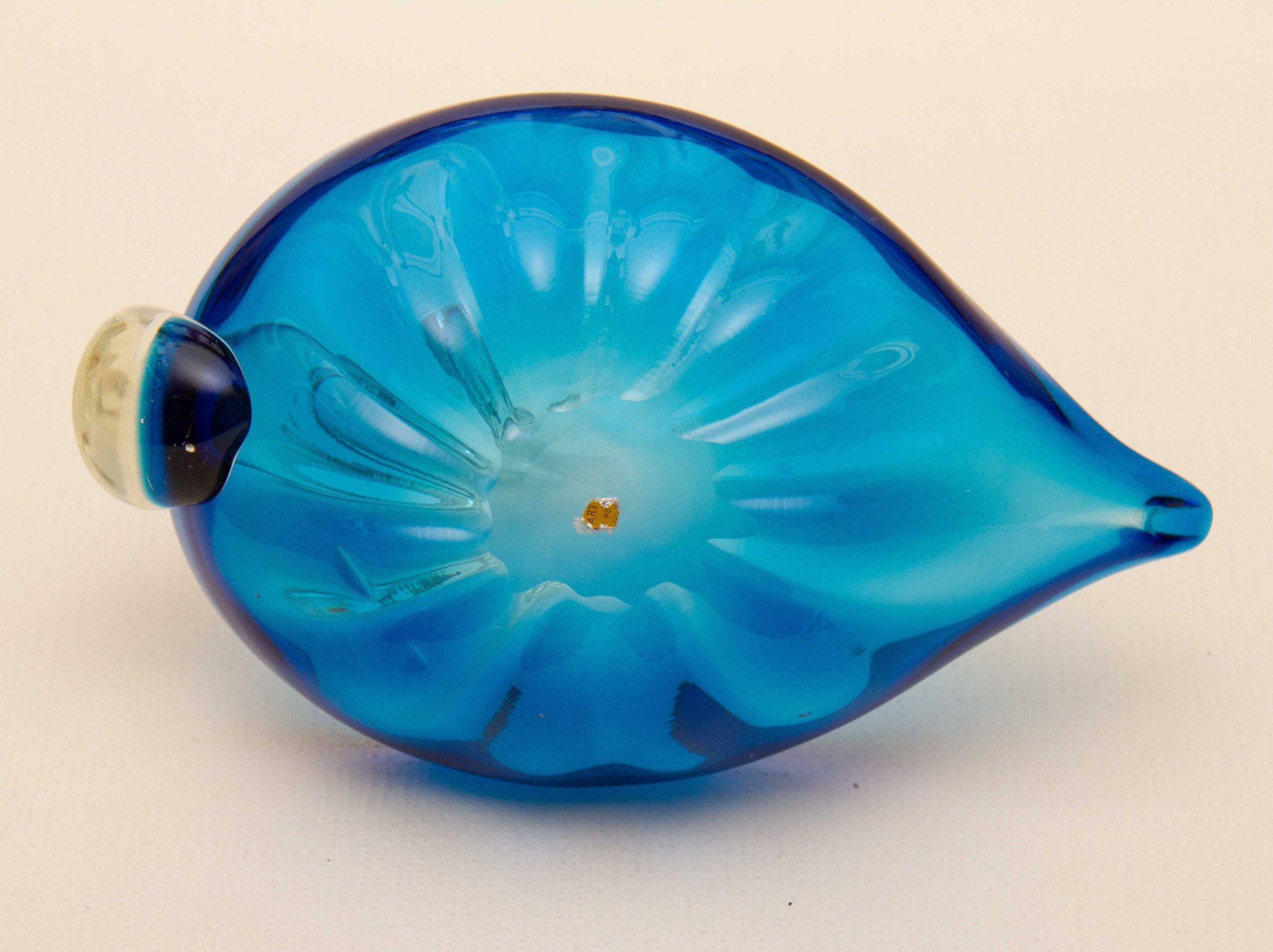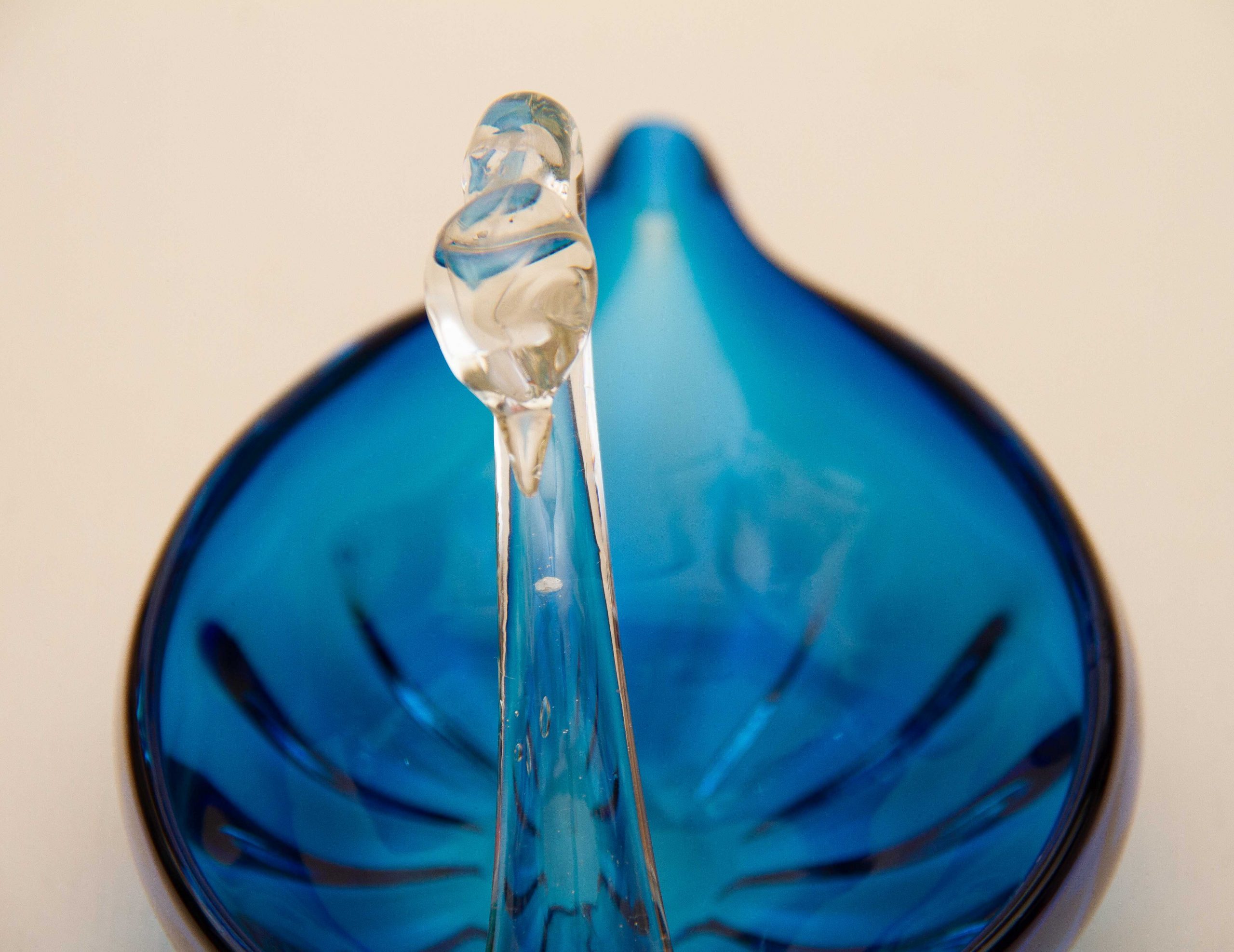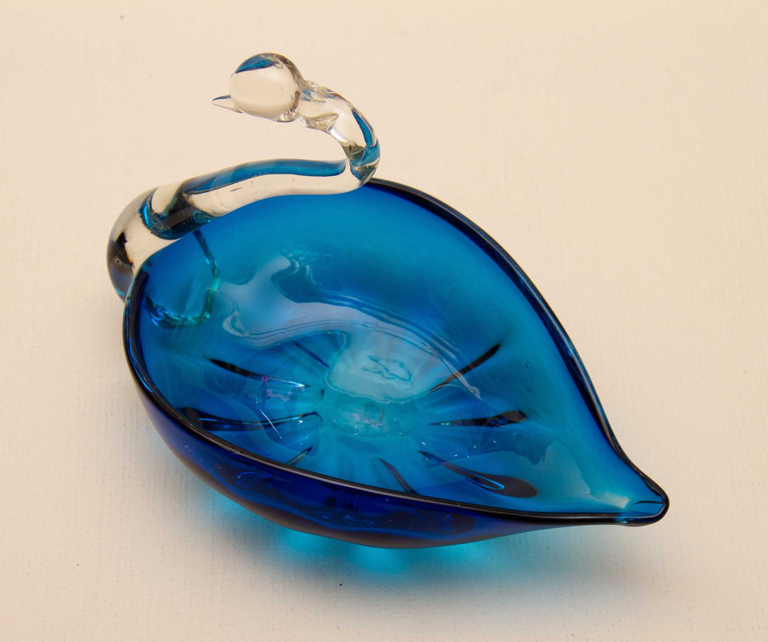 A Best Art of Japan vintage blue and clear glass swan shape dish, with partial original label on the underside.