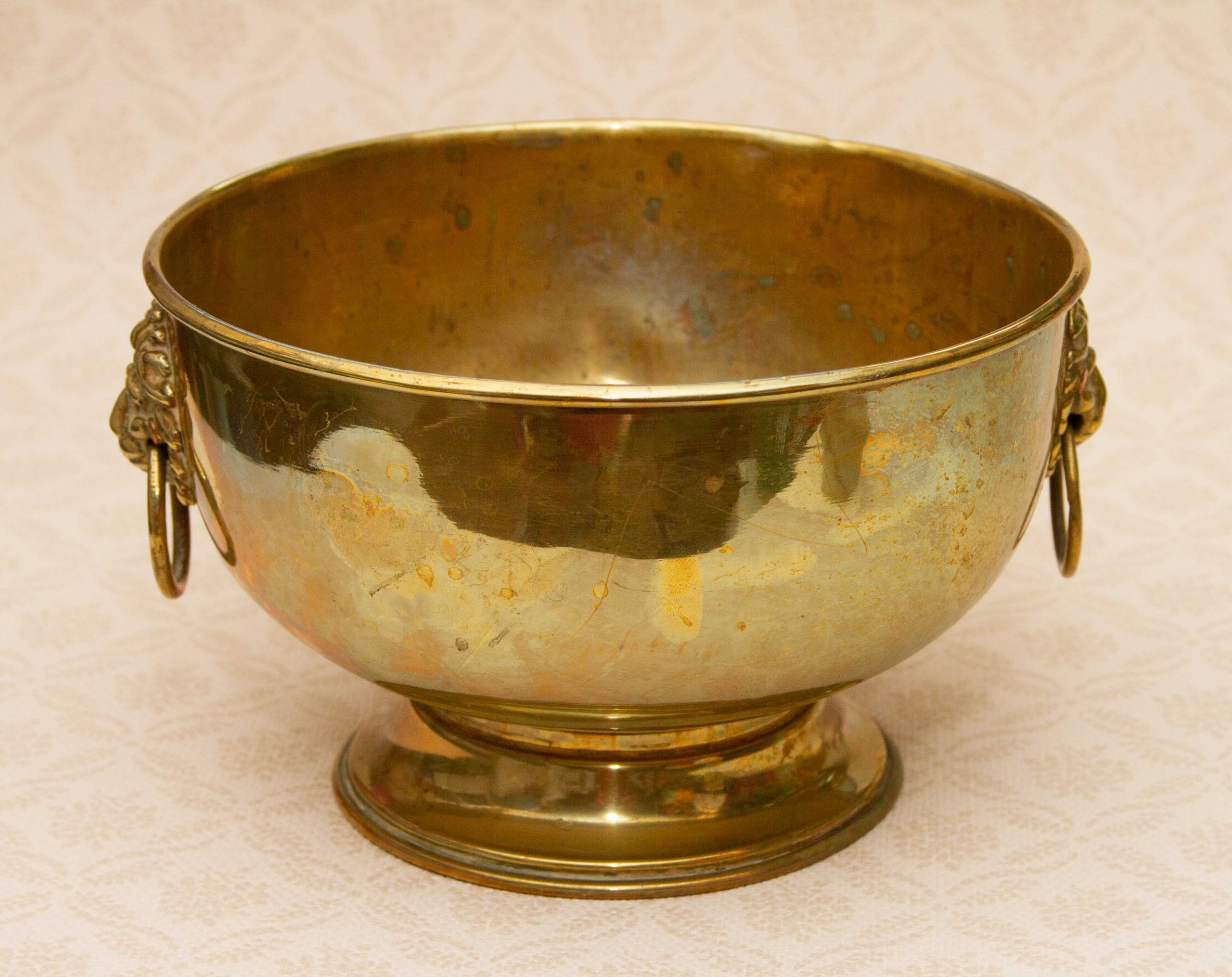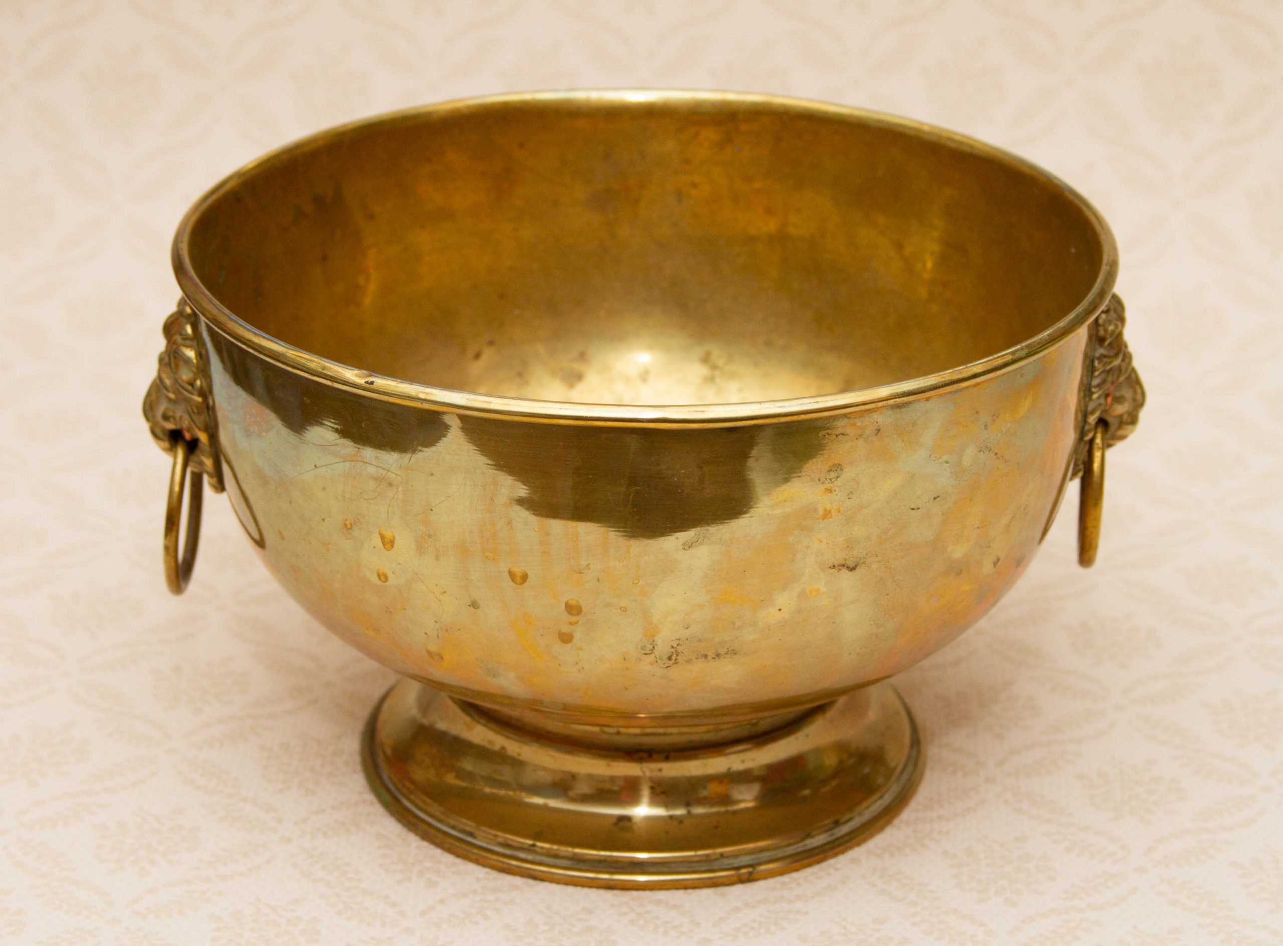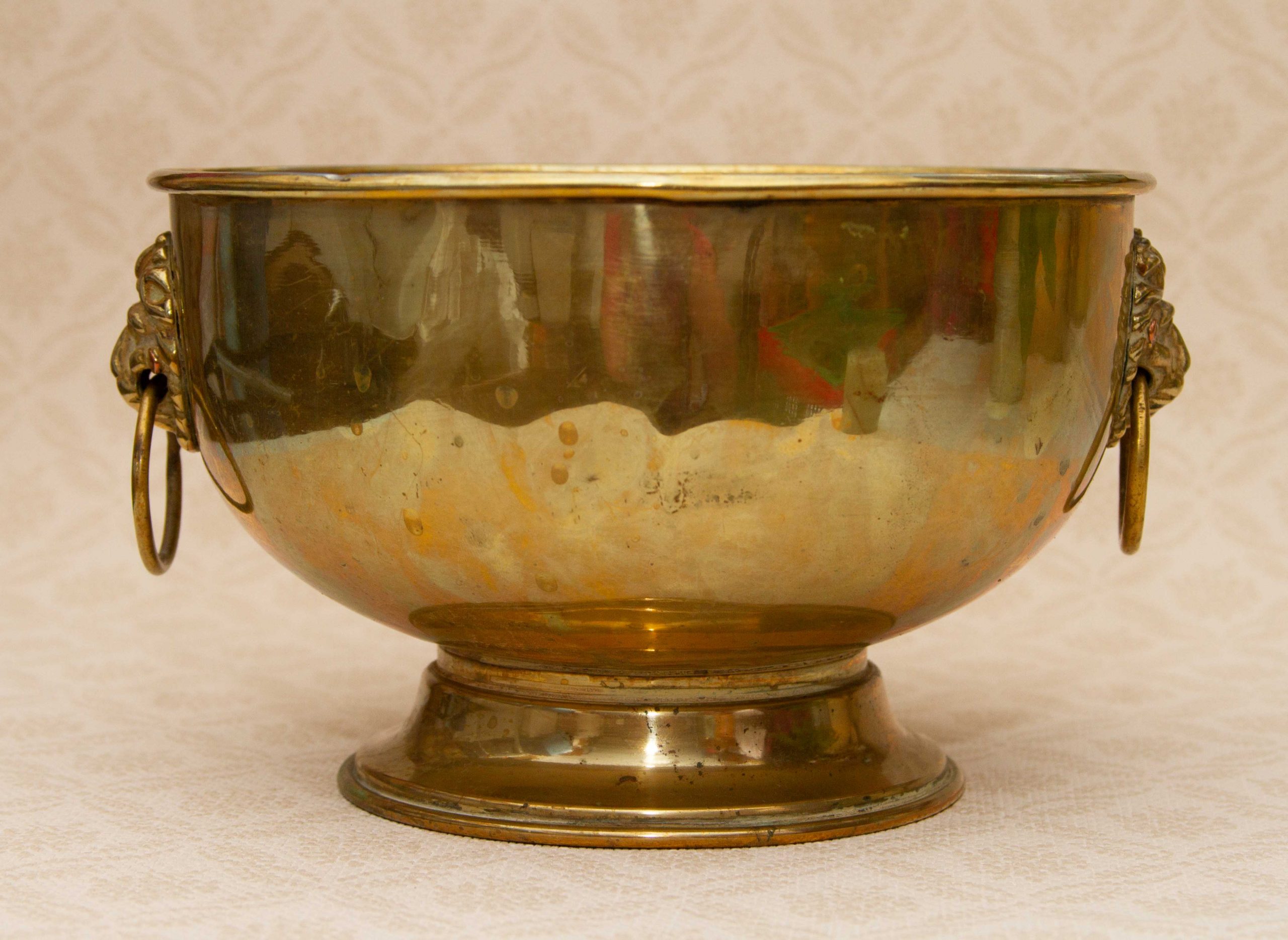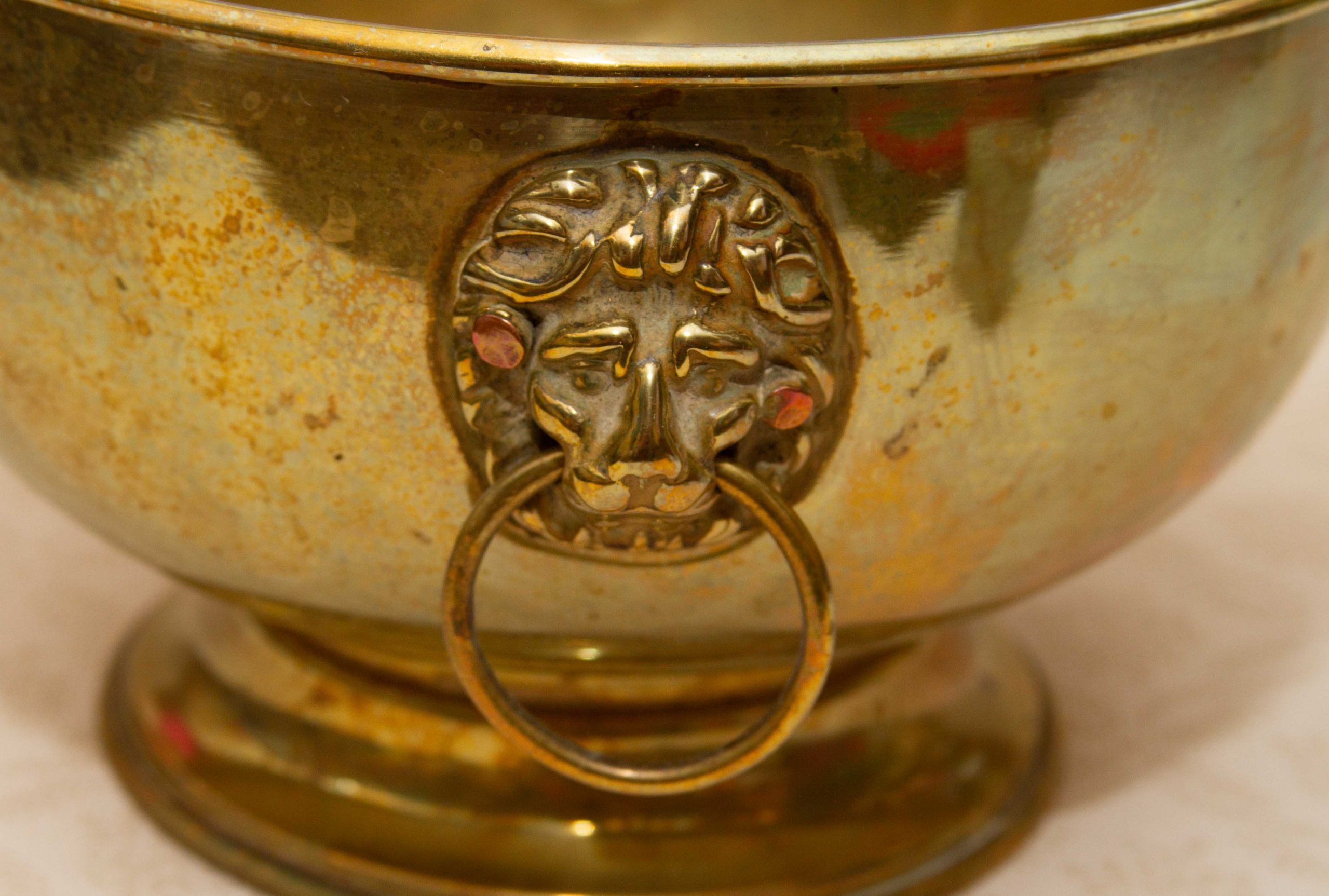 Brass Planter With Lion Head Motifs and Handles Large Round Plant Holder