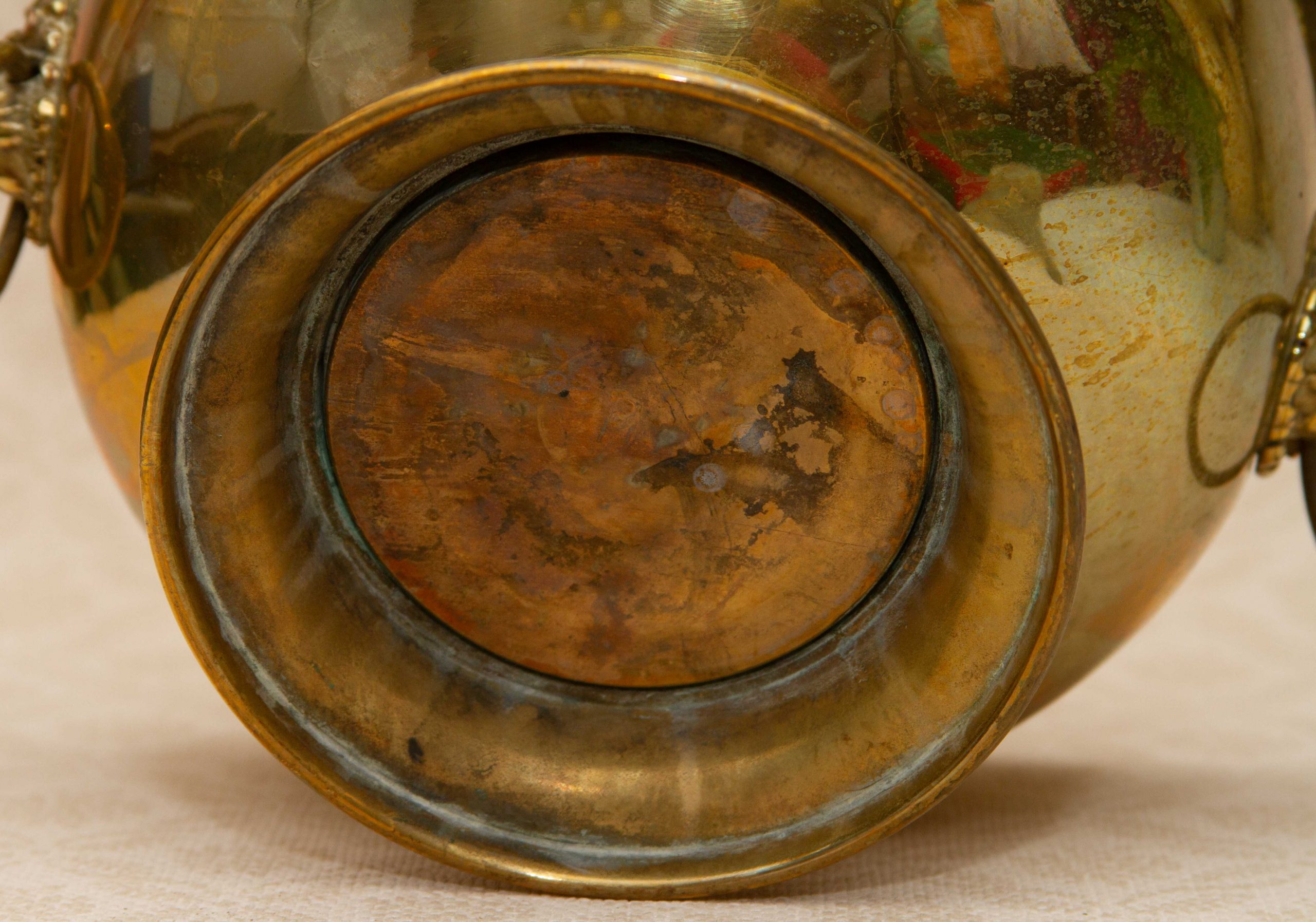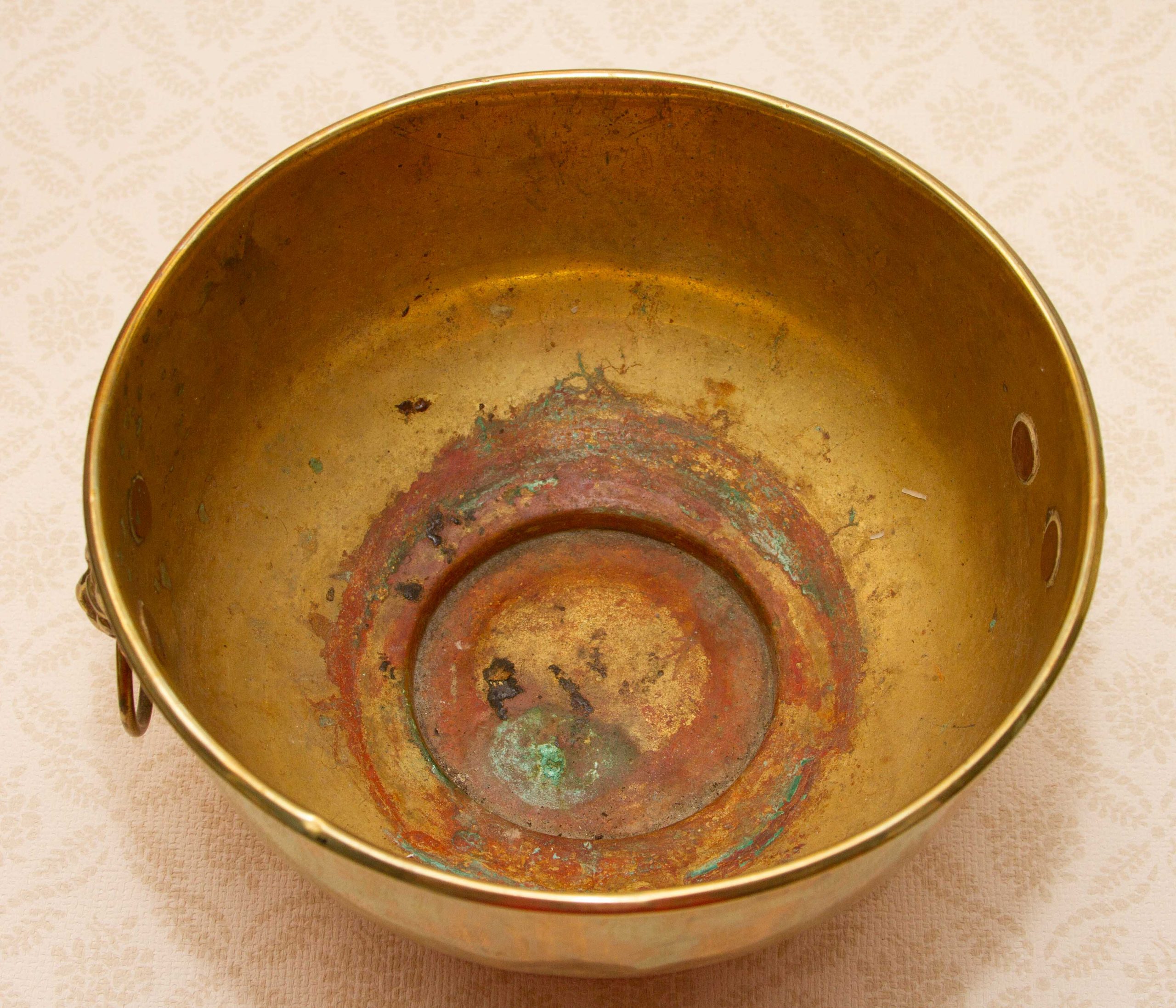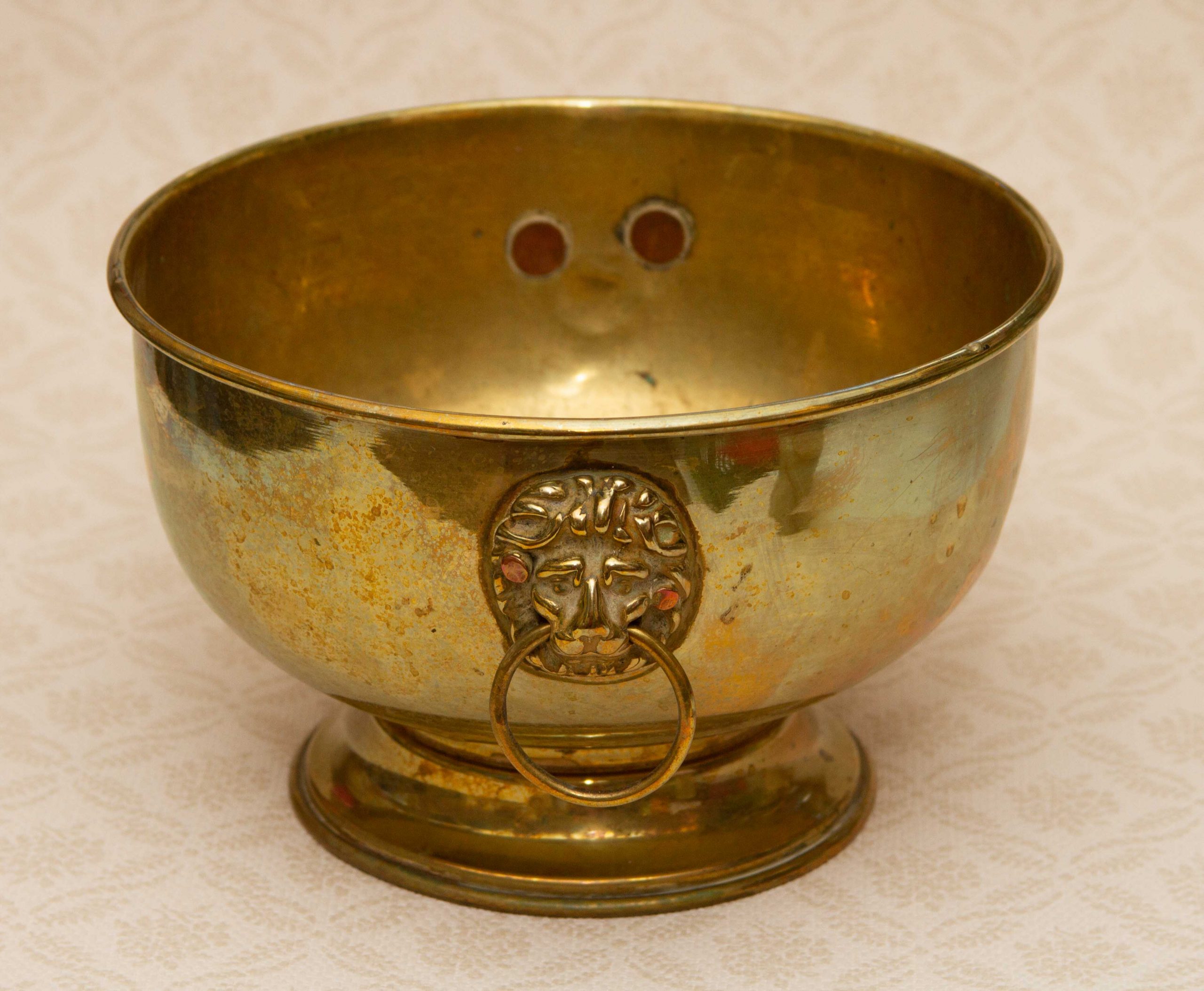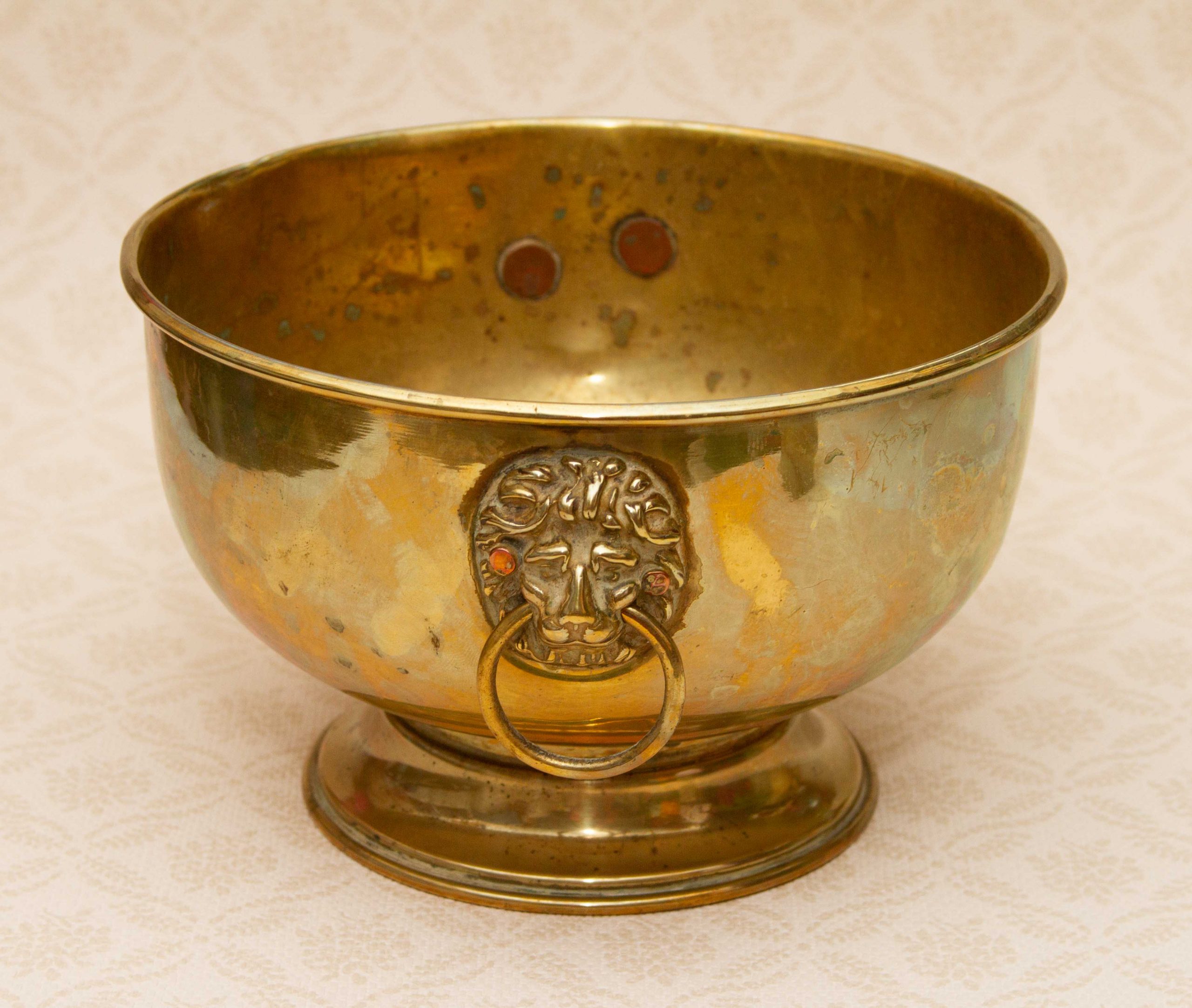 Brass Planter With Lion Head Motifs and Handles Large Round Plant Holder