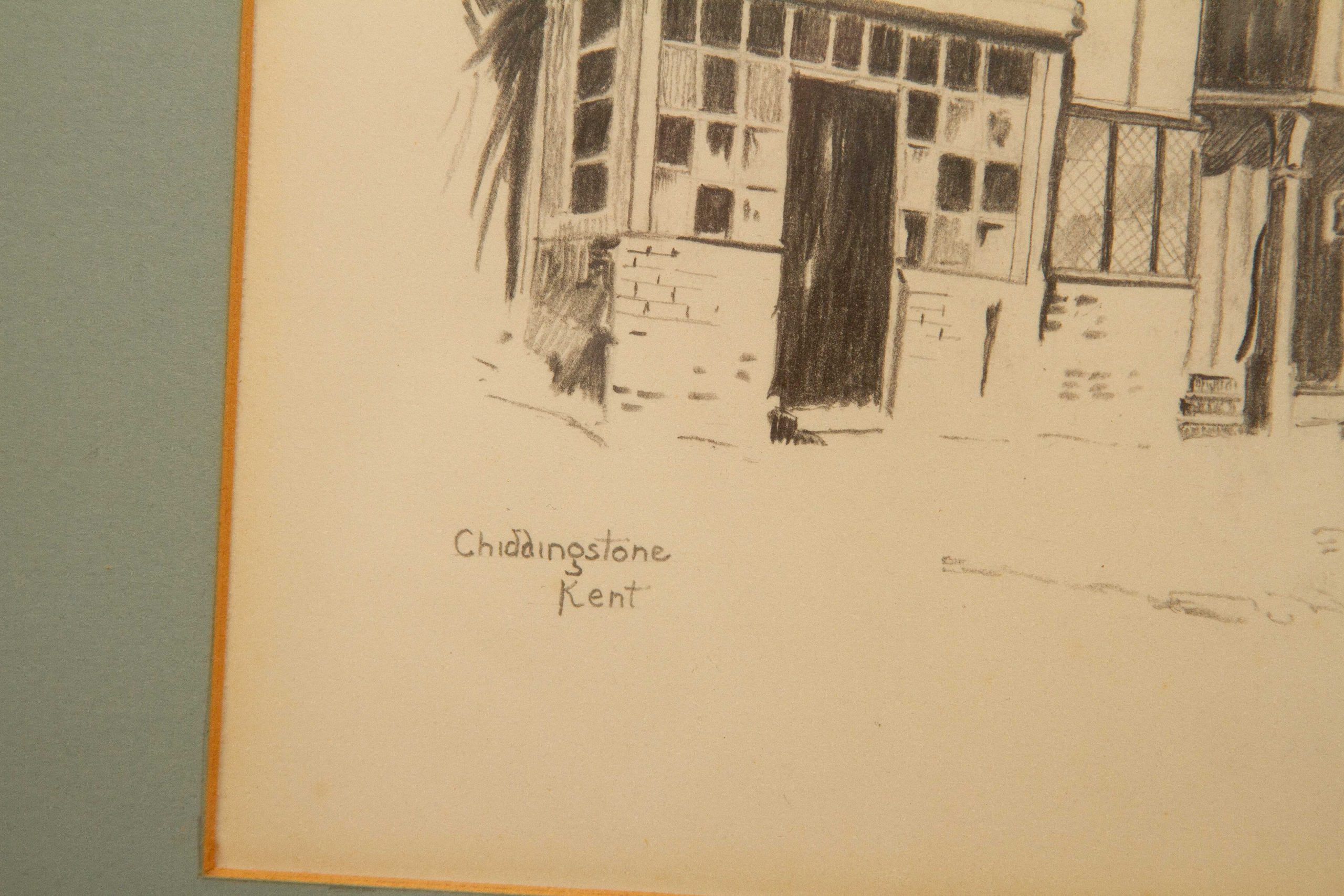 Chiddingstone Kent Signed Pencil Drawing F.W. Barnett 1972, National Trust Tudor Village