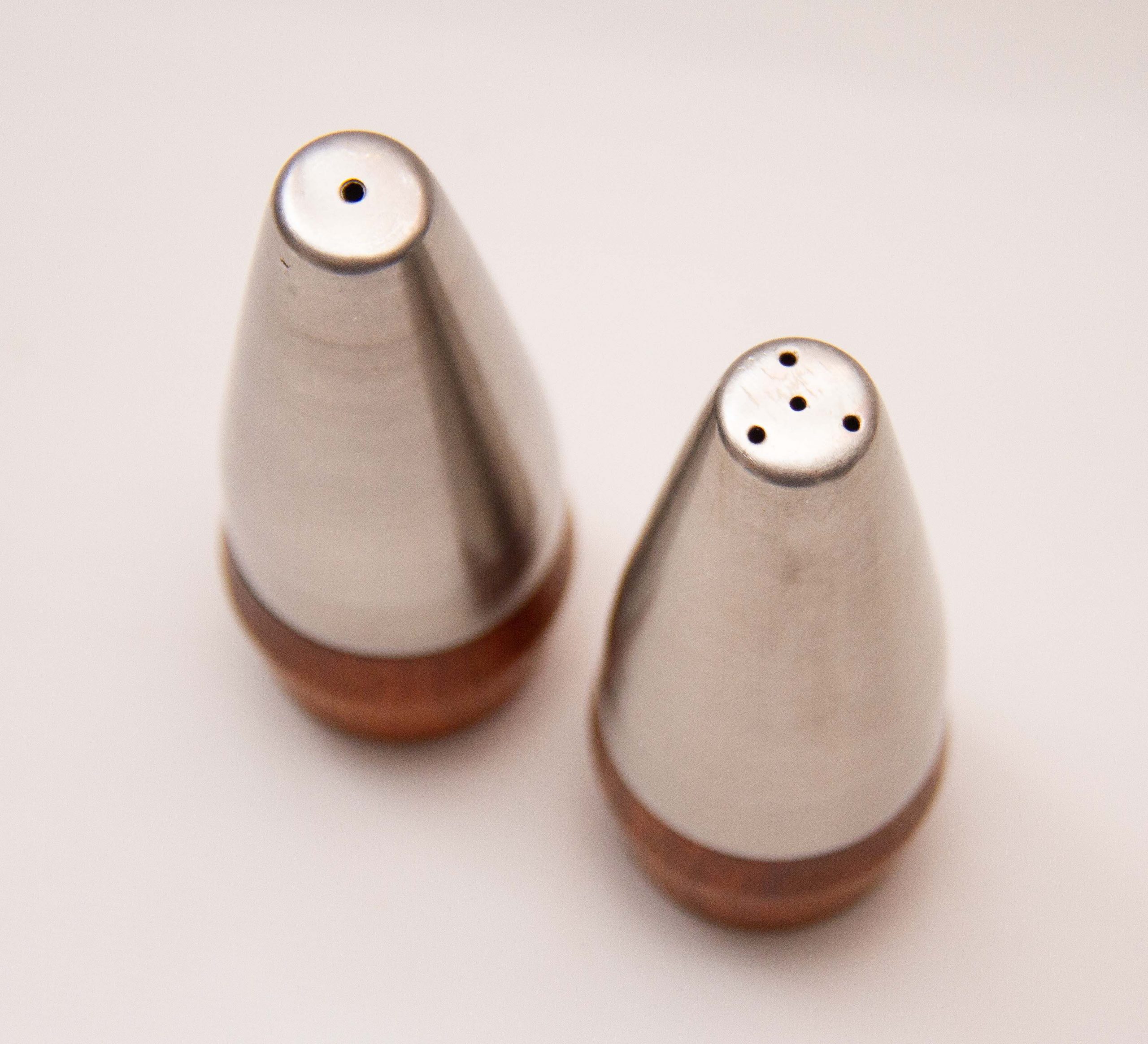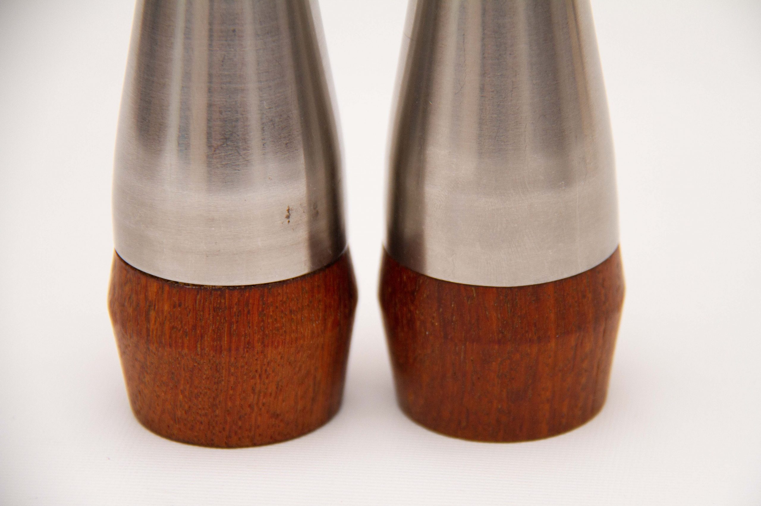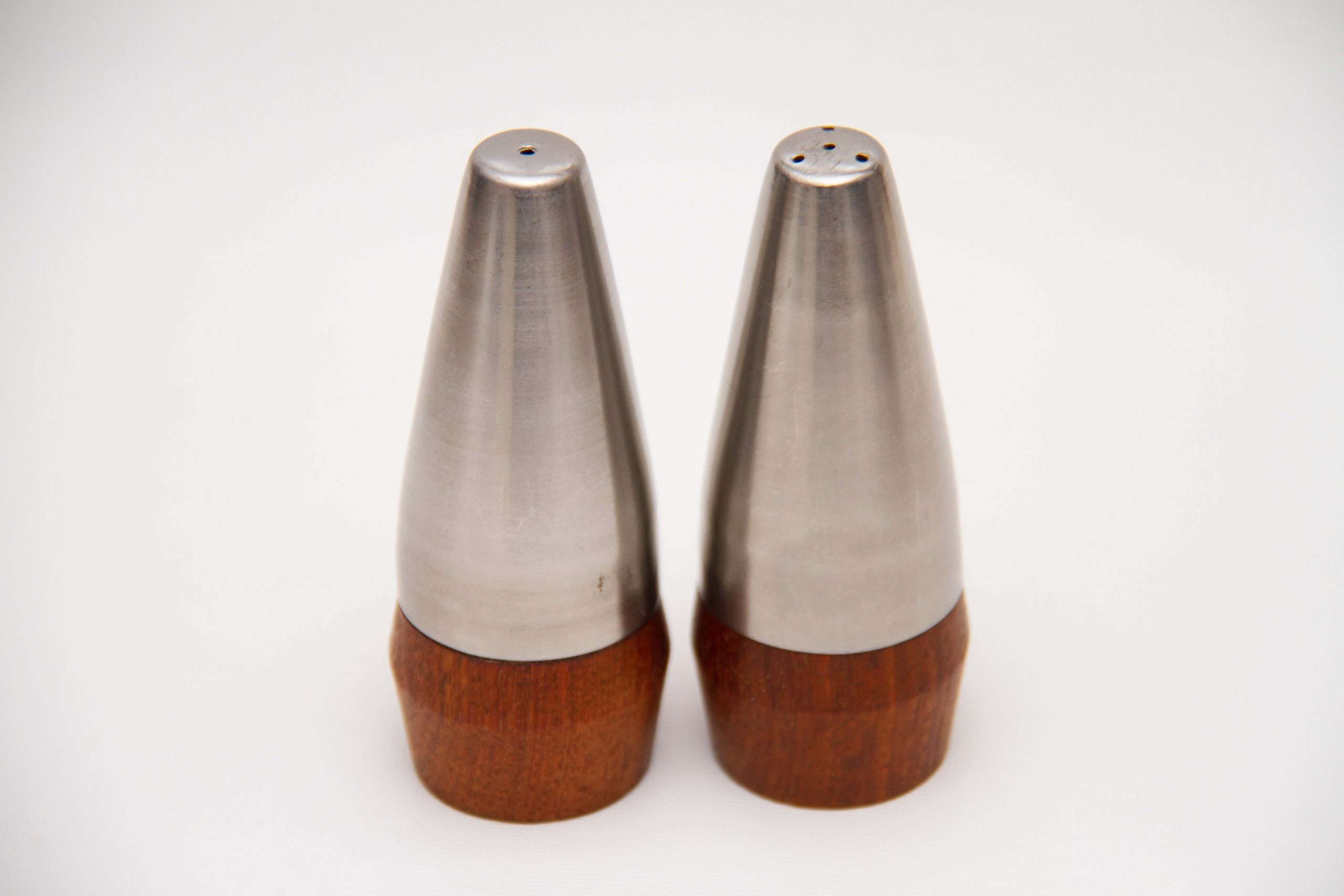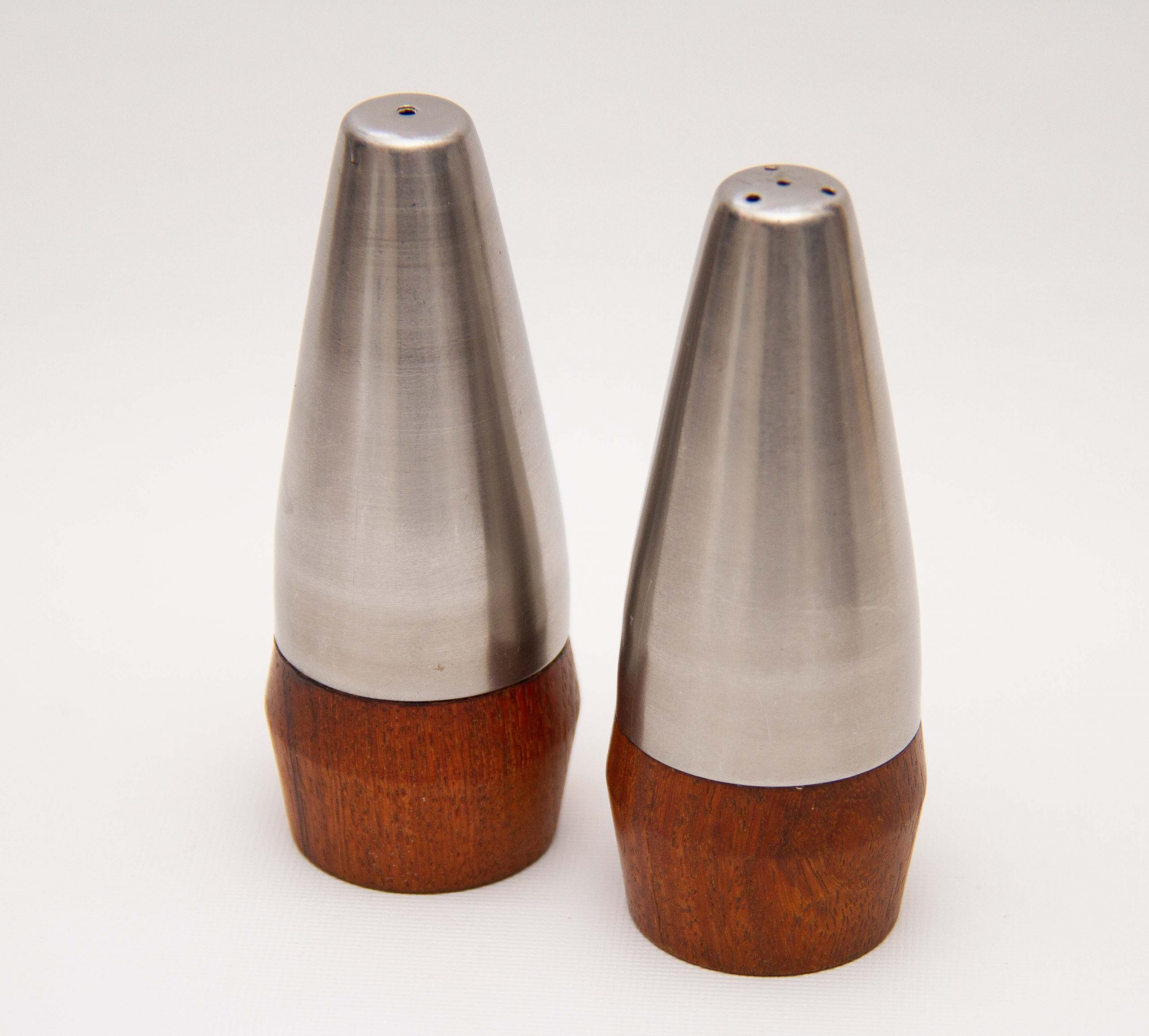 Danish Teak & Steel Mid Century Modern Salt and Pepper Pot Set