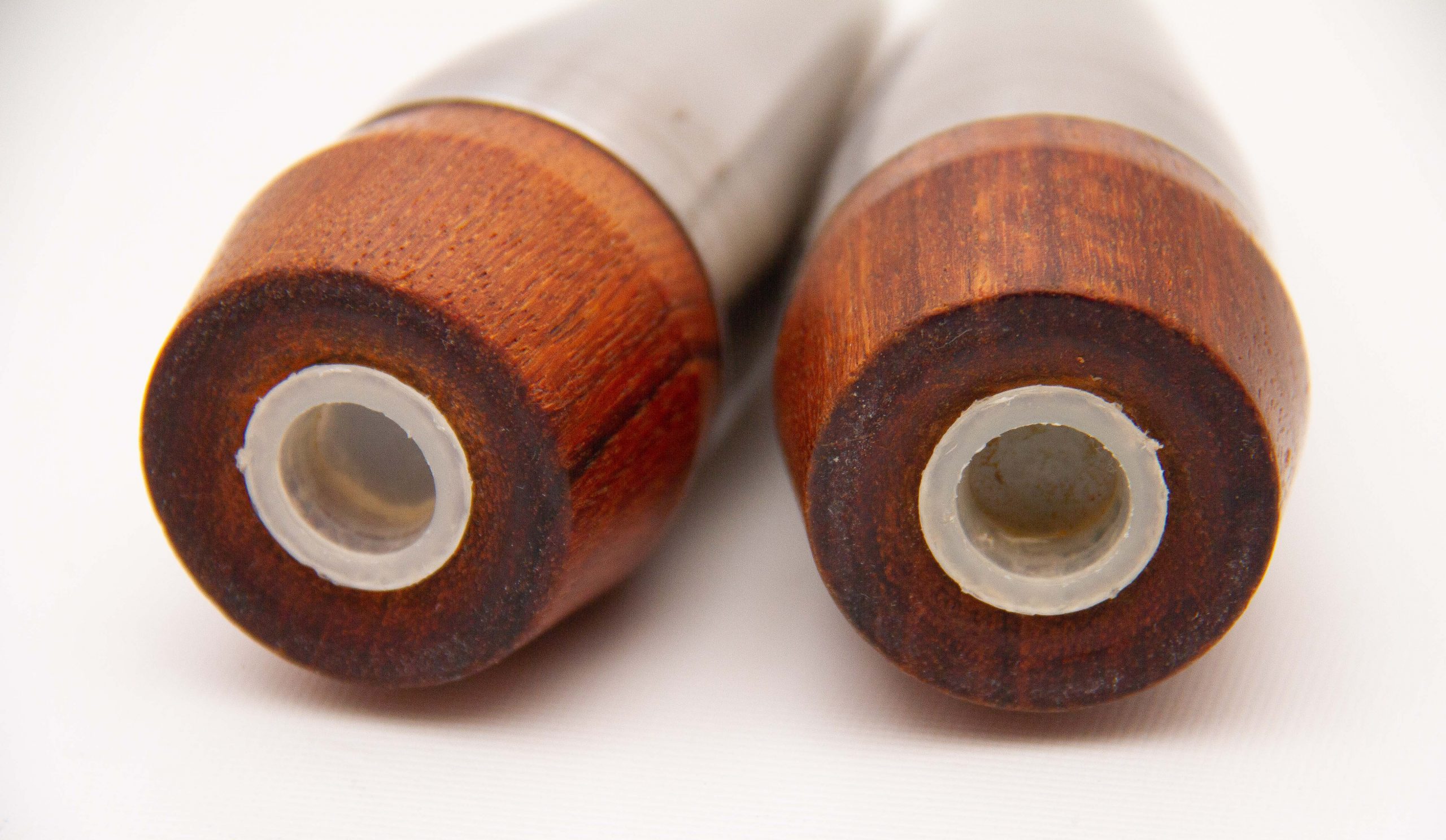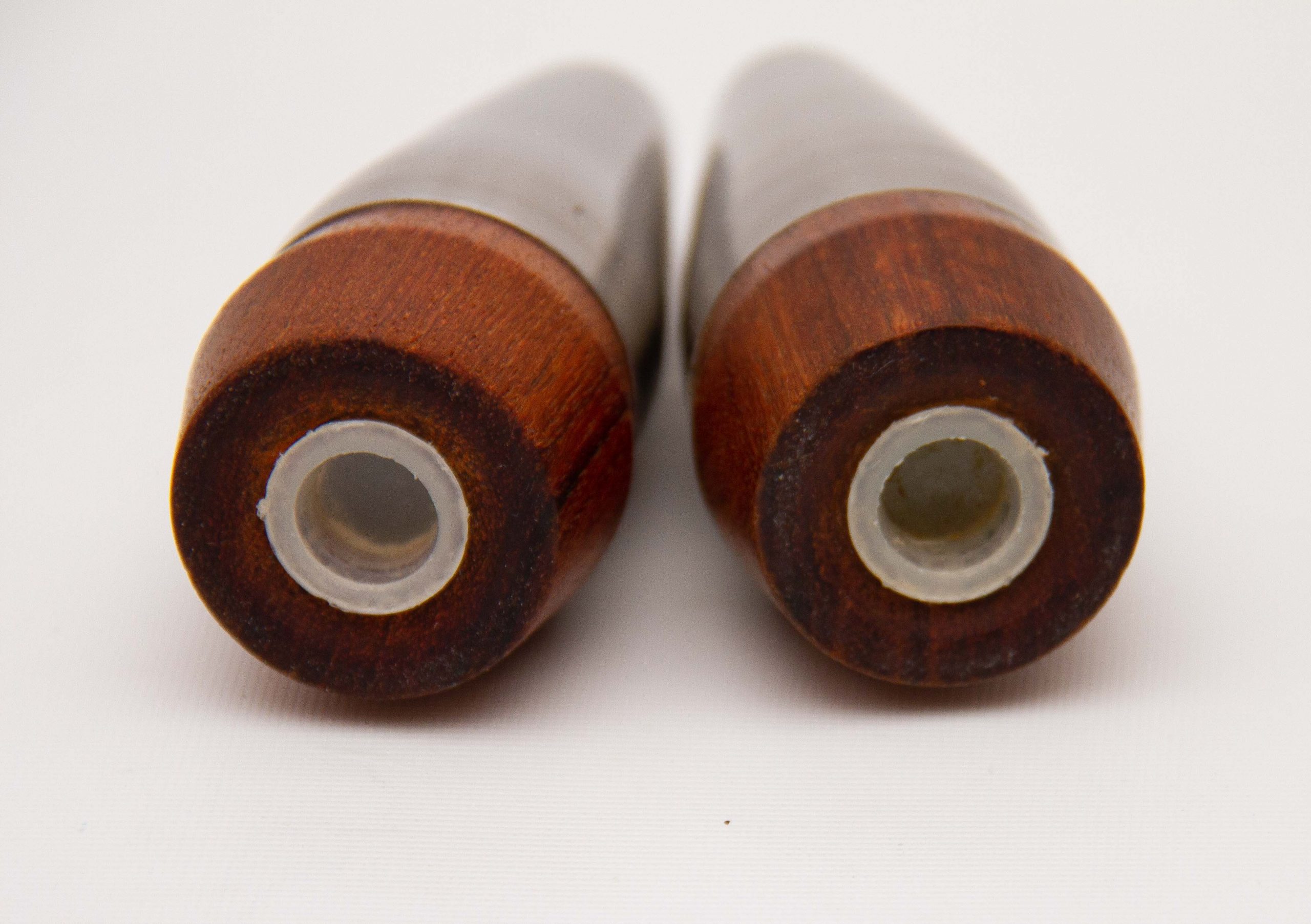 A pair of Danish Mid Century Modern teak and steel conical shape salt and pepper pots, with original stoppers. Dating from around the 1960’s.