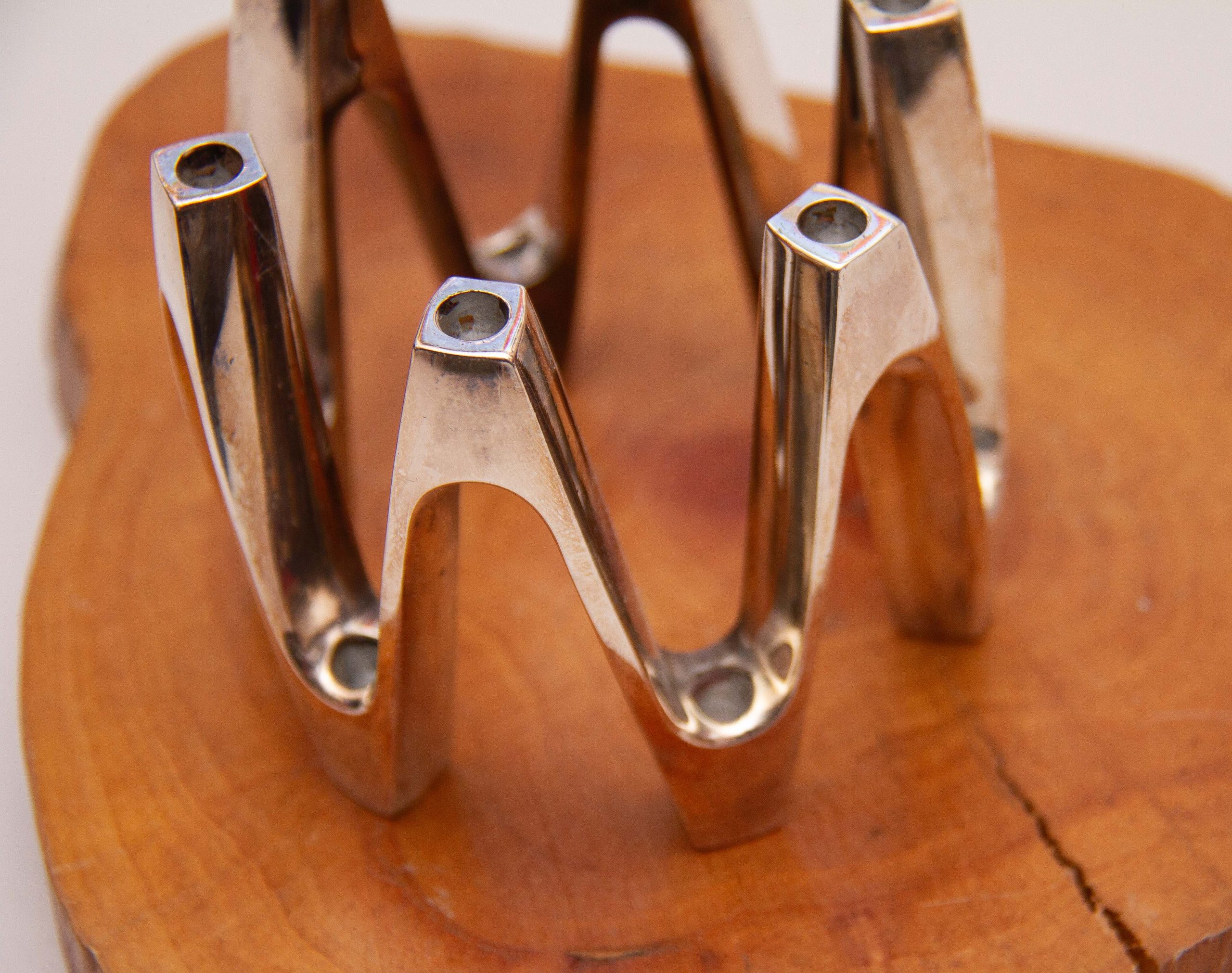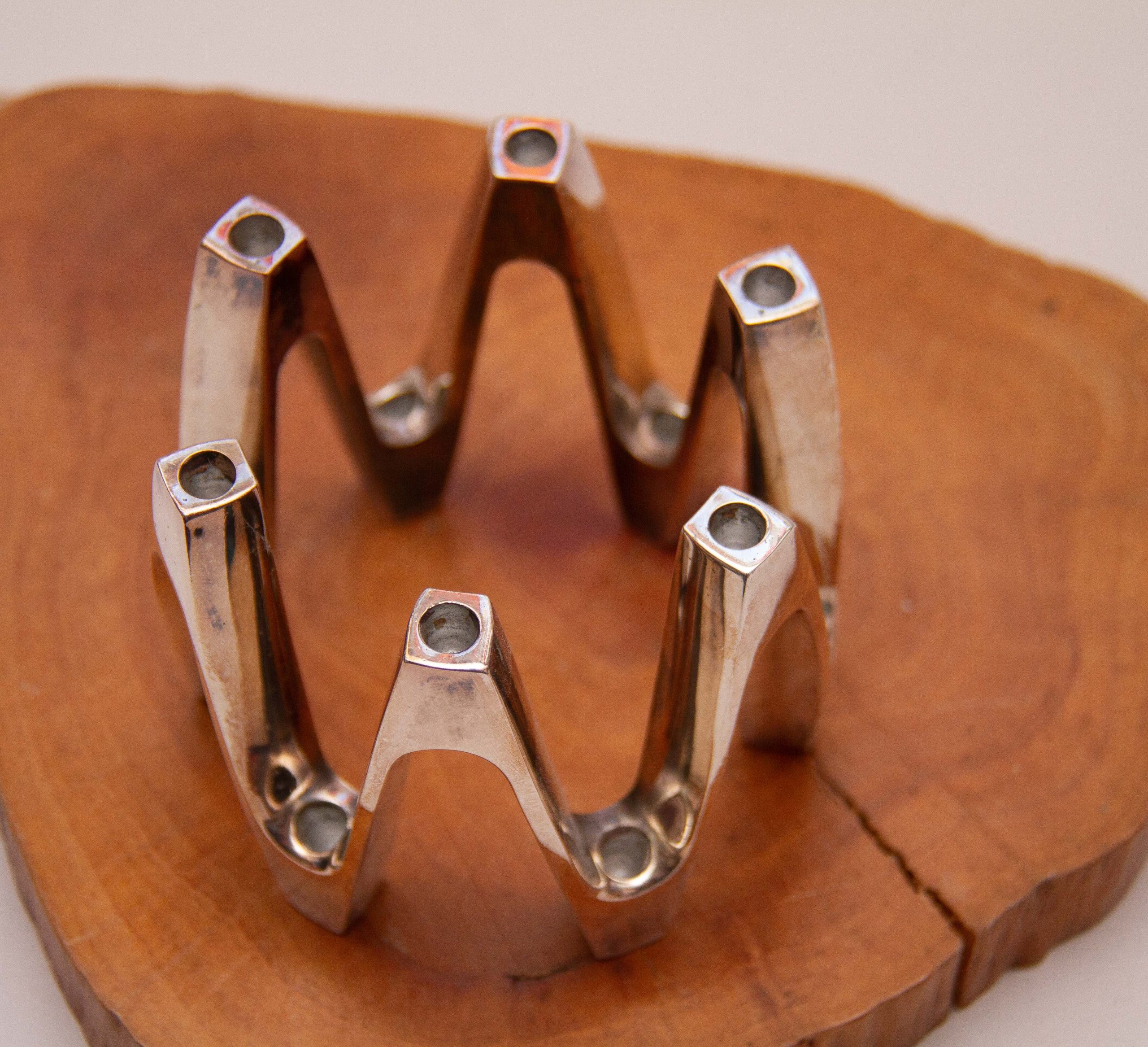 A DANSK Designs silver plated Crown Candelabra. This Mid Century Modern Scandi style two tier candle holder was designed by Jens Harald Quistgaard in the 1960’s. Designed to hold 12 Tiny Tapers or a large ball candle.