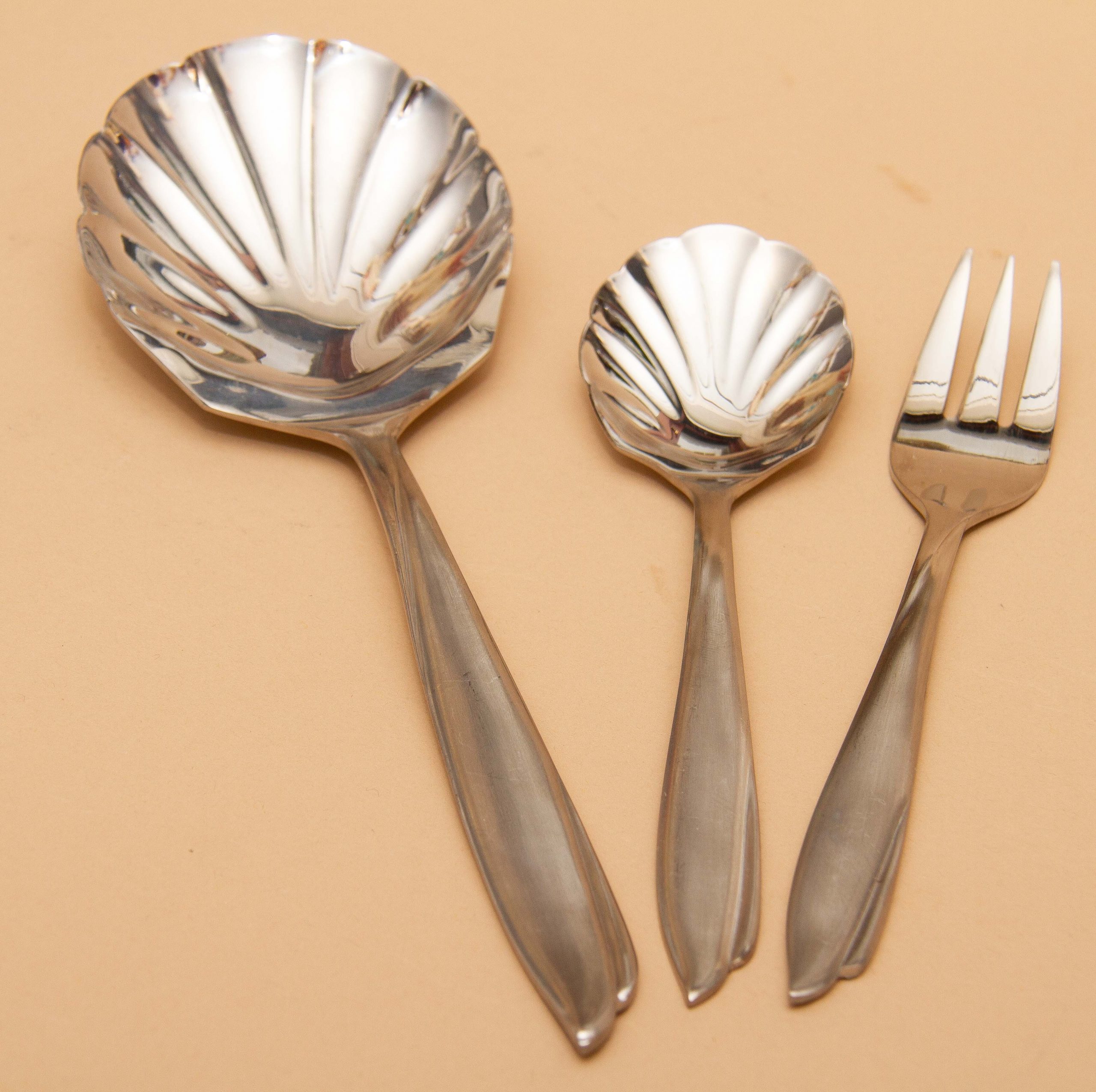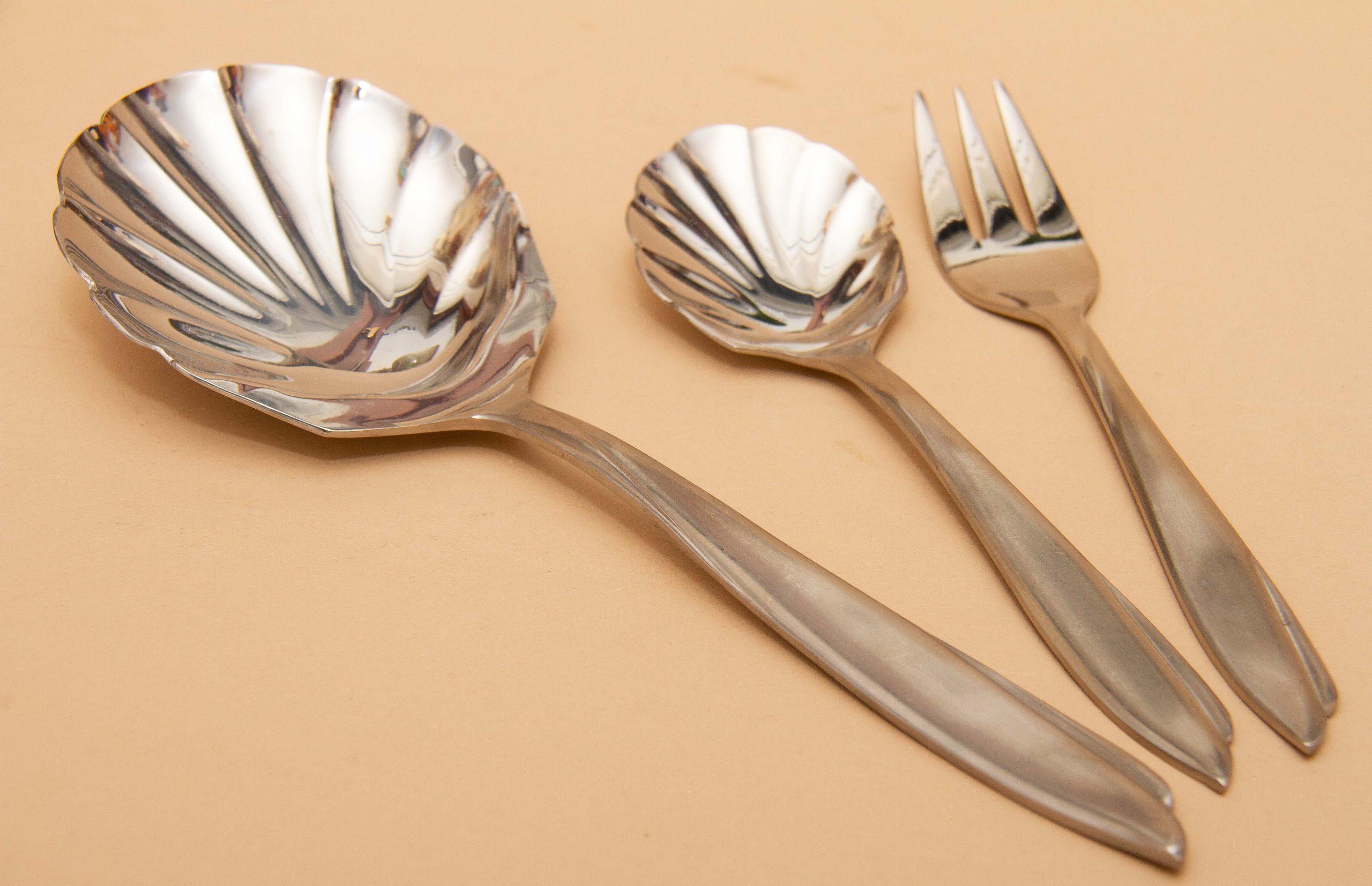 Doric Stainless Steel Shell Bowl Spoons & Forks Desert Cutlery Flatware Set By Eetrite