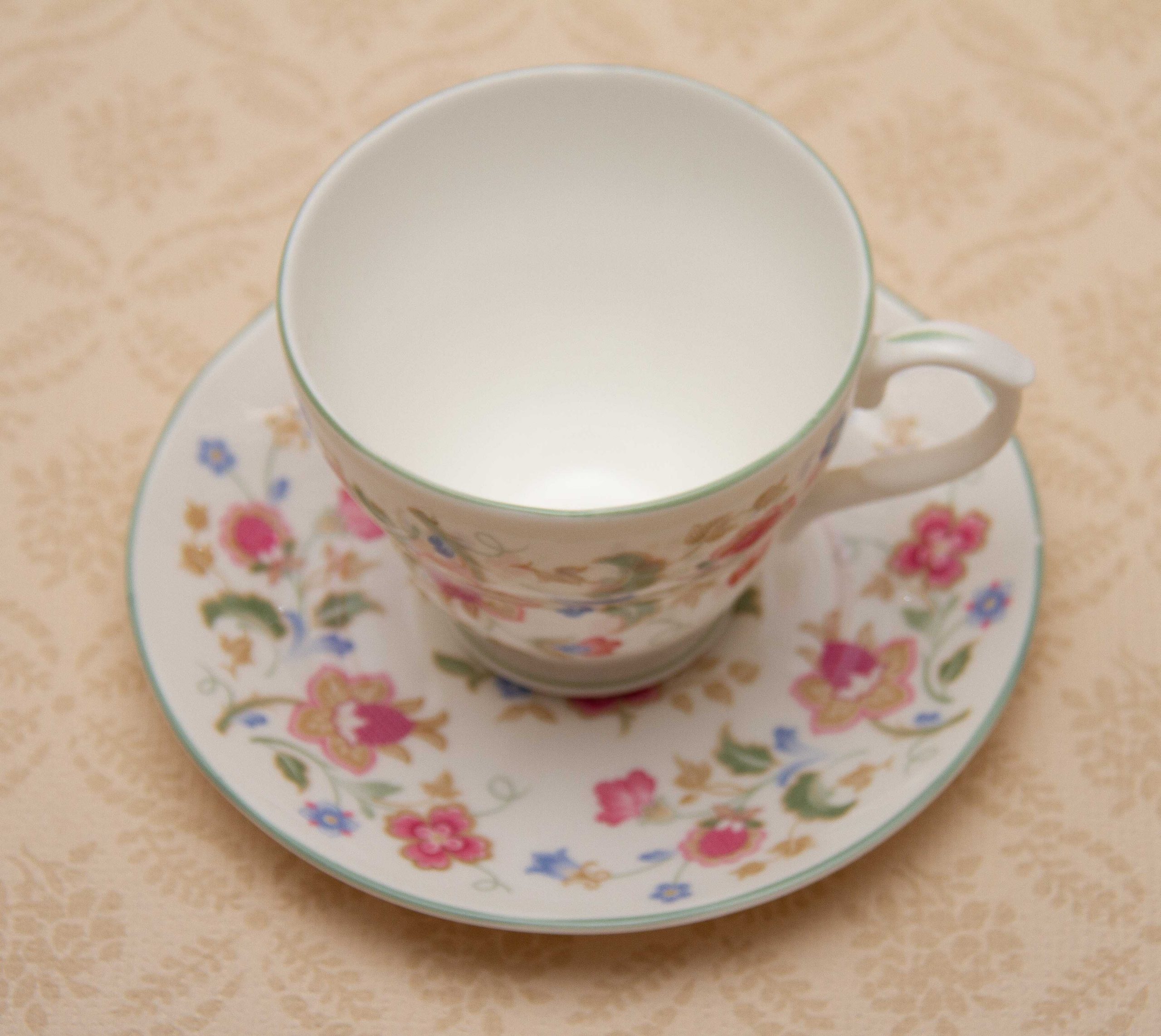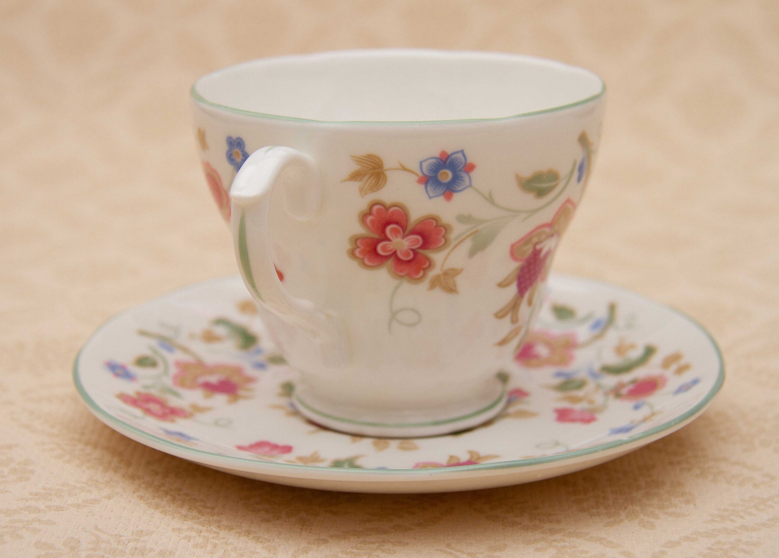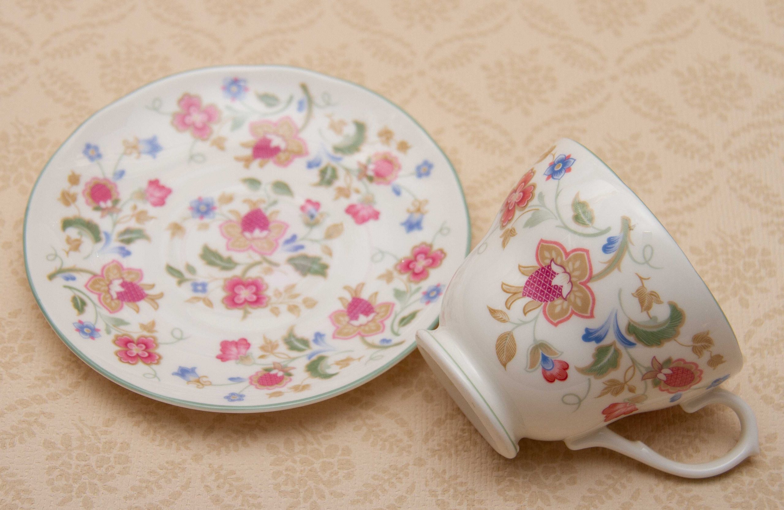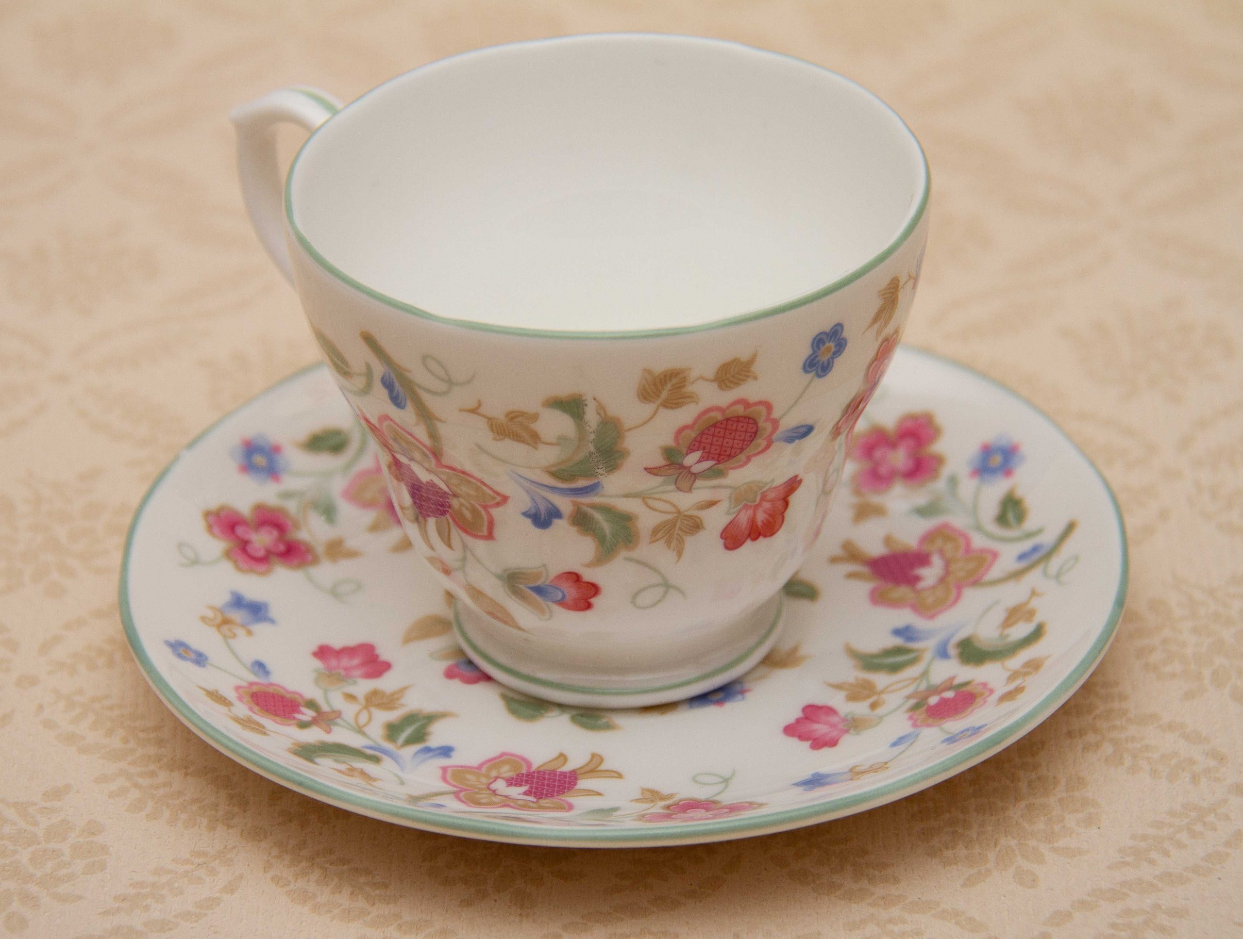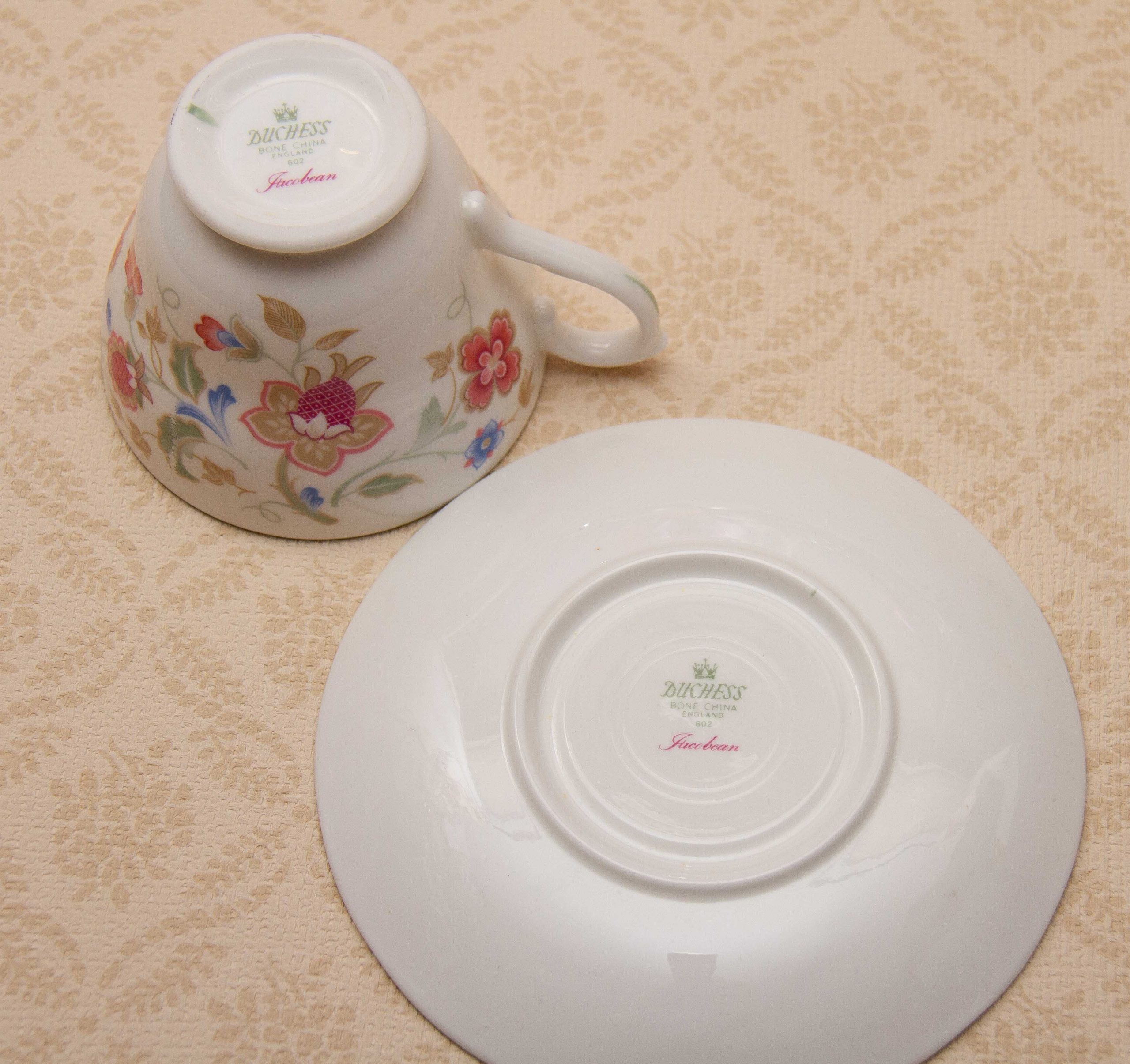 A vintage Duchess fine bone china tea cup and saucer in the Jacobean pattern