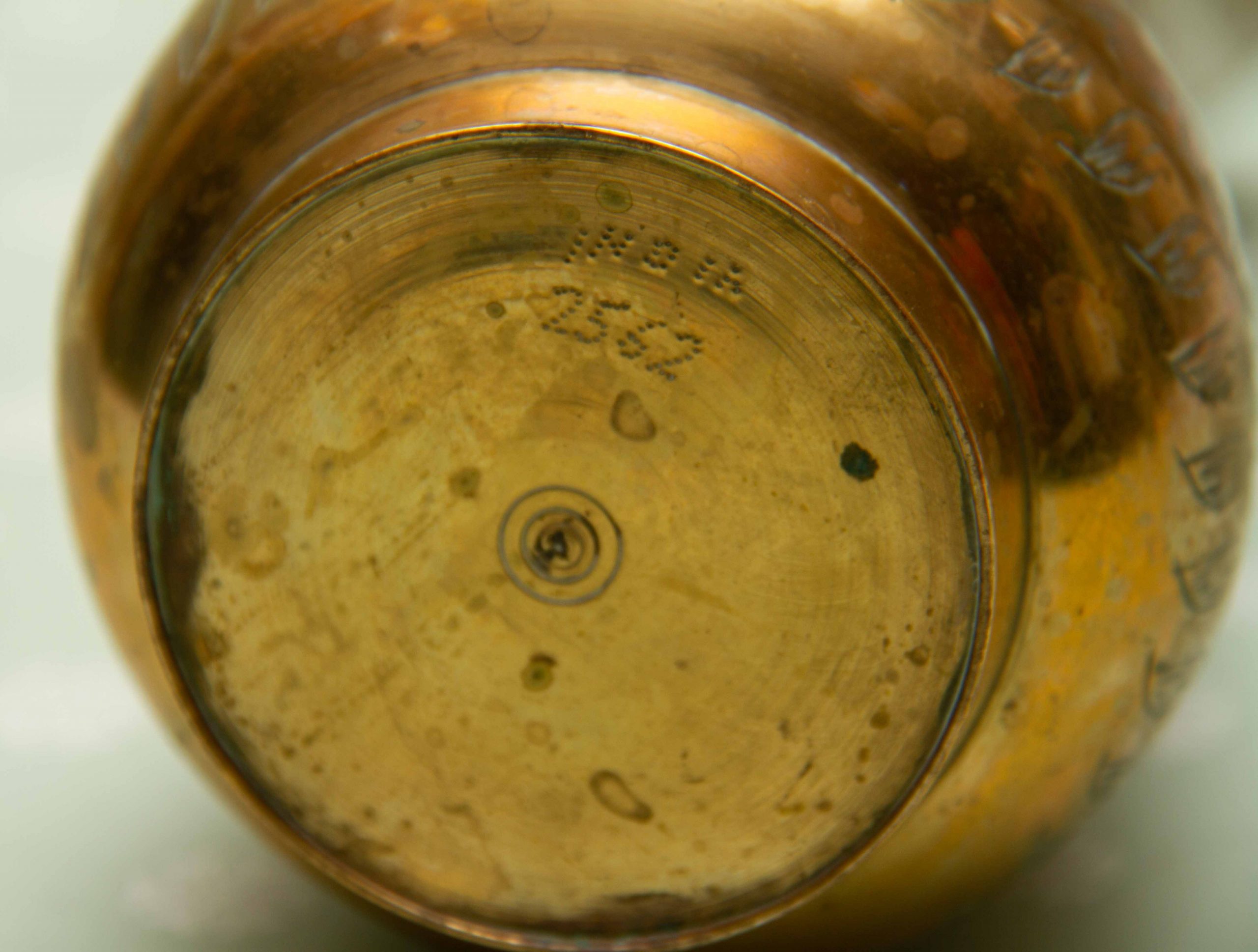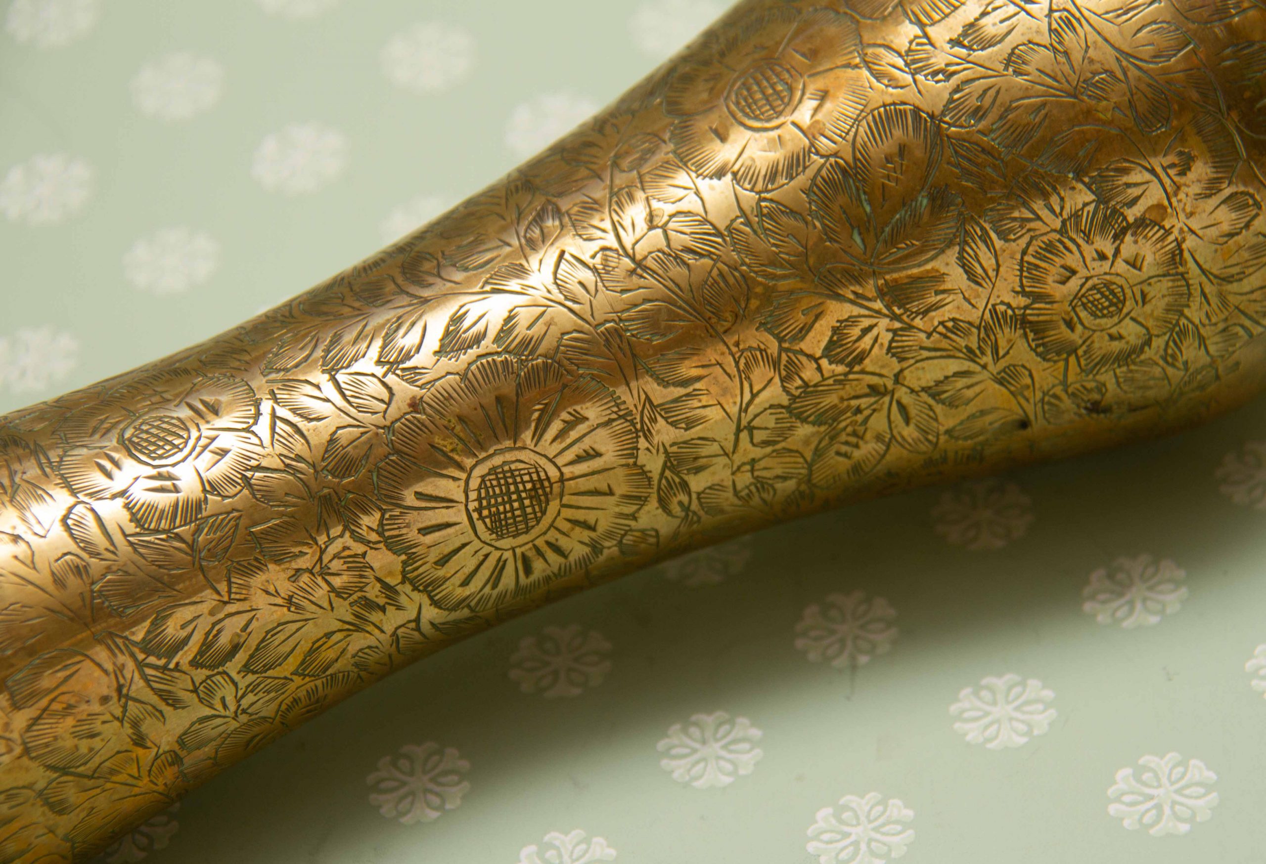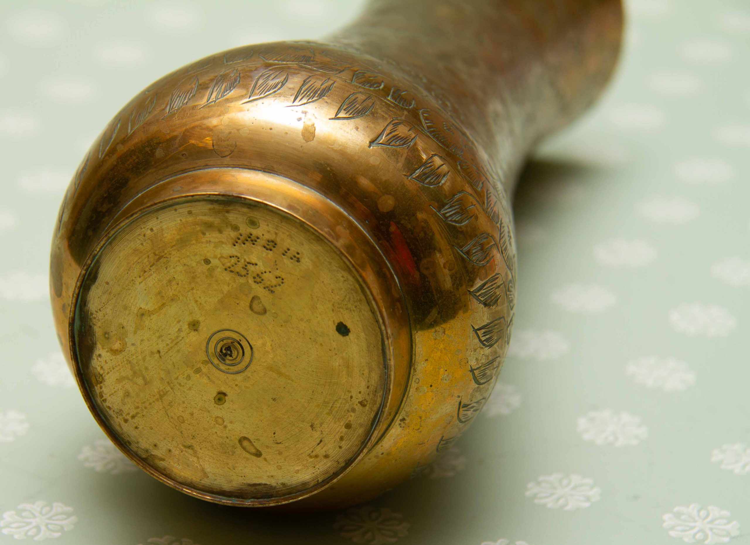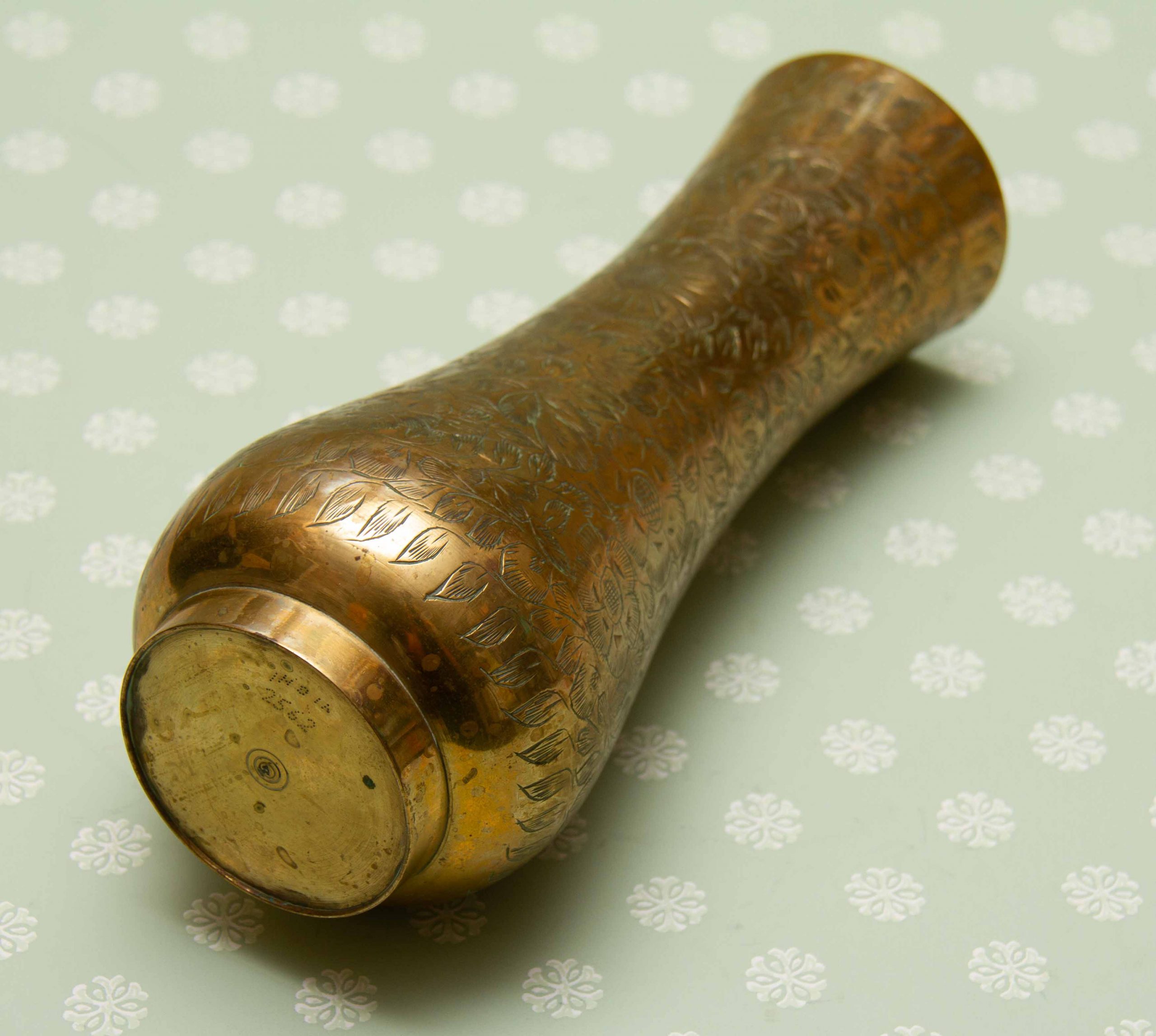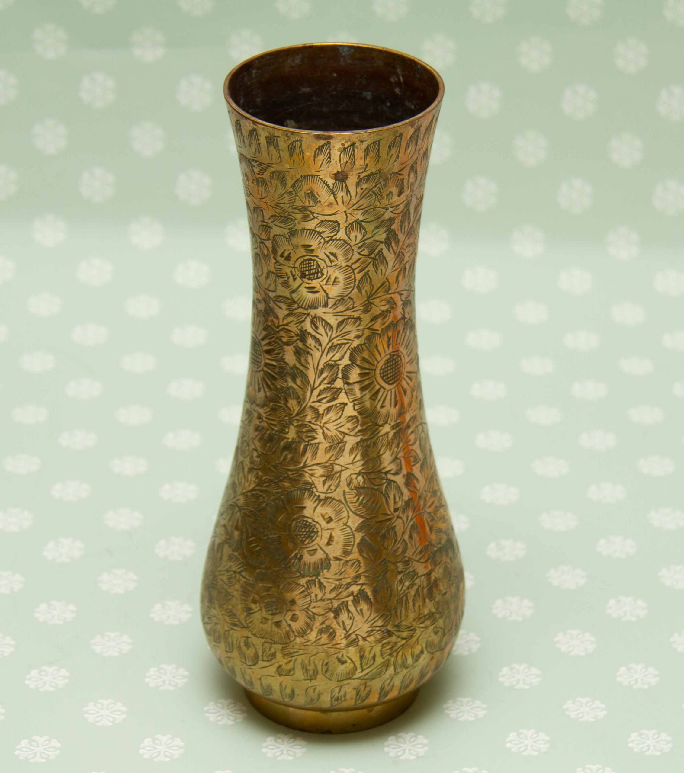A very nice tall brass vase with an engraved flower pattern on. Made in India