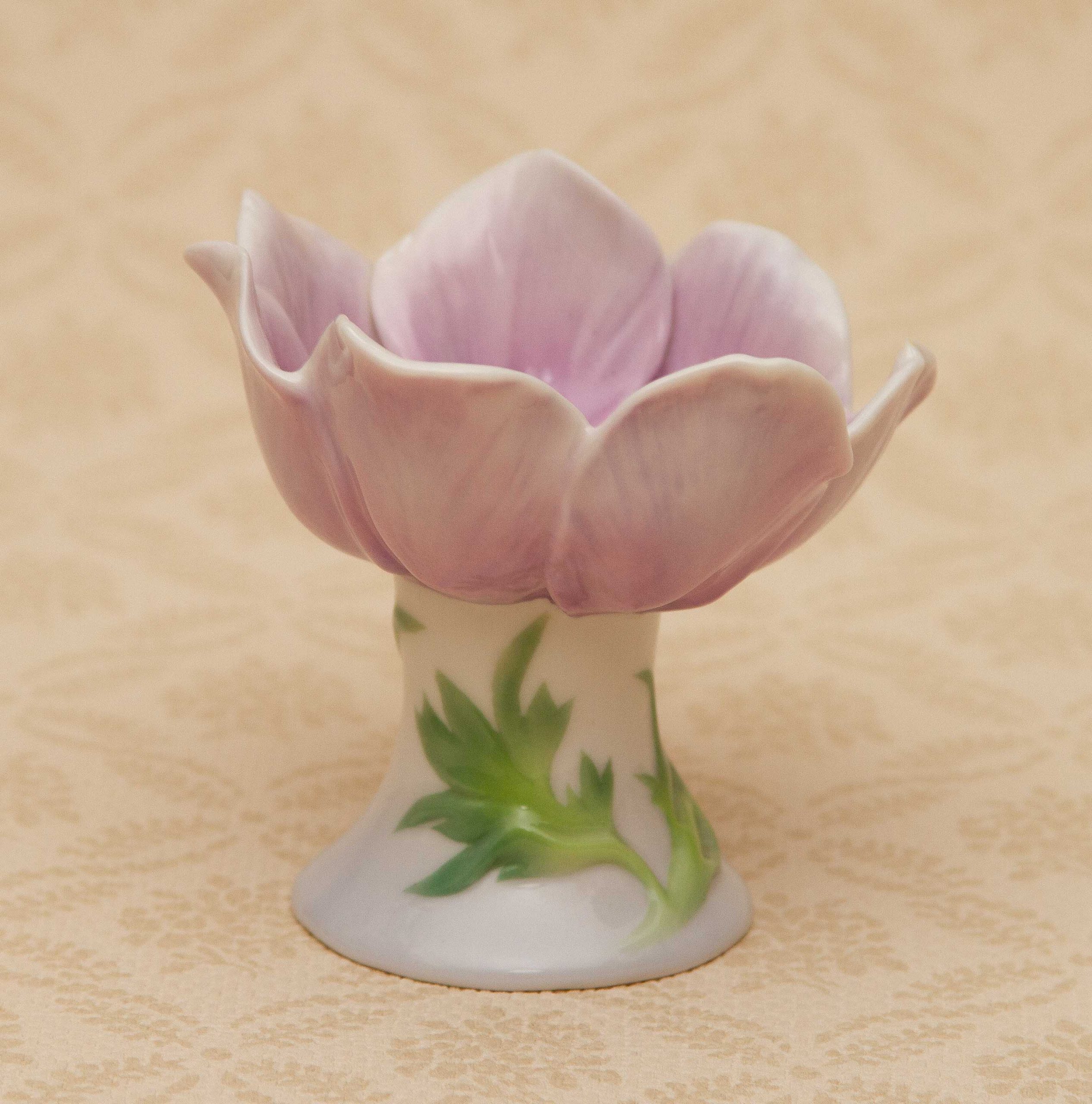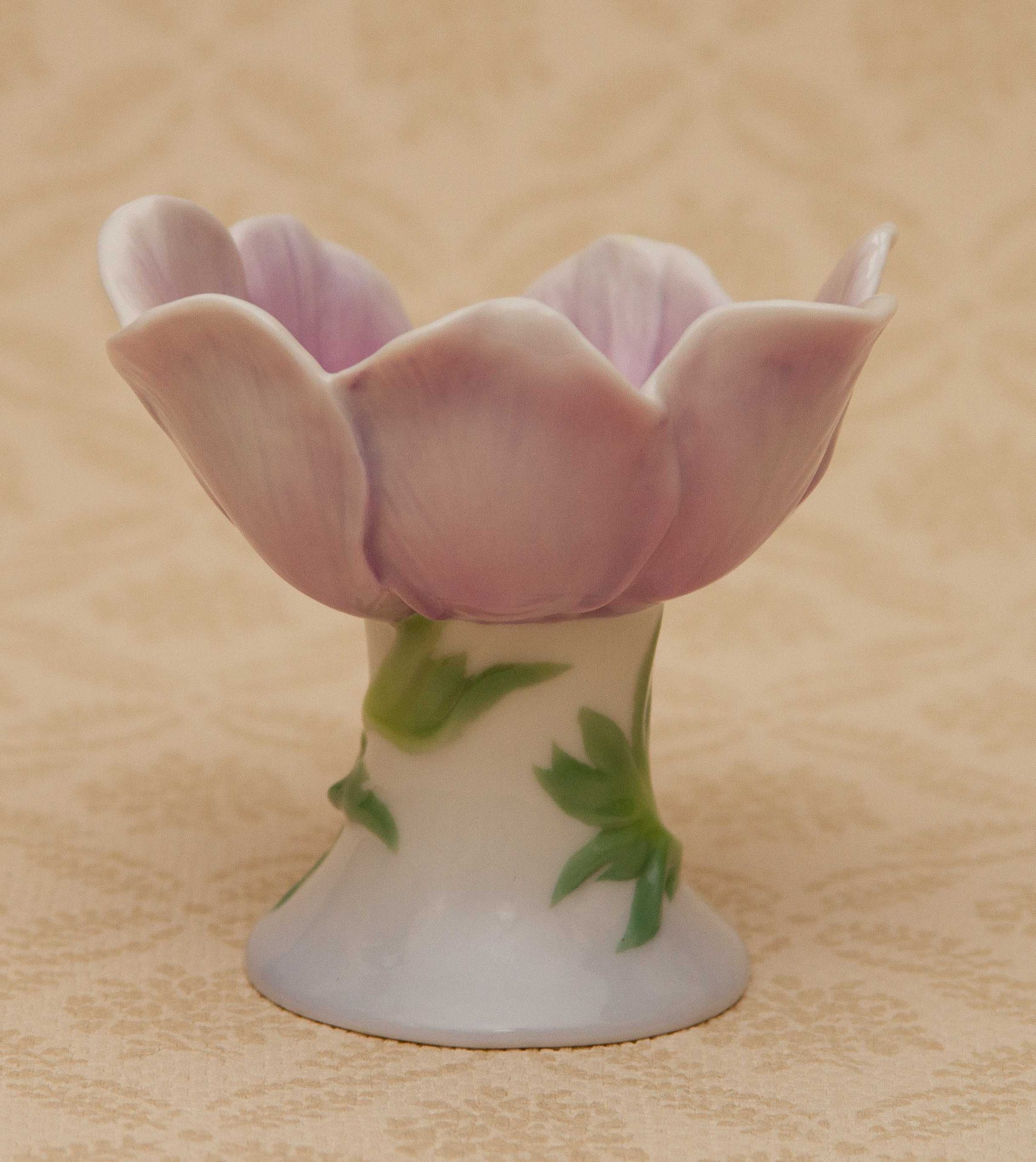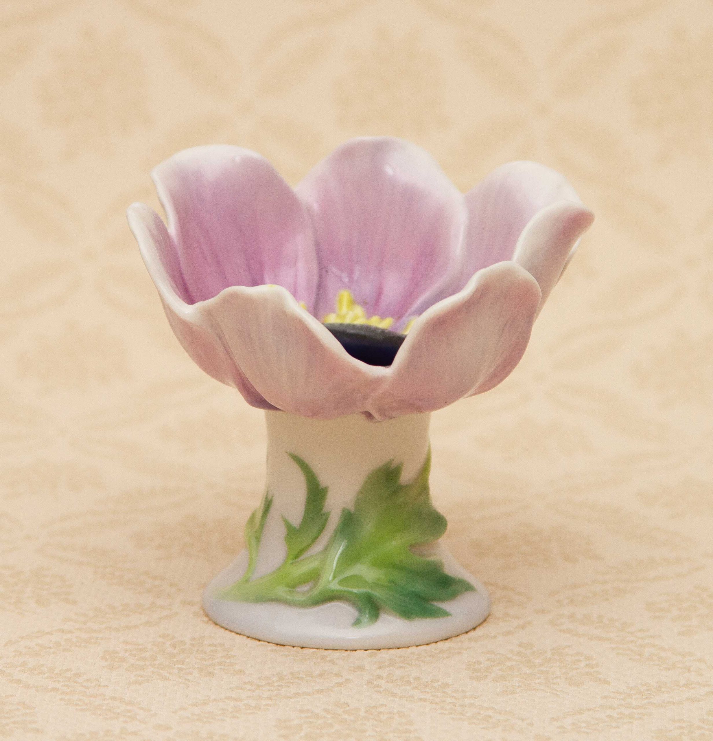 A Franz Collection porcelain Anemone flower candle holder. Signed on the base.