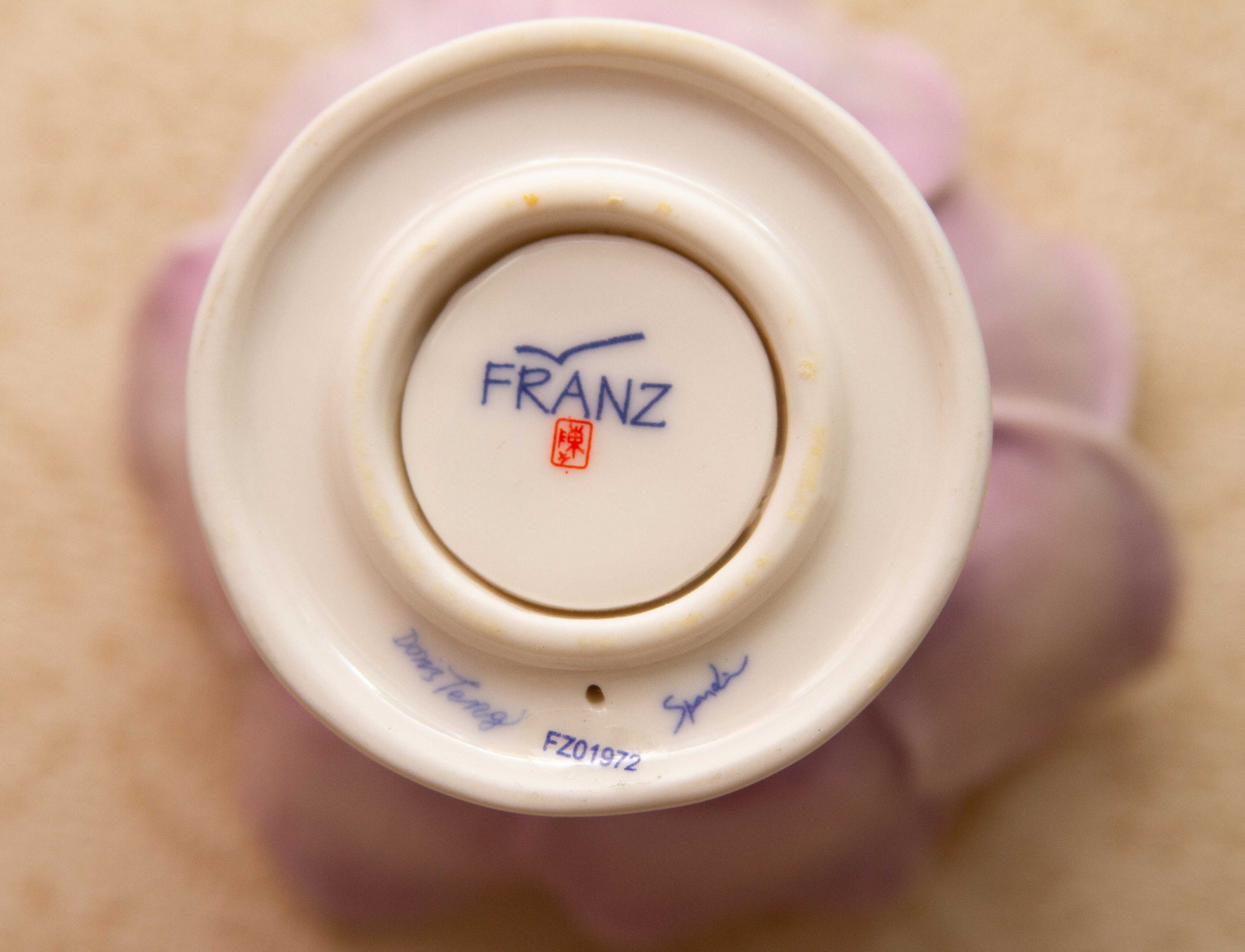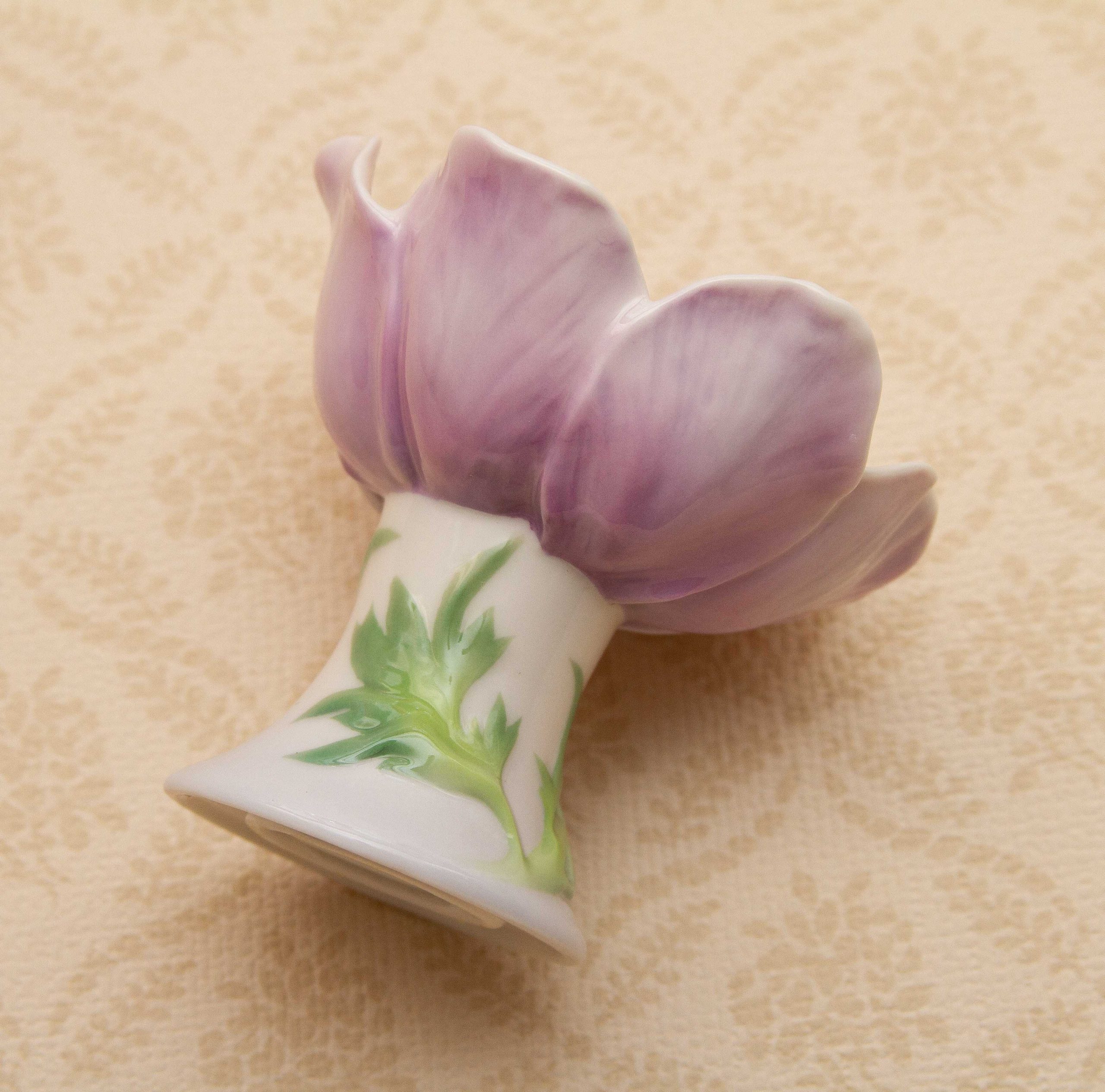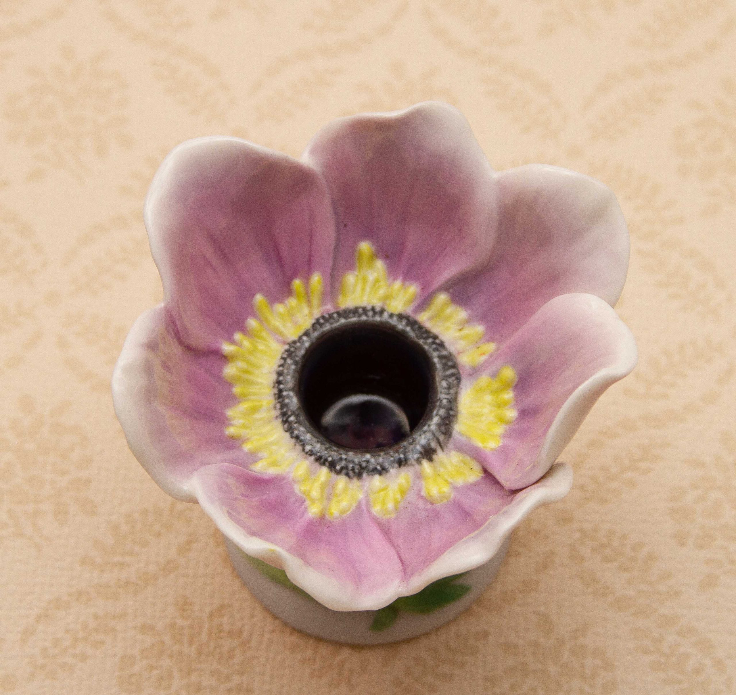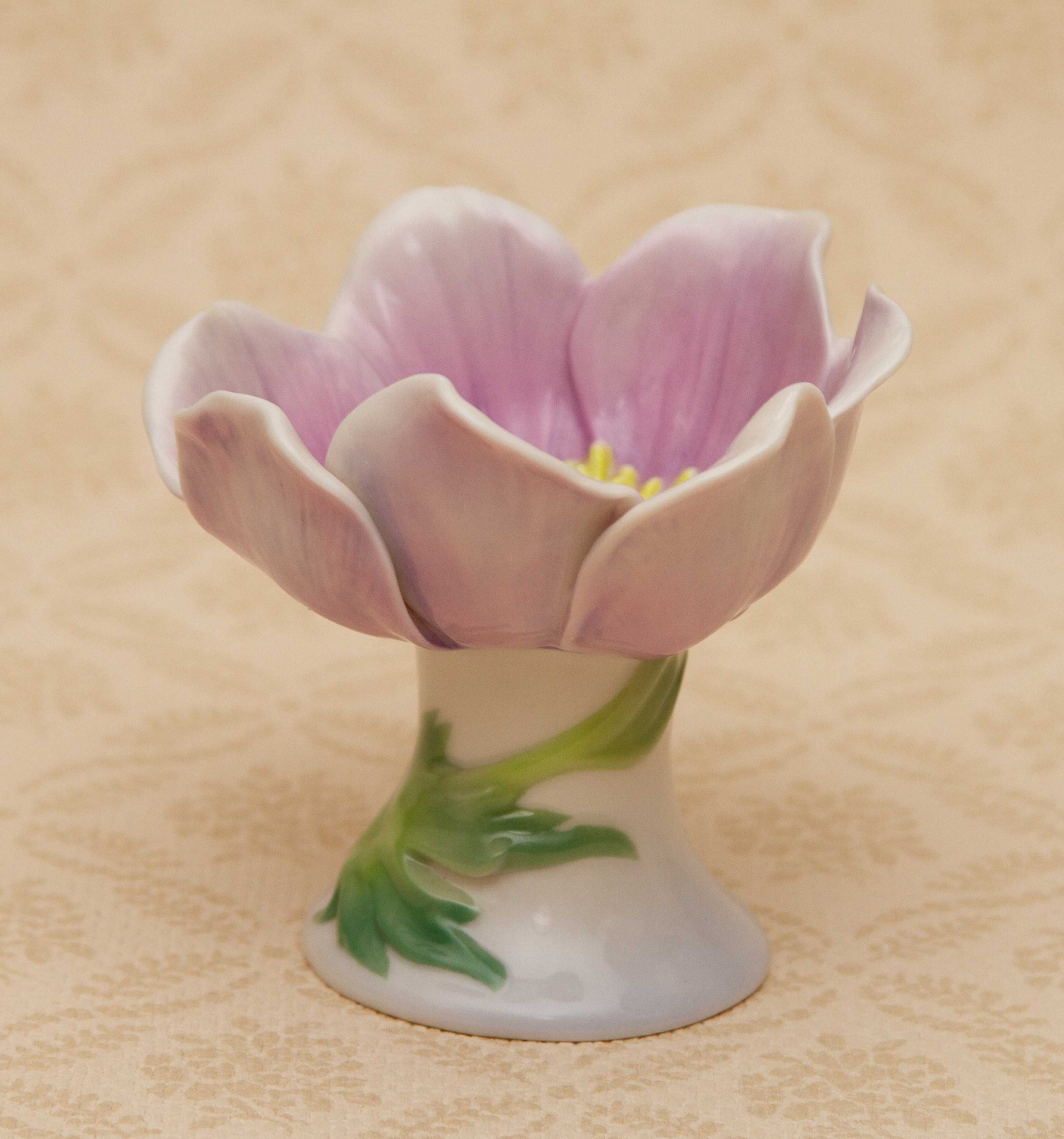 A Franz Collection porcelain Anemone flower candle holder. Signed on the base.