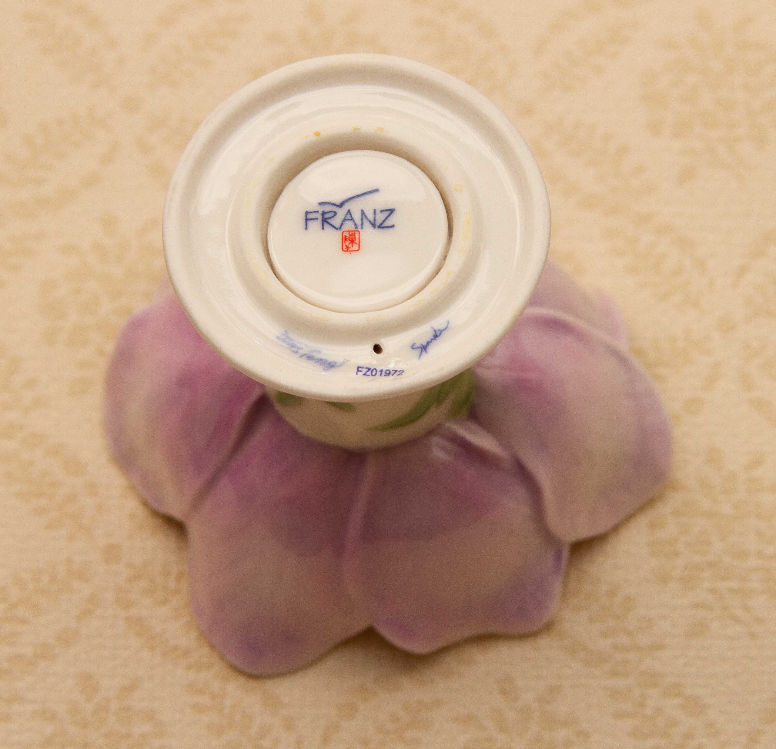Franz Collection Porcelain Anemone Flower Candlestick, Candle Holder, Collectable Signed