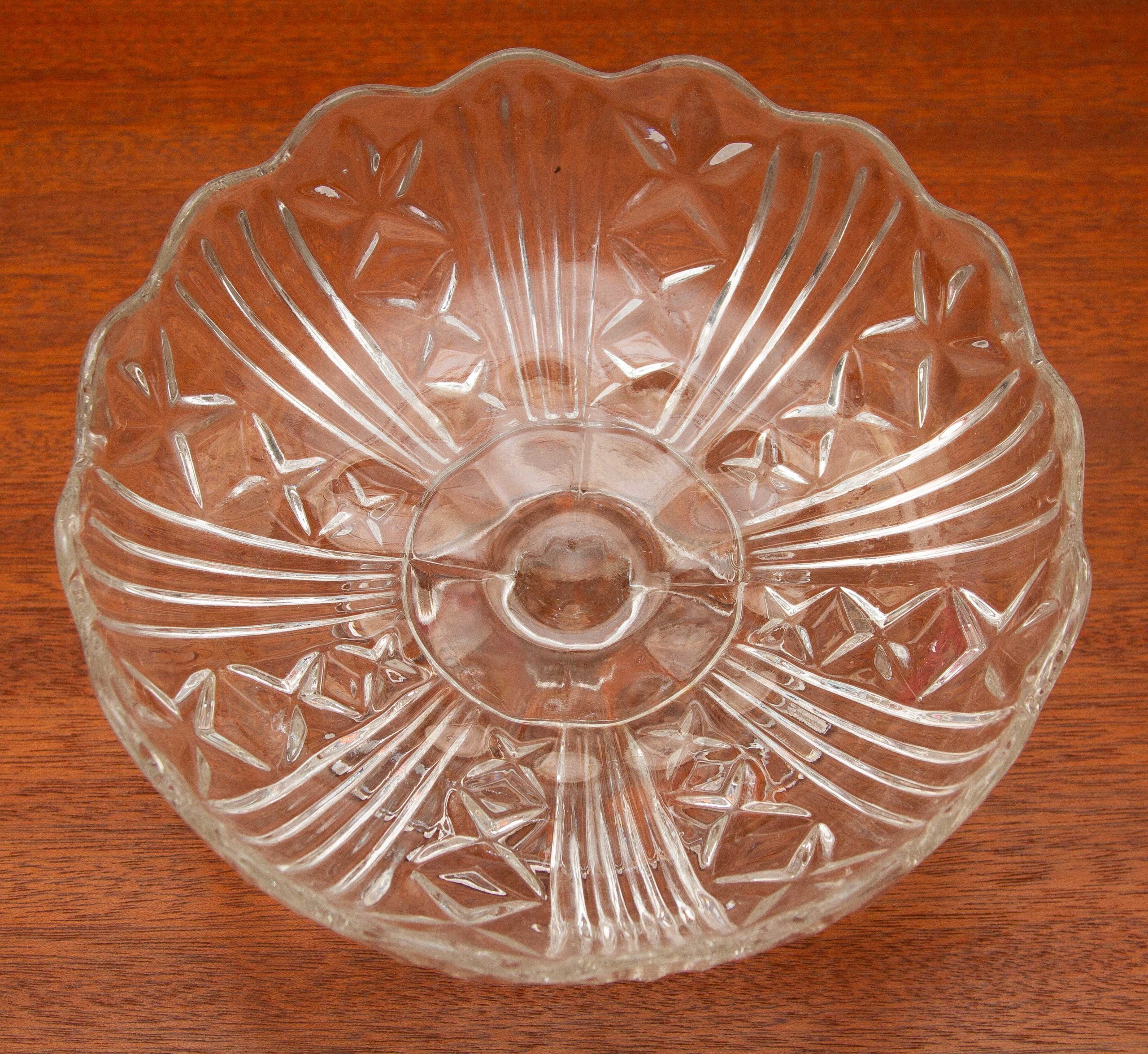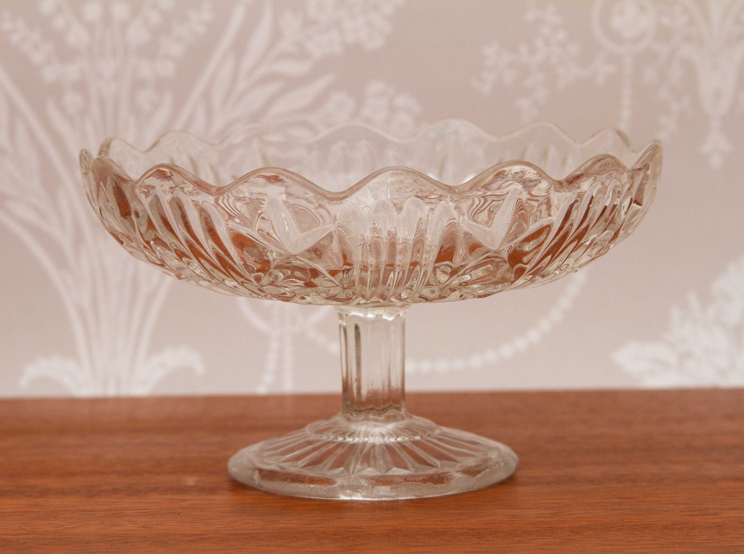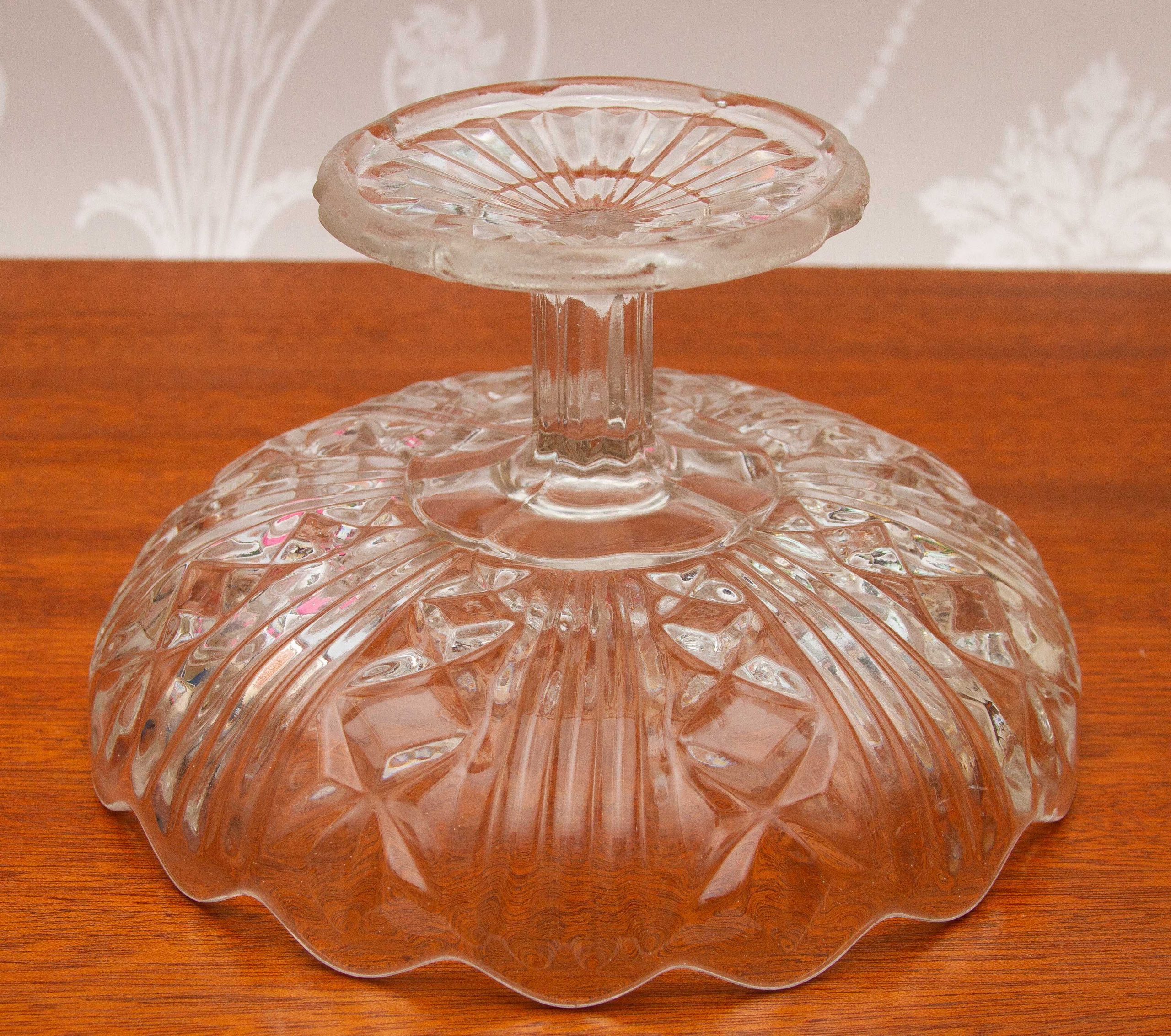 A vintage glass Tazza or comport, shallow footed dish. Suitable for cakes, pastries, Bon Bons, or fruit.