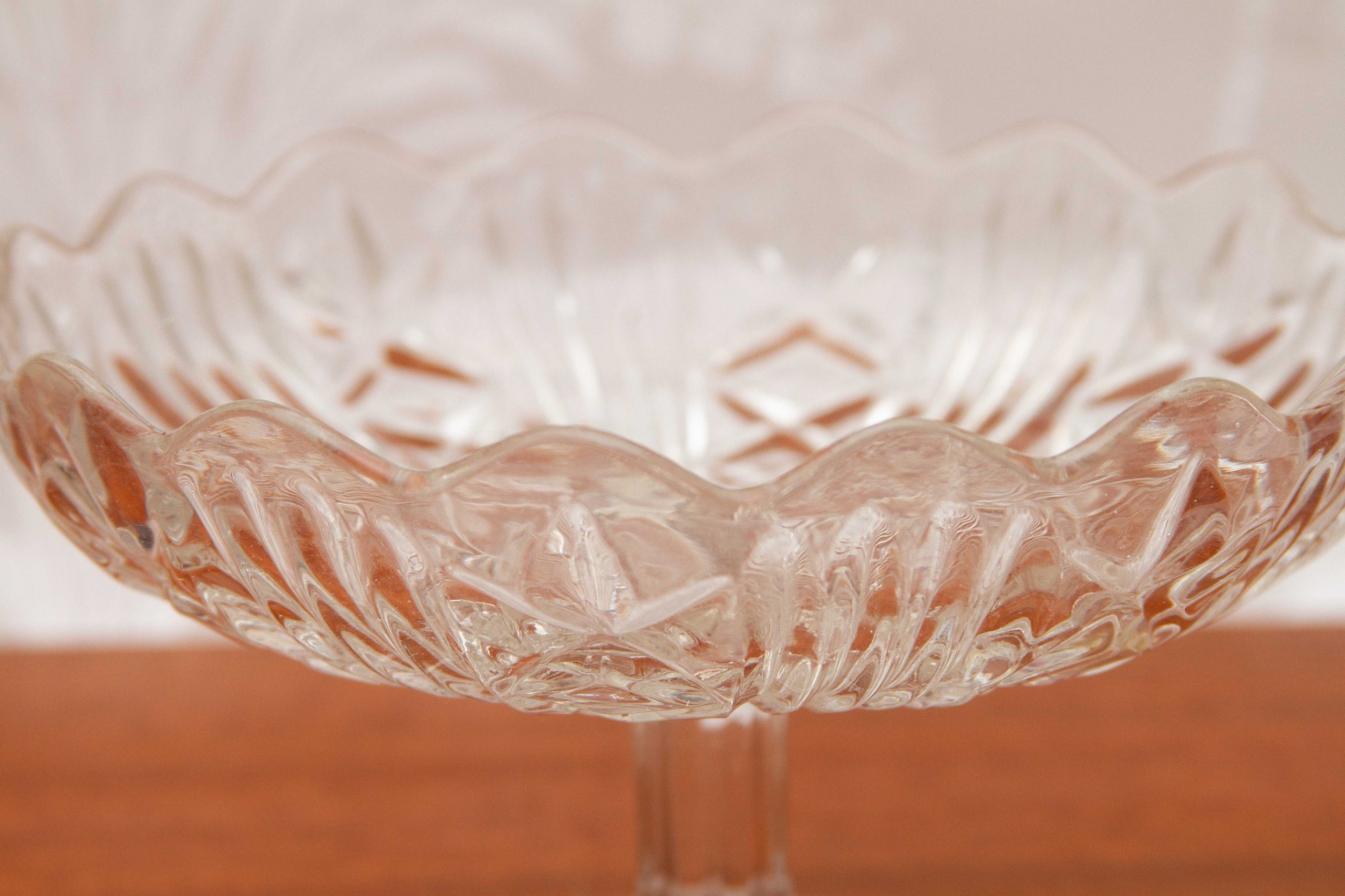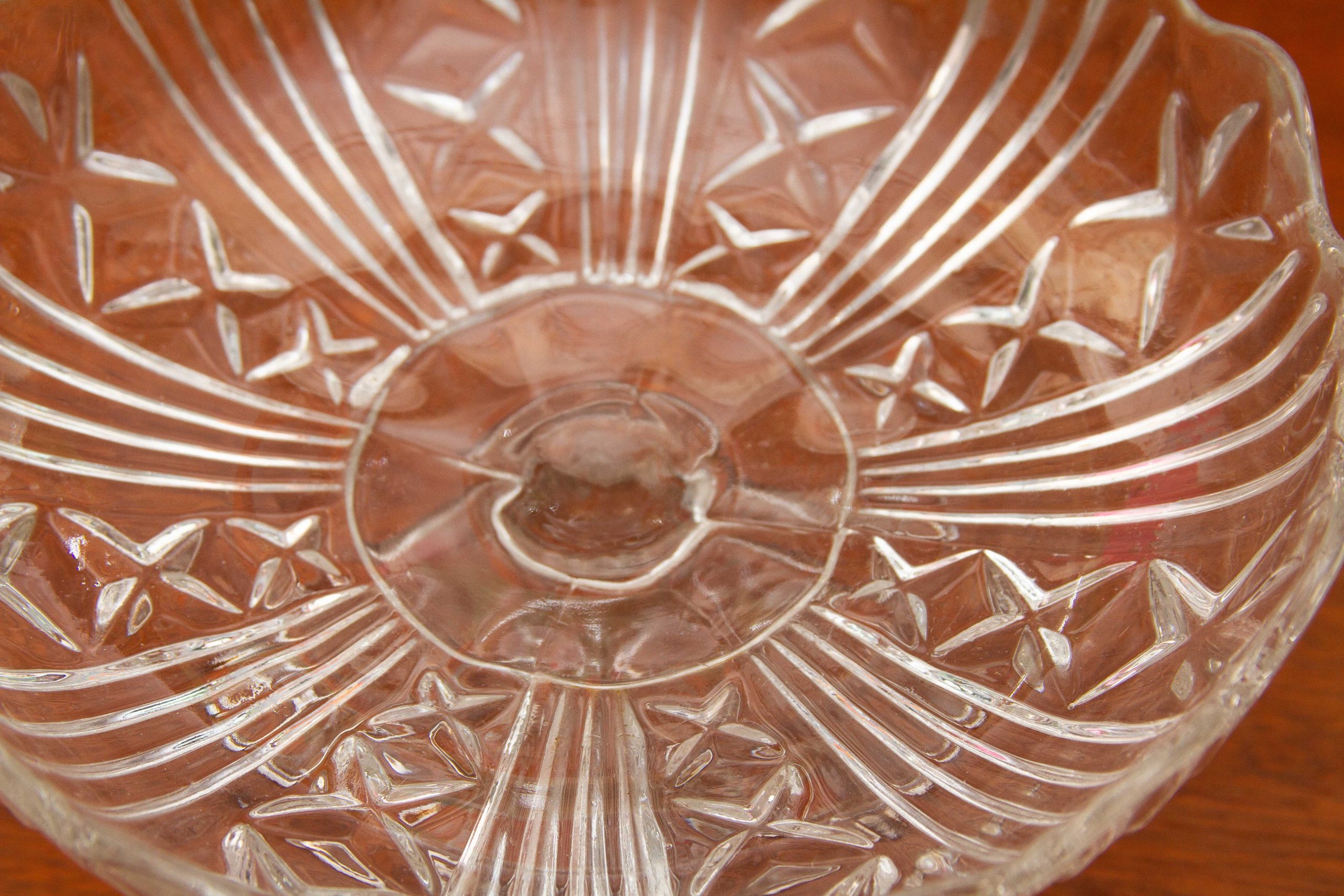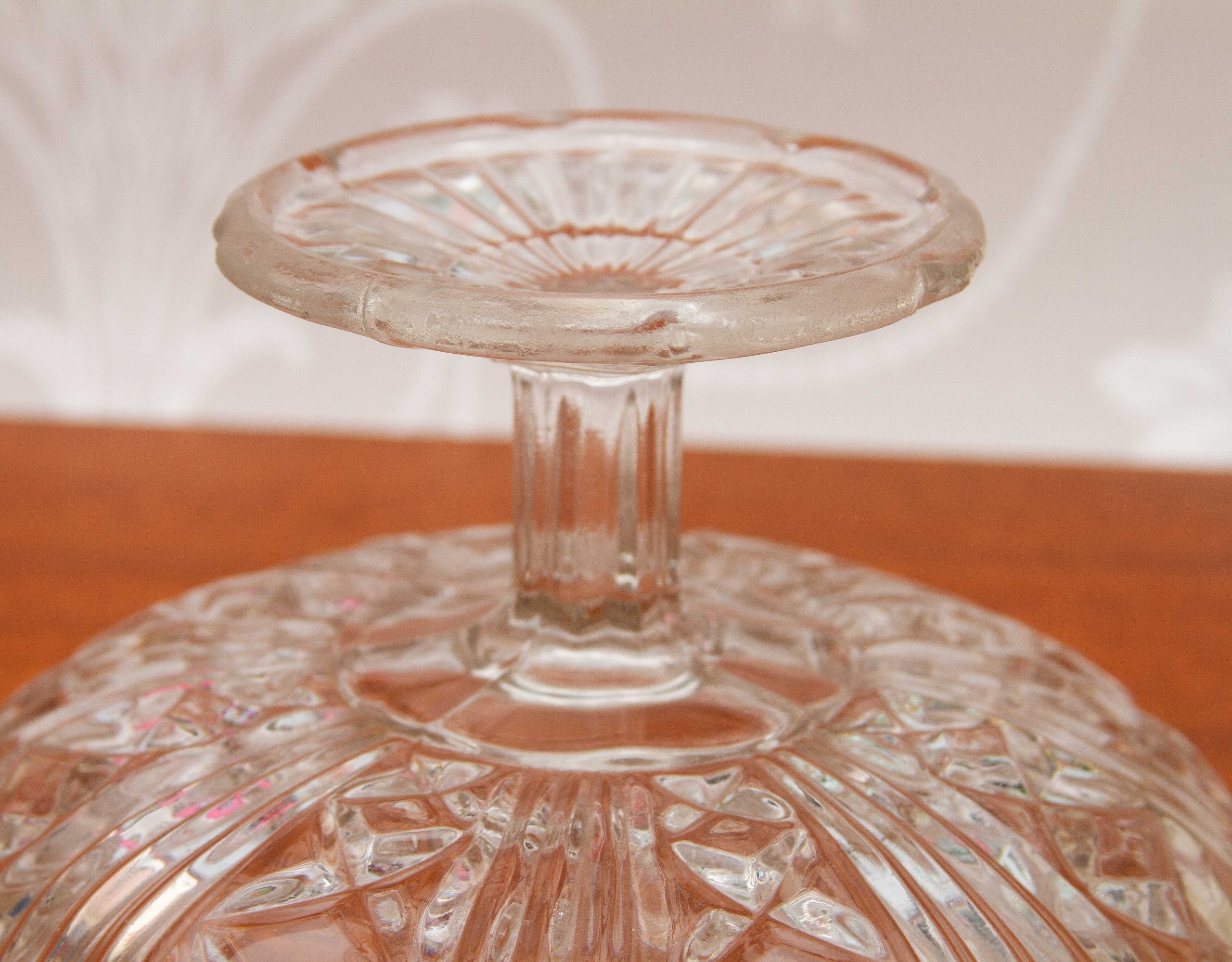 A vintage glass Tazza or comport, shallow footed dish. Suitable for cakes, pastries, Bon Bons, or fruit.
