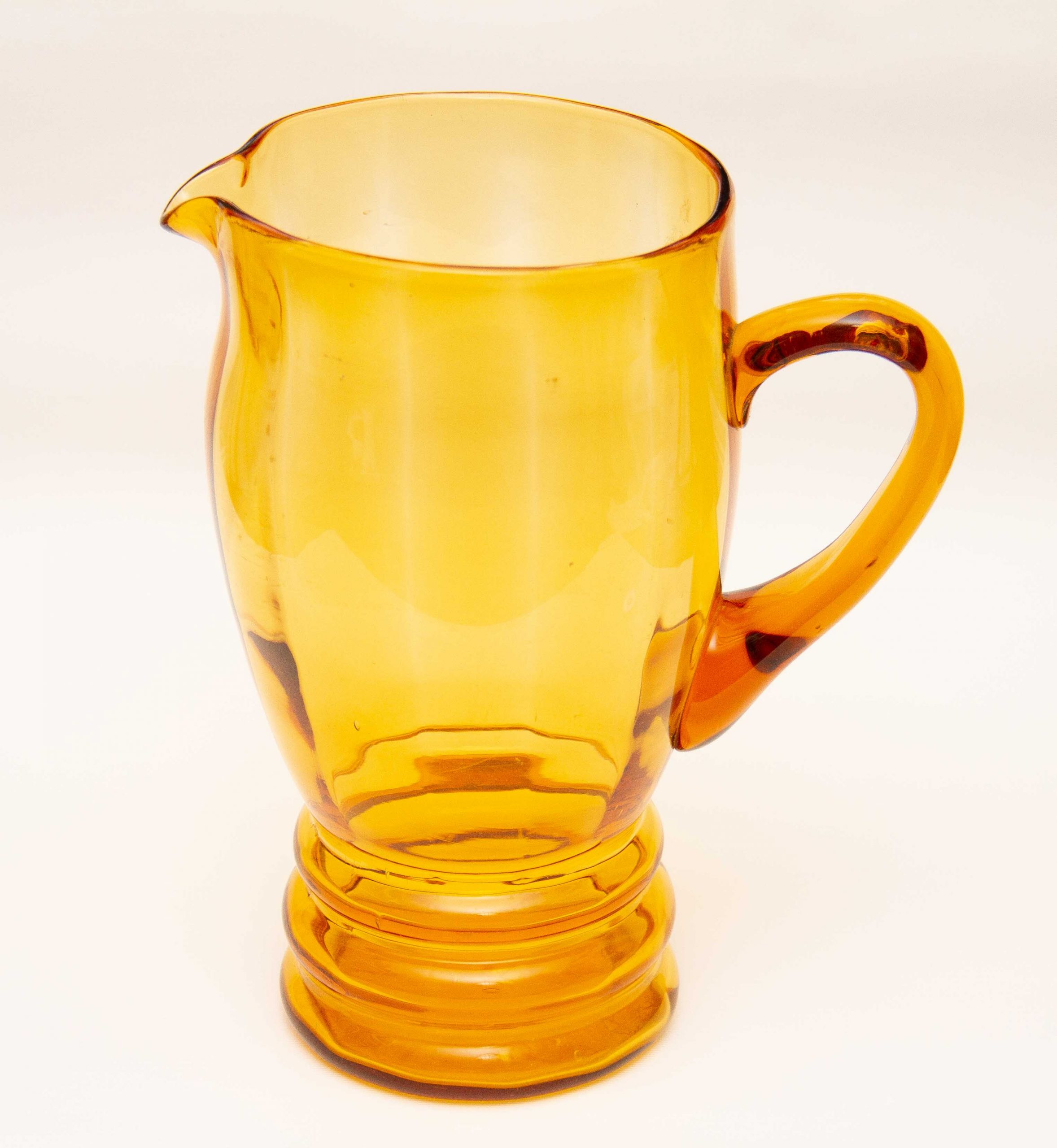 A large vintage amber glass pitcher/jug. Suitable for water, fruit juice or cocktails.