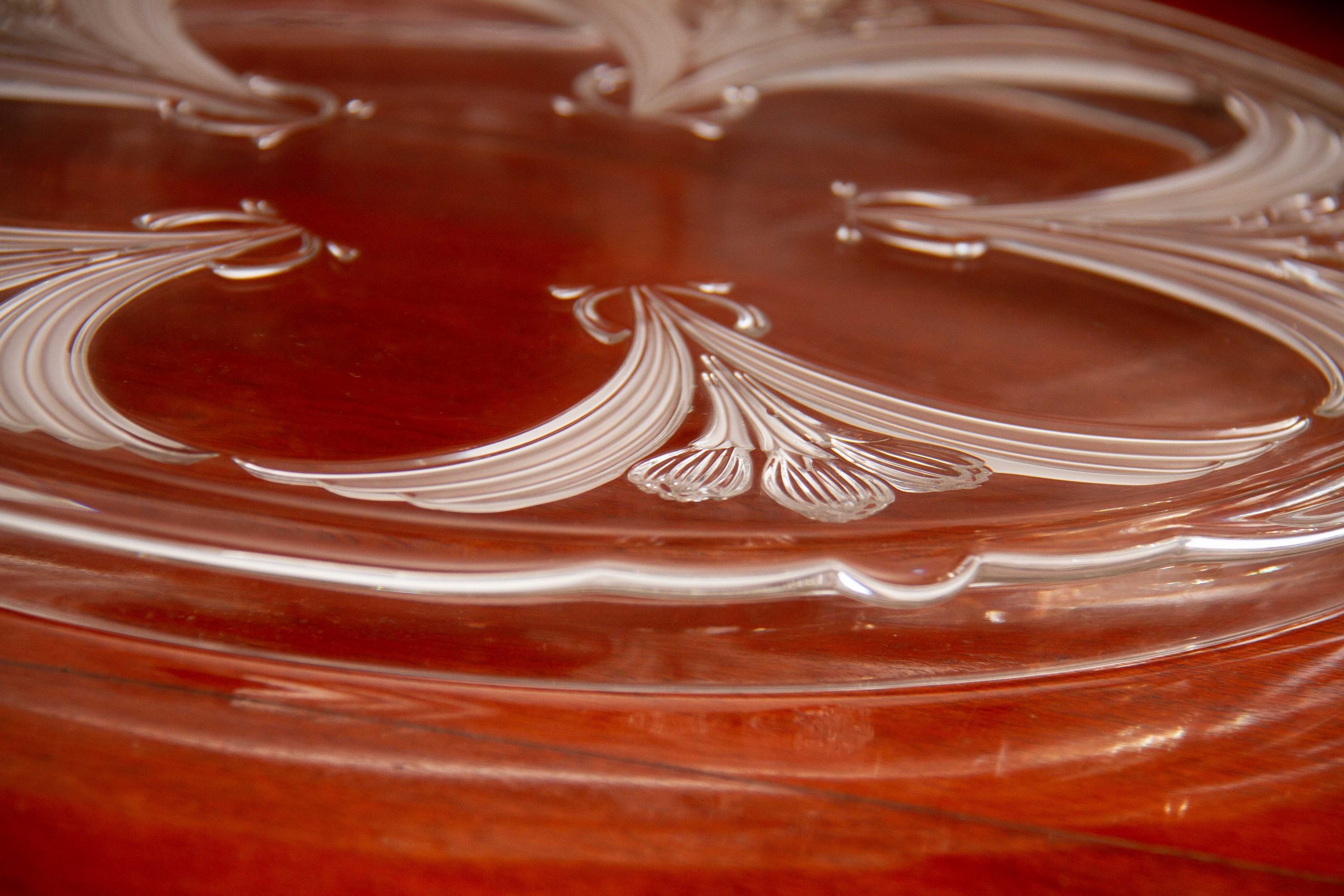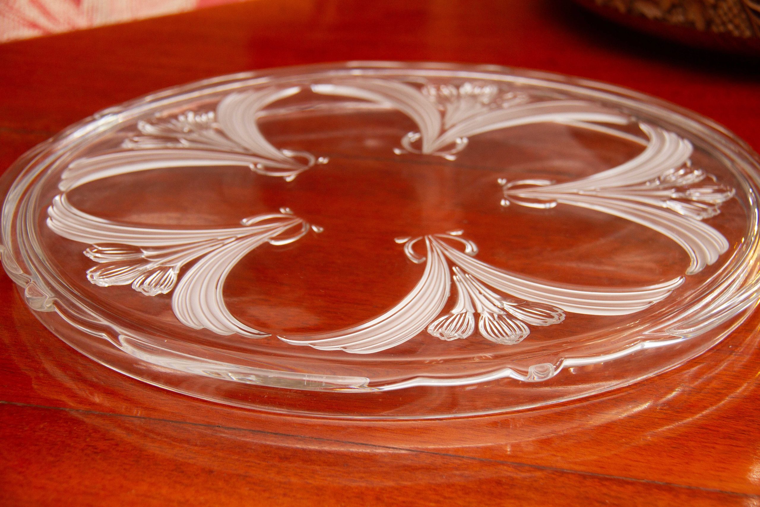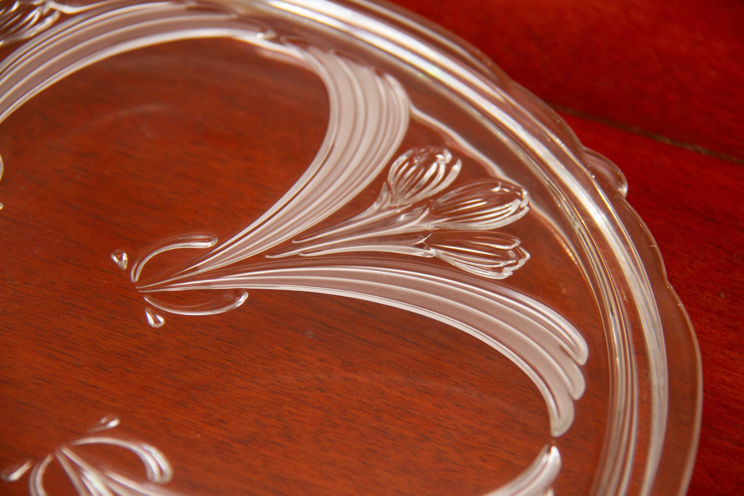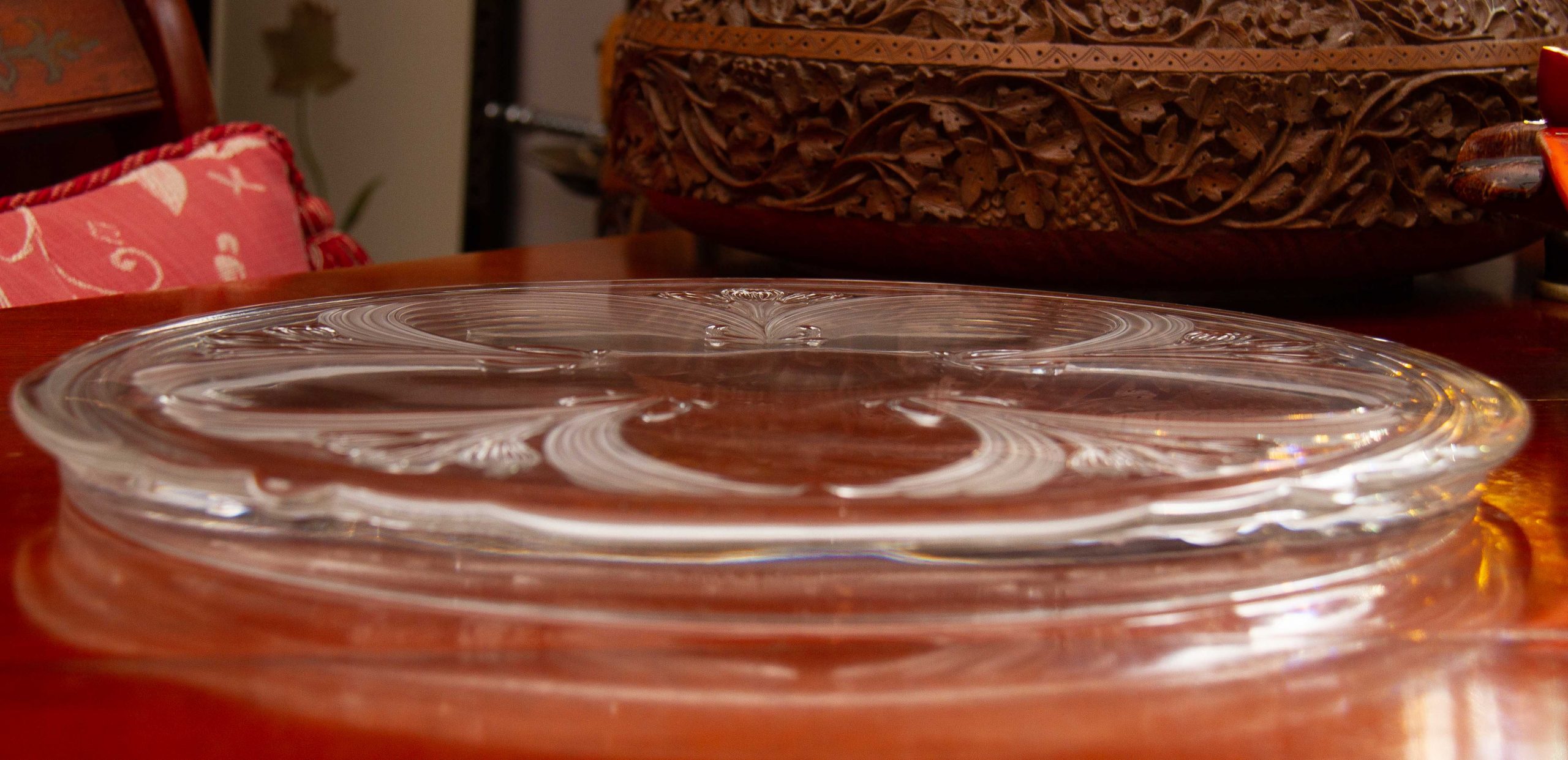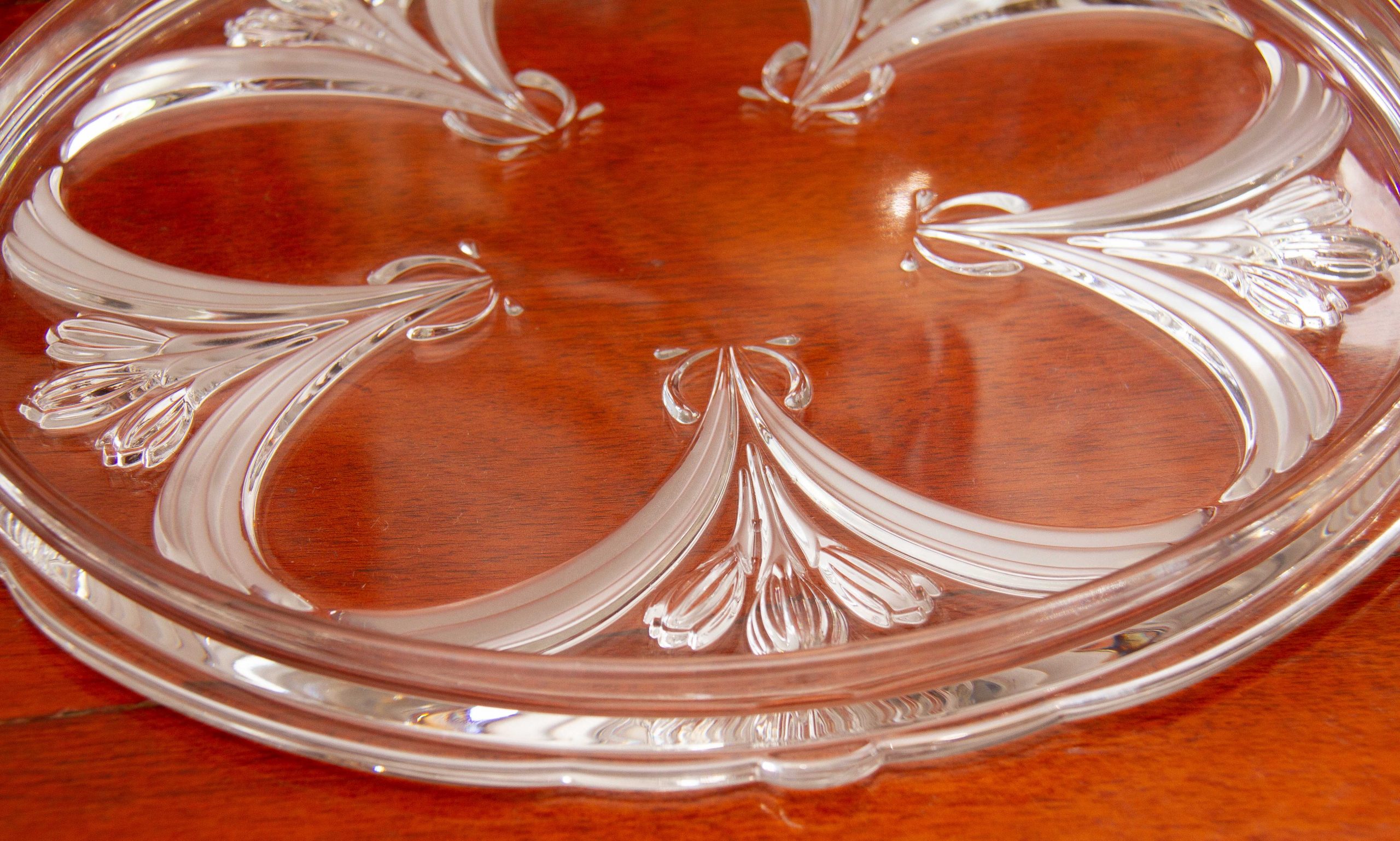 A beautiful large Art Deco clear glass raised cake plate. Perfect for a Christmas cake, Weddings or any special occasion.