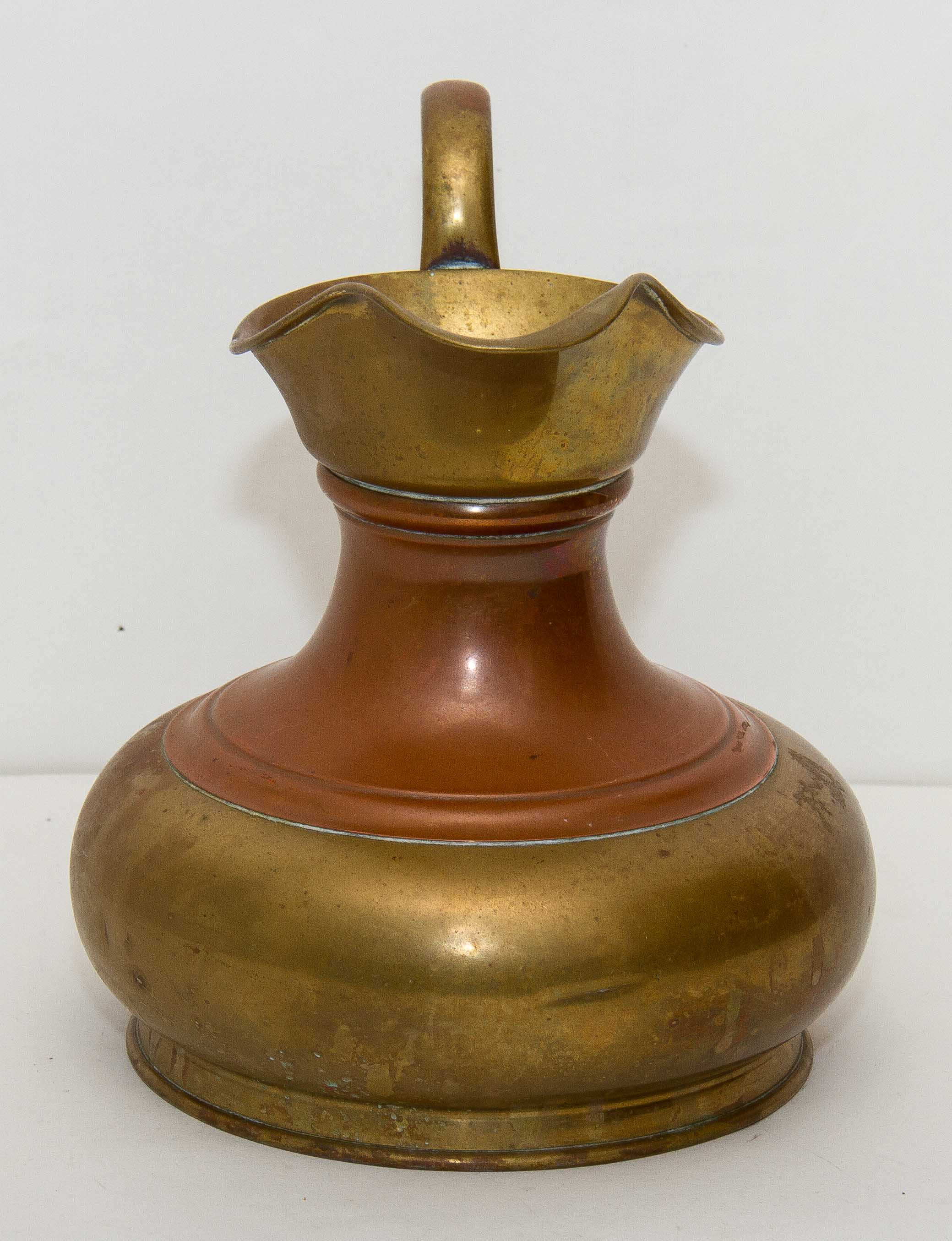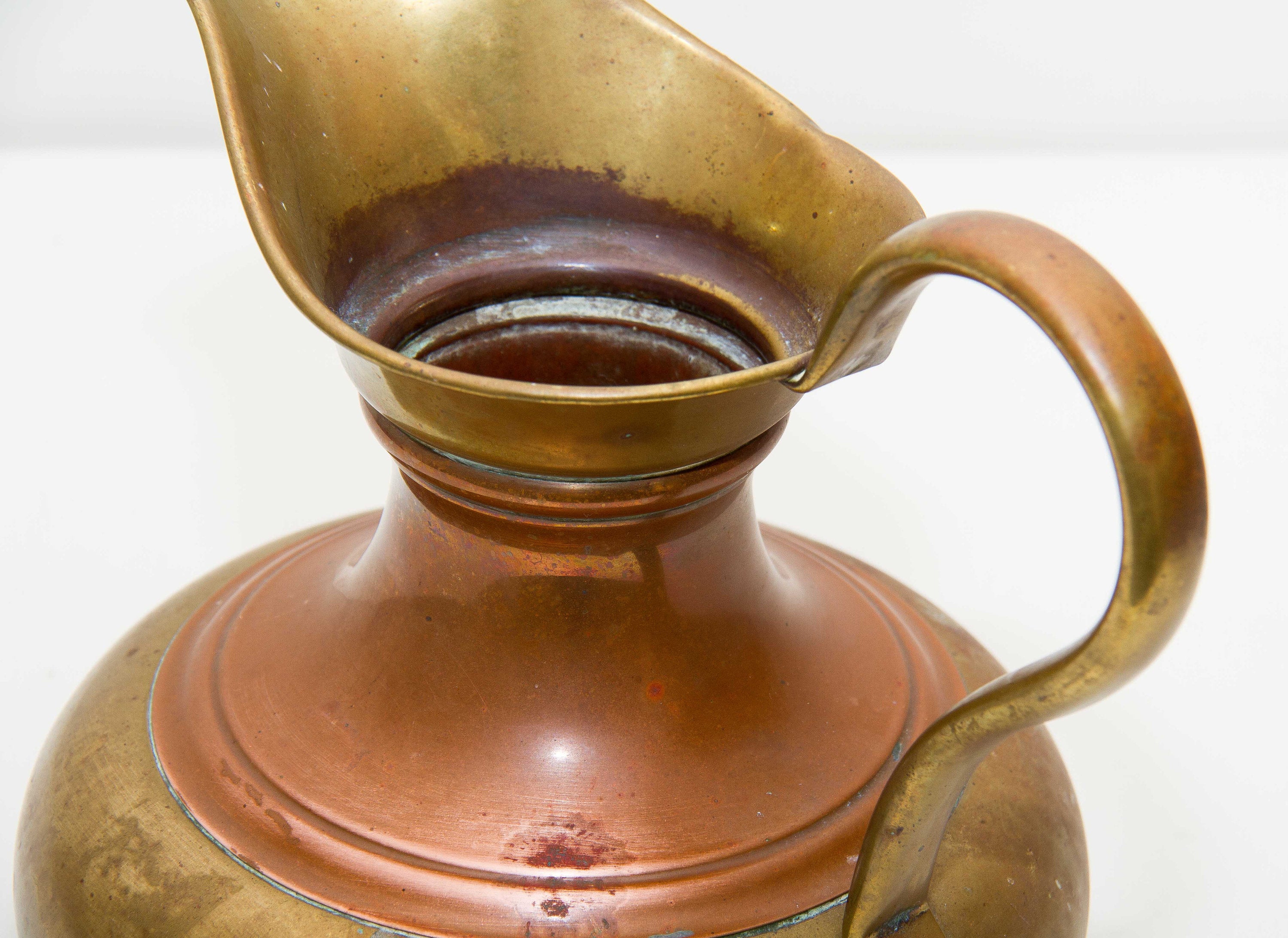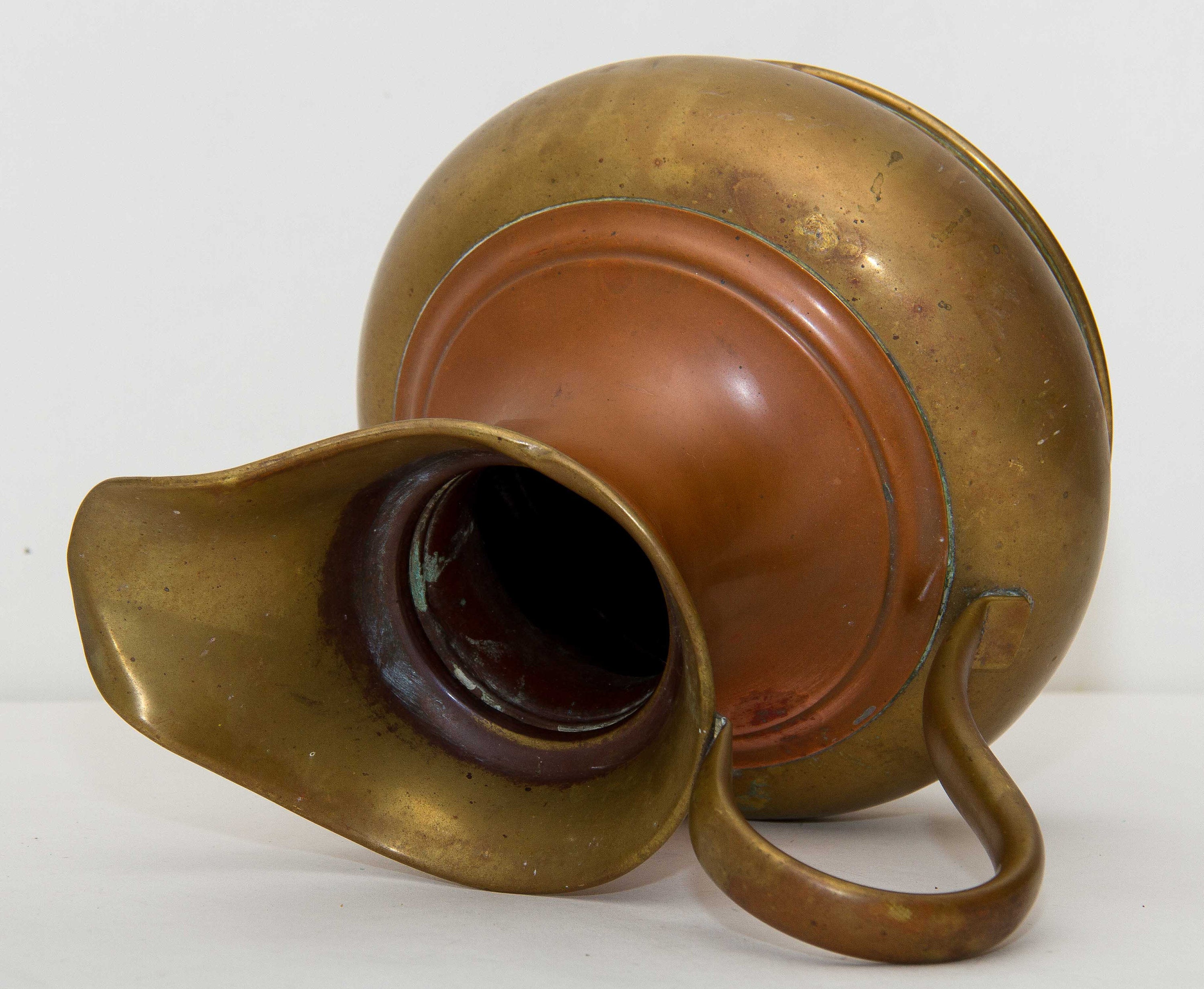 Large brass jug with wide copper band brass spout and handle display prop bar pub cafe restaurant shop vintage metalware
