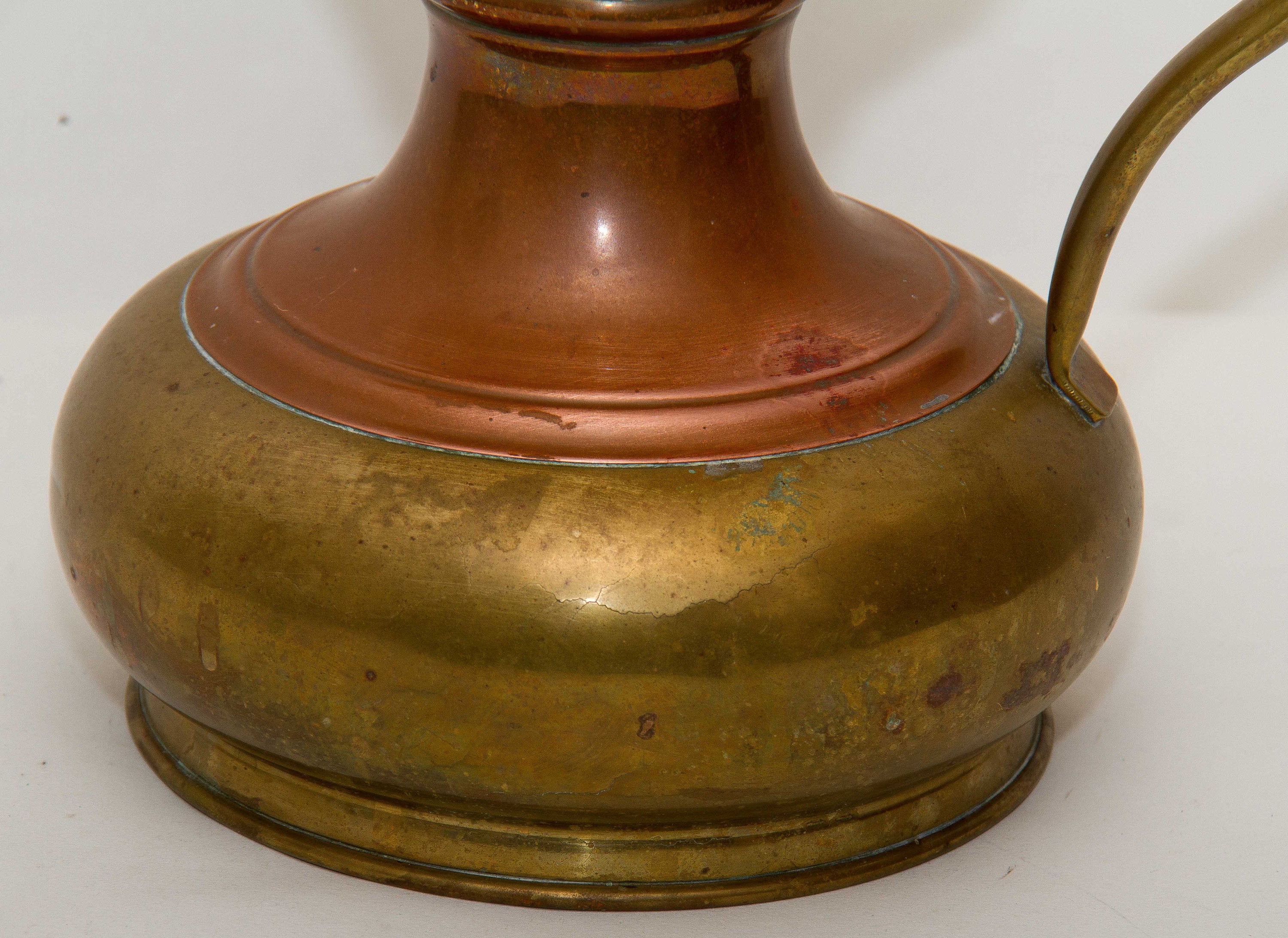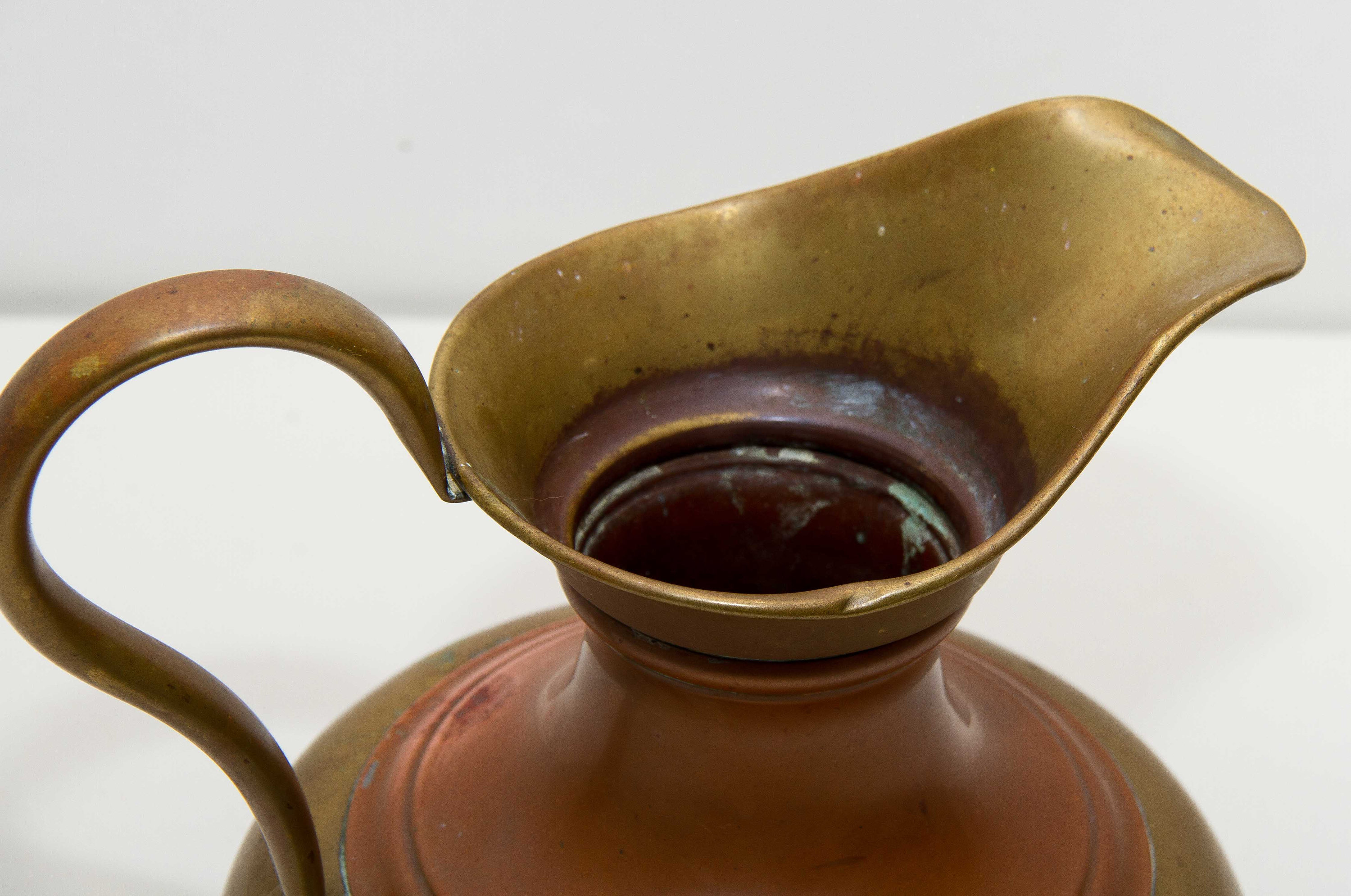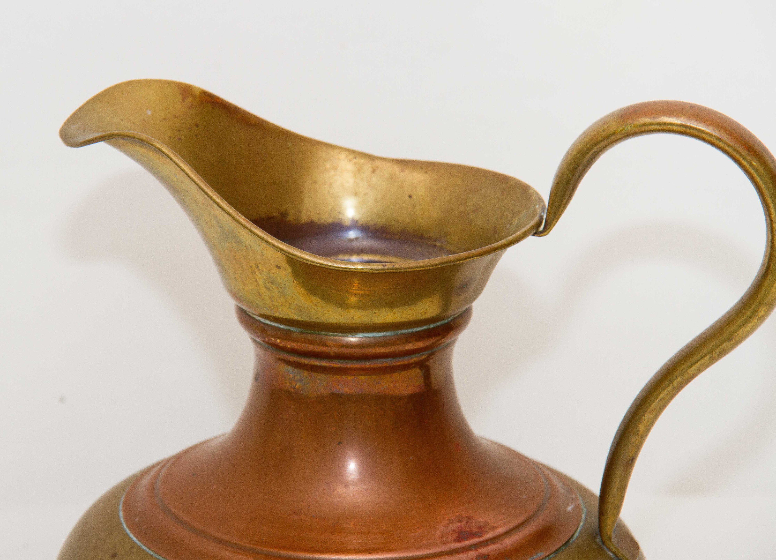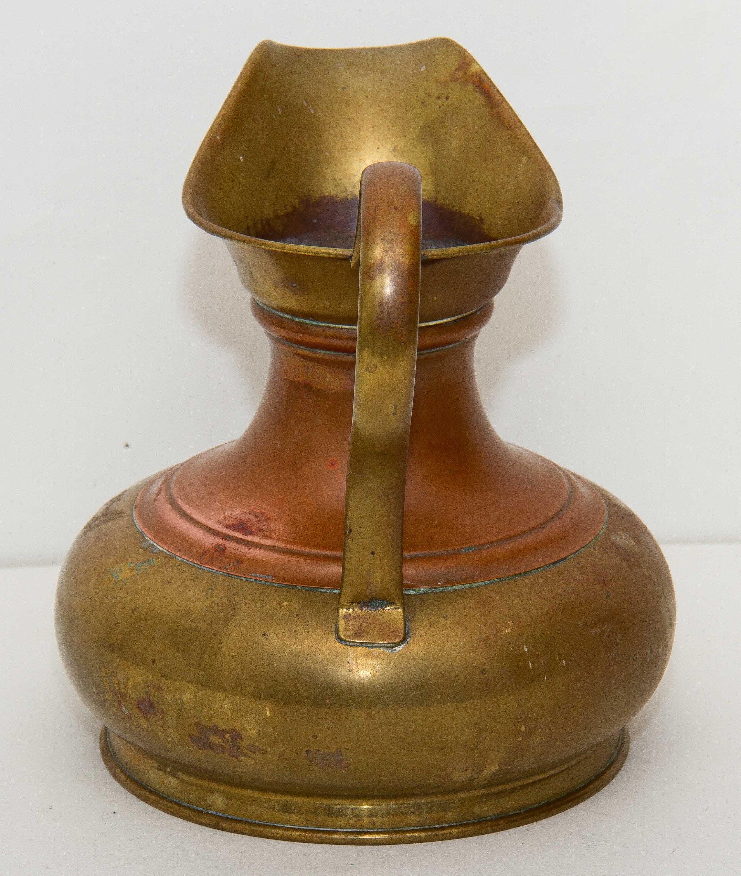 Large brass jug with wide copper band brass spout and handle display prop bar pub cafe restaurant shop vintage metalware