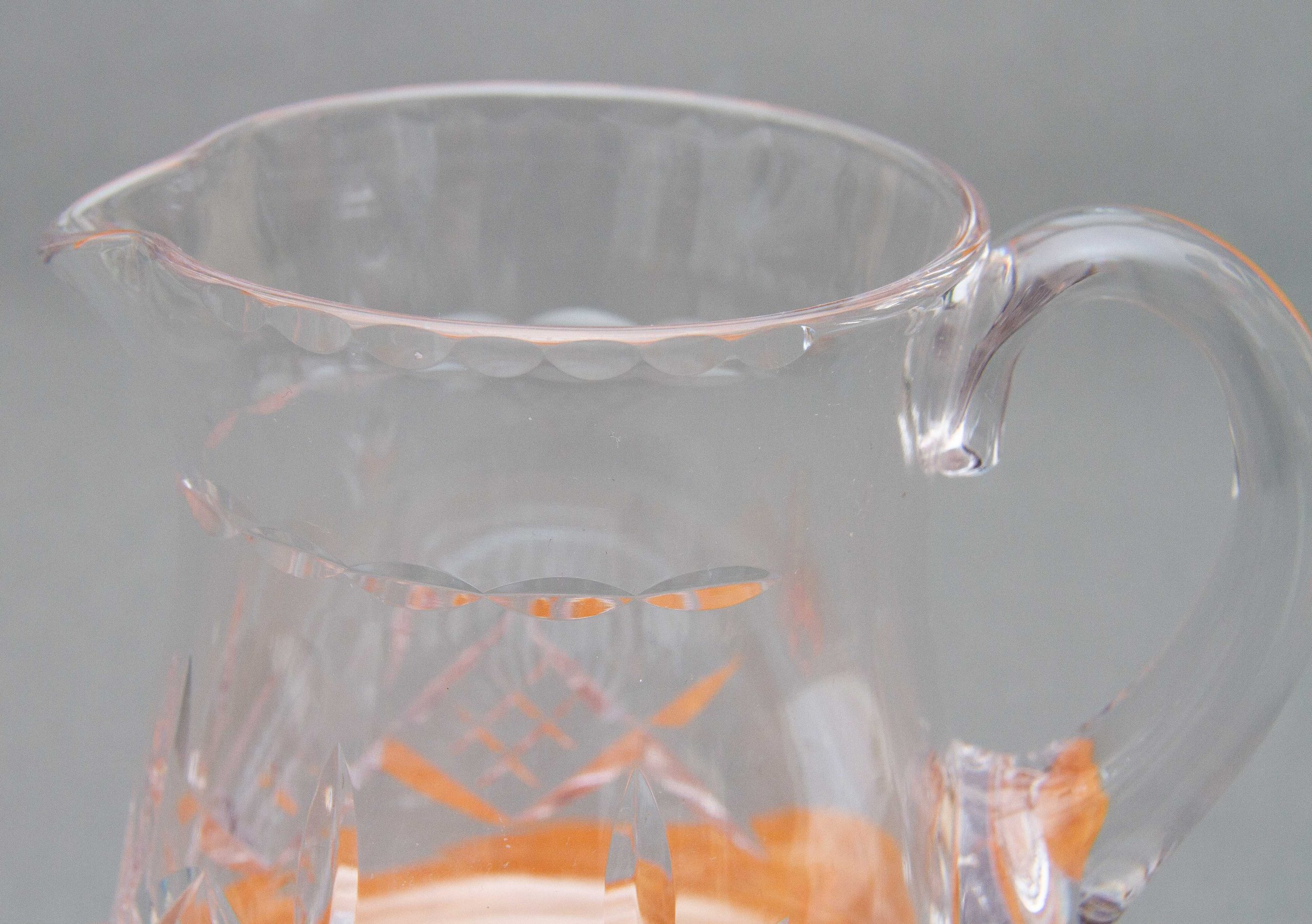 A beautiful large clear vintage glass Jug/Pitcher. Heavy glass decorative jug, could be used for serving fruit or water, or would look fabulous as a vase.