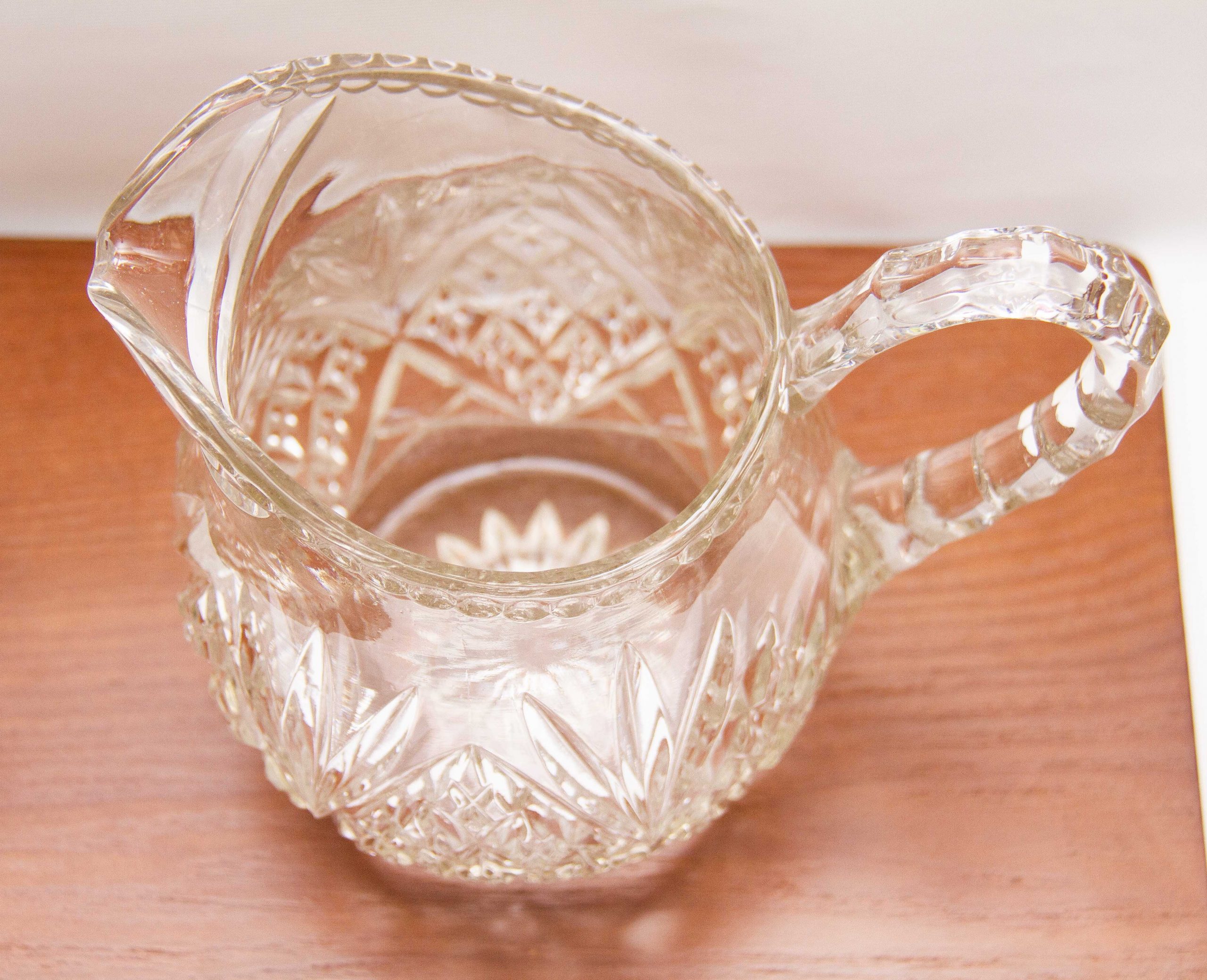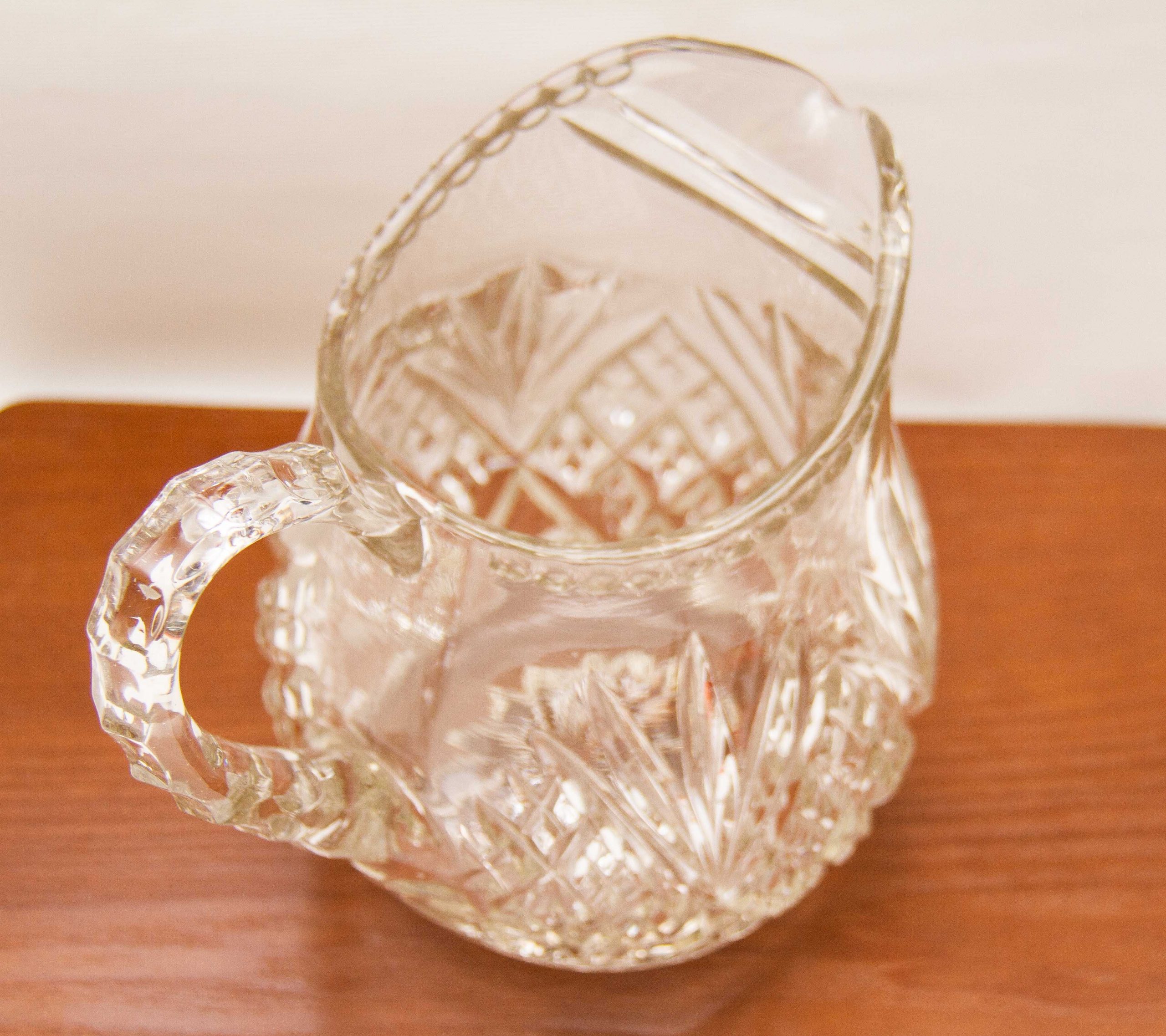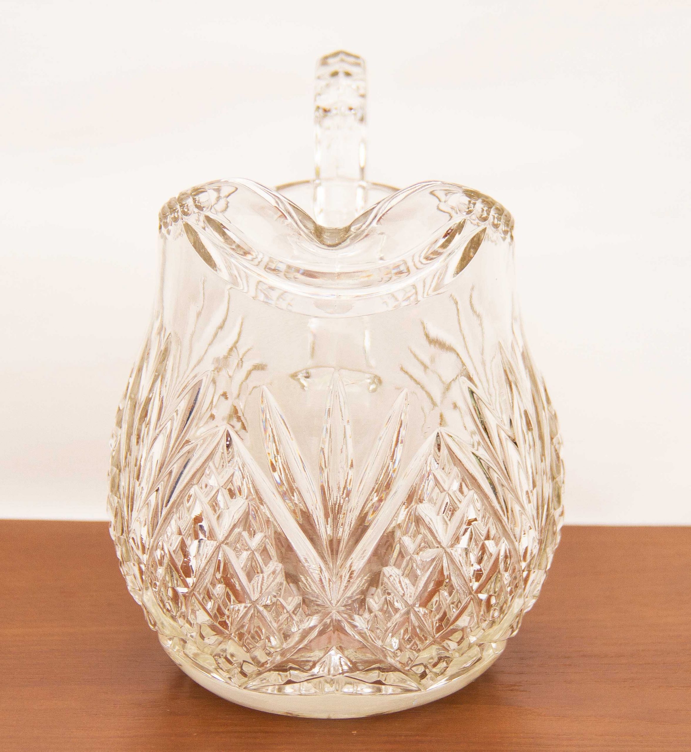 A beautiful large vintage clear glass Jug/Pitcher. Heavy glass decorative jug, could be used for serving fruit or water, or would look fabulous as a vase.