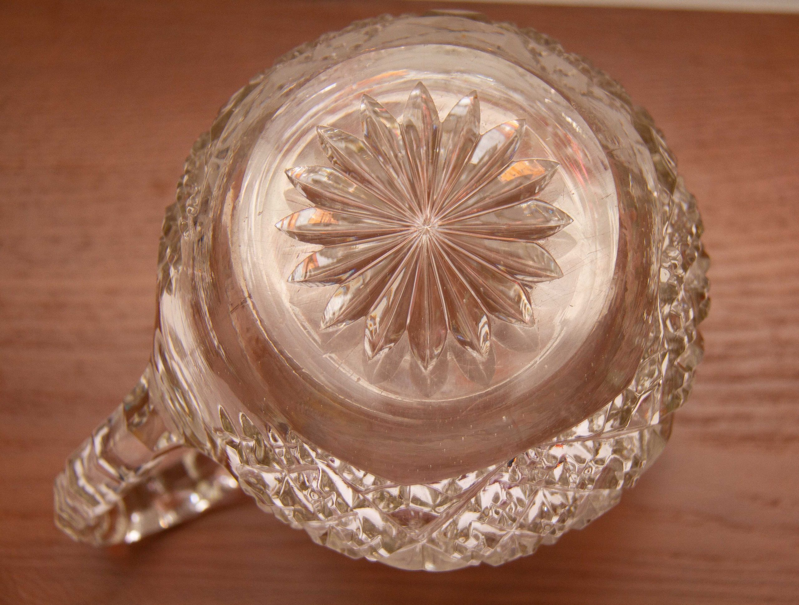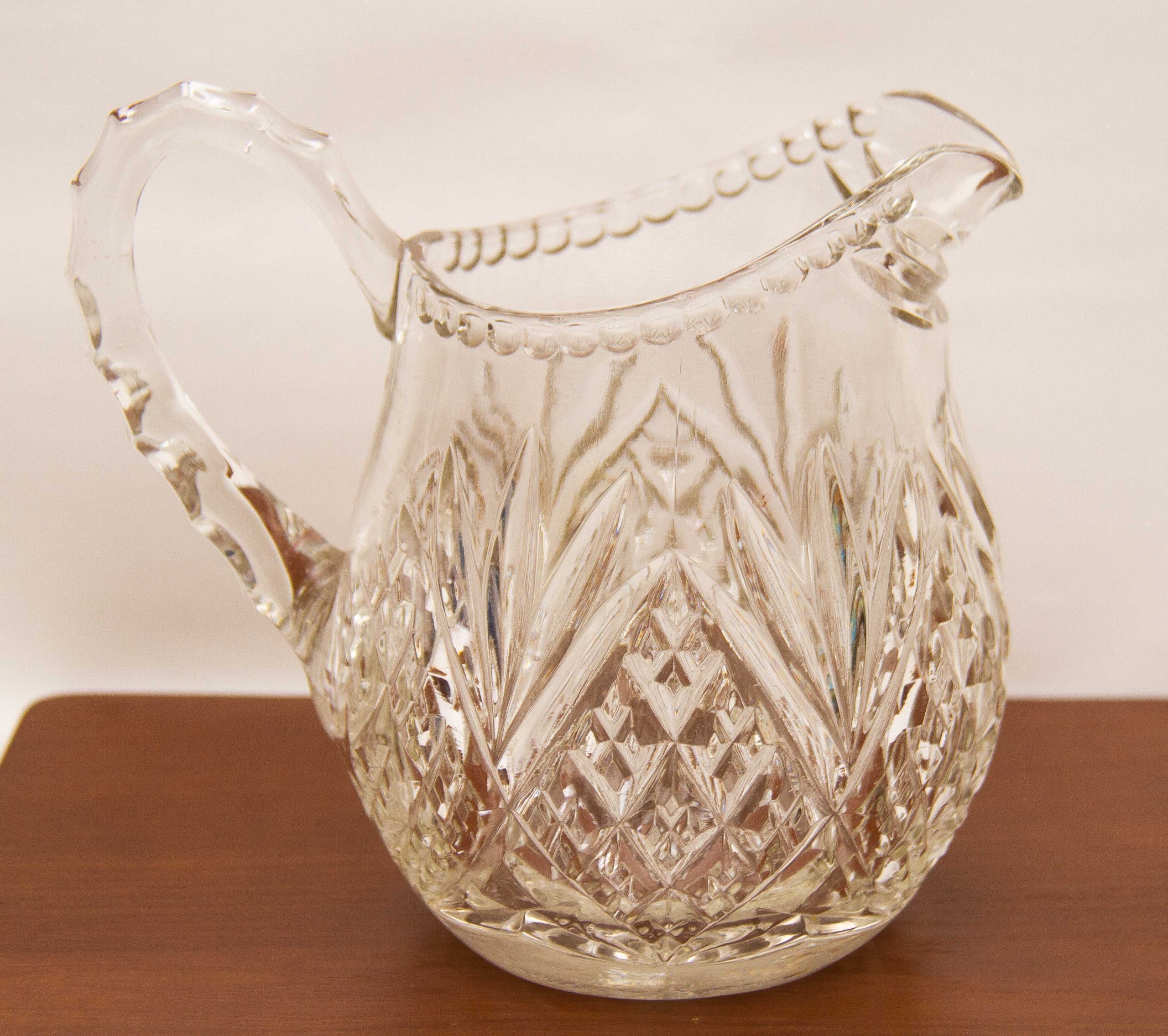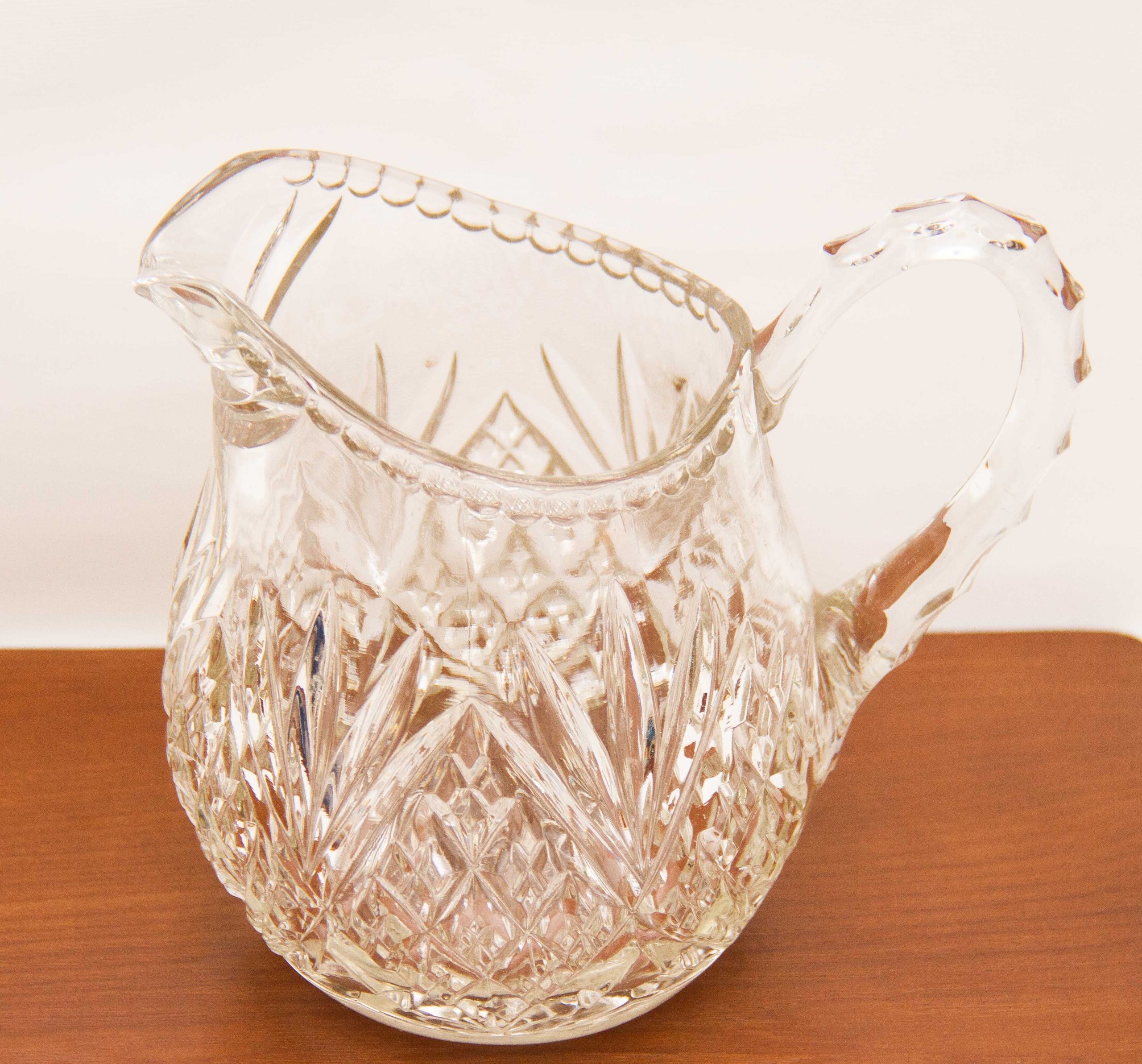 A beautiful large vintage clear glass Jug/Pitcher. Heavy glass decorative jug, could be used for serving fruit or water, or would look fabulous as a vase.