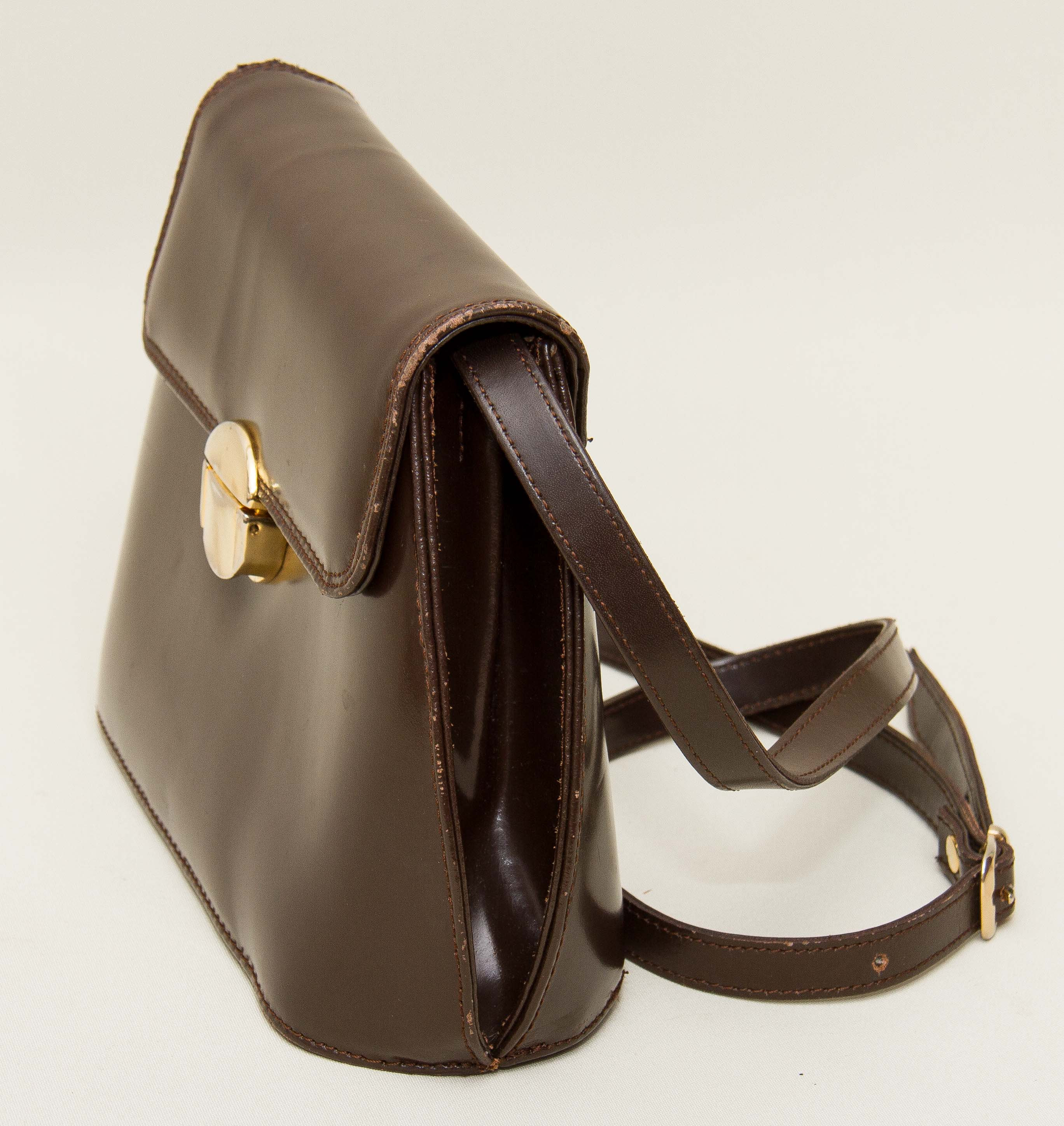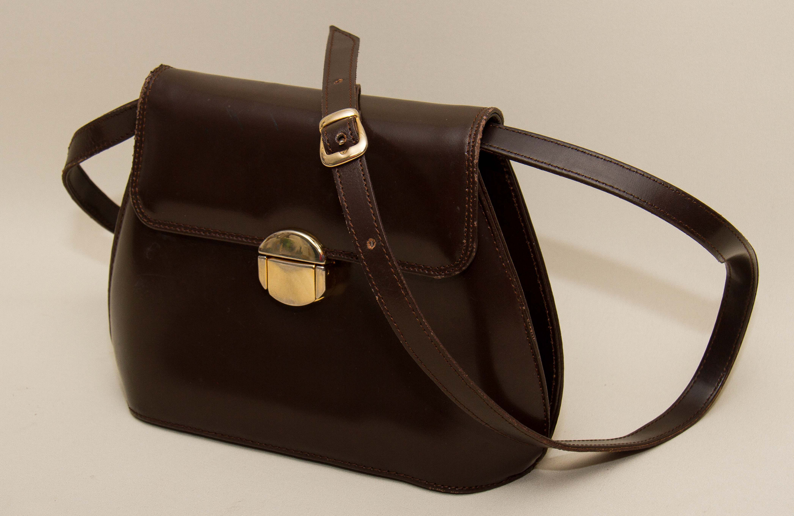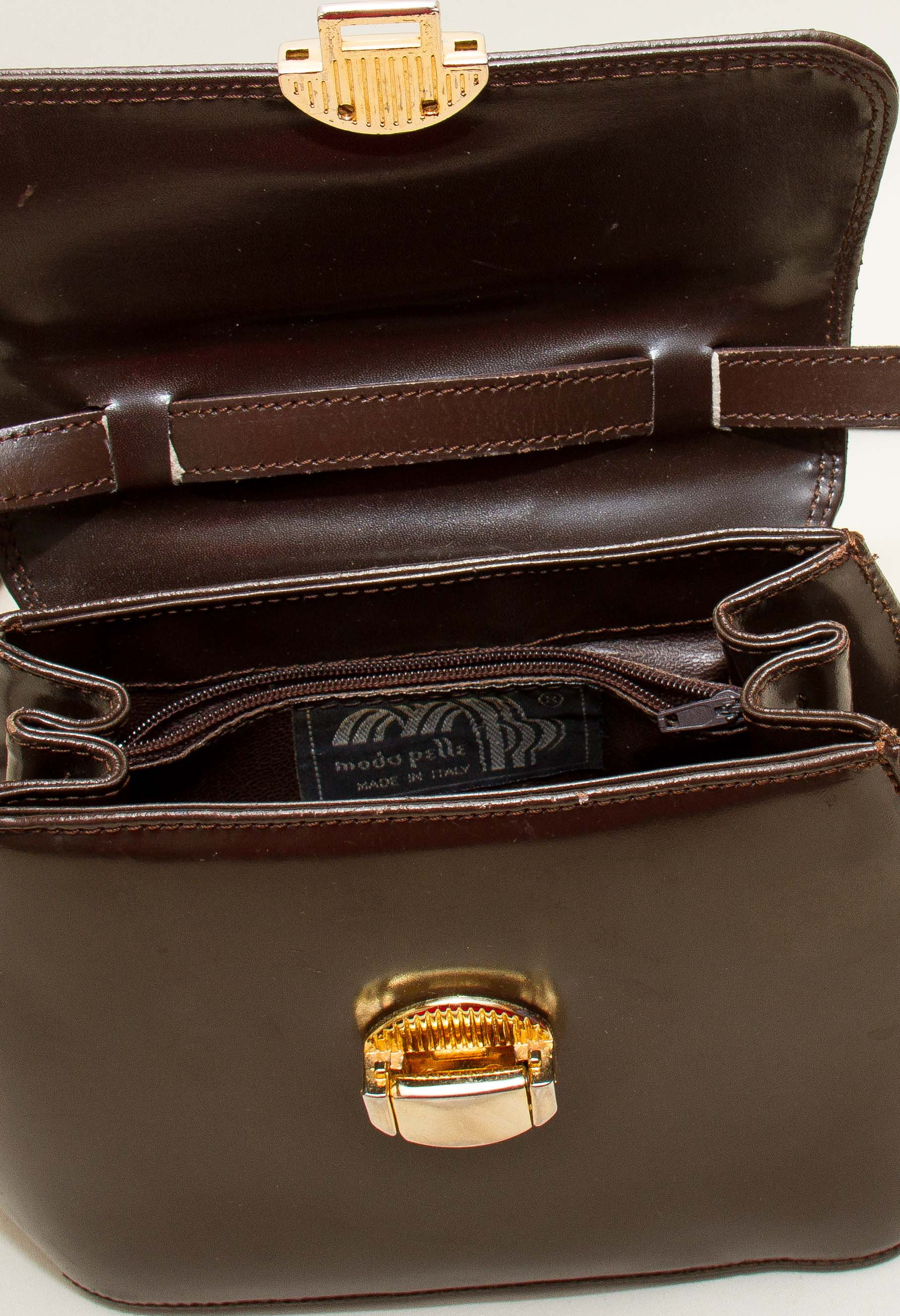 Moda Pelle vintage brown leather shoulder bag gold clasp Made in Italy 1950’s bag