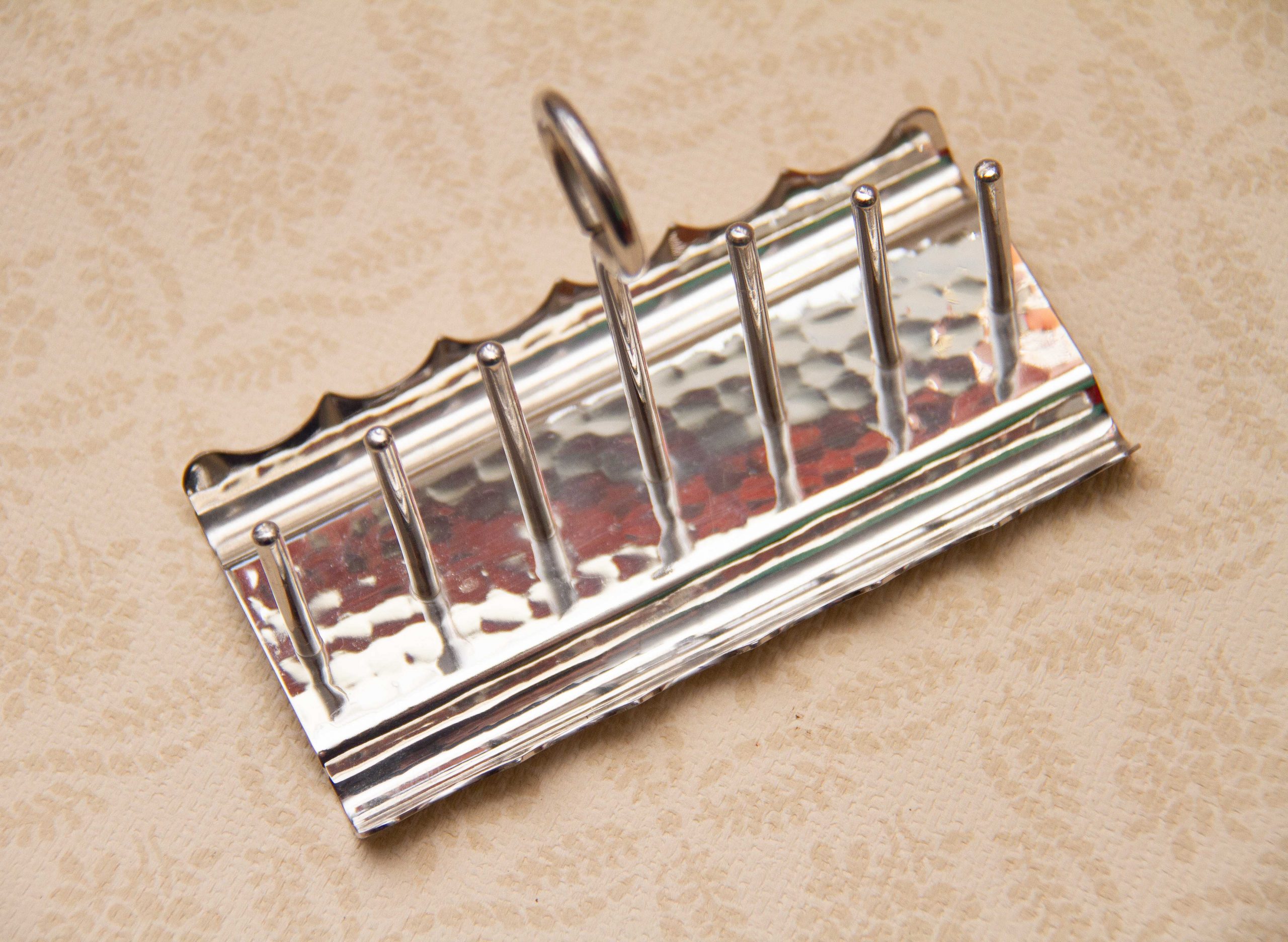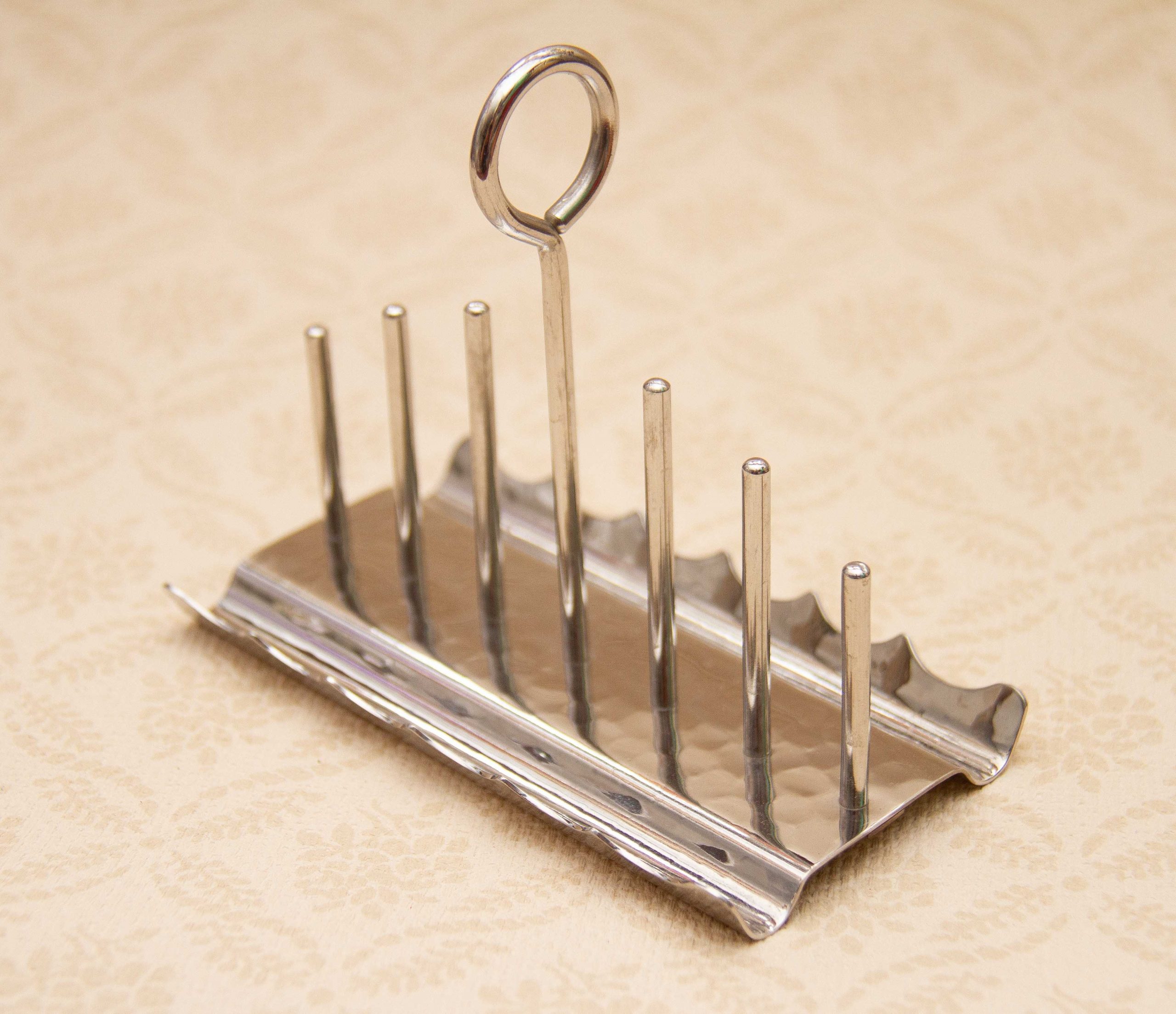 A vintage Olde Hall hammered Stainless Steel minimal design toast rack. Made in England.