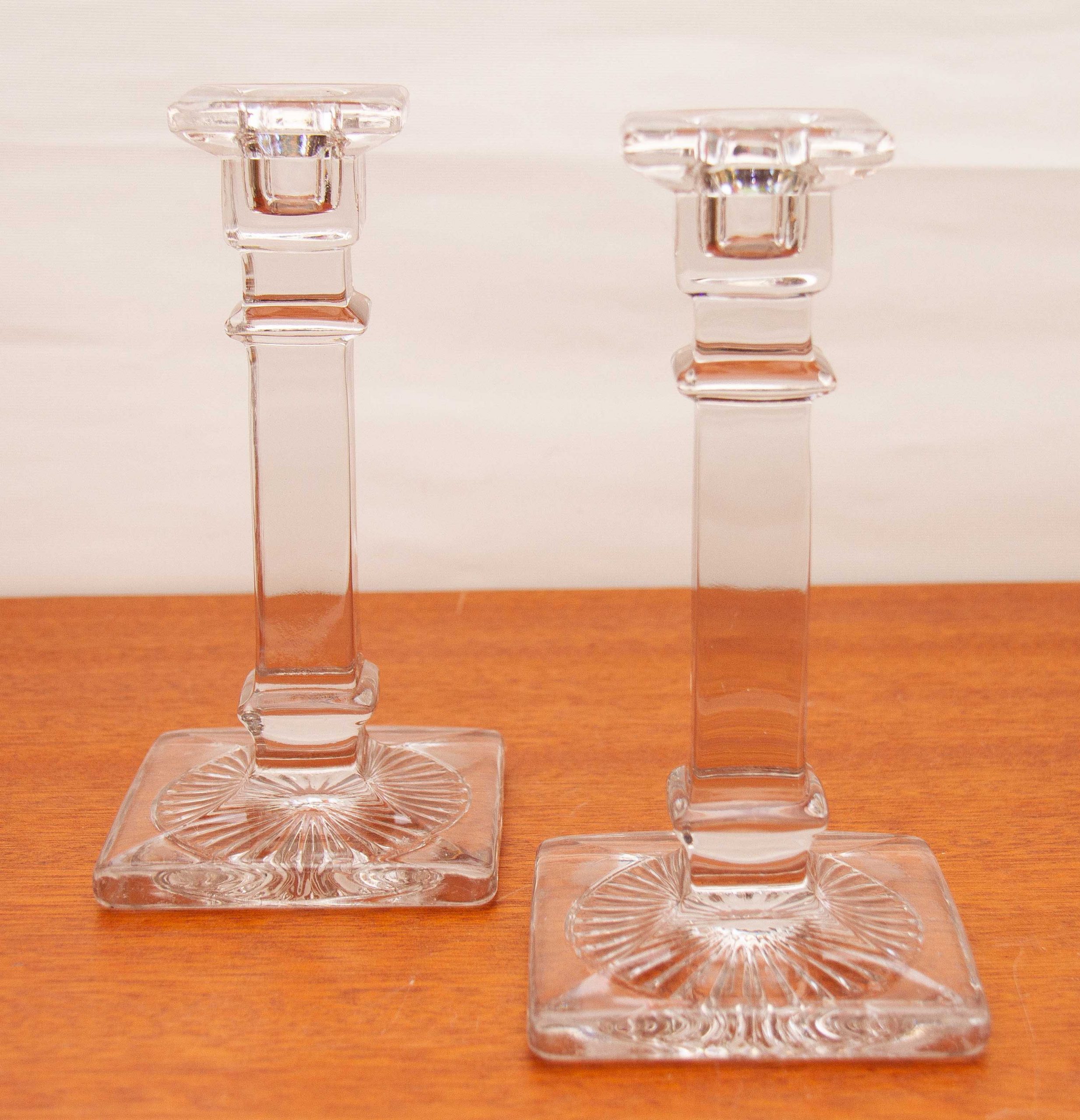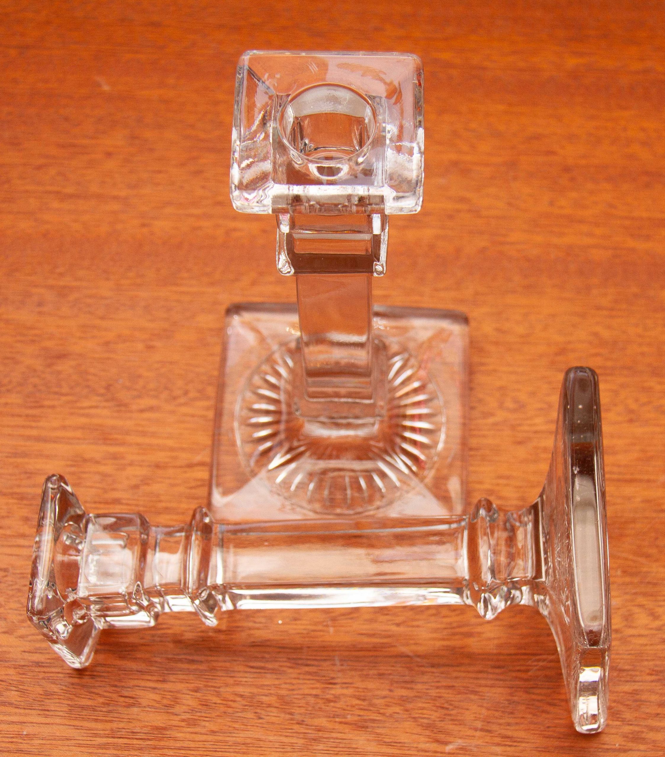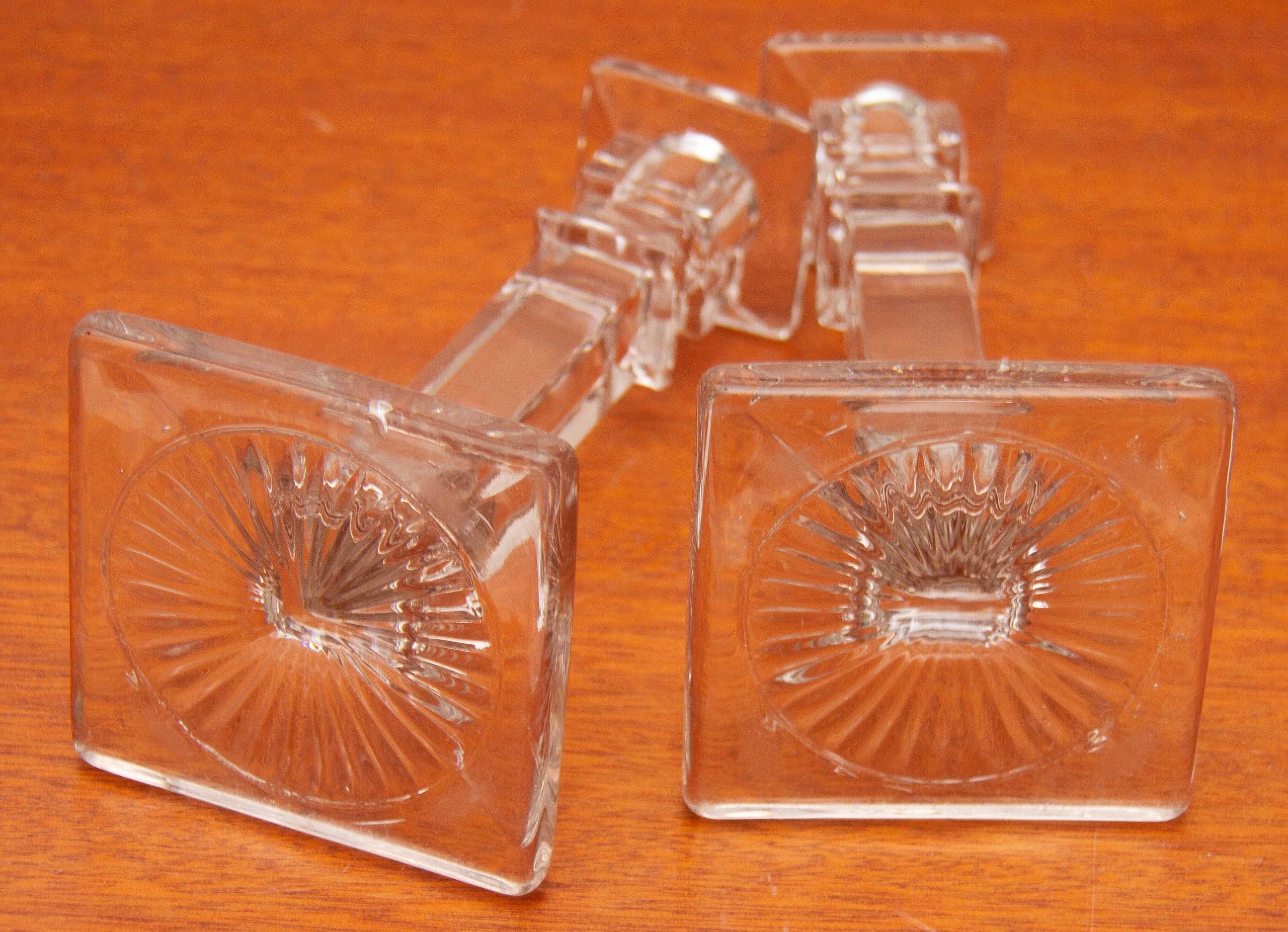 A pair of Art Deco vintage clear glass candlesticks, suitable for dinner/taper candles