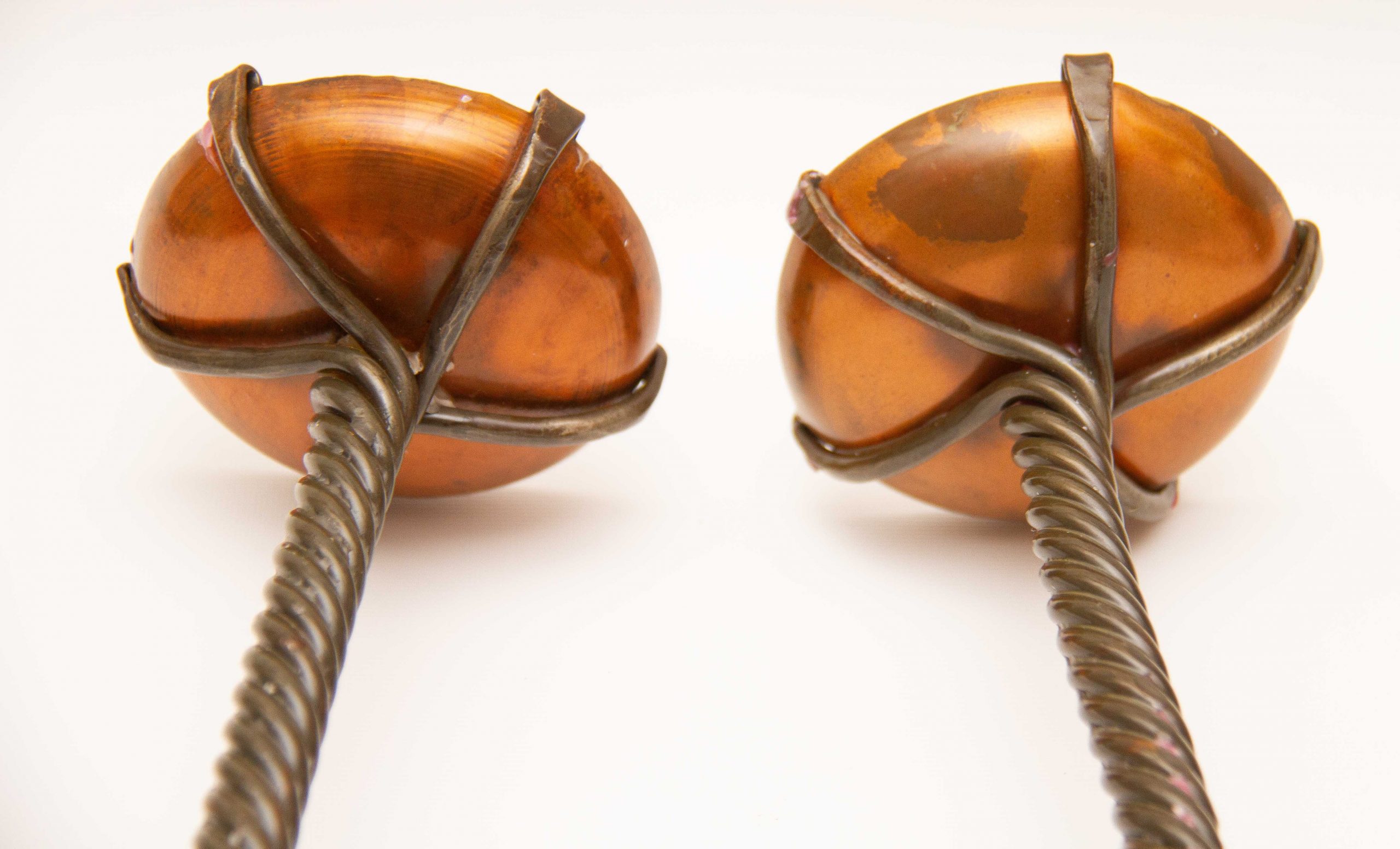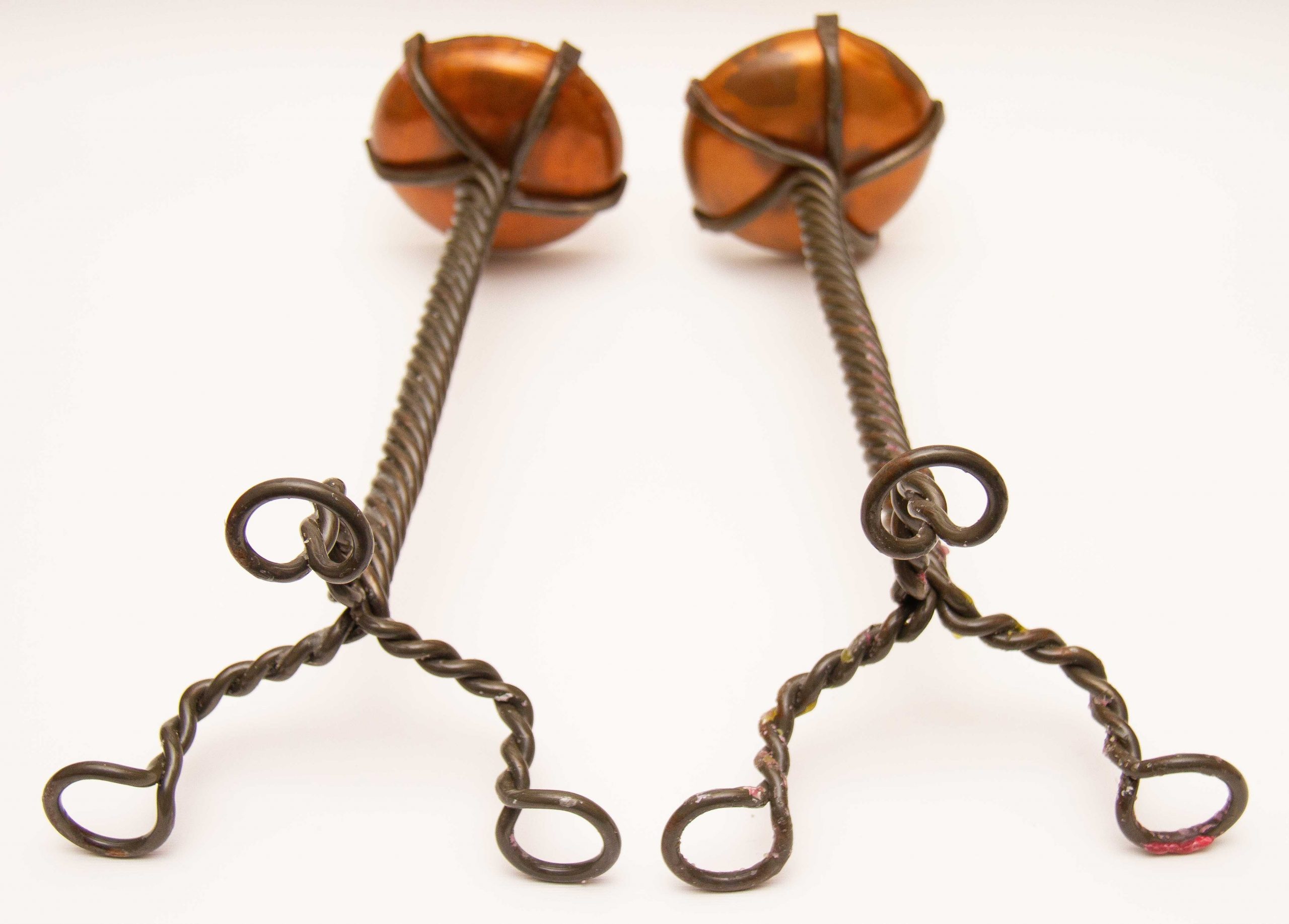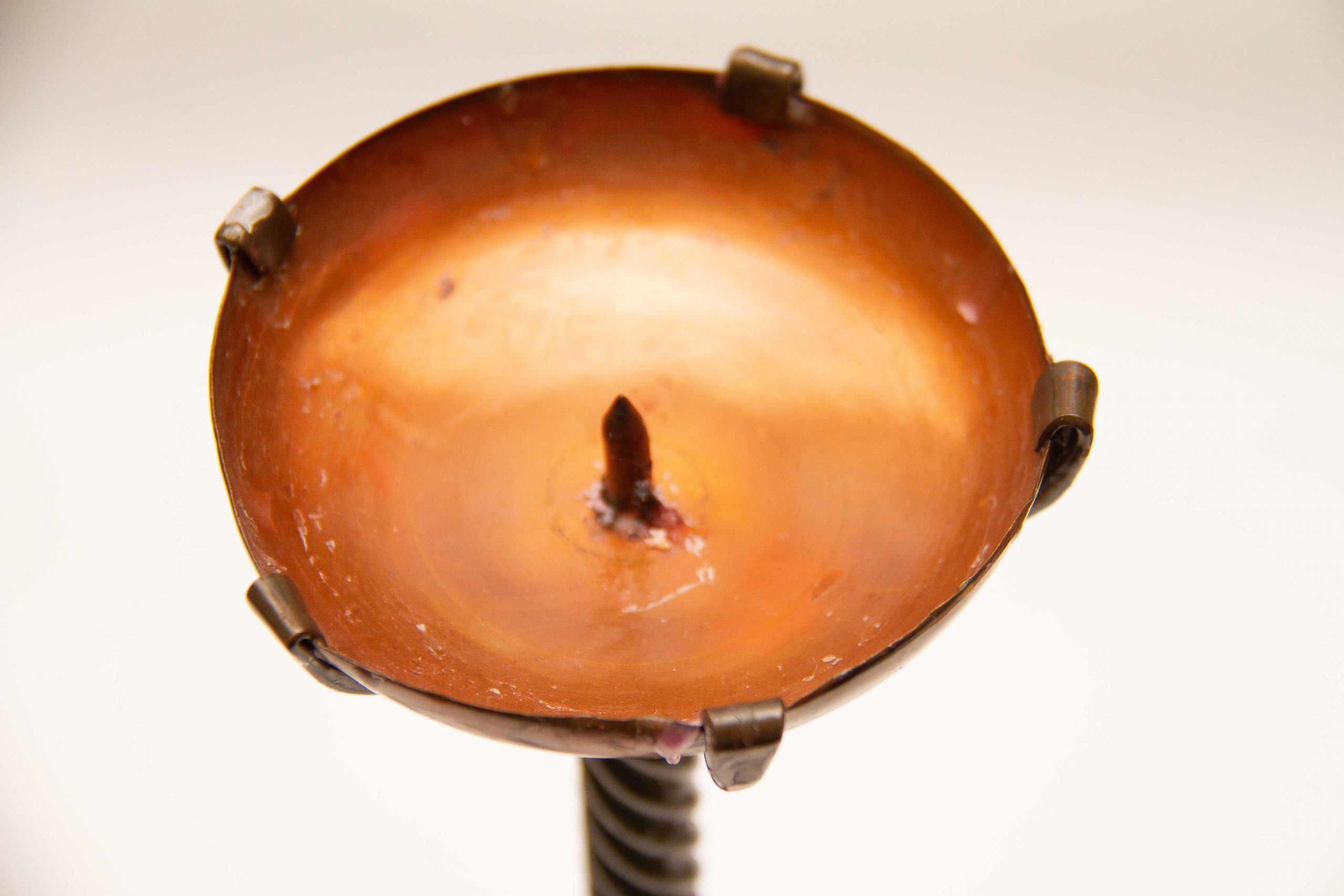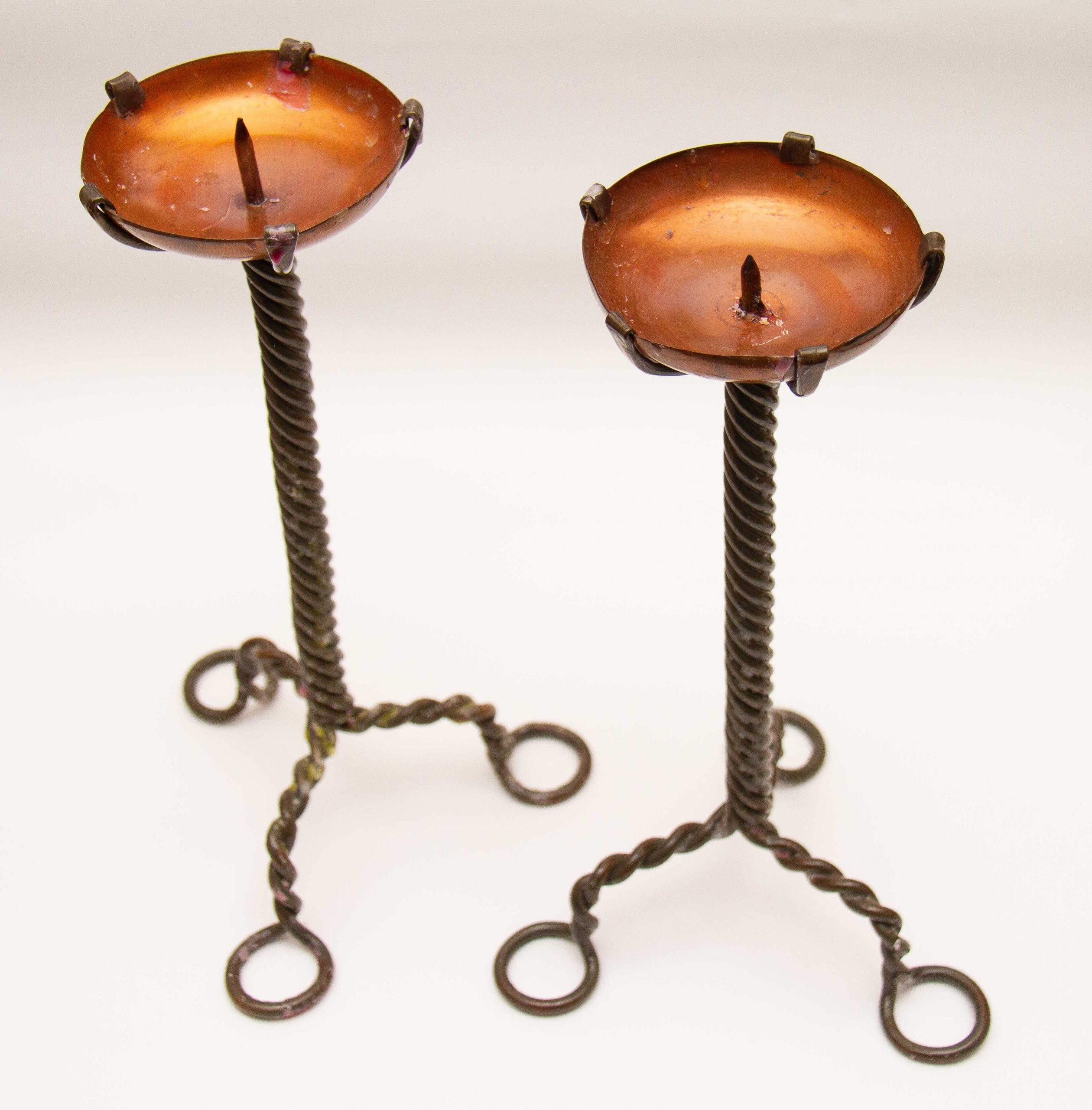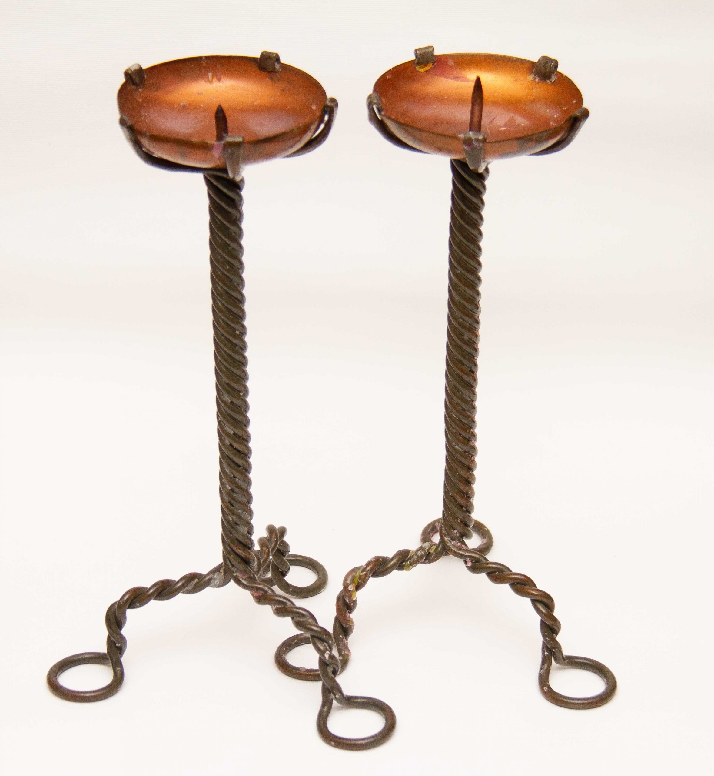 Pair of Arts & Crafts Candlesticks, Twisted Wrought Iron & Copper 1920’s