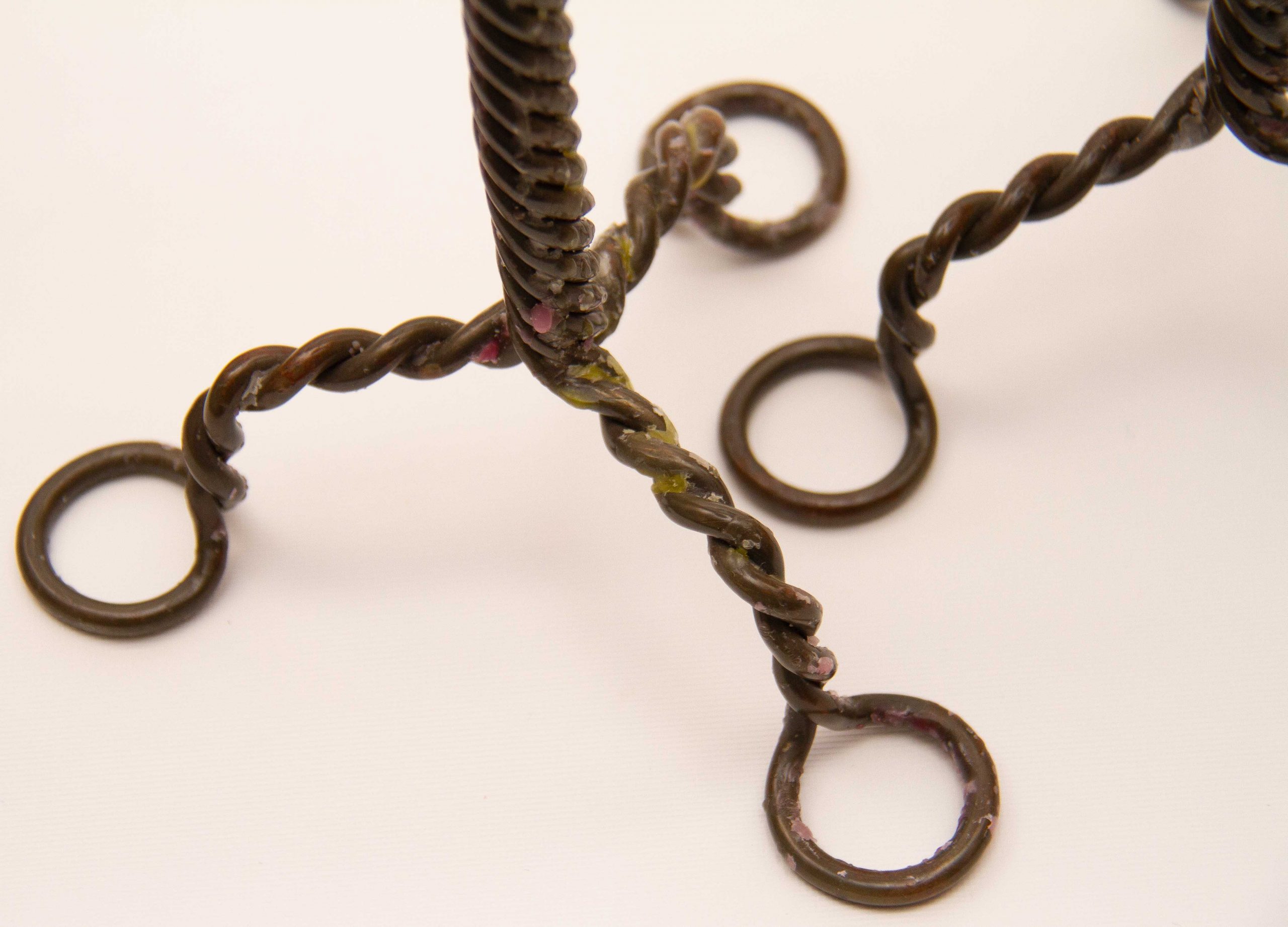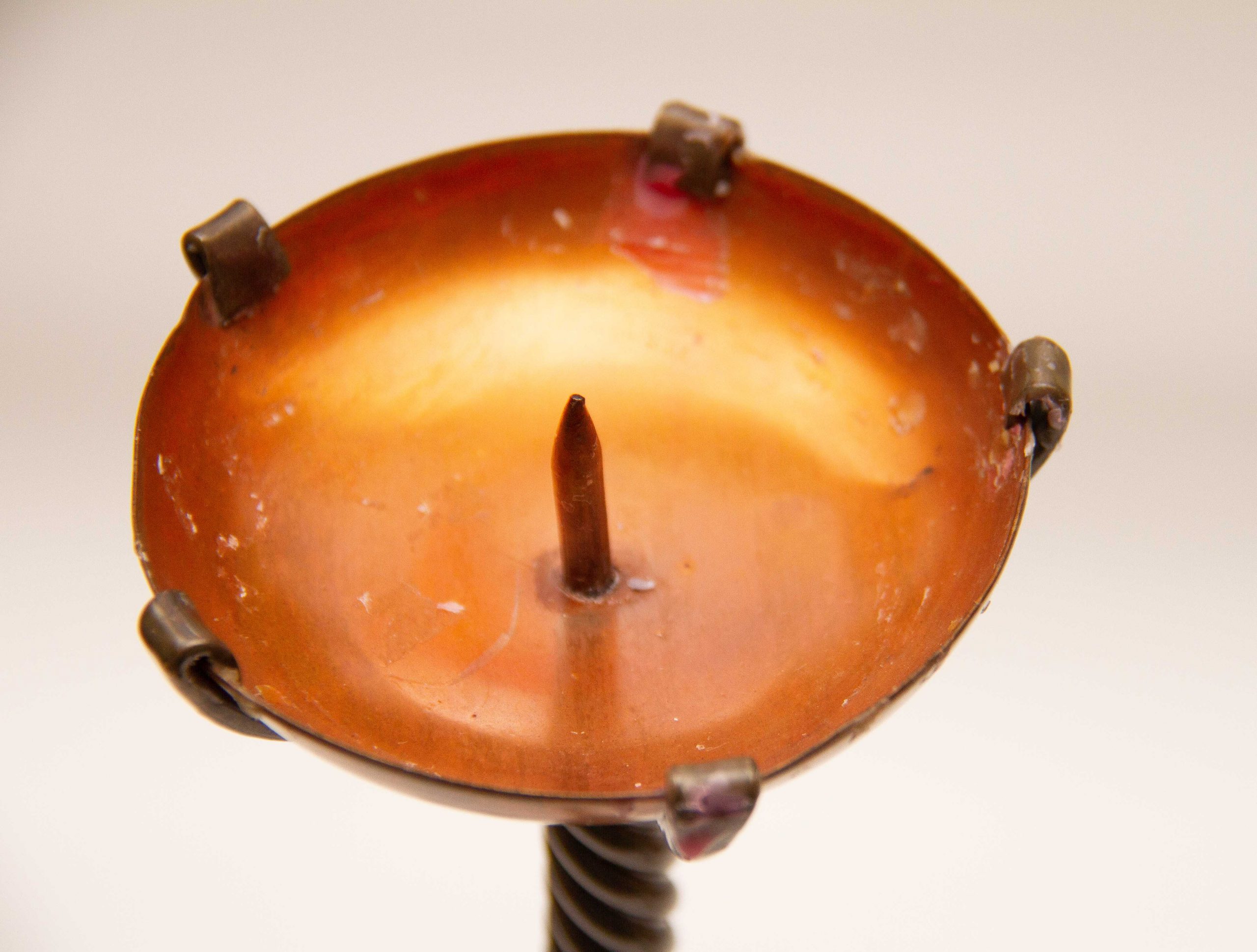 A pair of Arts and Crafts candlesticks. Made from twisted wrought iron and copper. Suitable for church or pillar style candles