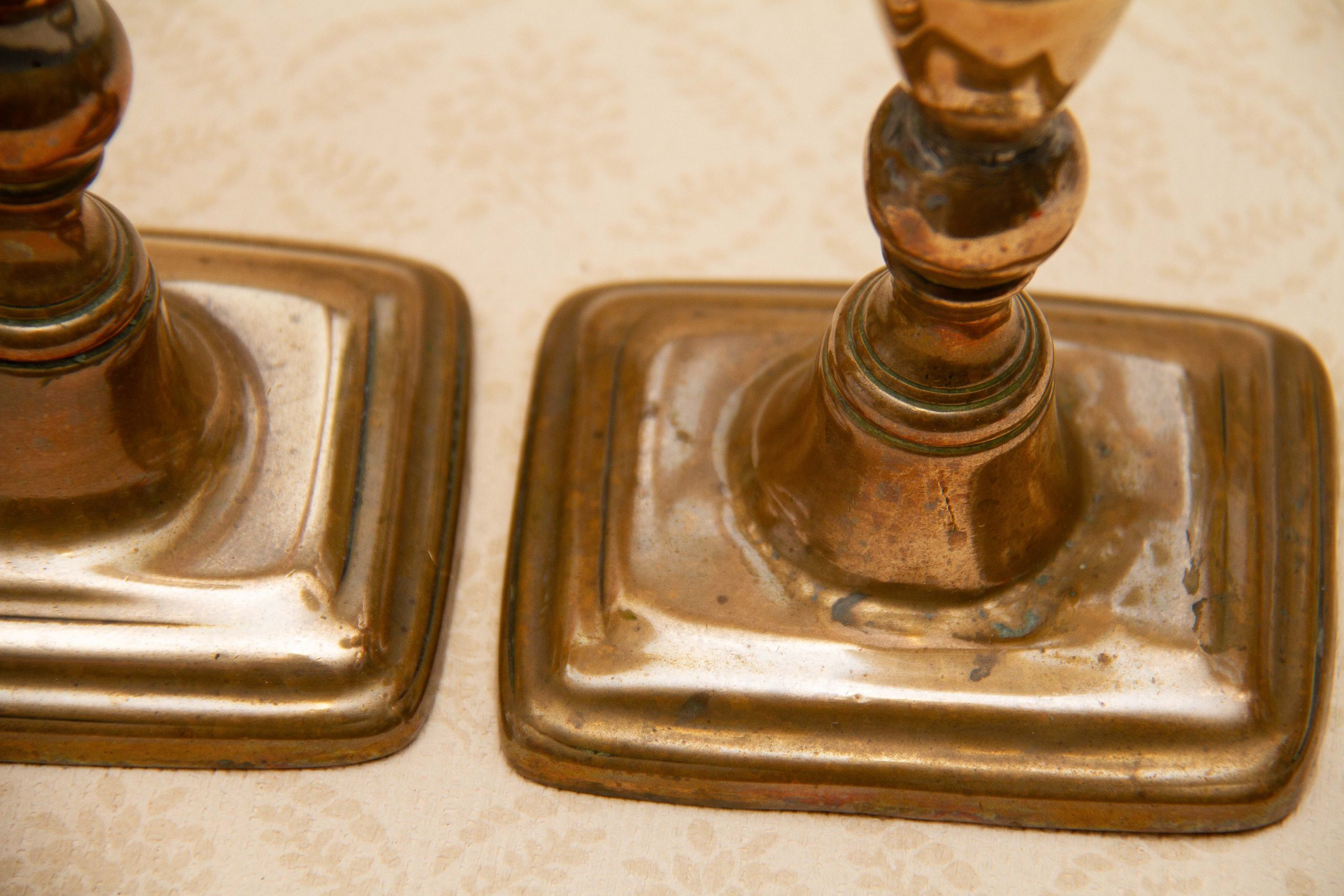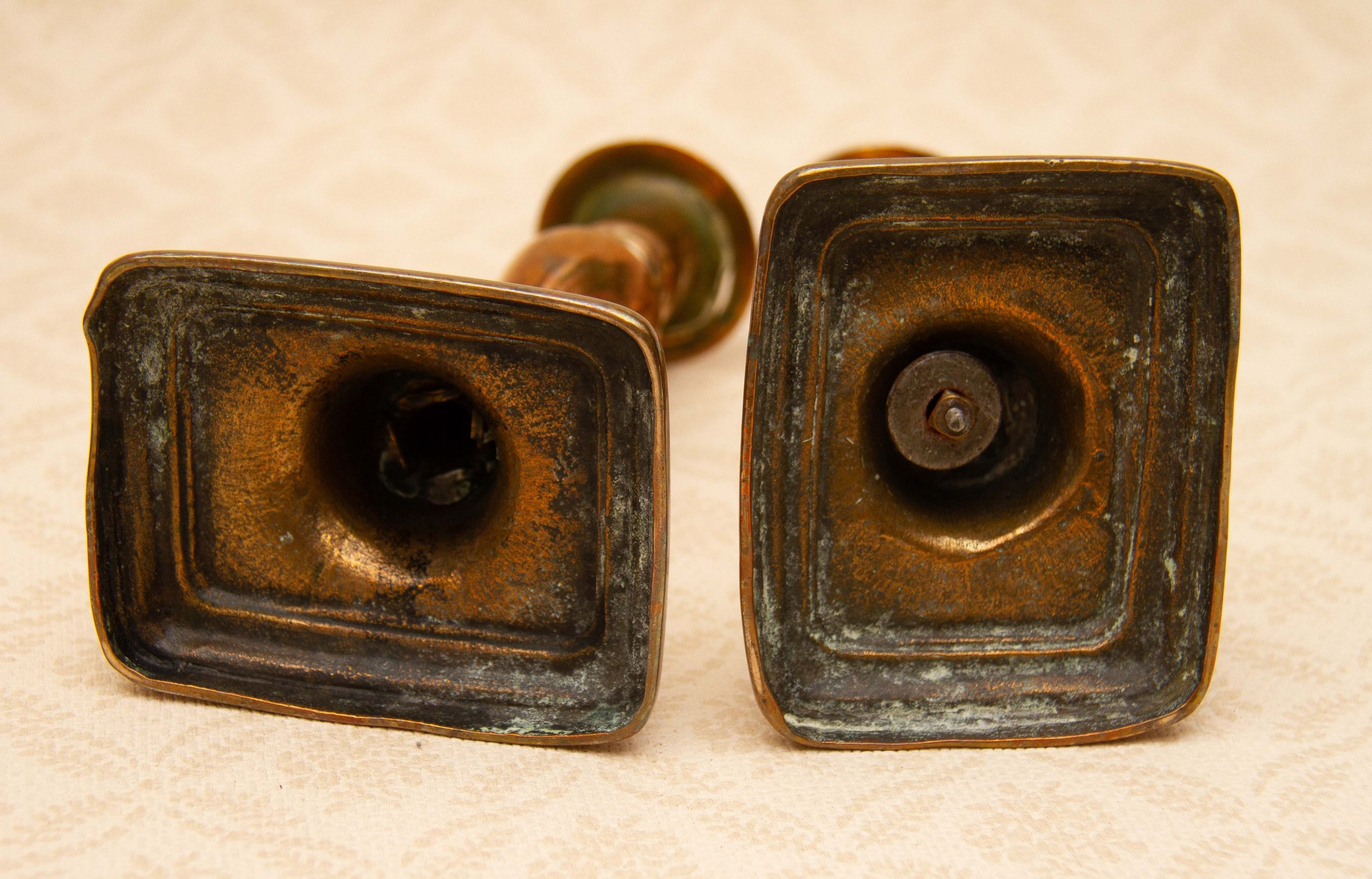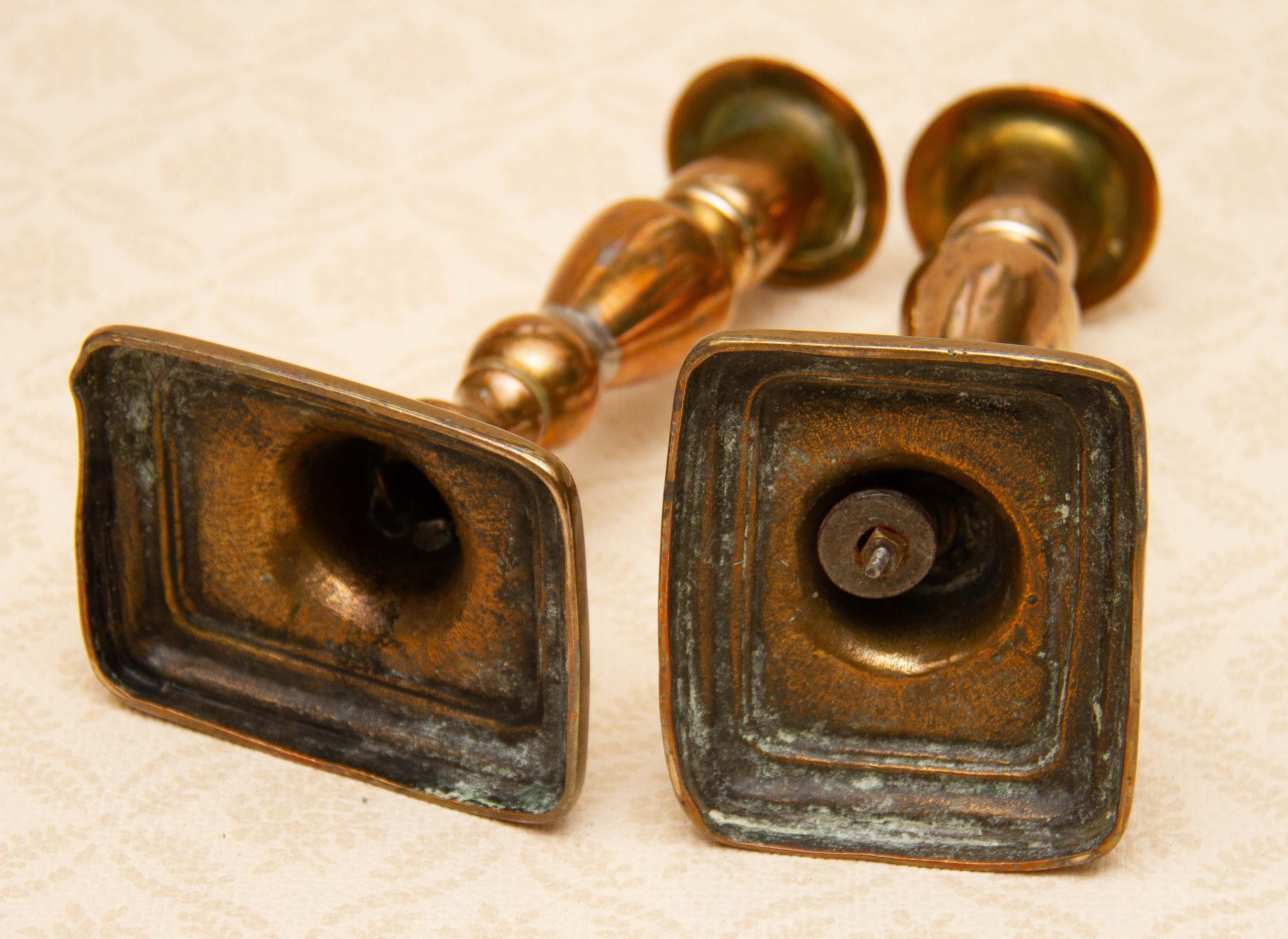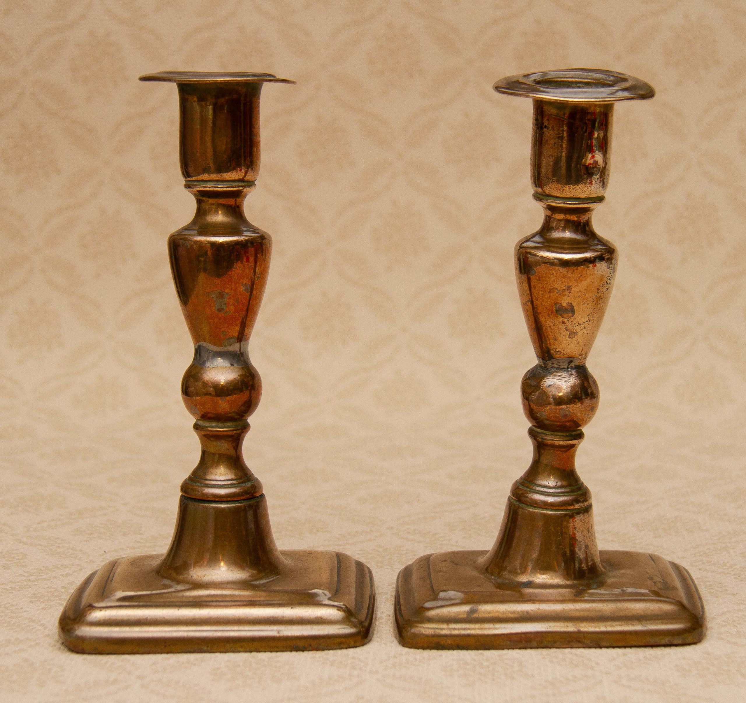 A pair of solid brass well used and distressed vintage candlesticks suitable for dinner or taper candles. These are perfect for styling a bookshelf, mantelpiece or on a dining table.
