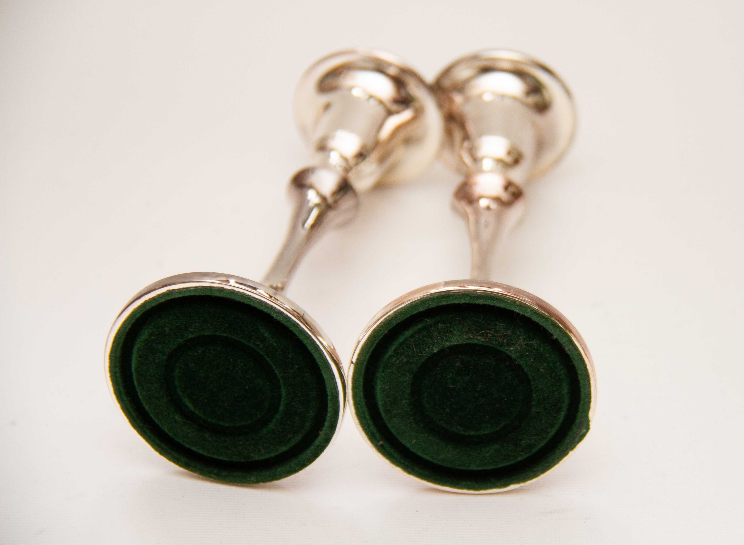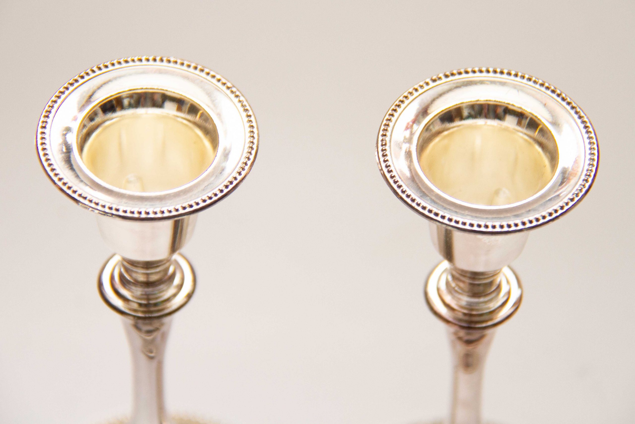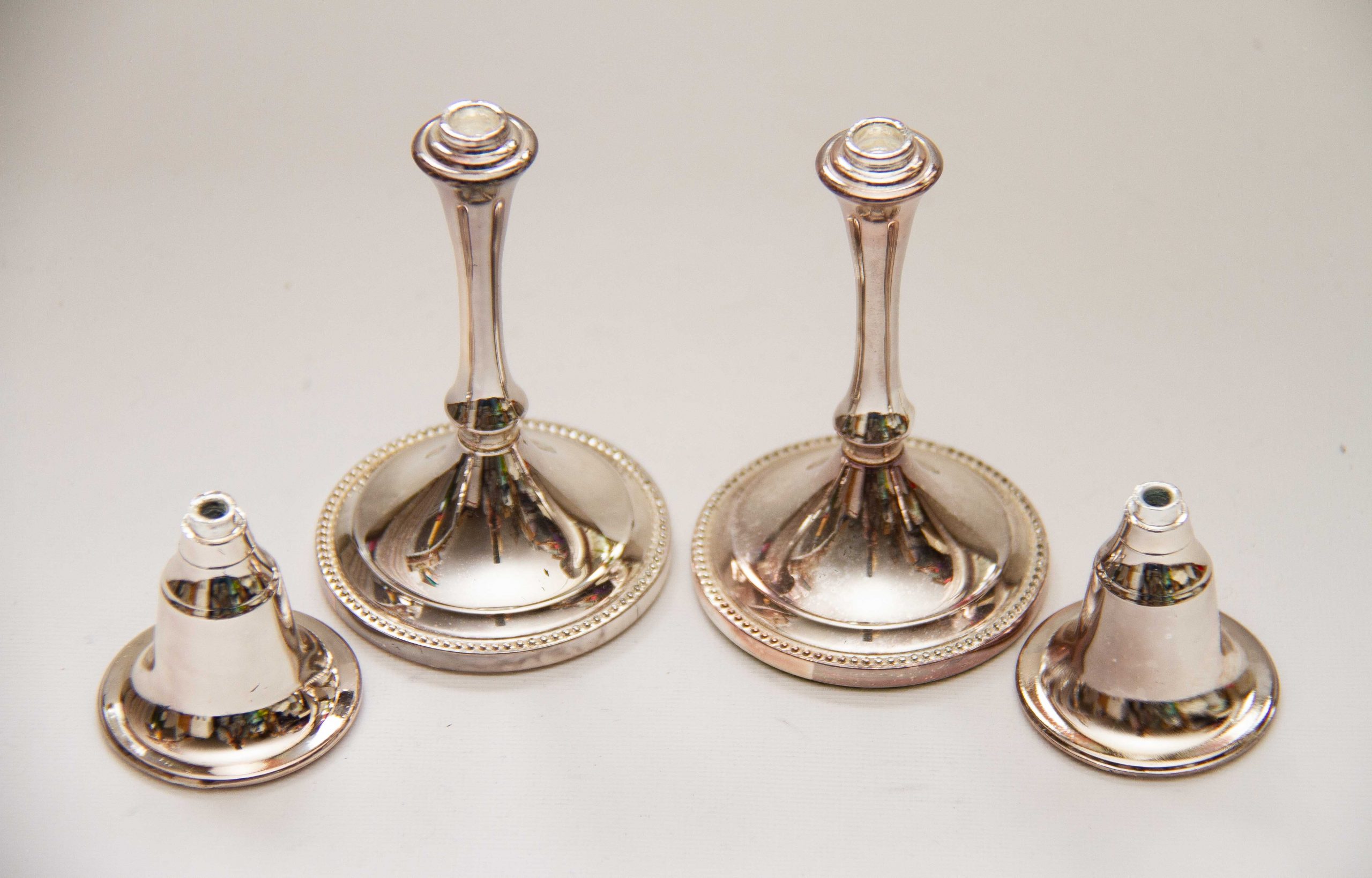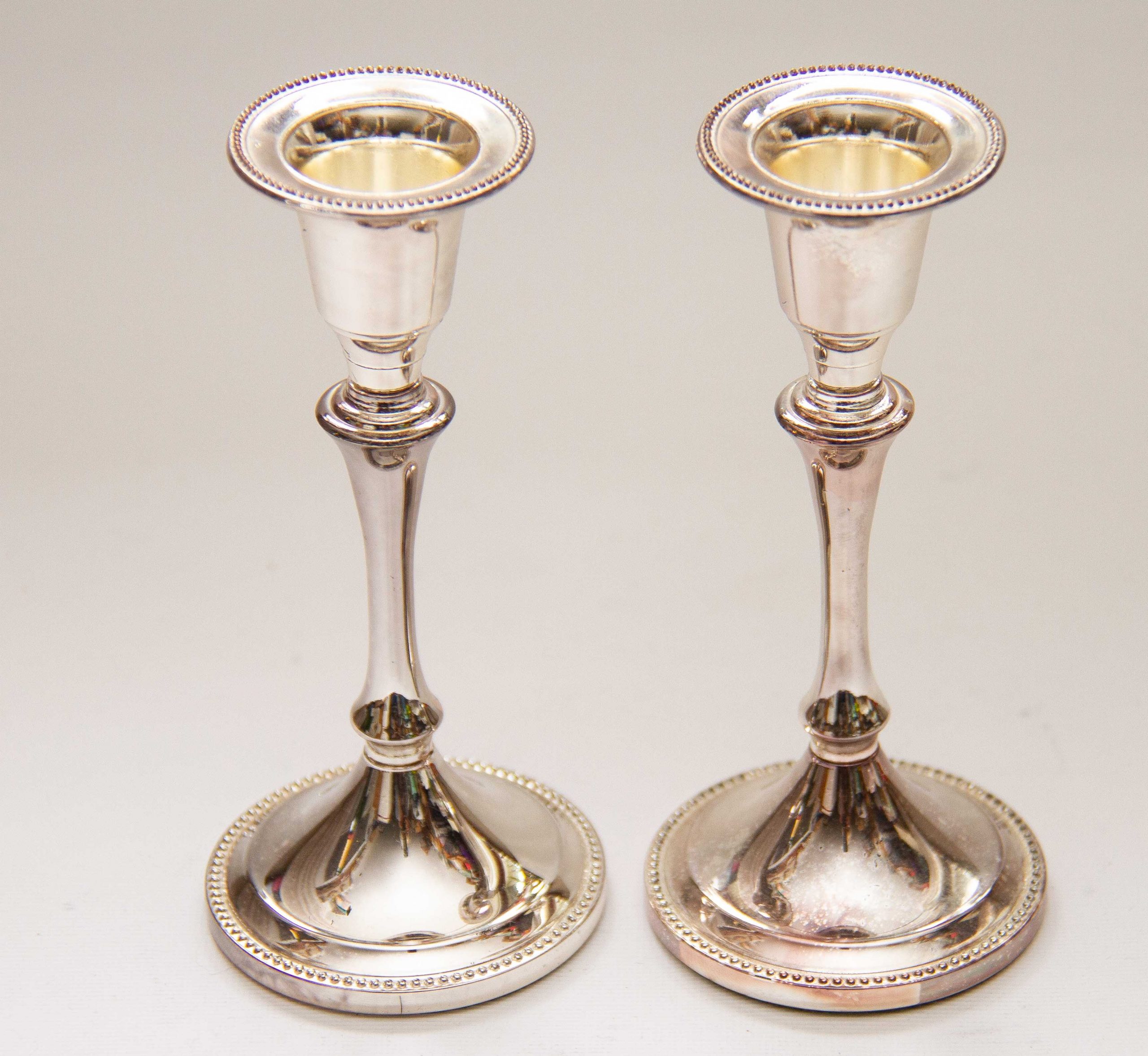 A pair of small vintage silver plated candlesticks, suitable for dinner/taper candles.