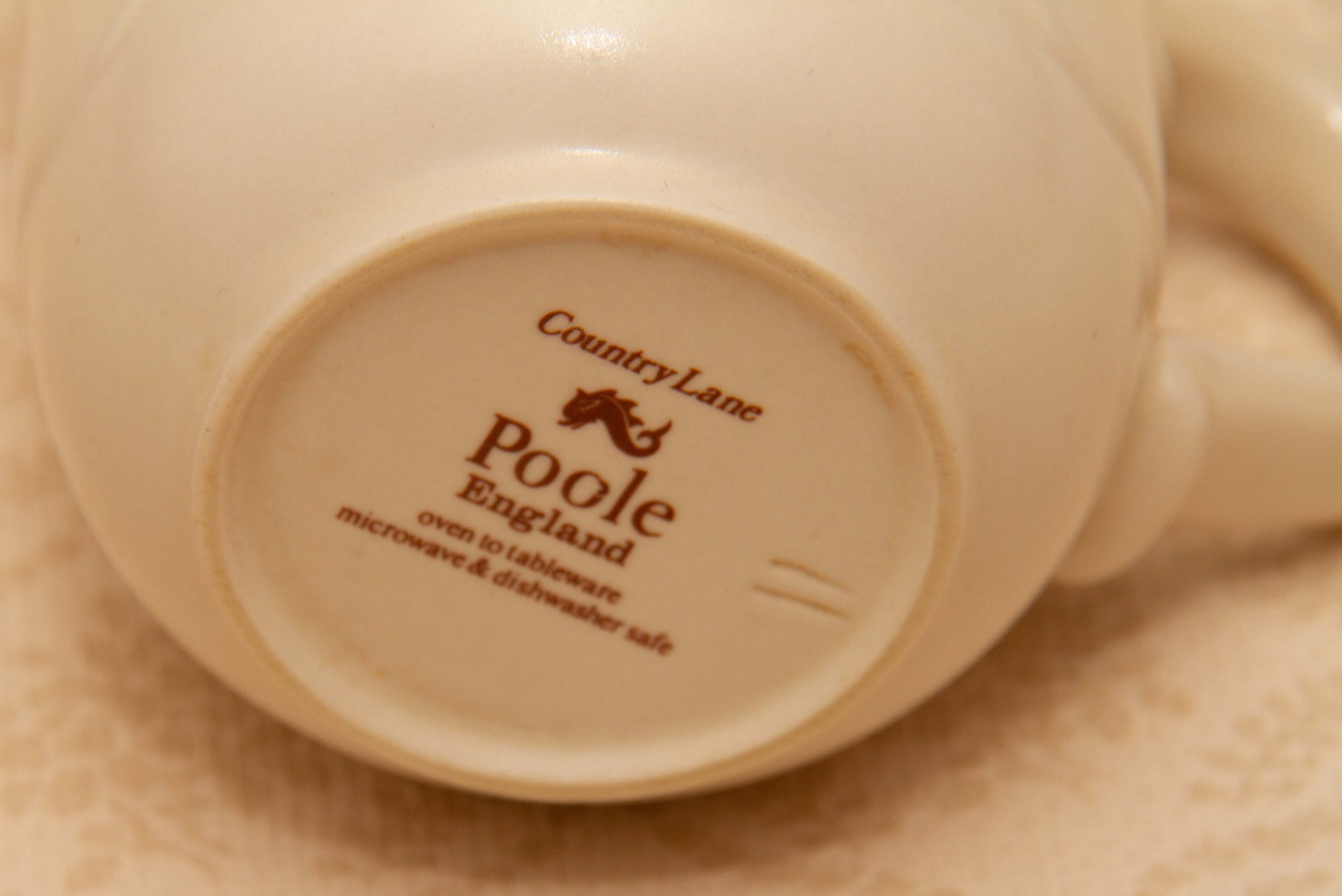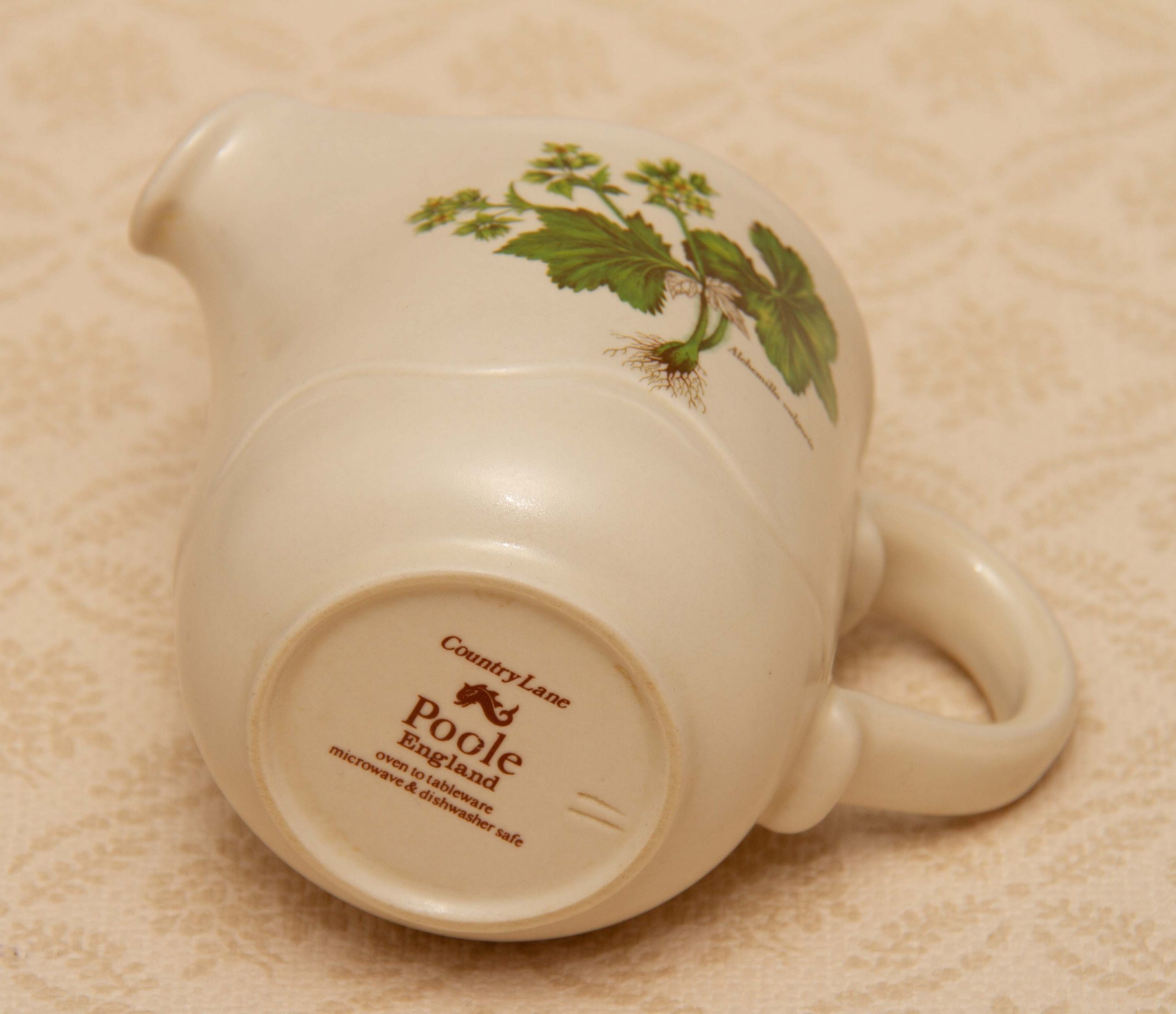 A Poole pottery jug with a botanical pattern on each side, part of The Country Lane collection.