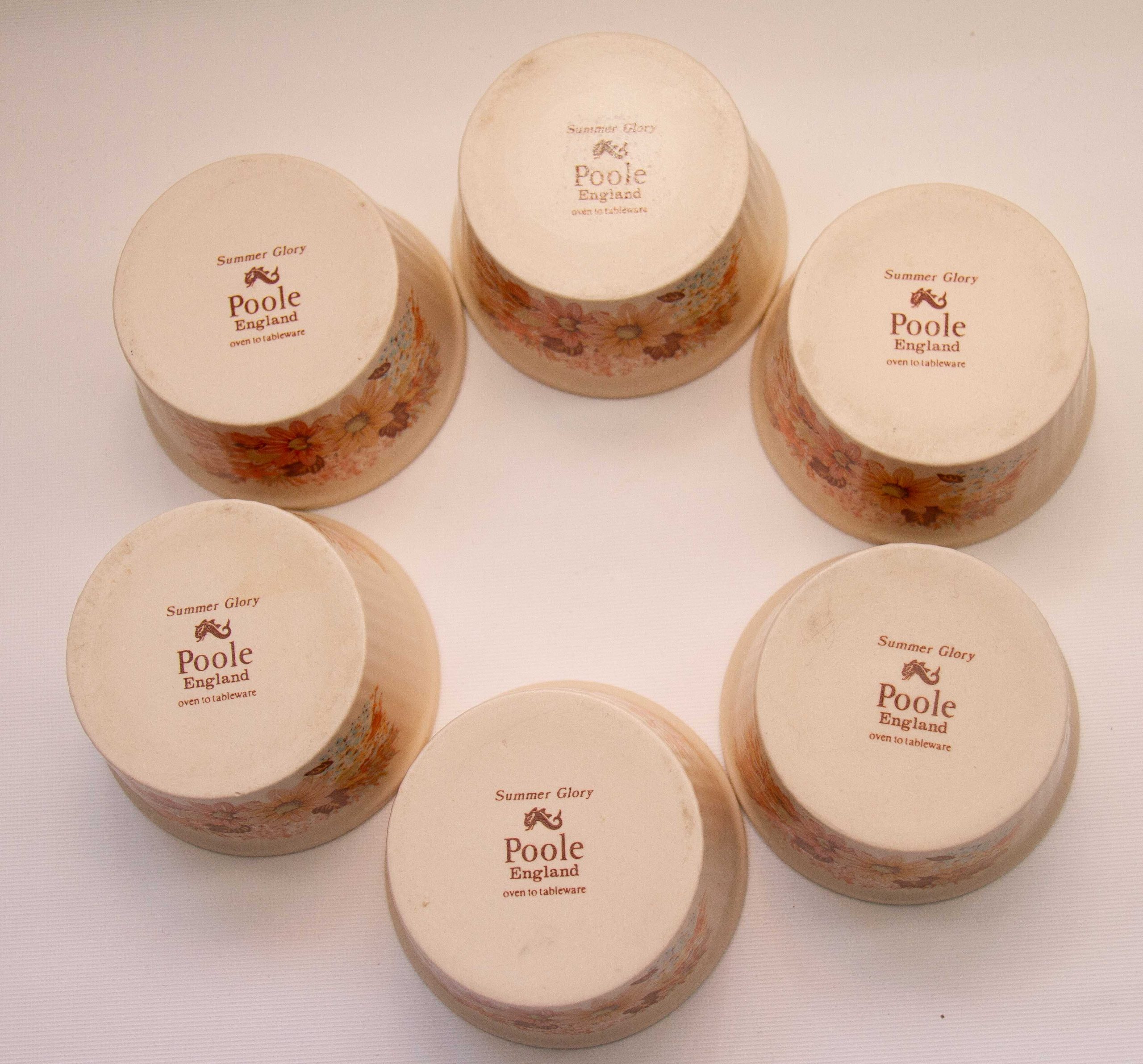 Poole Pottery Summer Glory Ramekins Set of 6 Floral Pattern, Tapas, Dip Dishes