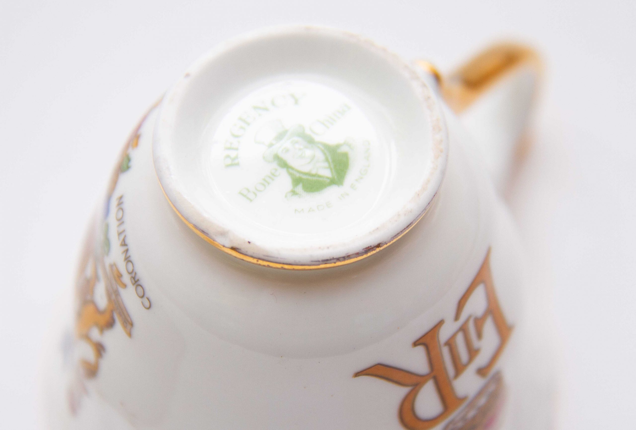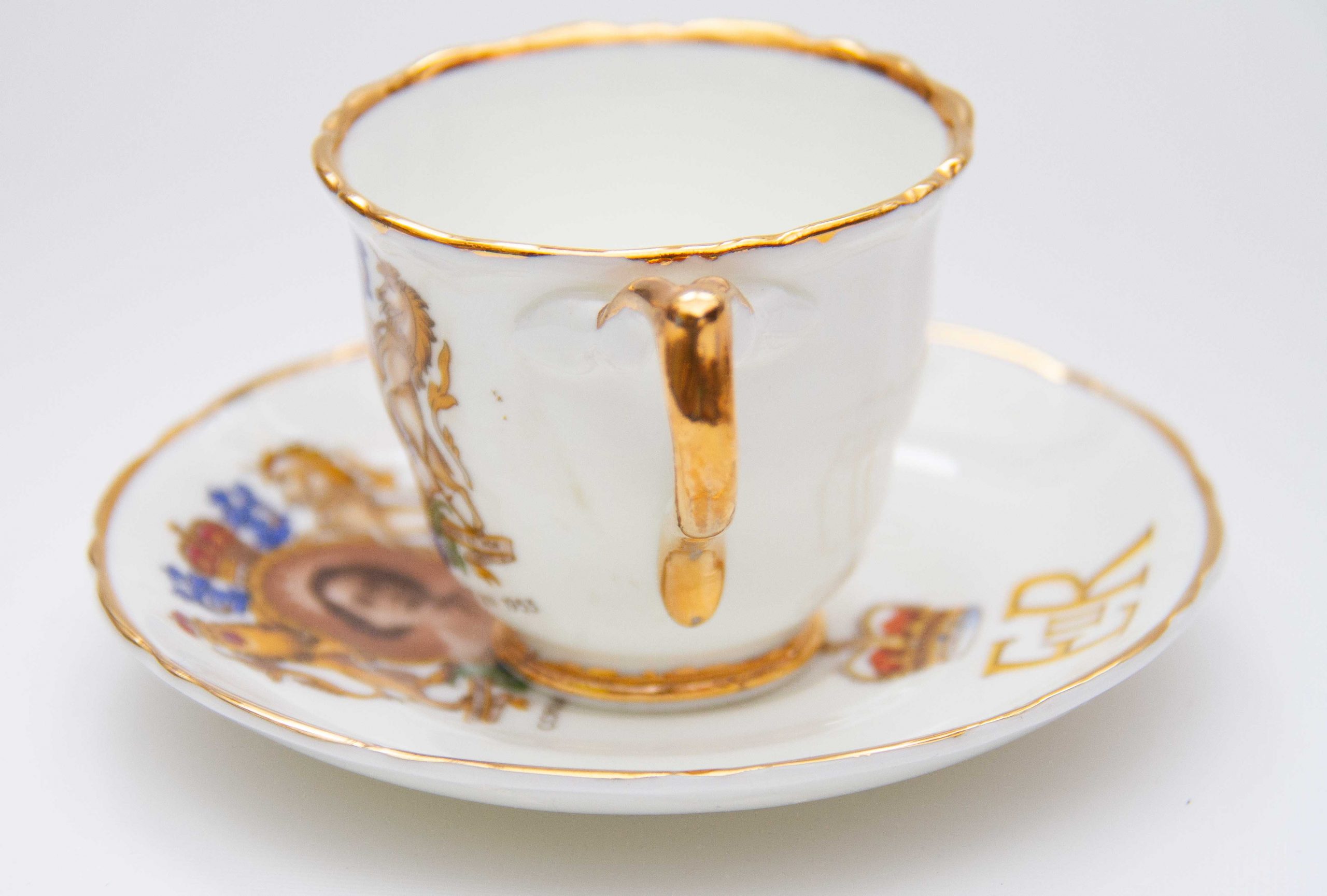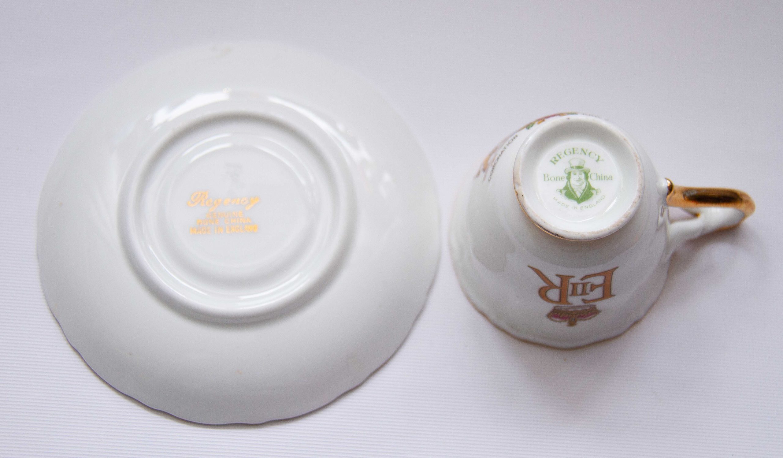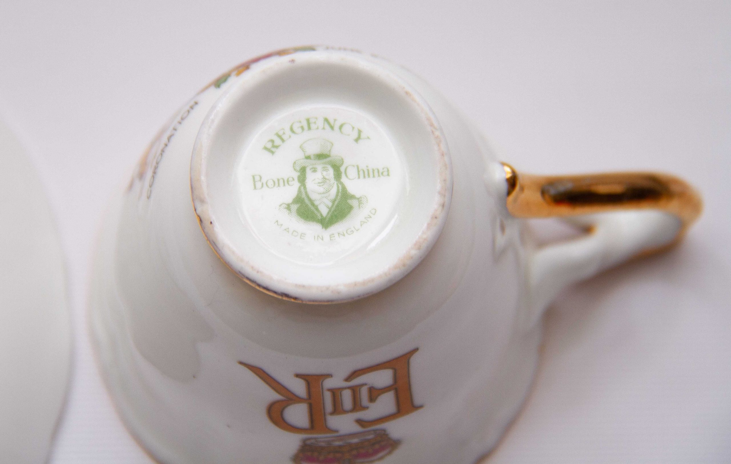 A Regency fine bone china cup and saucer with gold gilt edging, made to commemorate the Queen’s Coronation in 1953.