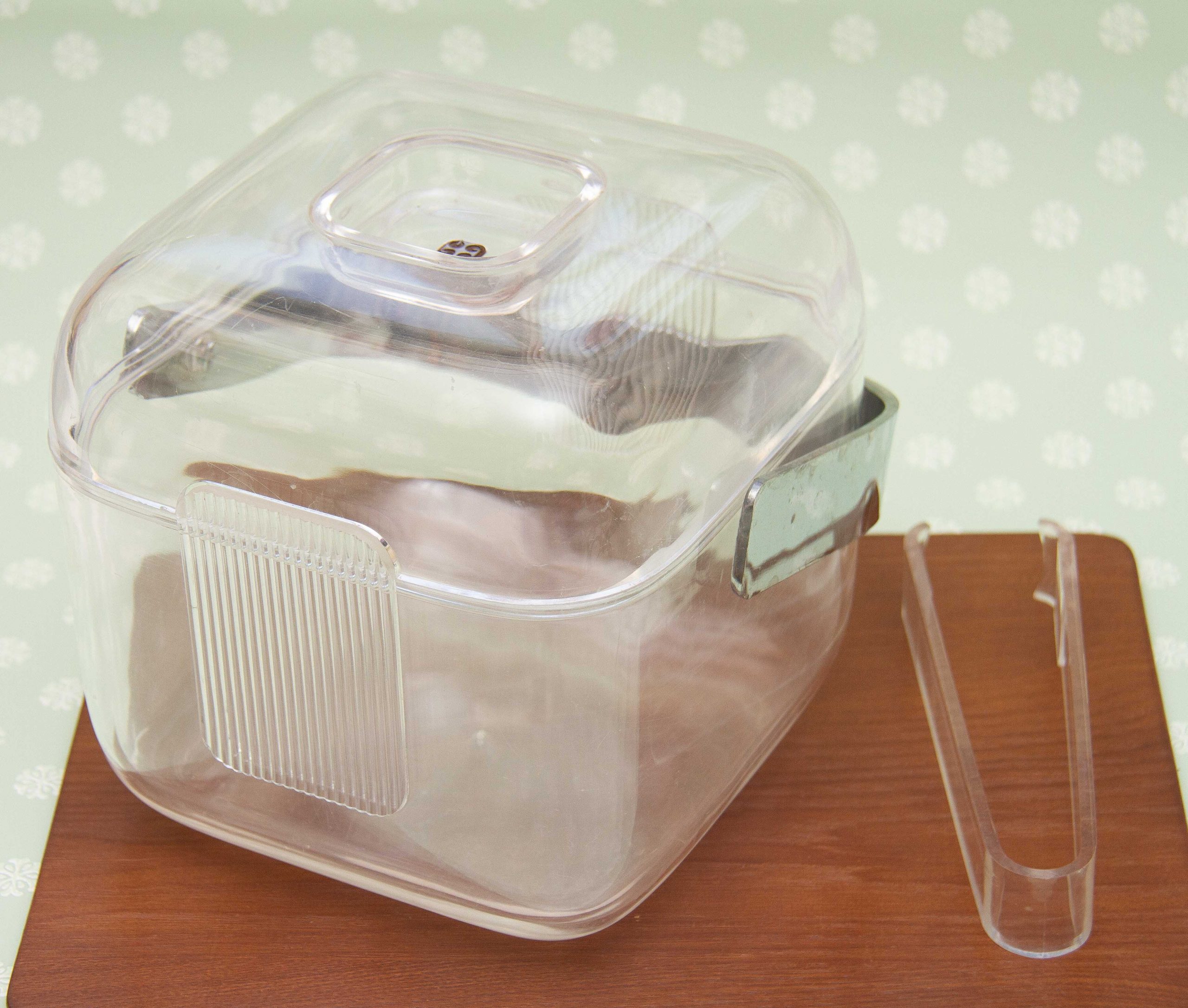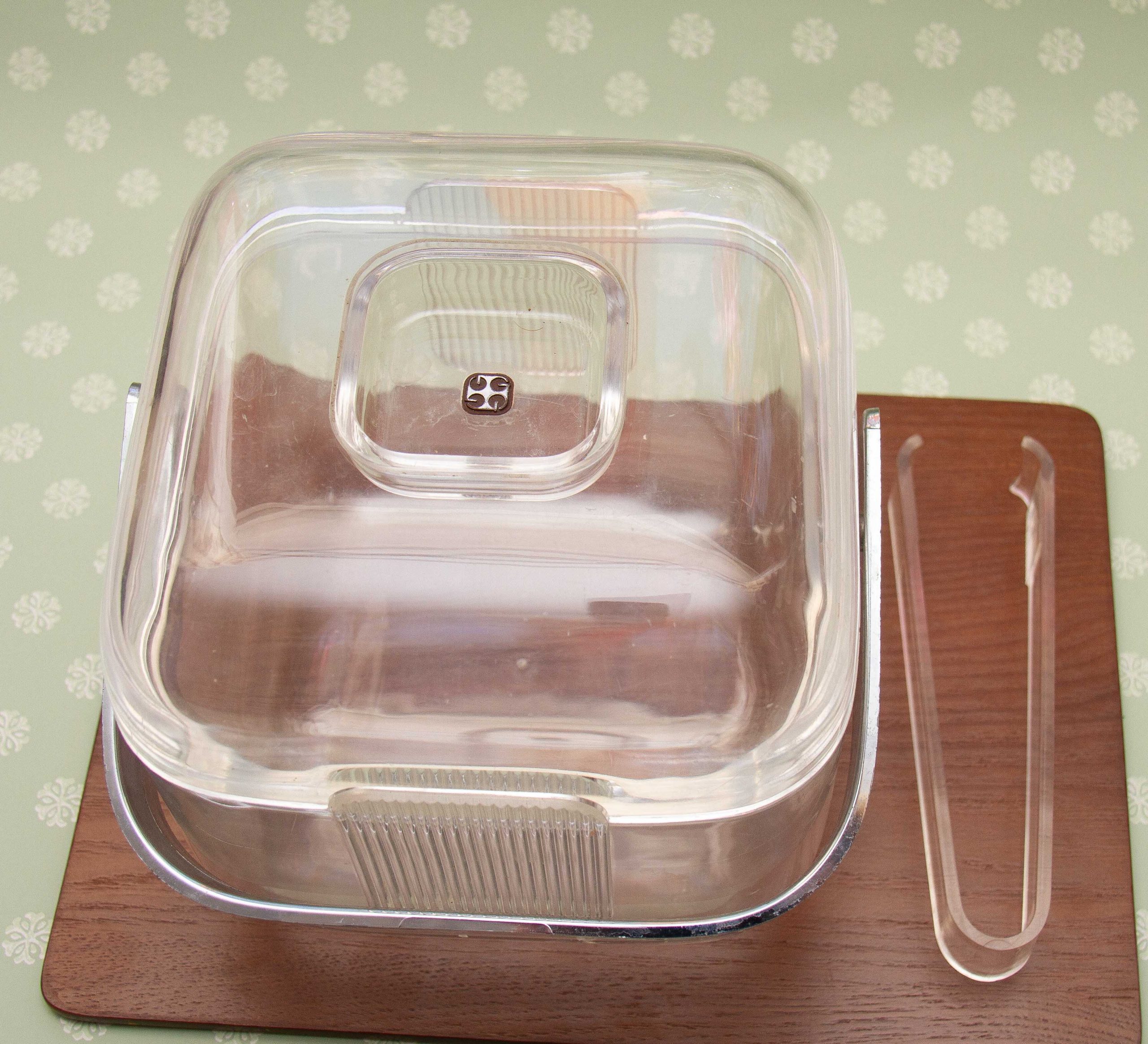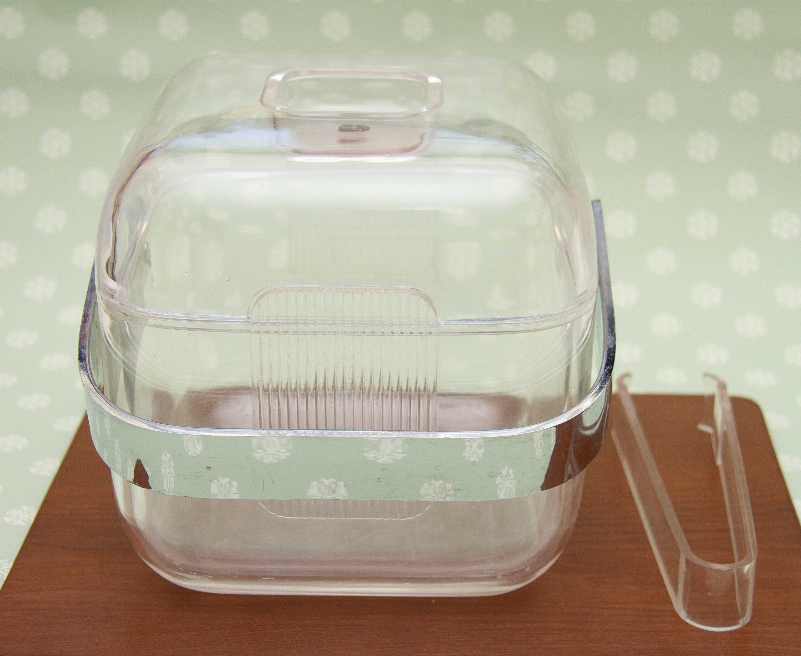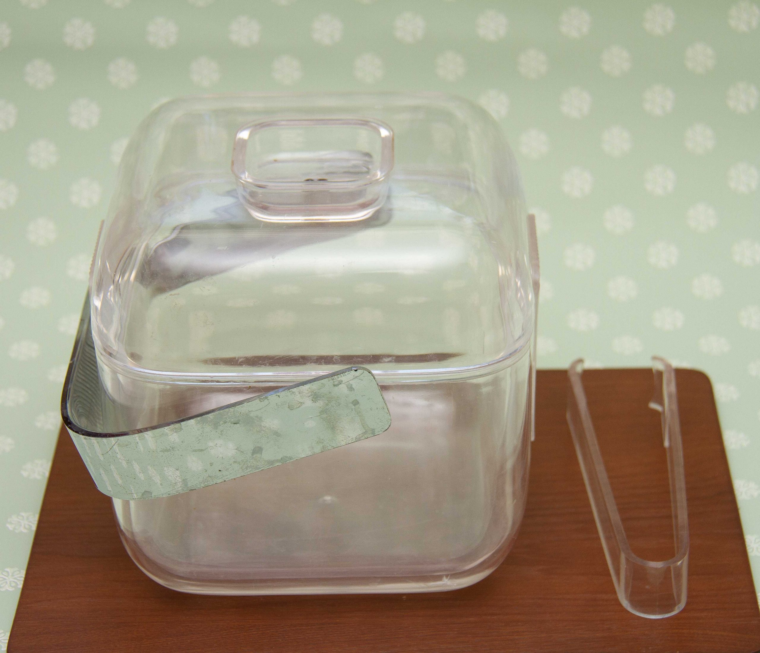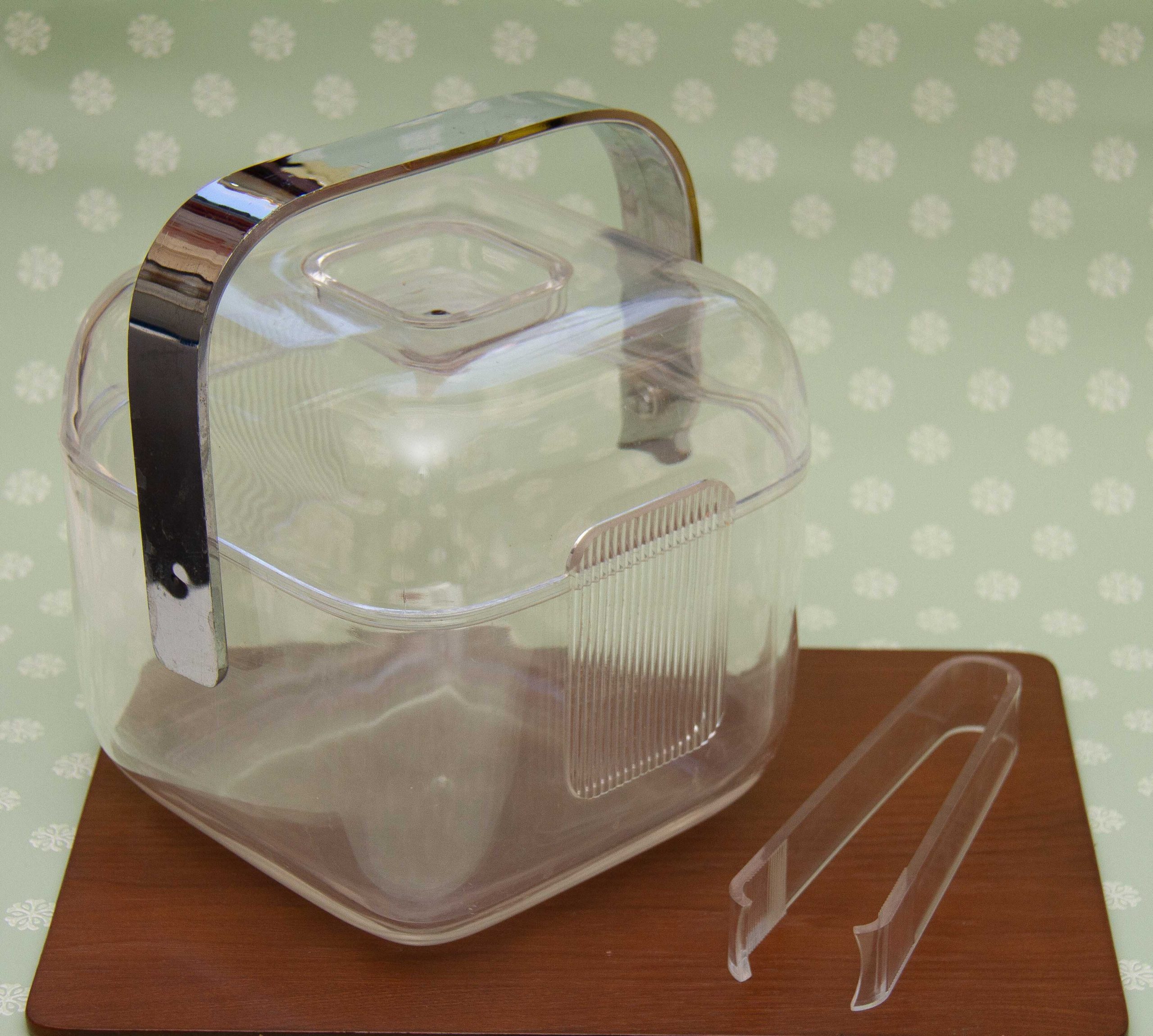 A retro vintage 1980’s Guzzini ‘Amanda’ clear acrylic ice bucket & tongs designed by Ambrogio Pozzi Made in Italy
