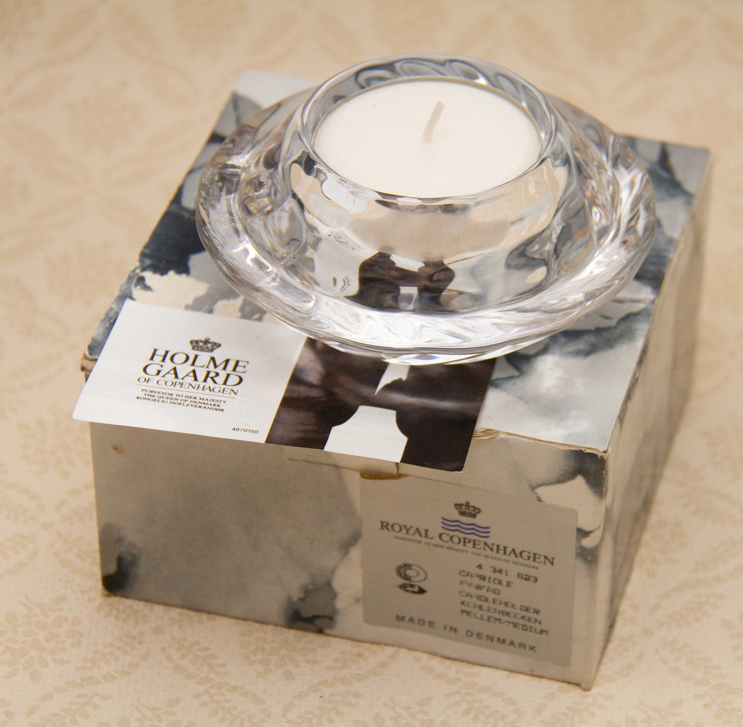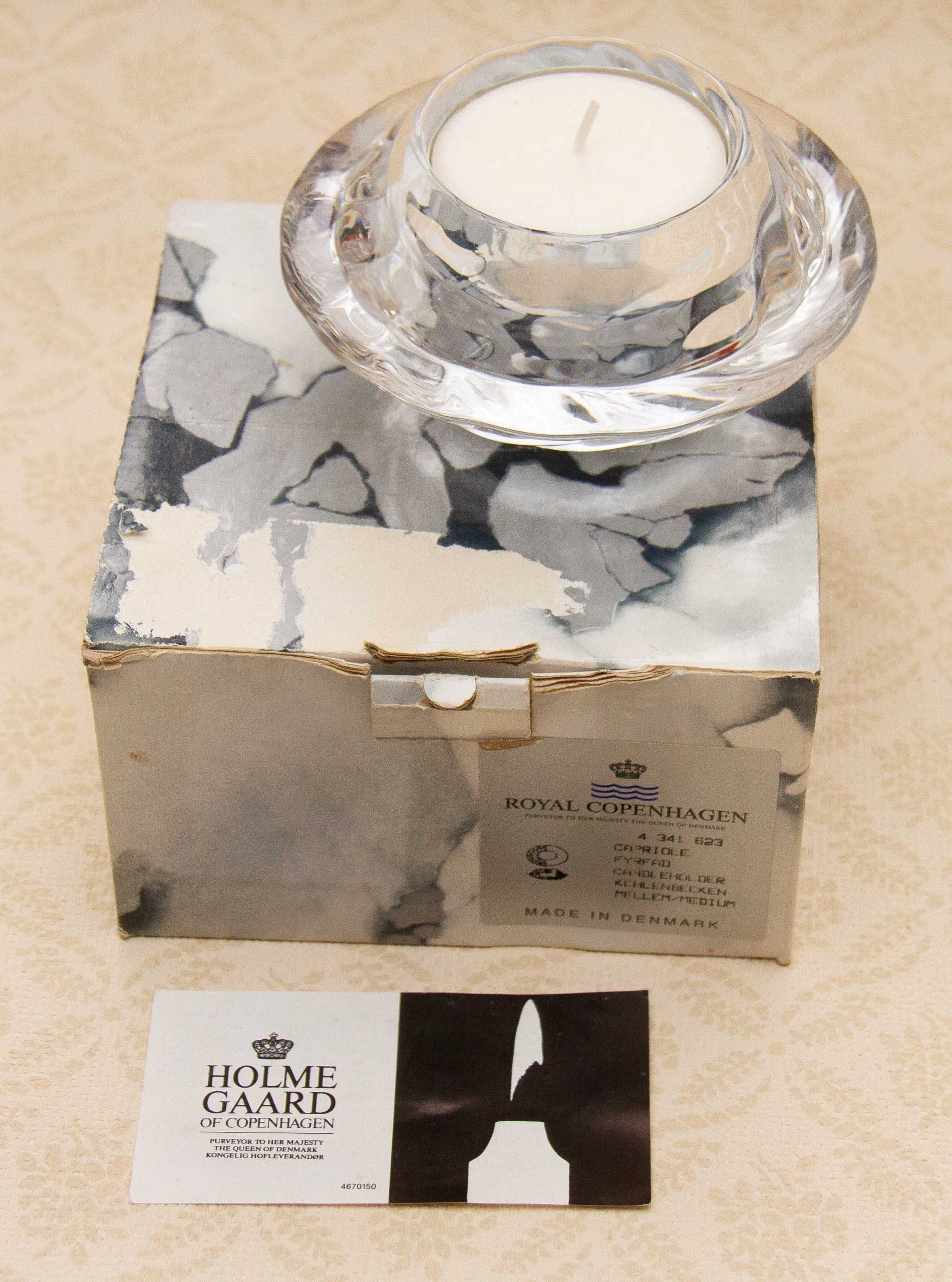 A Royal Copenhagen clear crystal candle holder, complete with candle in original box