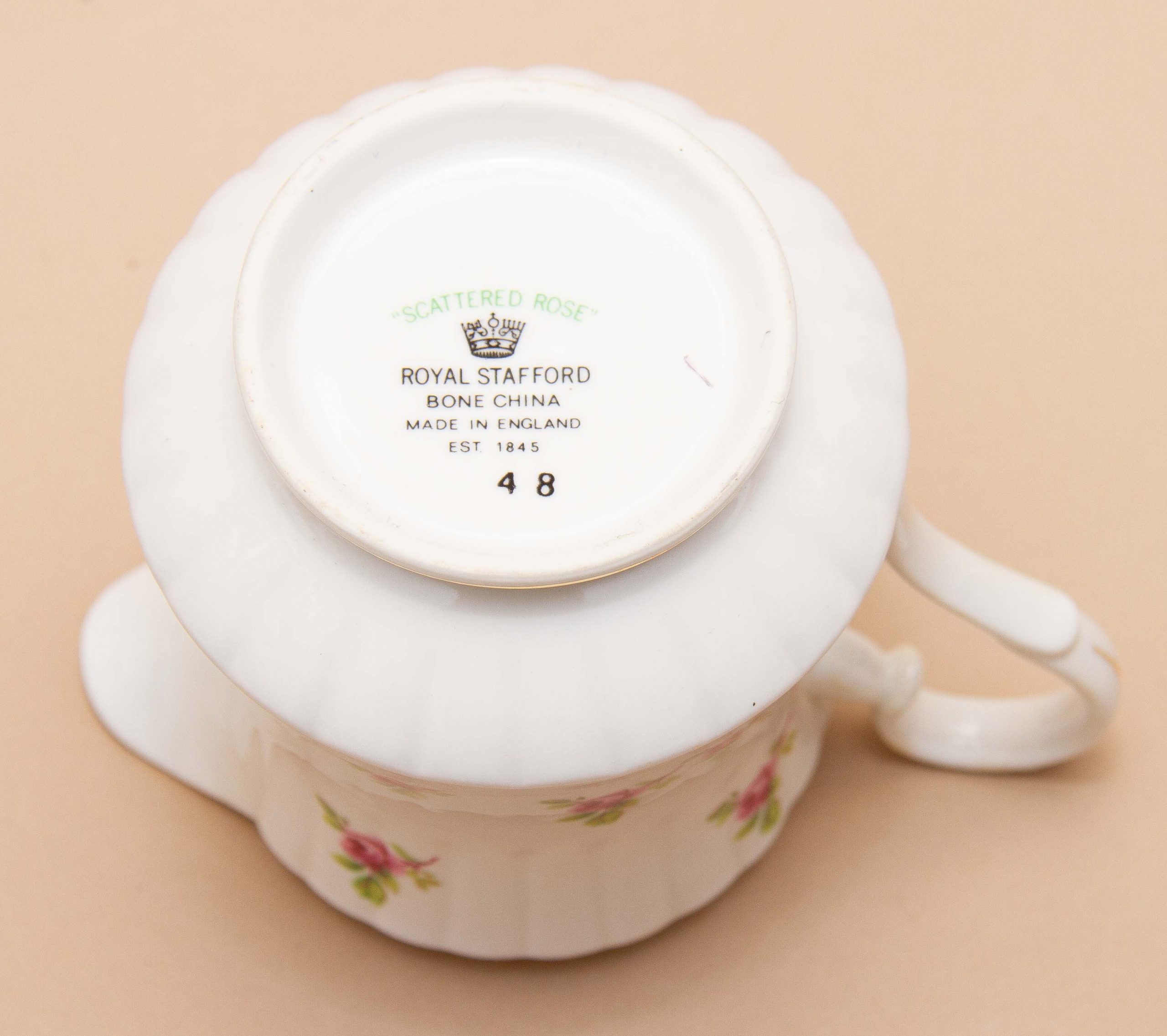 A very pretty Royal Stafford English Bone China jug with a pink rose pattern on call ‘Scattered Rose’.