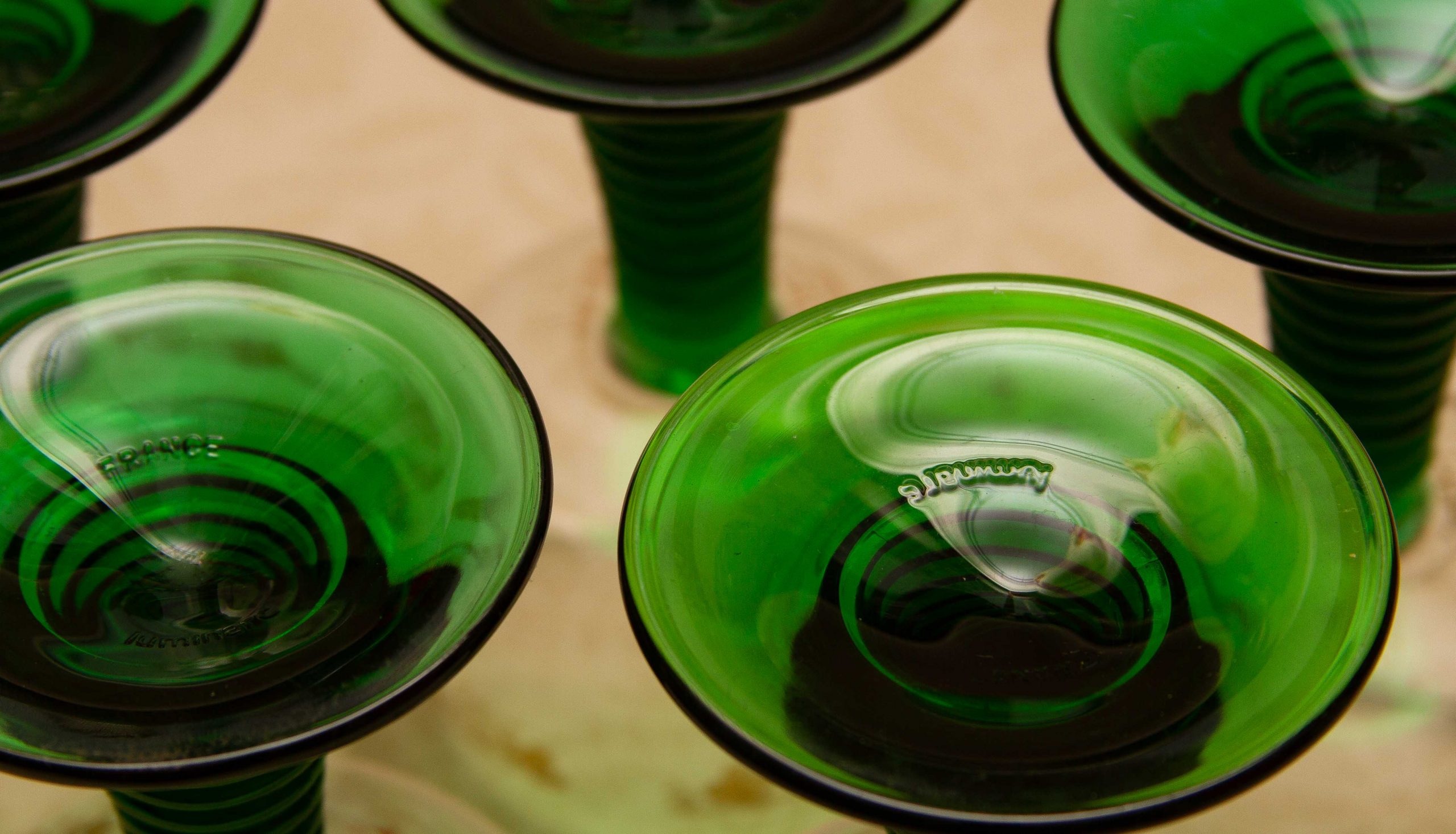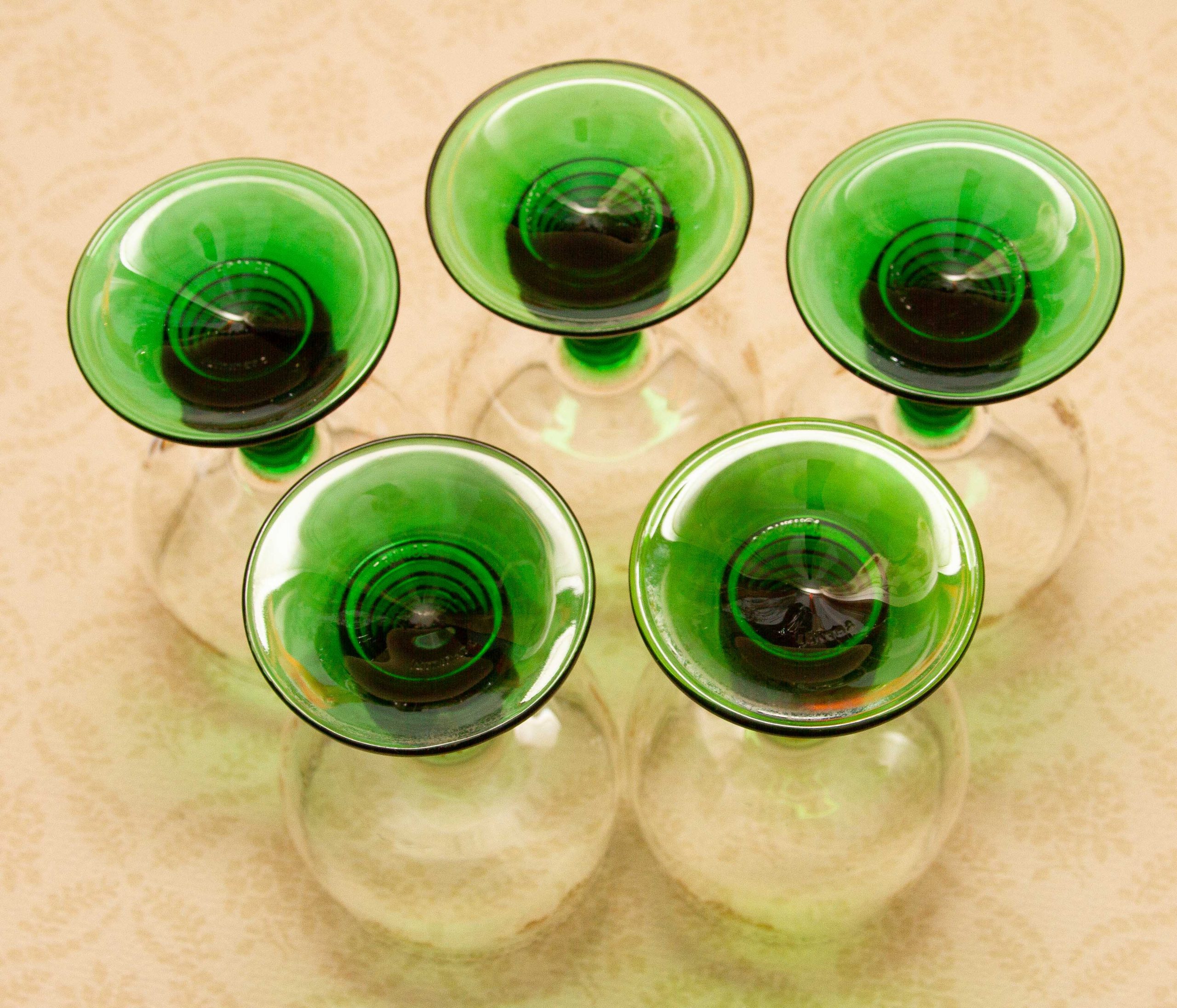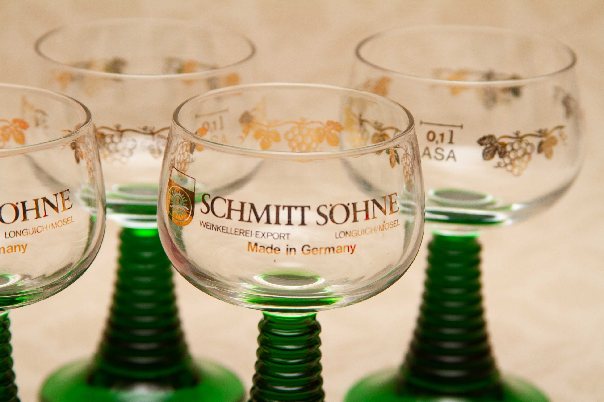 SCHMITT SOHNE Green Stem Goblet Wine Glasses, Luminarc France