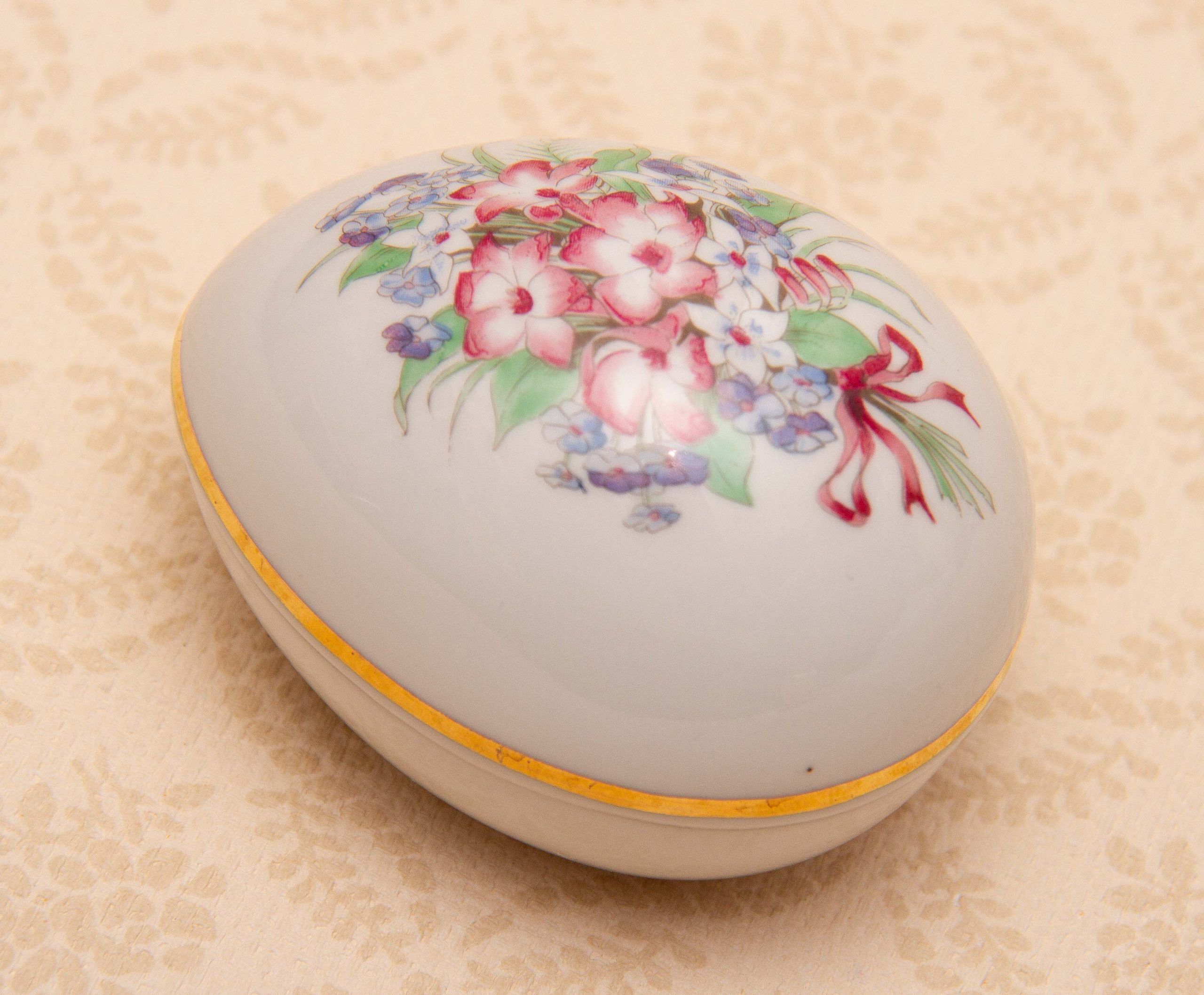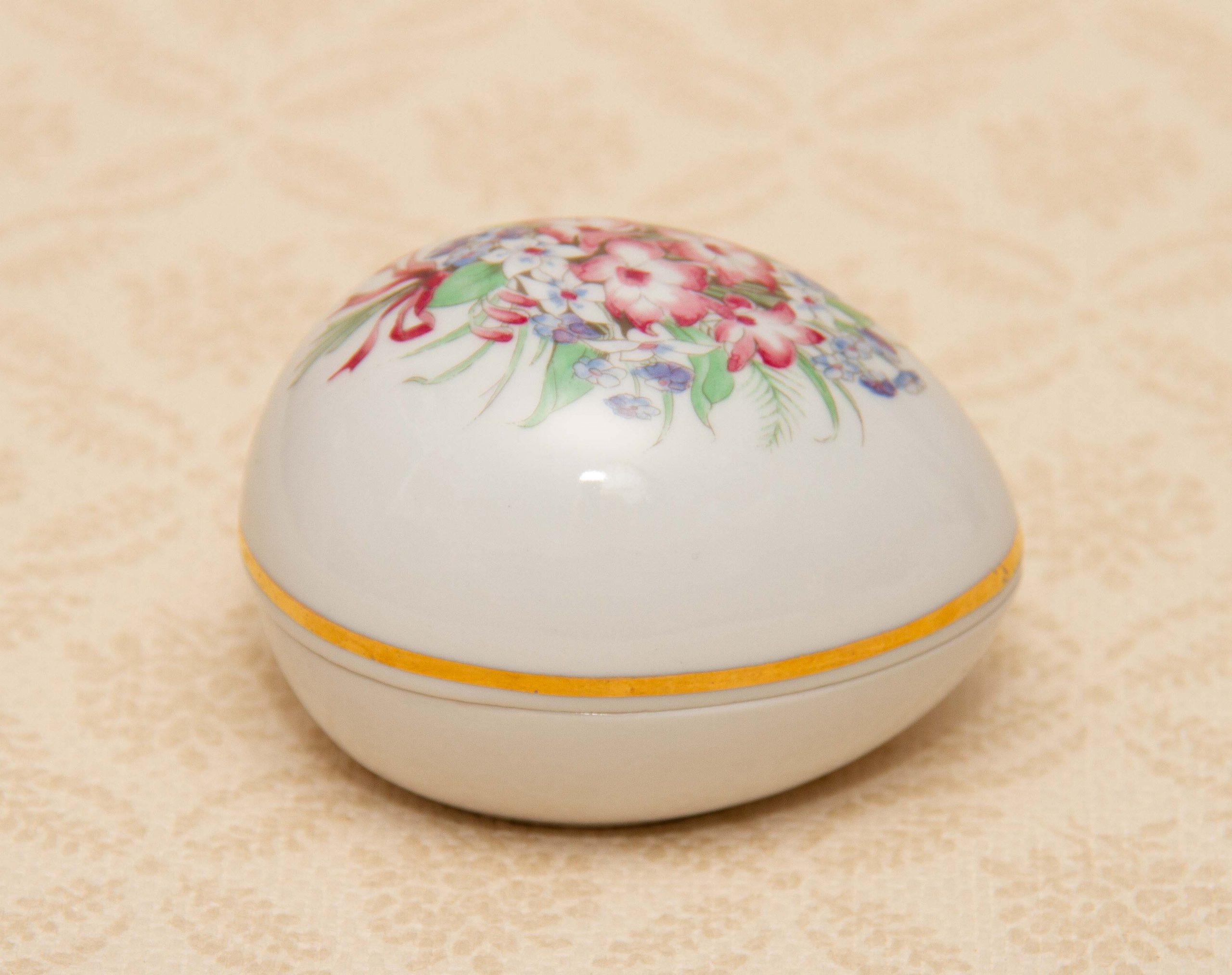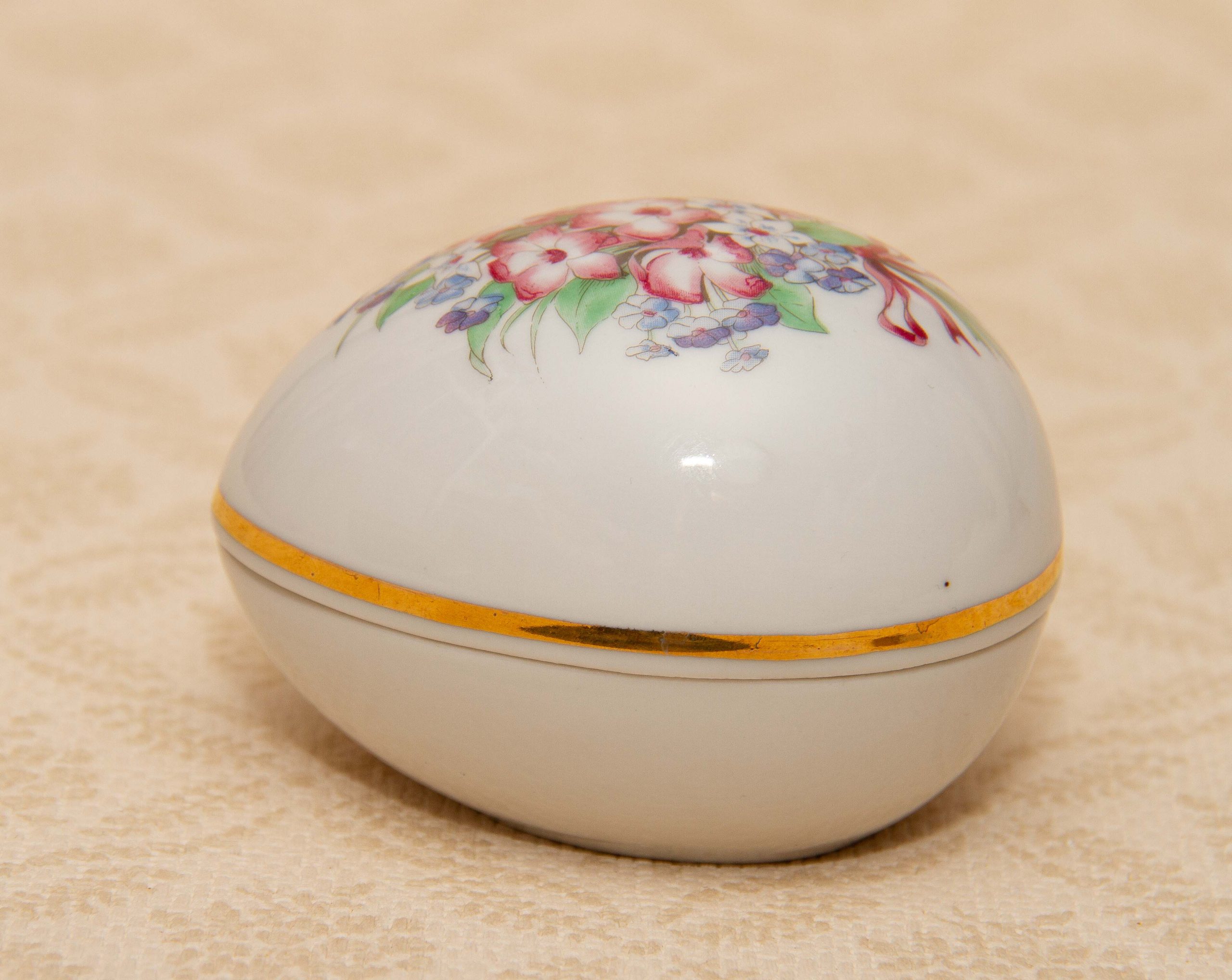 A vintage Schwarzenhammer Porcelain Egg Shaped Jewellery Trinket Box, with a floral pattern on the lid