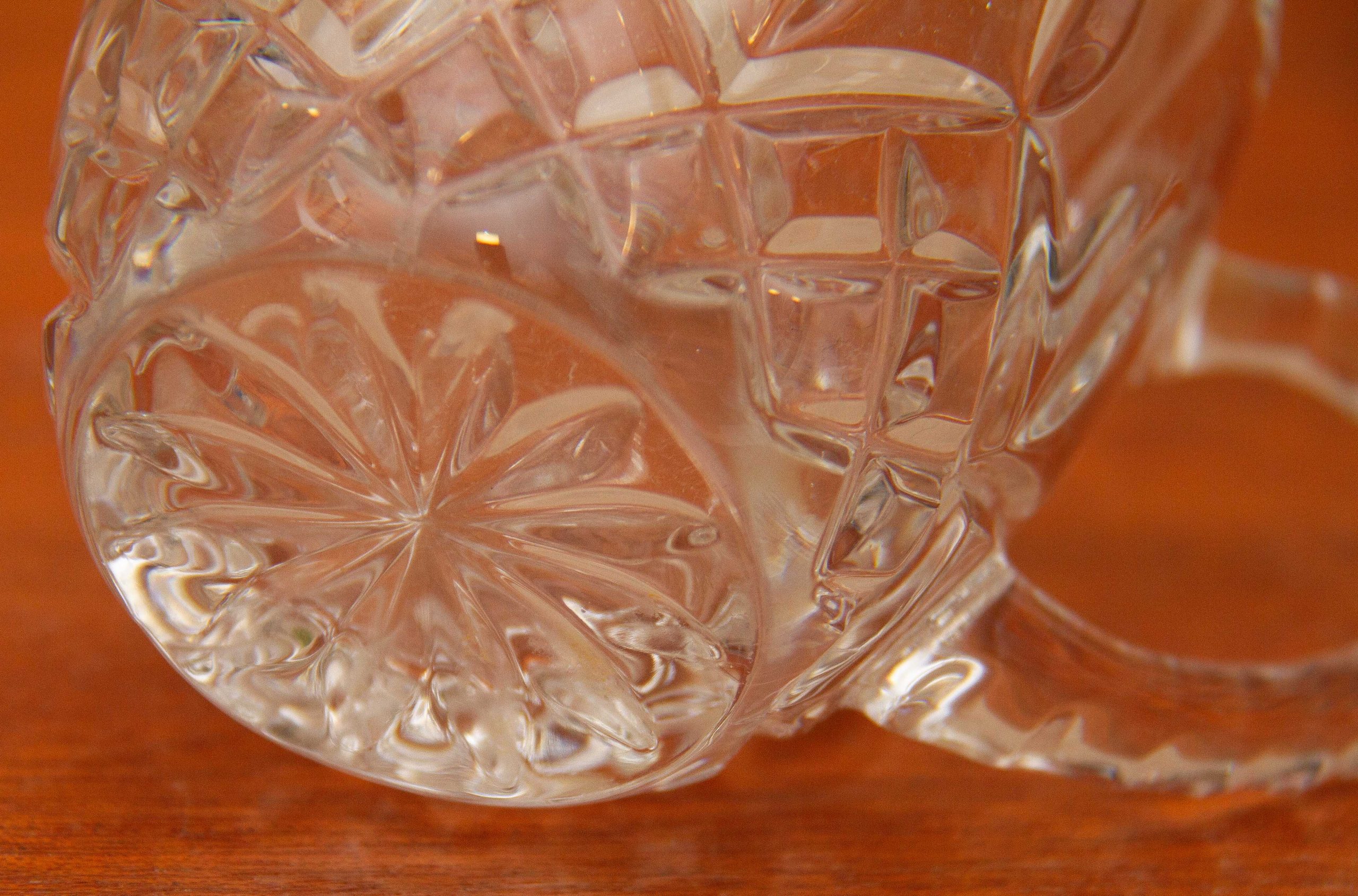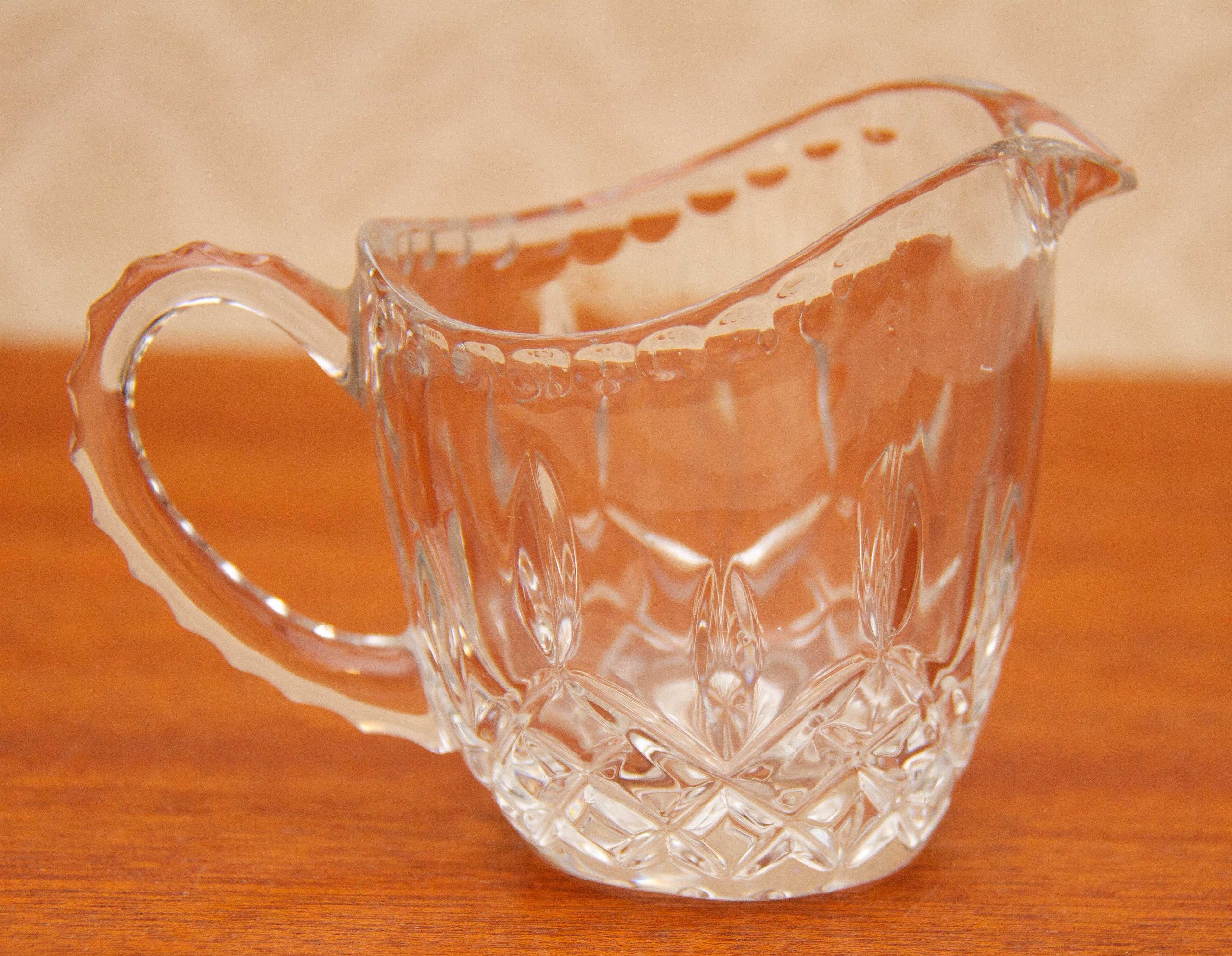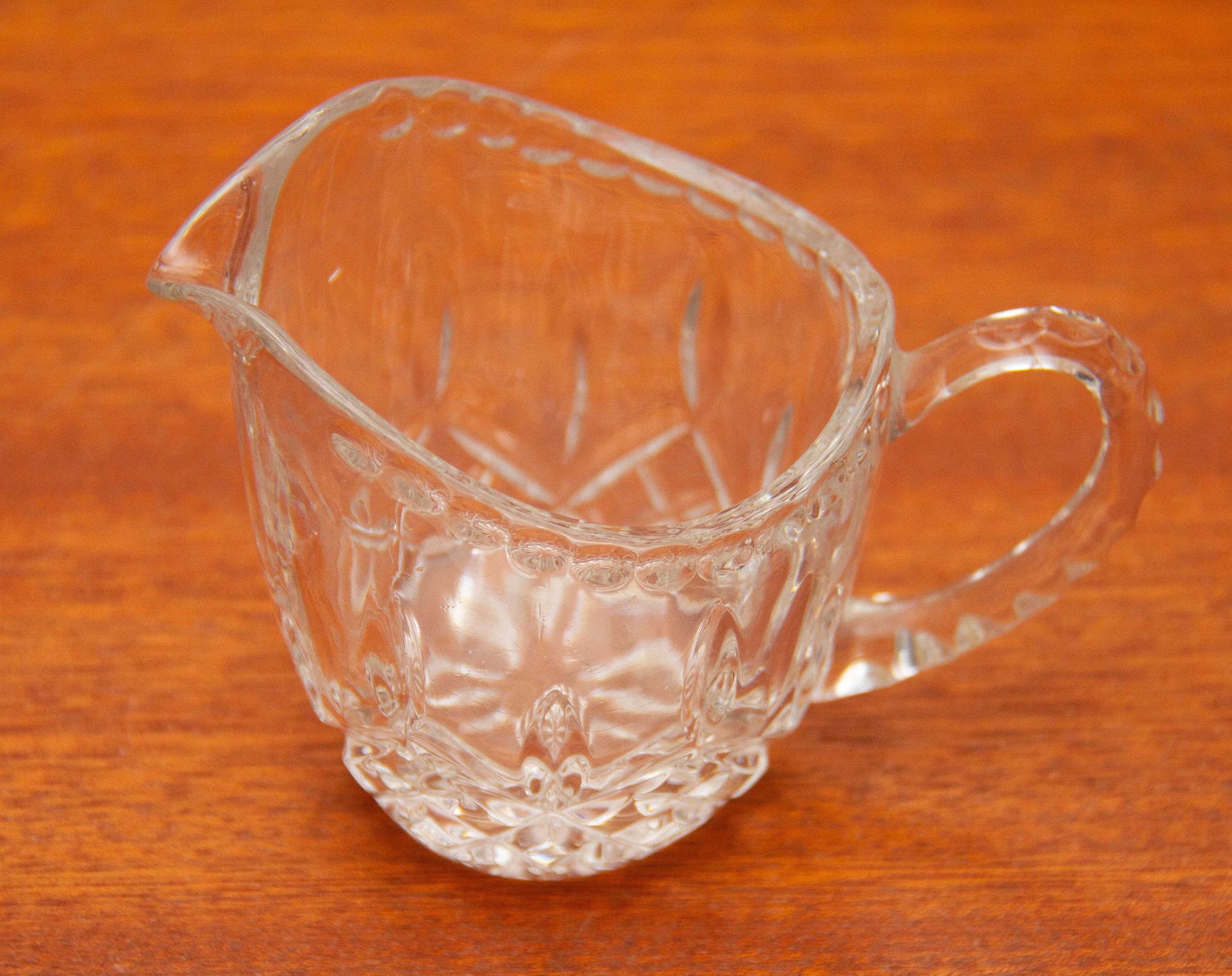 A small decorative vintage clear glass jug/creamer. With cut star pattern on the base.