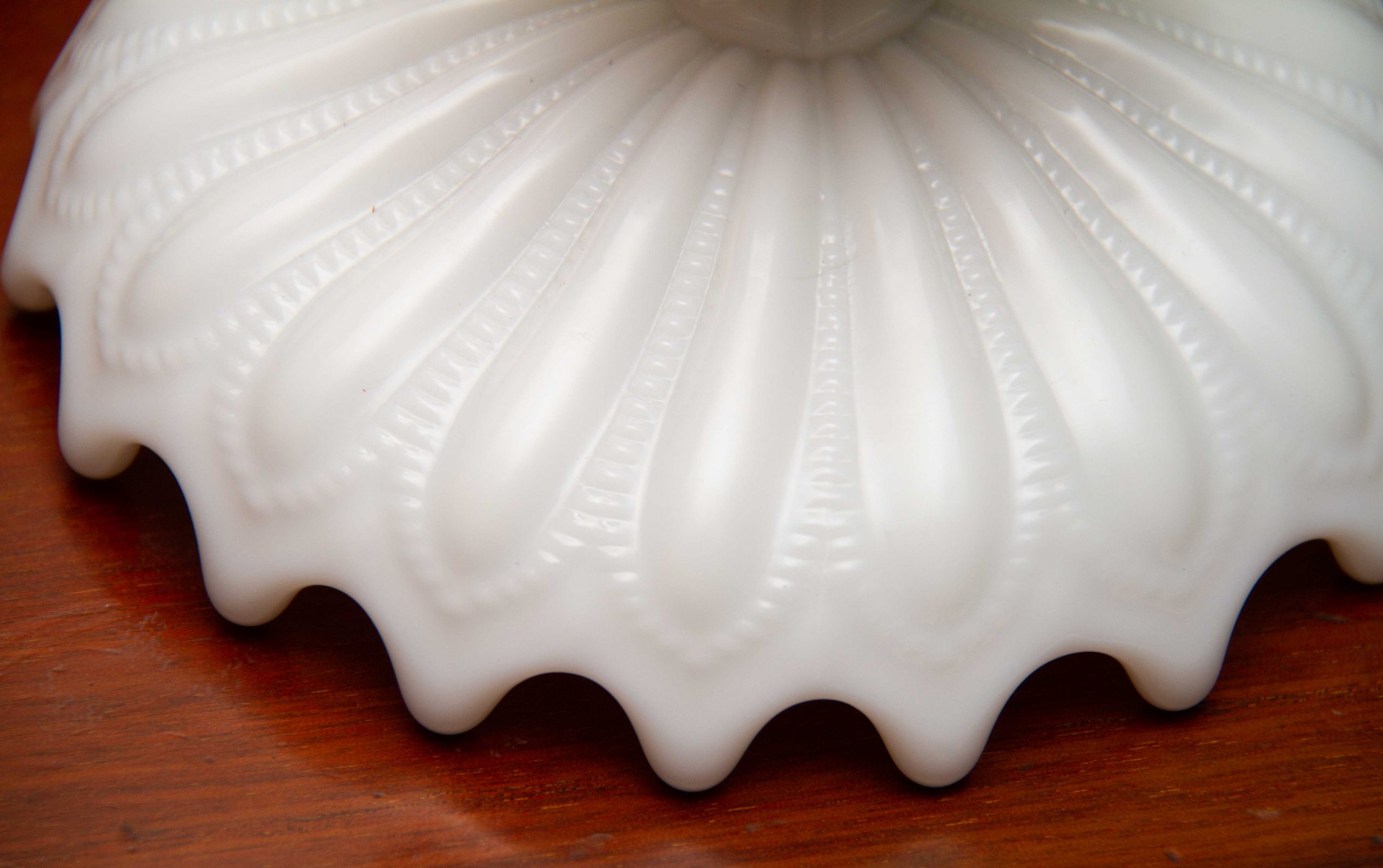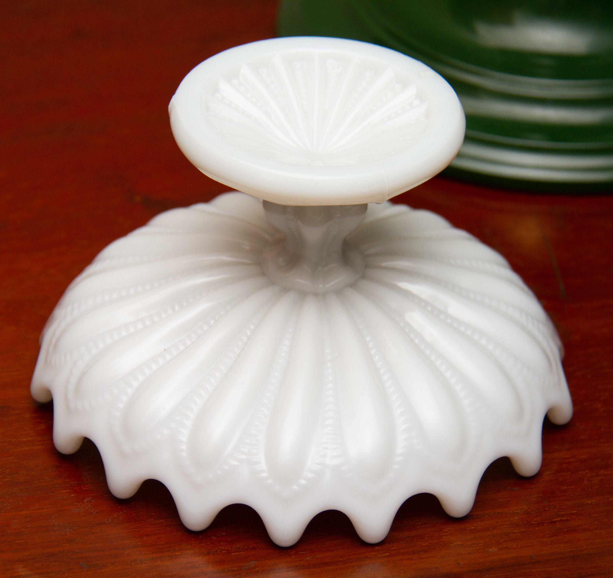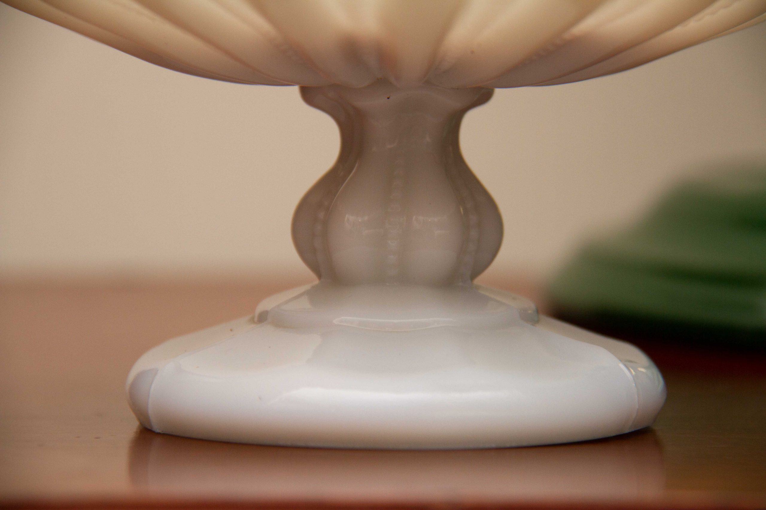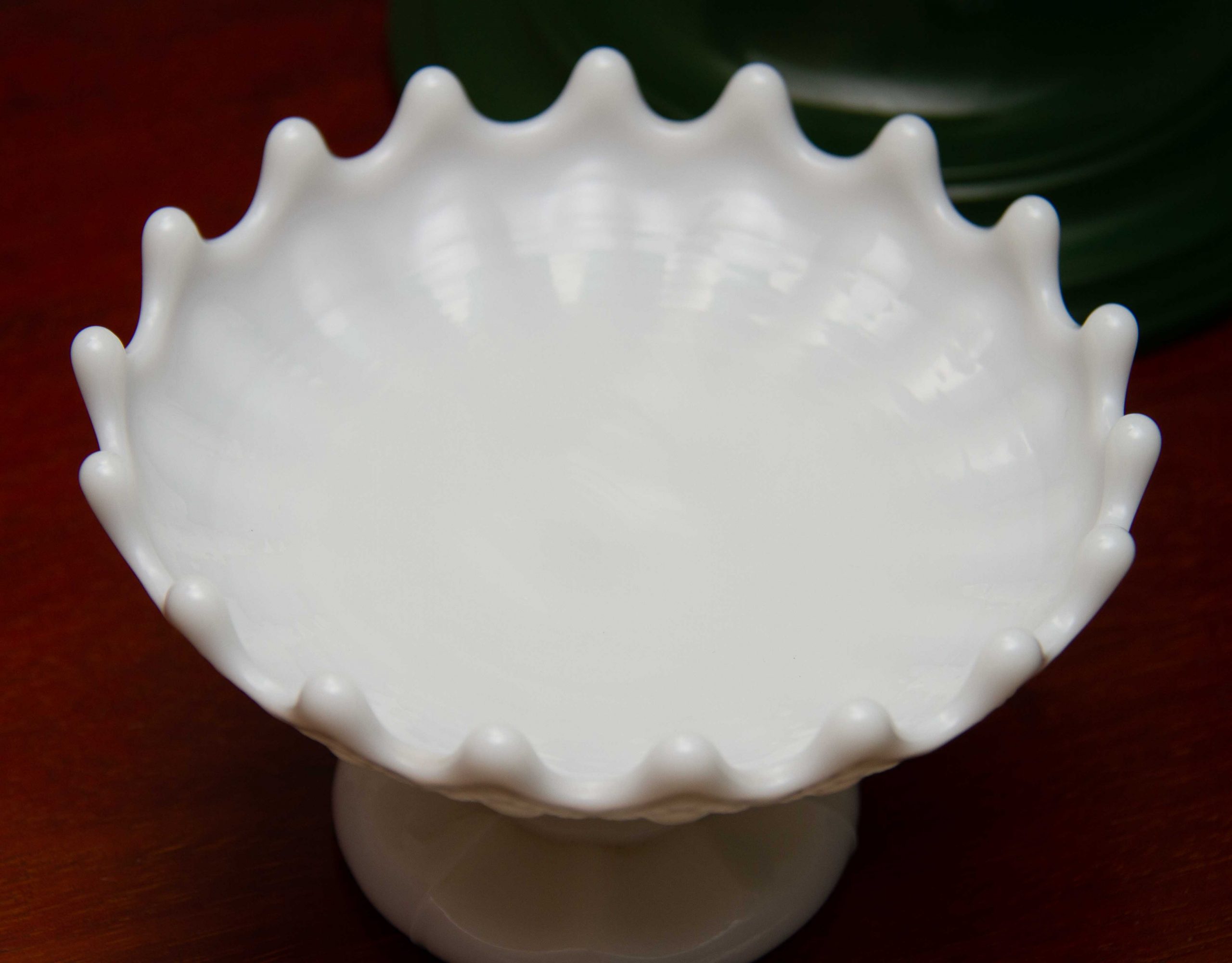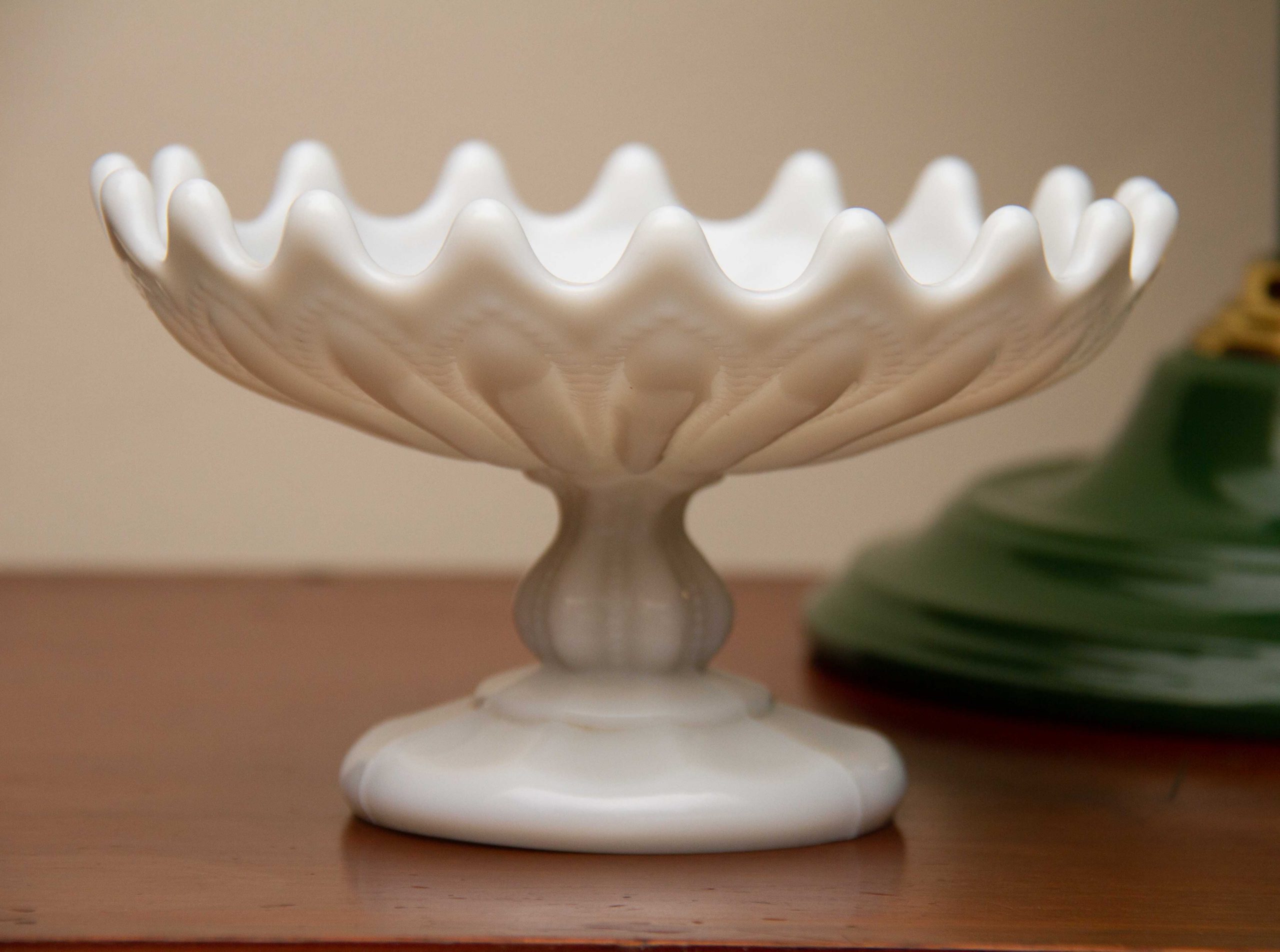 Gorgeous small vintage Milk Glass pedestal dish, with a decorative frilled edge. This could be used for presenting chocolates or as a trinket dish.