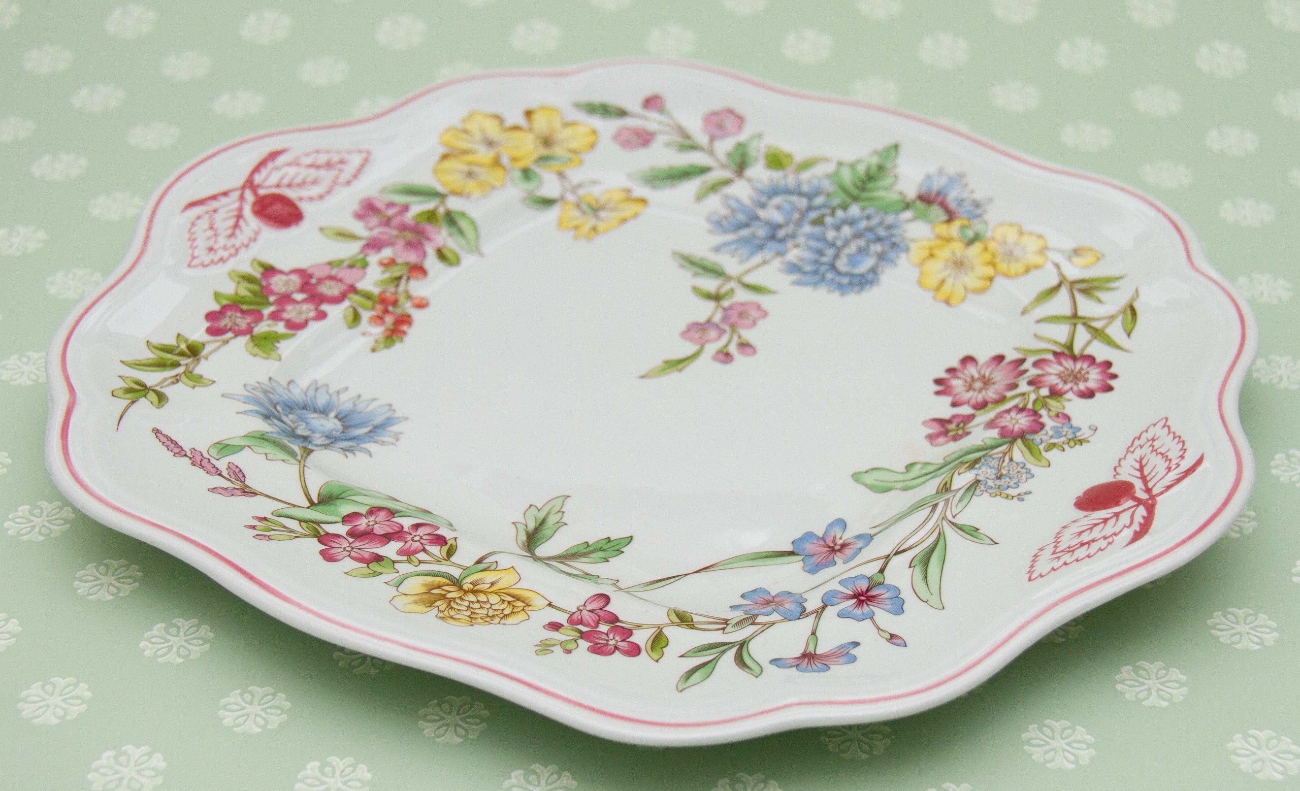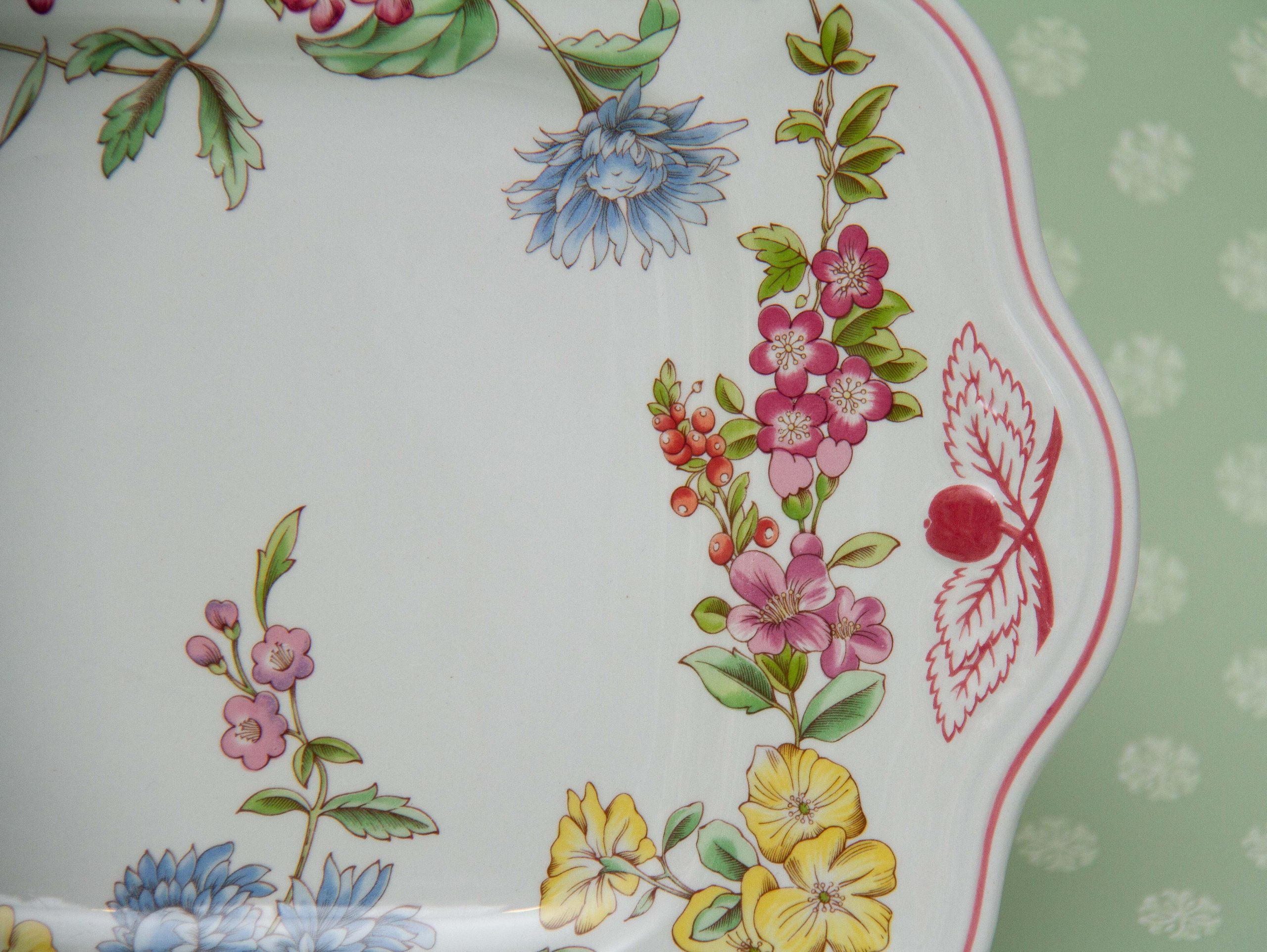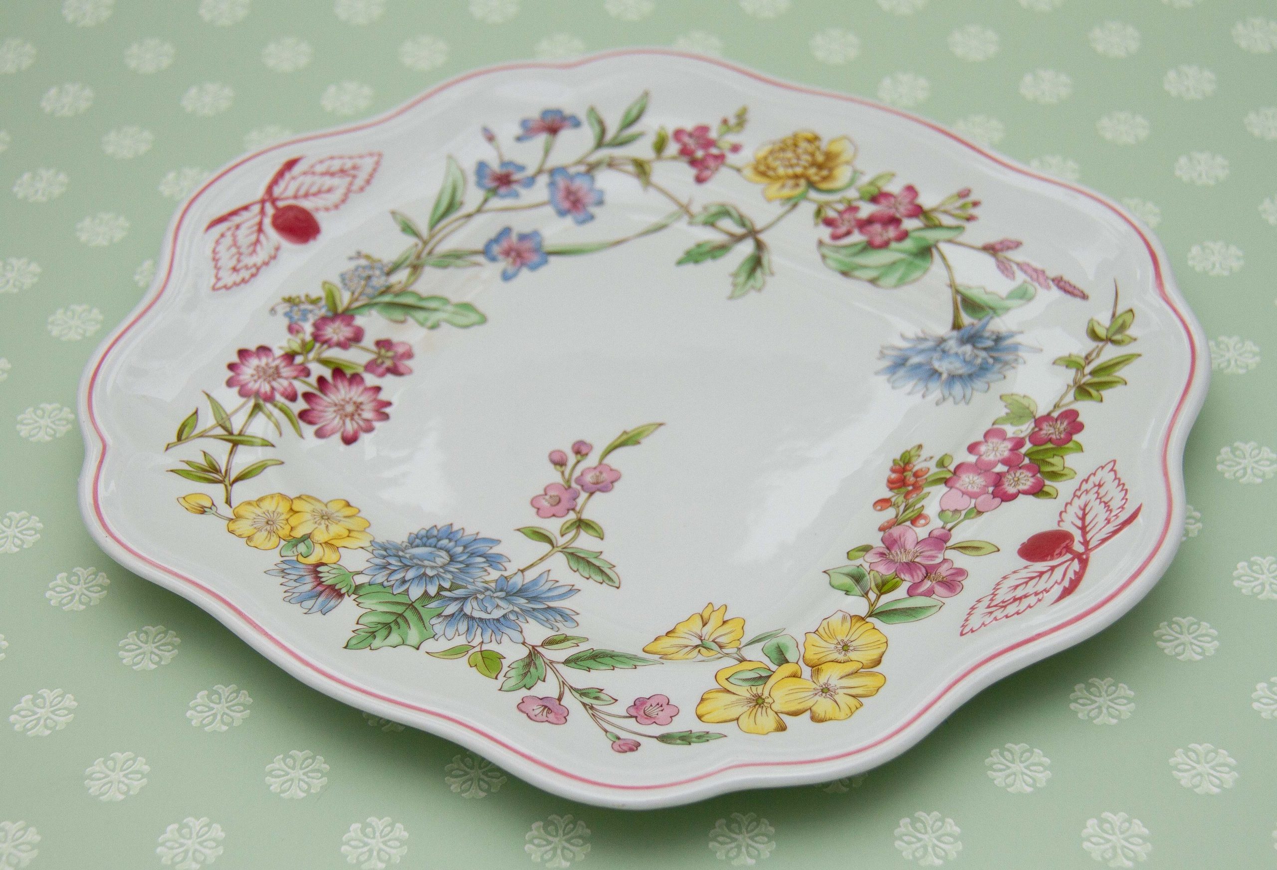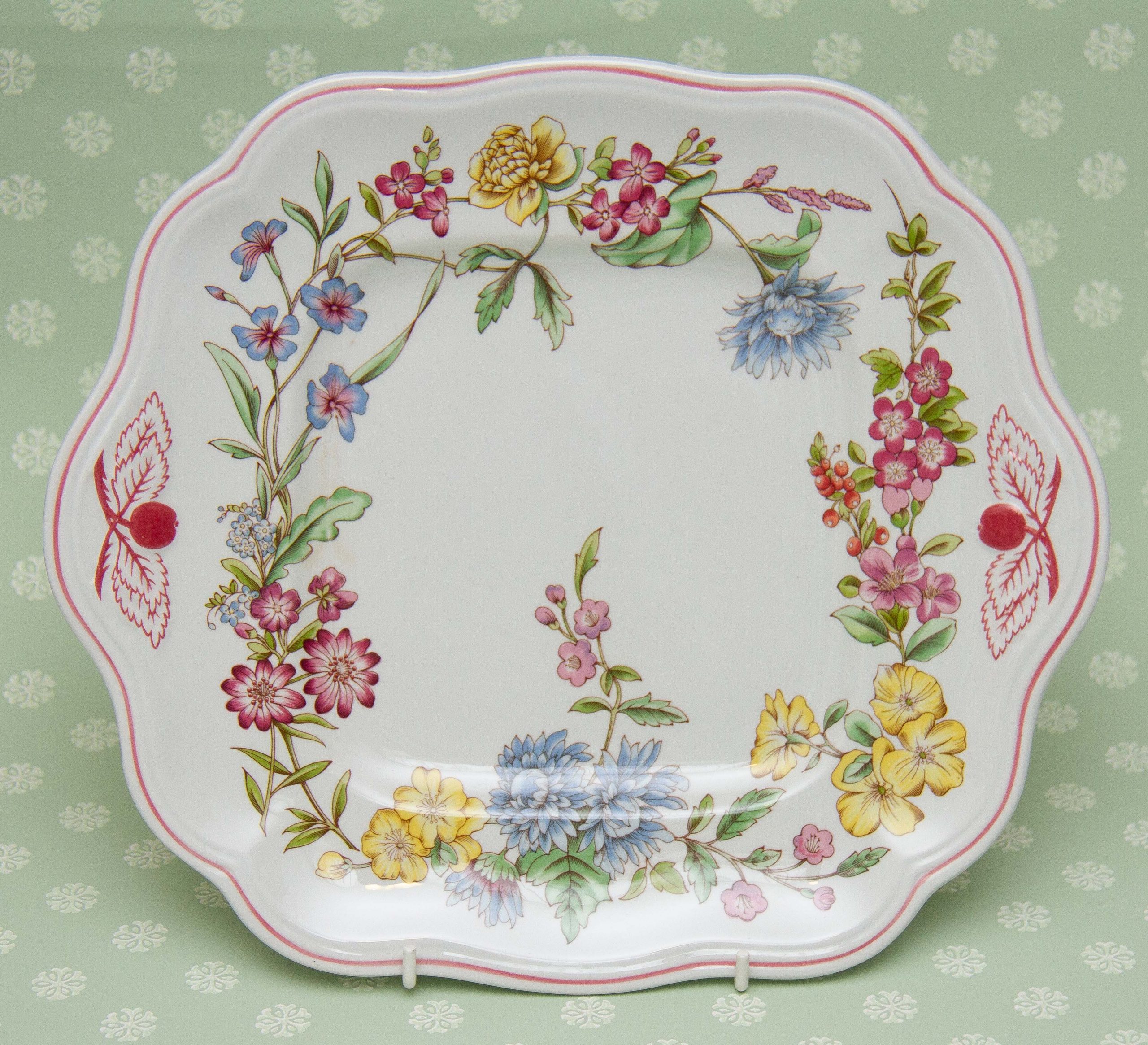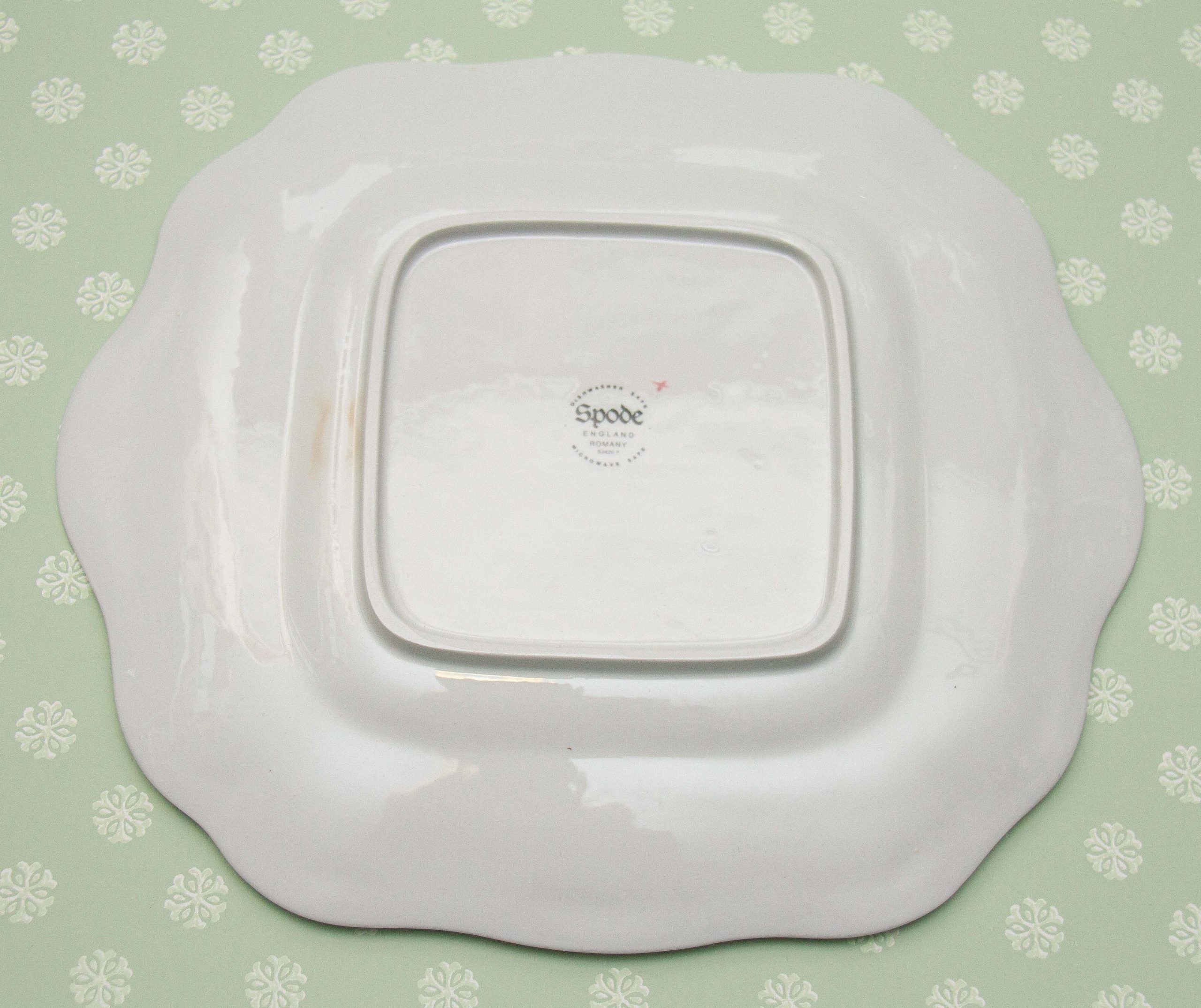 A vintage Spode square cake or sandwich serving plate with handles, in the Romany pattern. Made in England