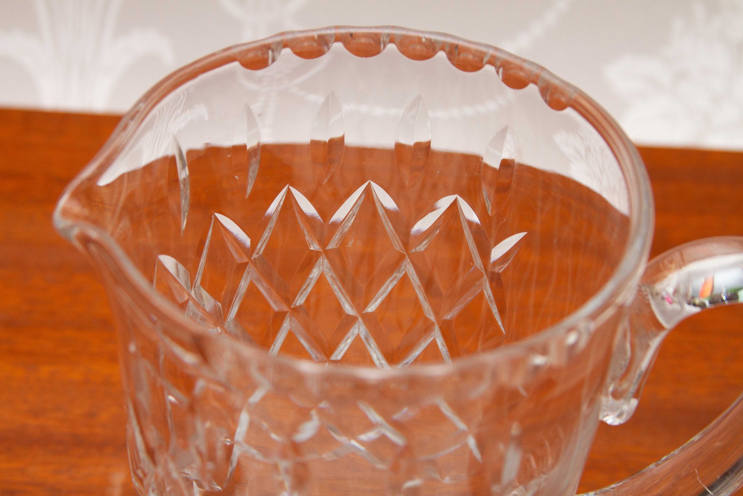 A beautiful large clear vintage glass Jug/Pitcher. Heavy glass decorative jug, could be used for serving fruit juice, water, Pimm’s cocktails or would look fabulous as a vase.