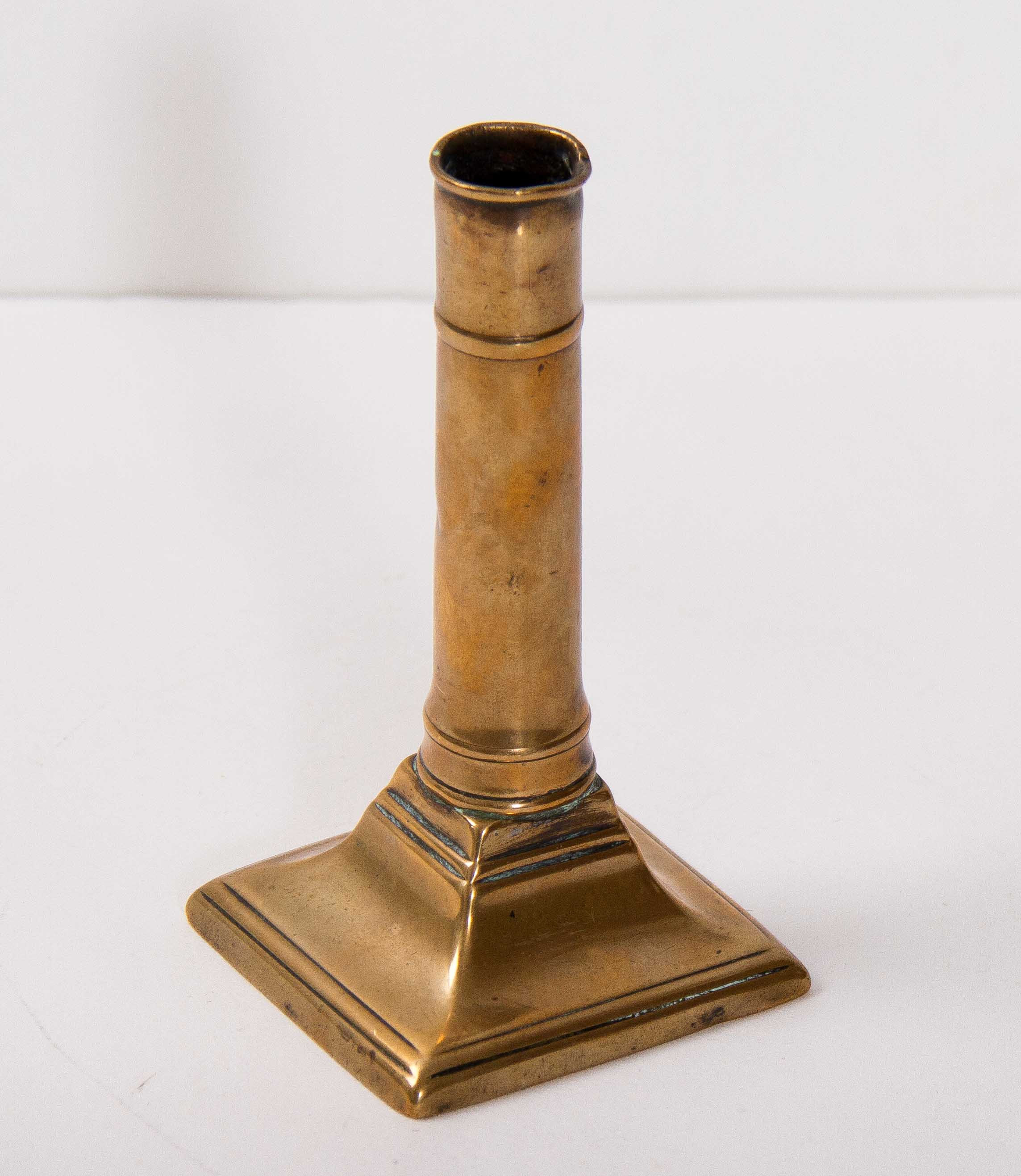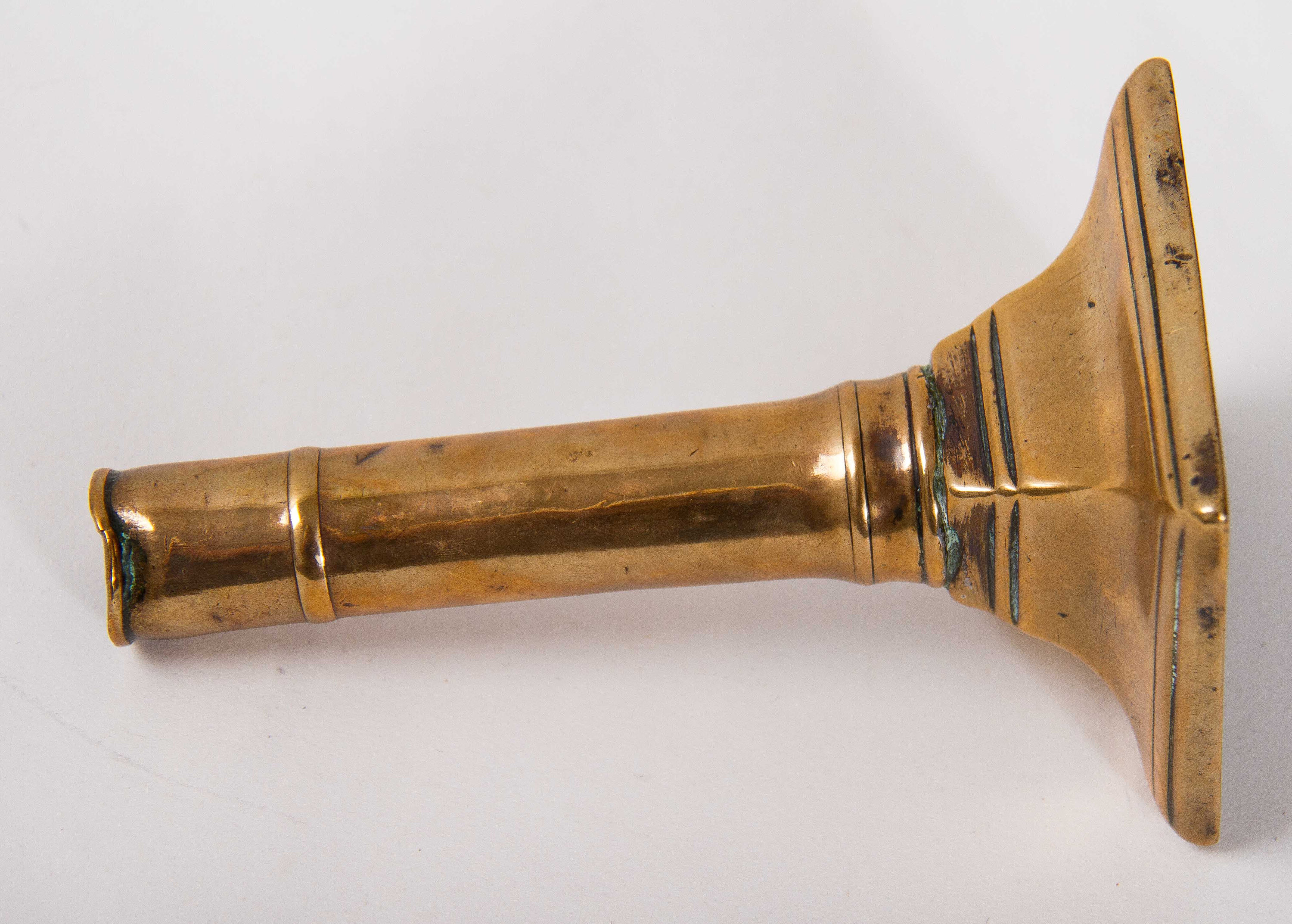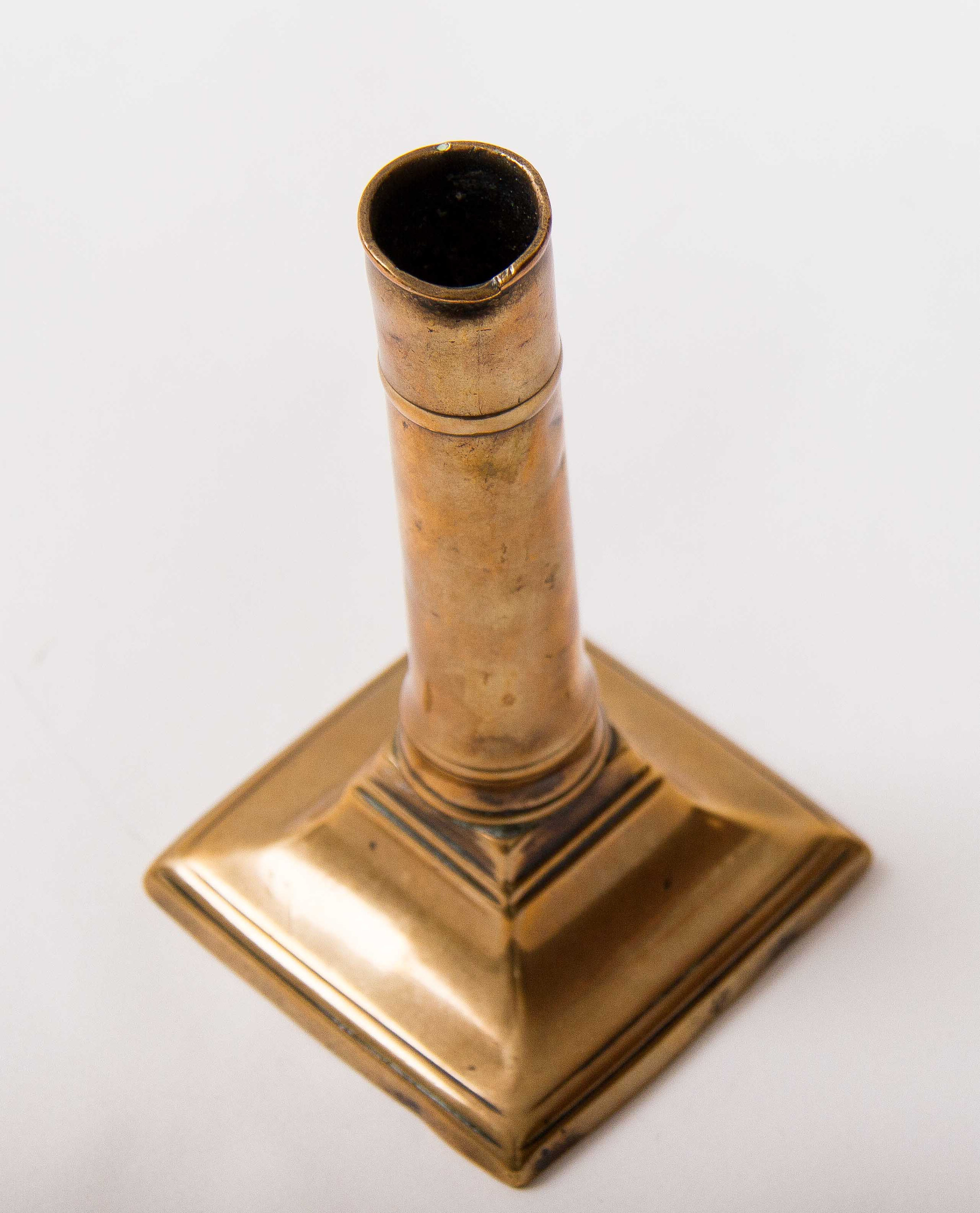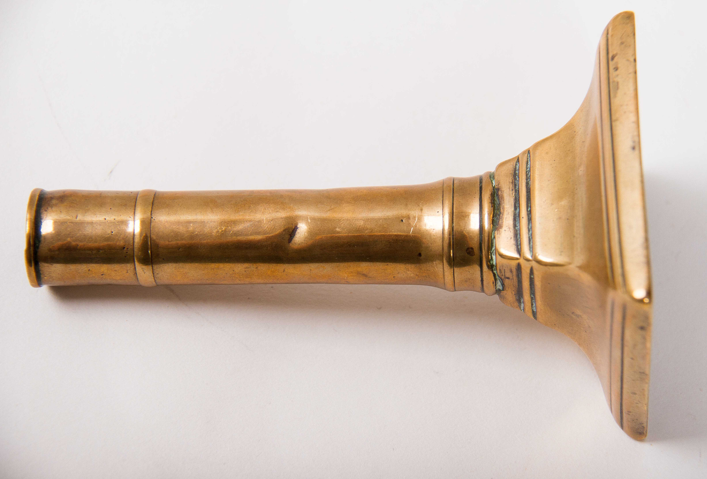 A vintage brass candlestick candle holder, possibly hand made. With a good patina, tarnishing and dents which give it great character. A decent solid weight, not tinny.