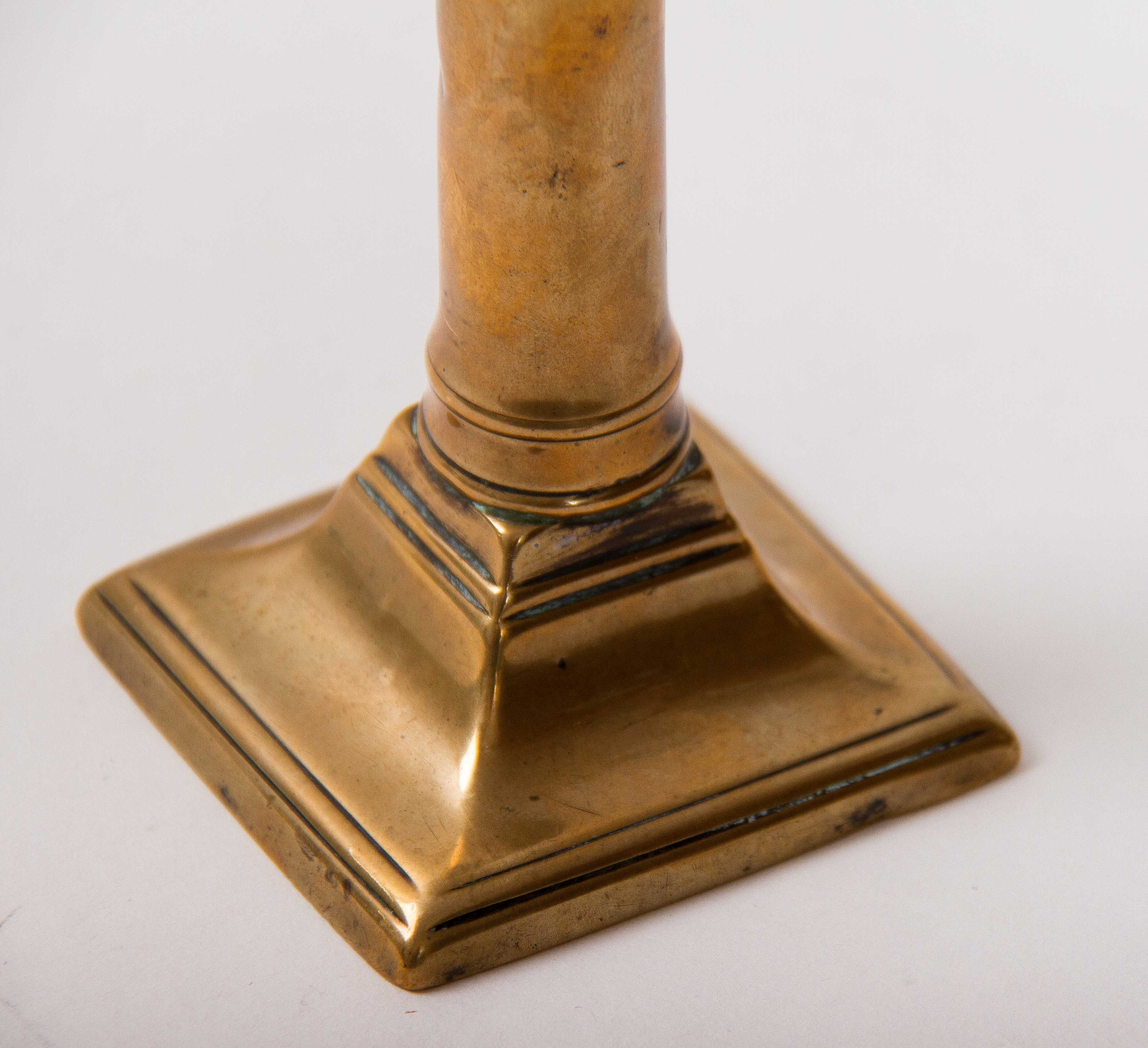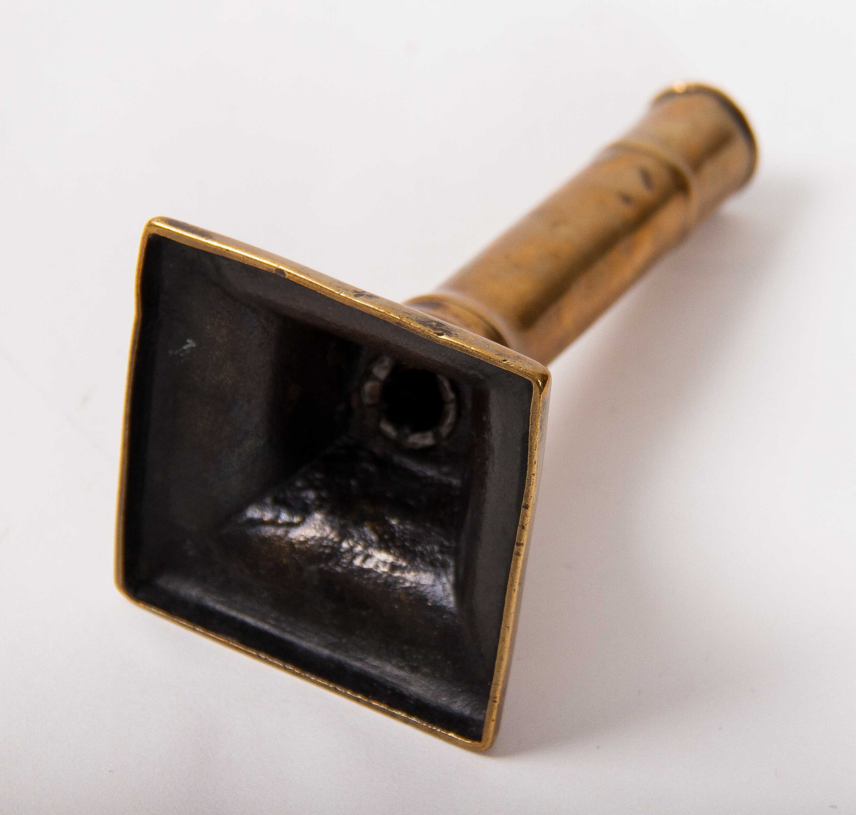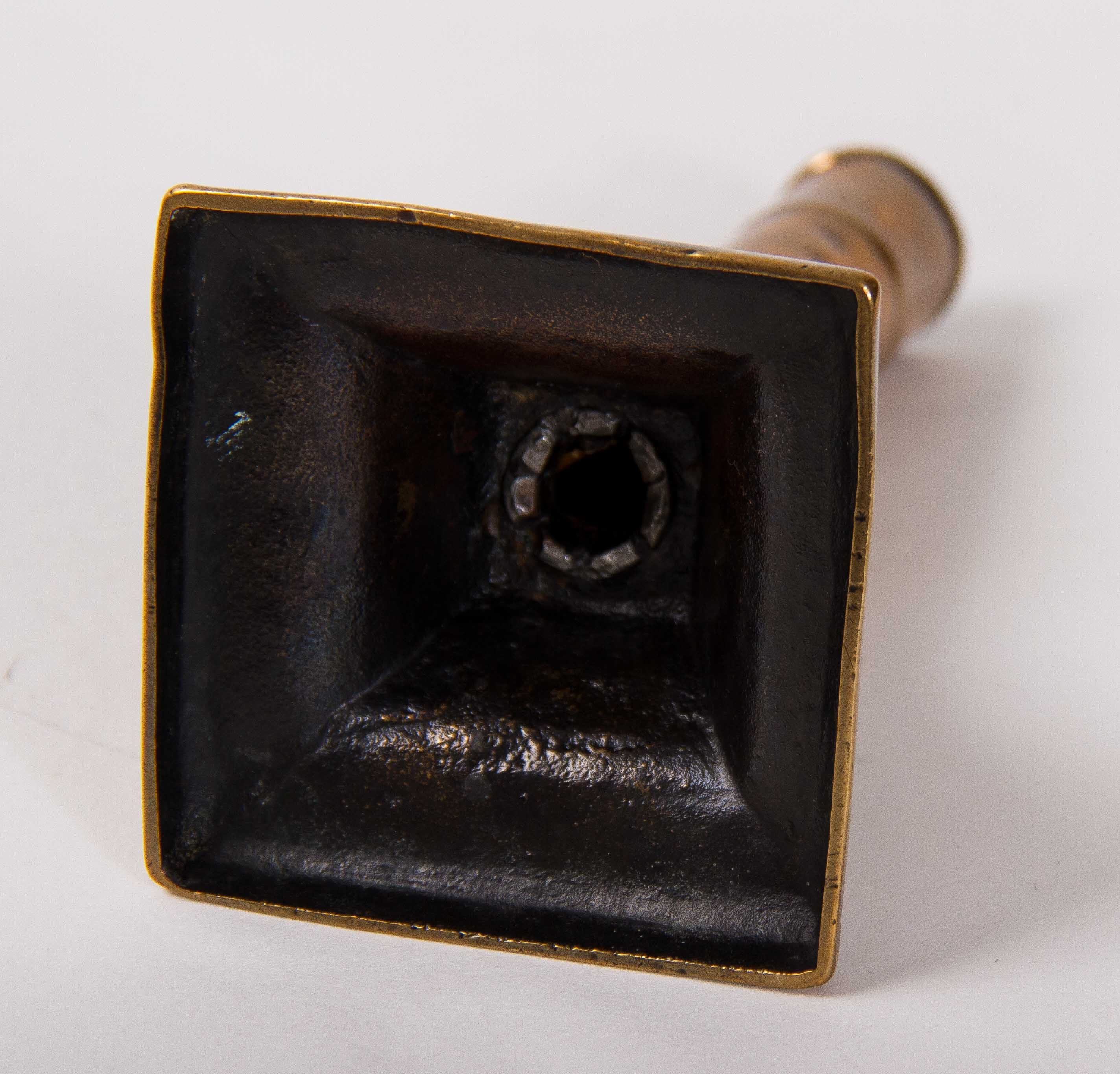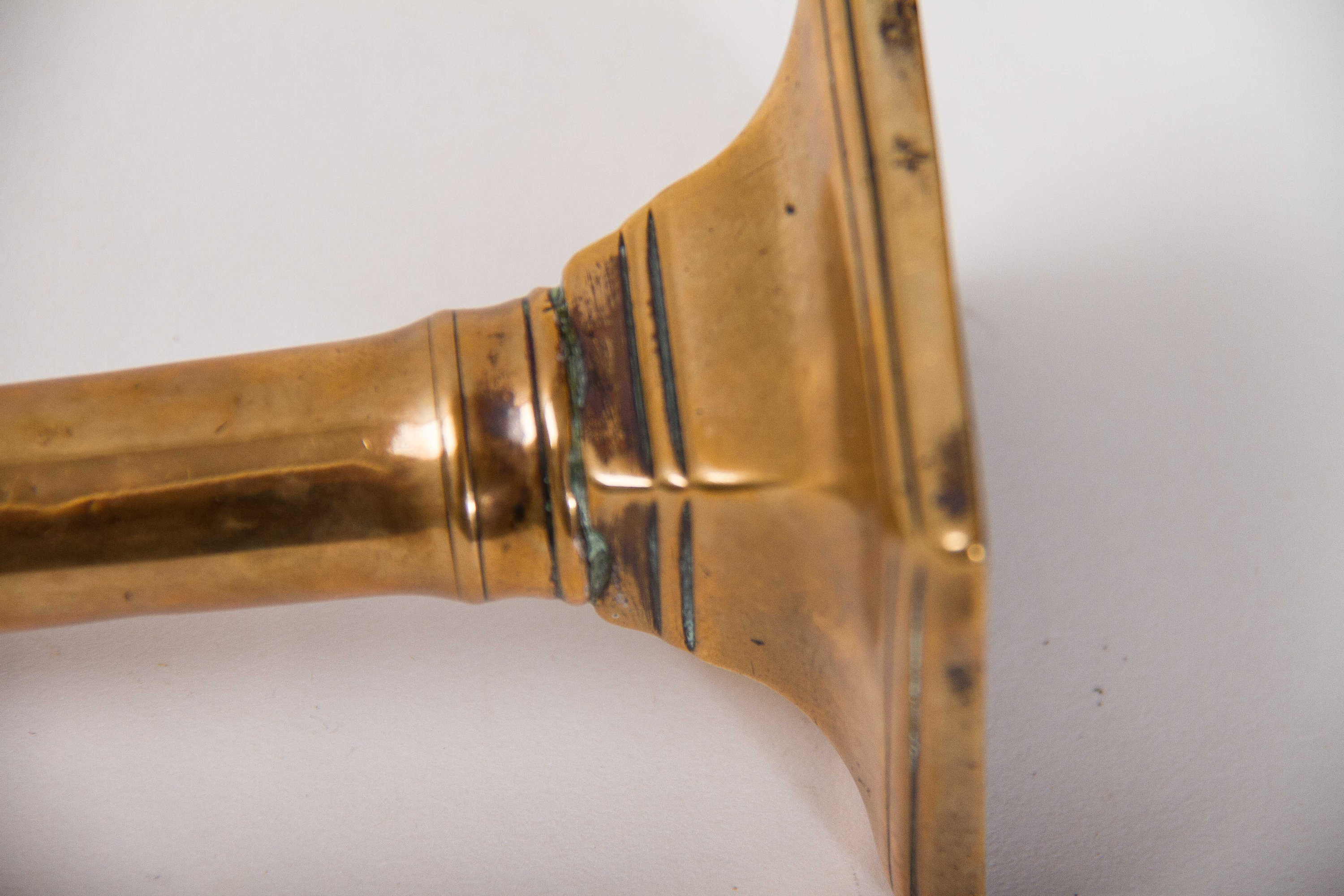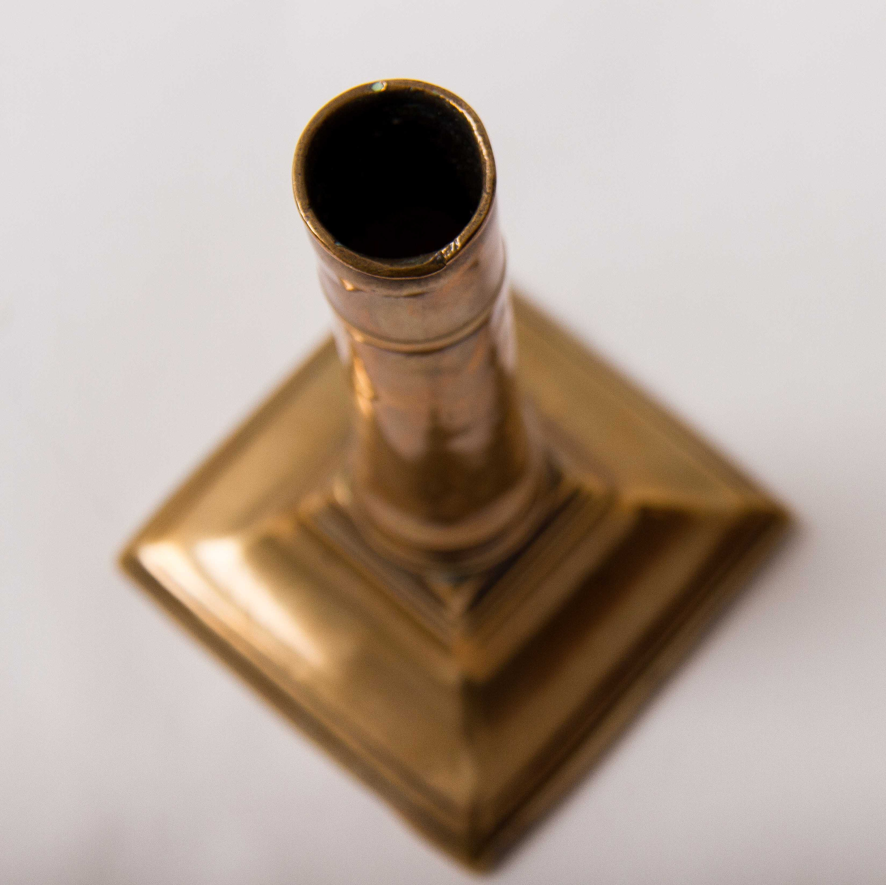 A vintage brass candlestick candle holder, possibly hand made. With a good patina, tarnishing and dents which give it great character. A decent solid weight, not tinny.