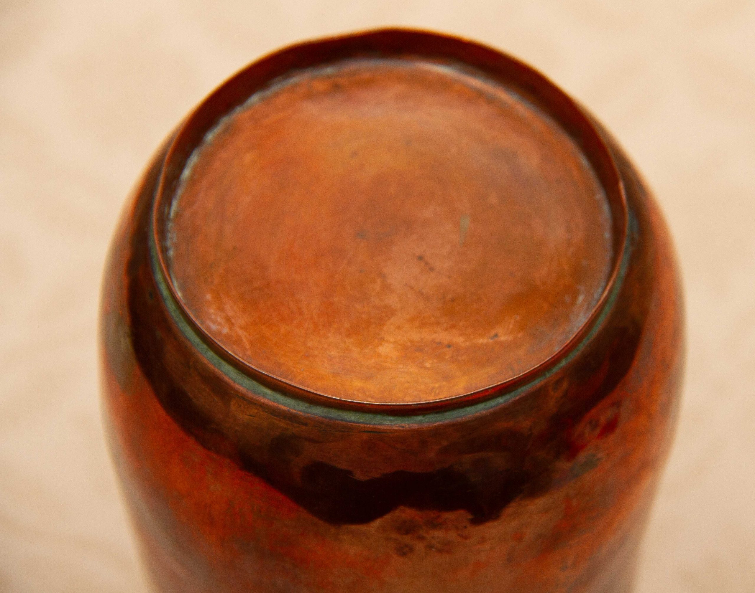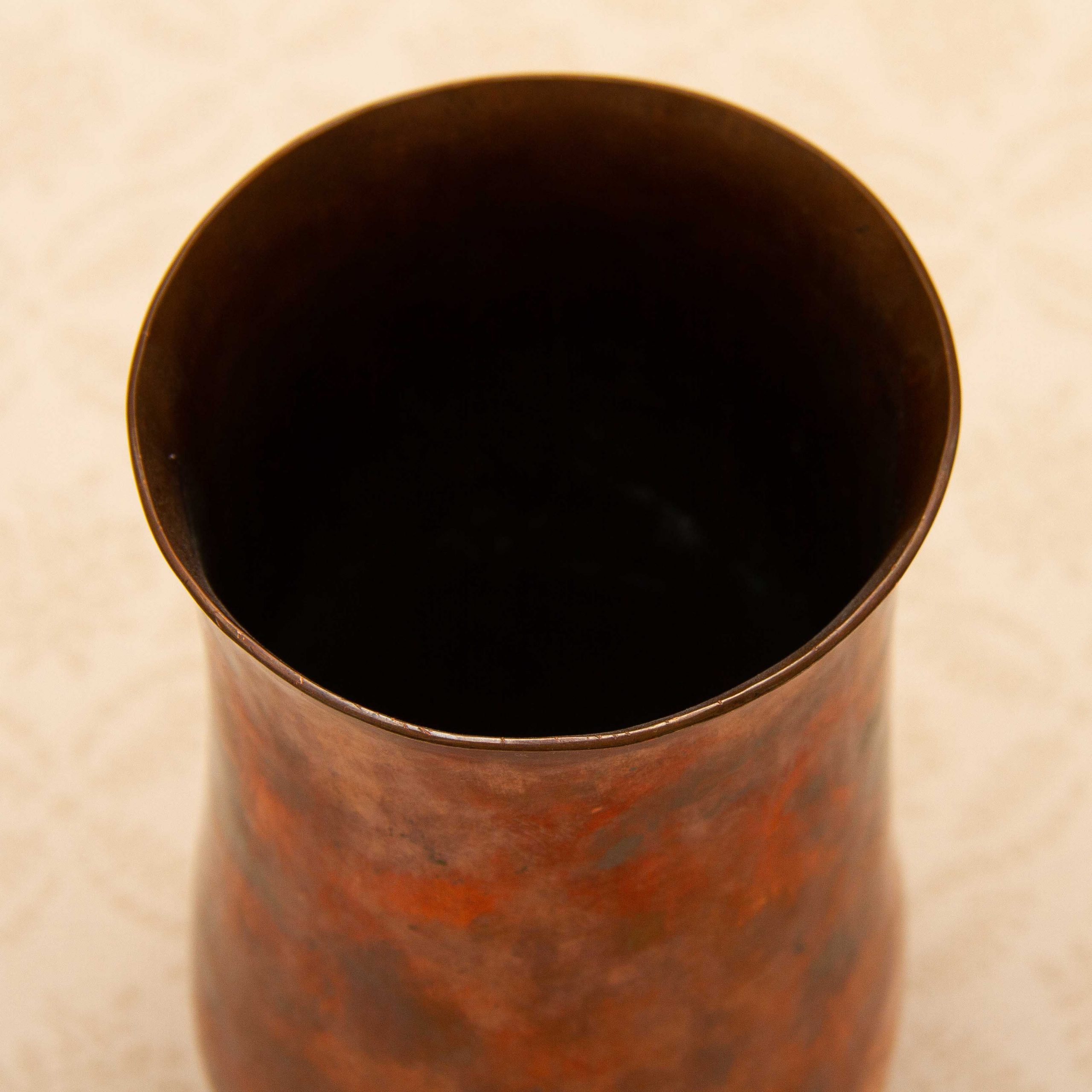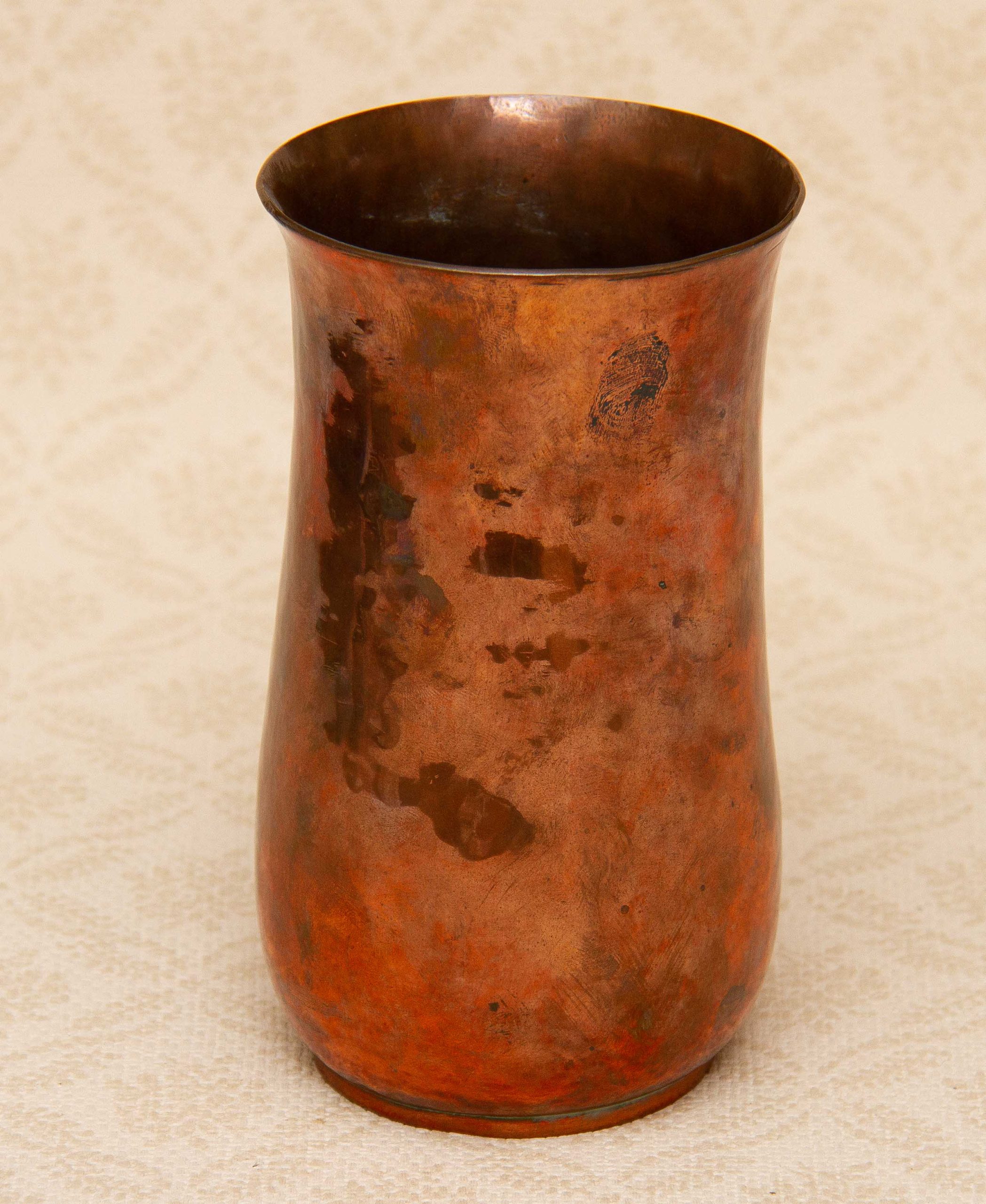 A hammered copper vase. This is quite heavy and could be used as a vase or a pen pot