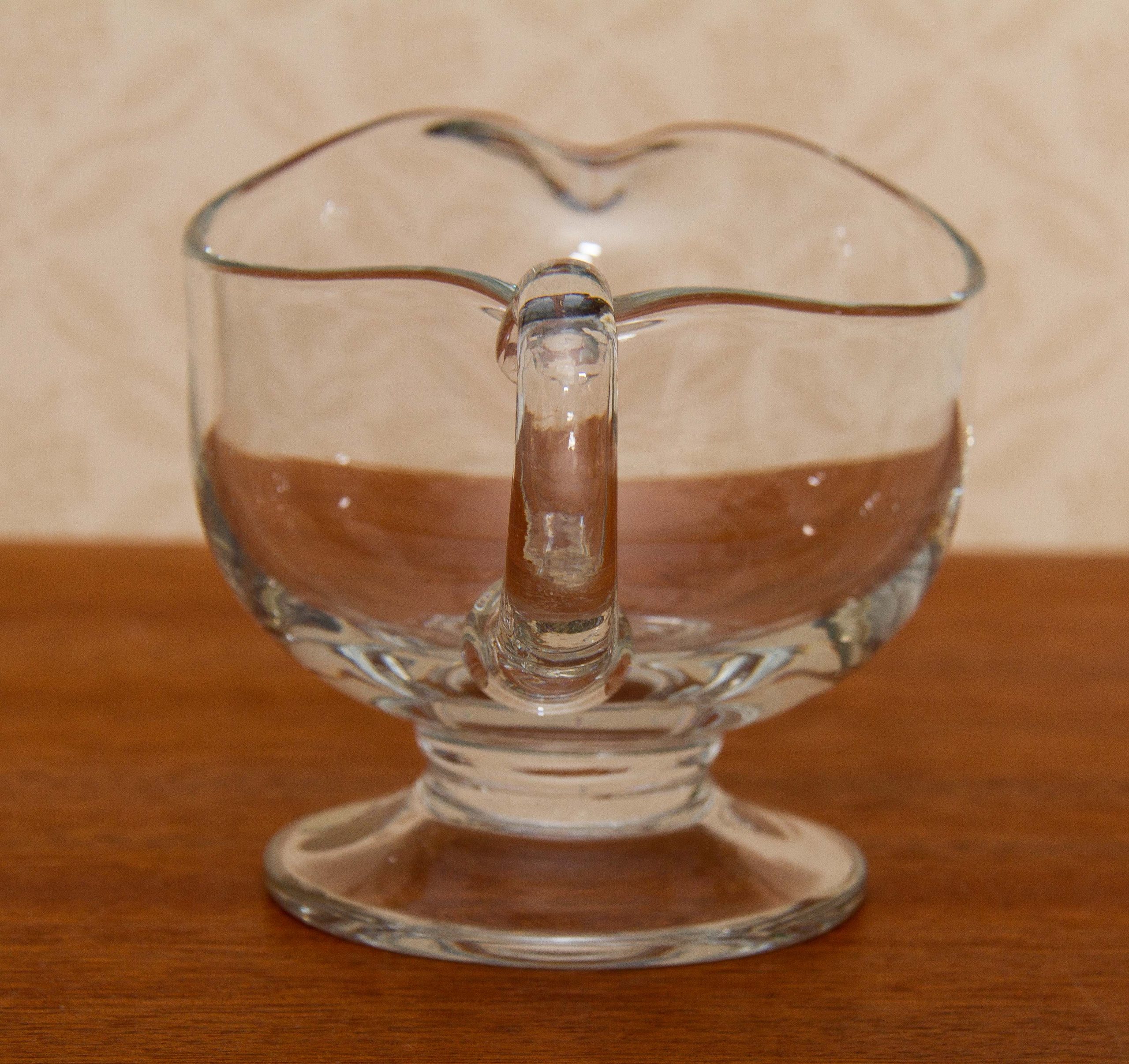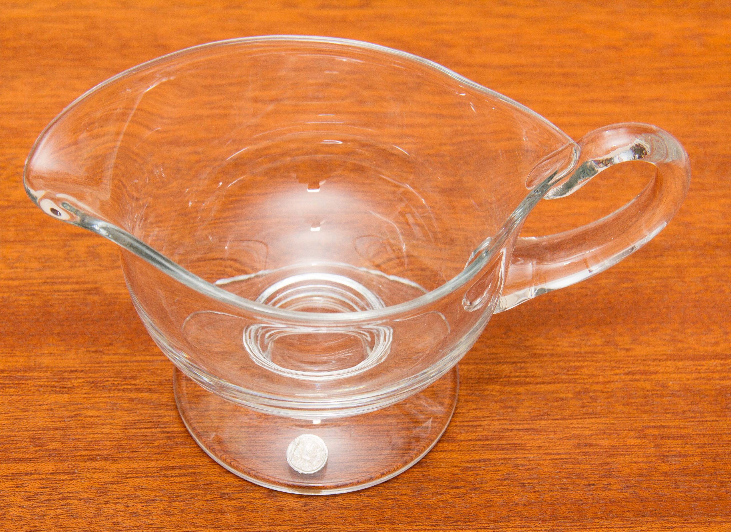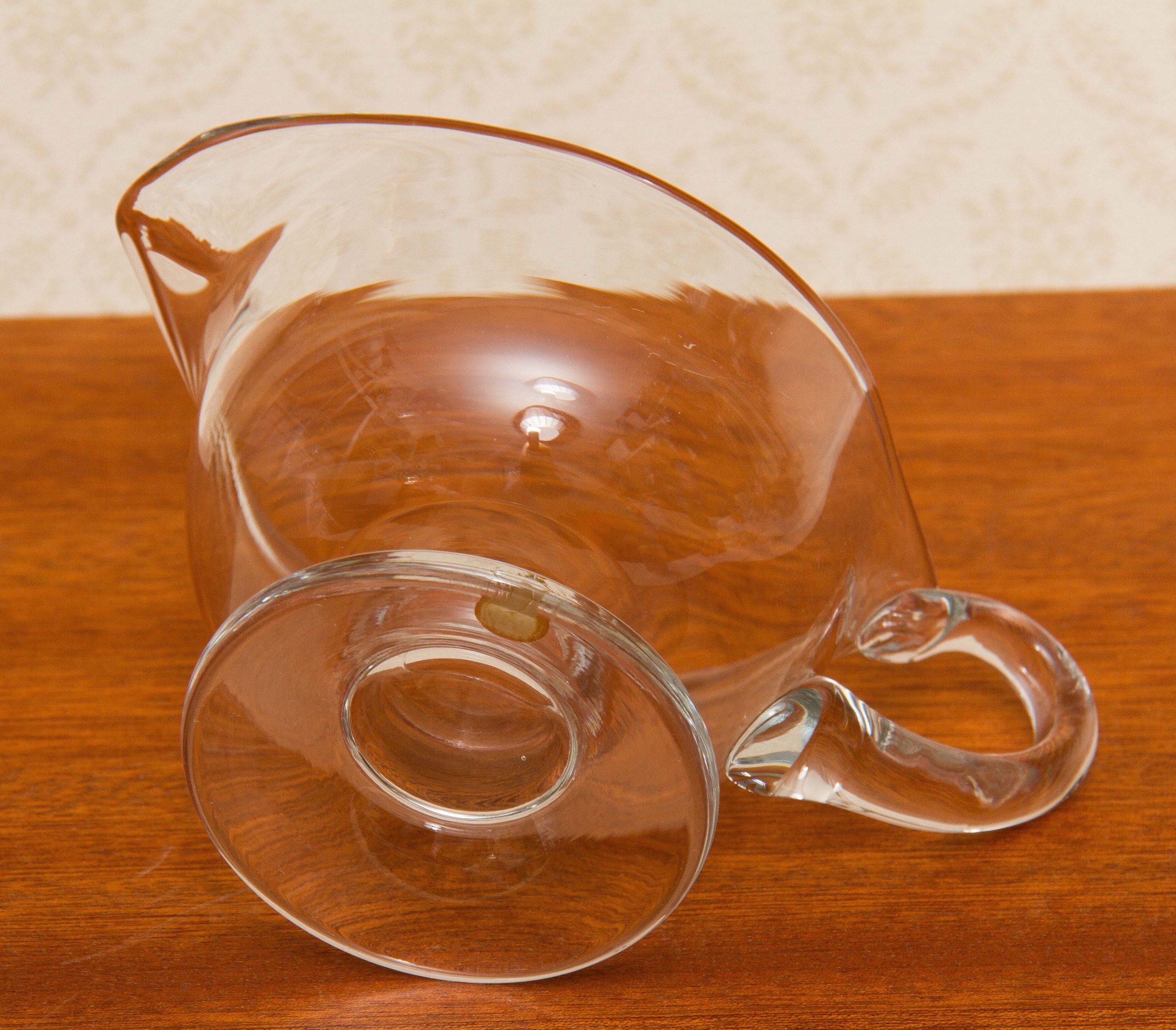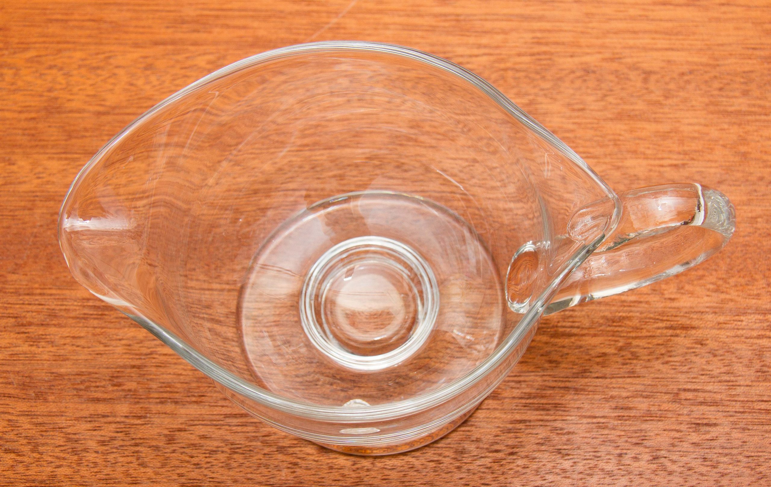 A Romanian vintage clear glass jug, with original sticker on the base.