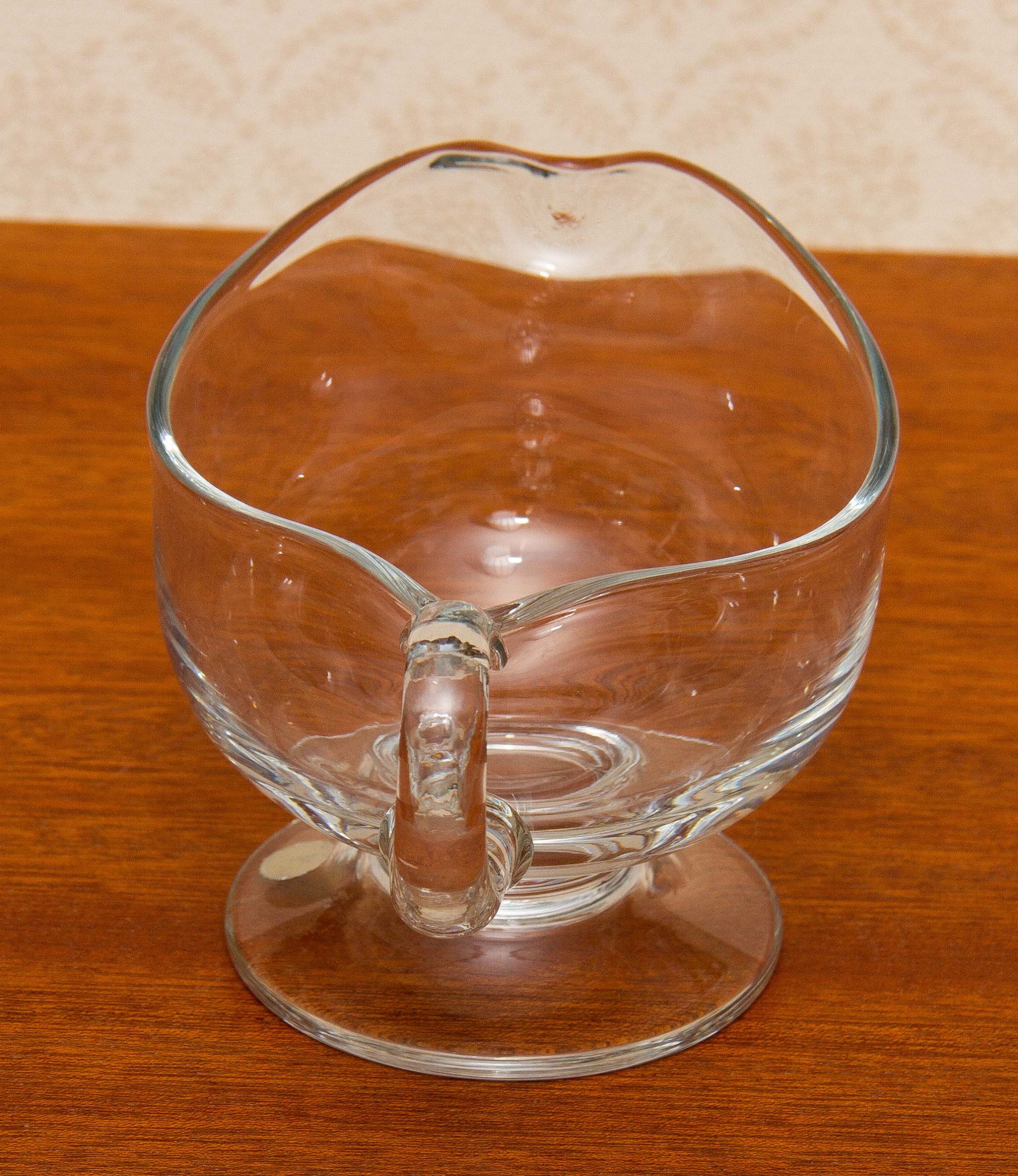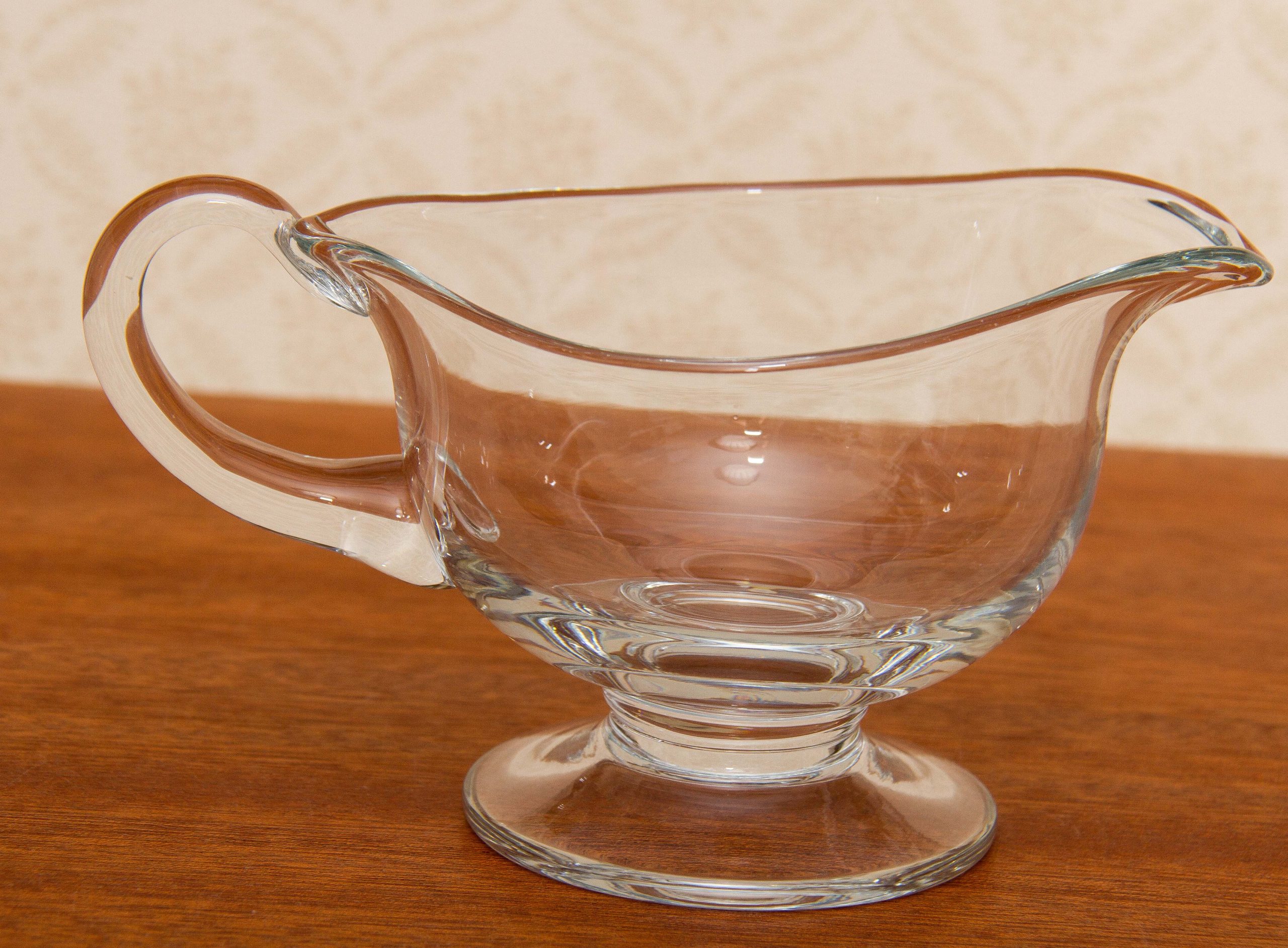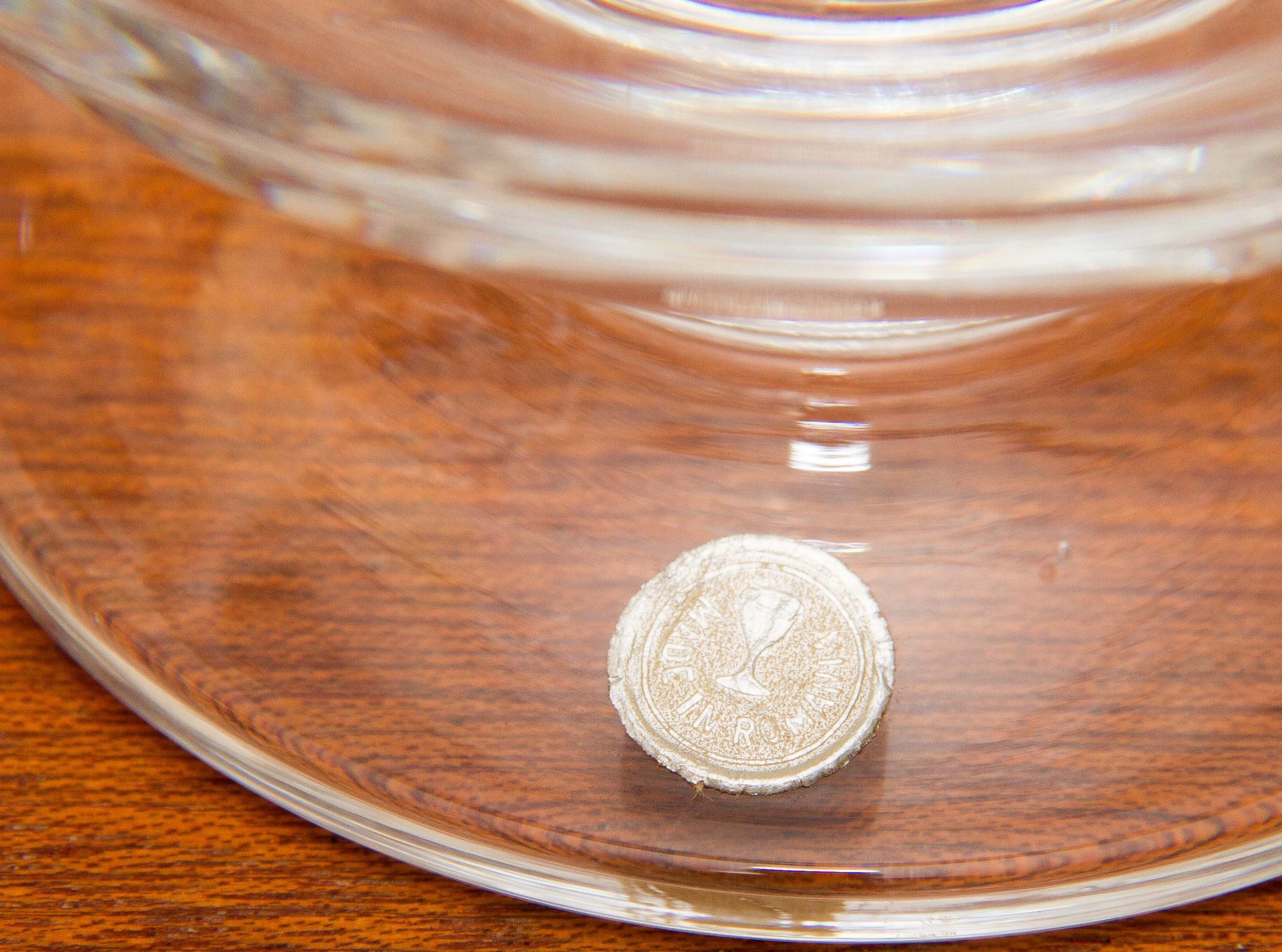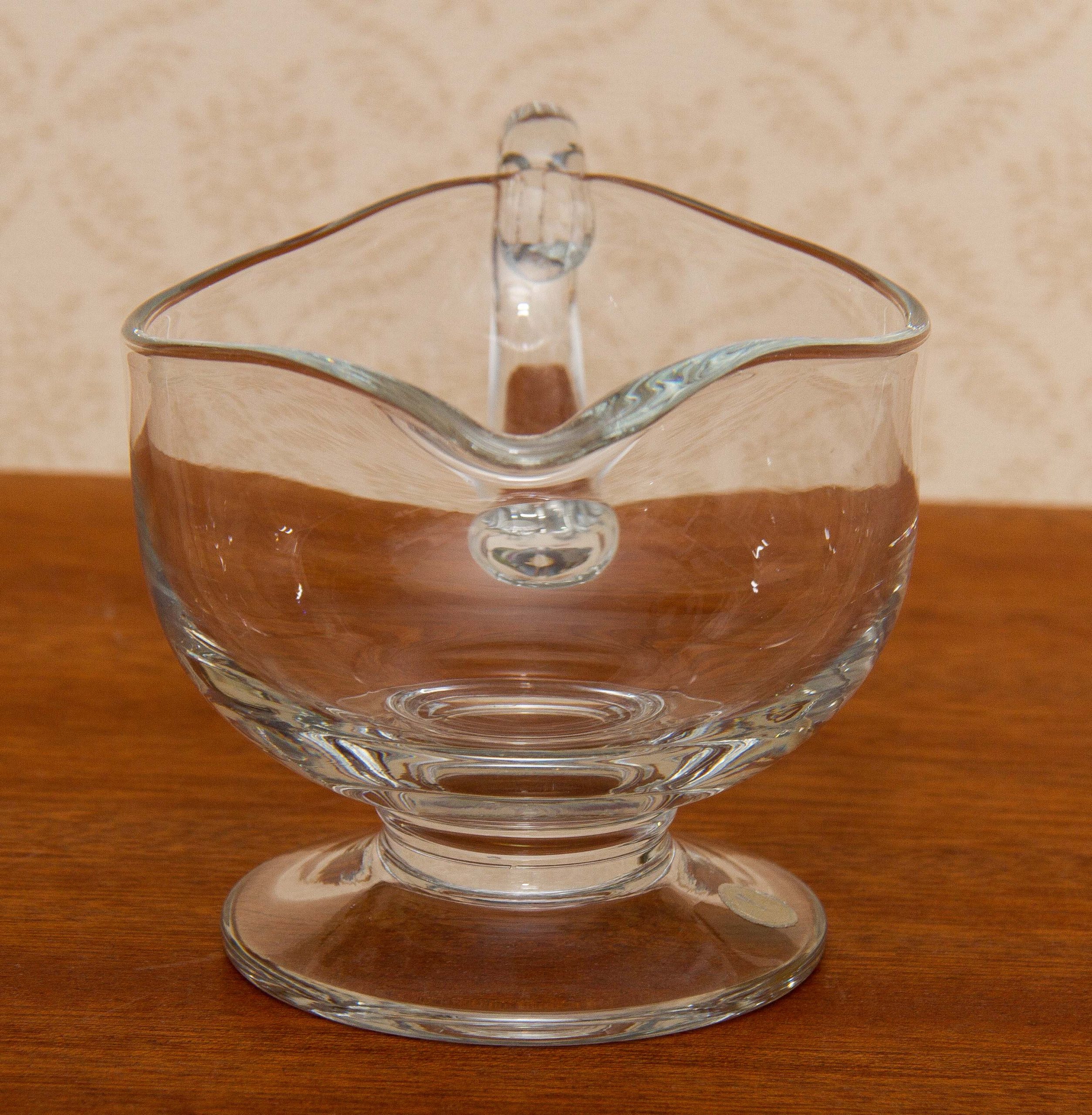 A Romanian vintage clear glass jug, with original sticker on the base.