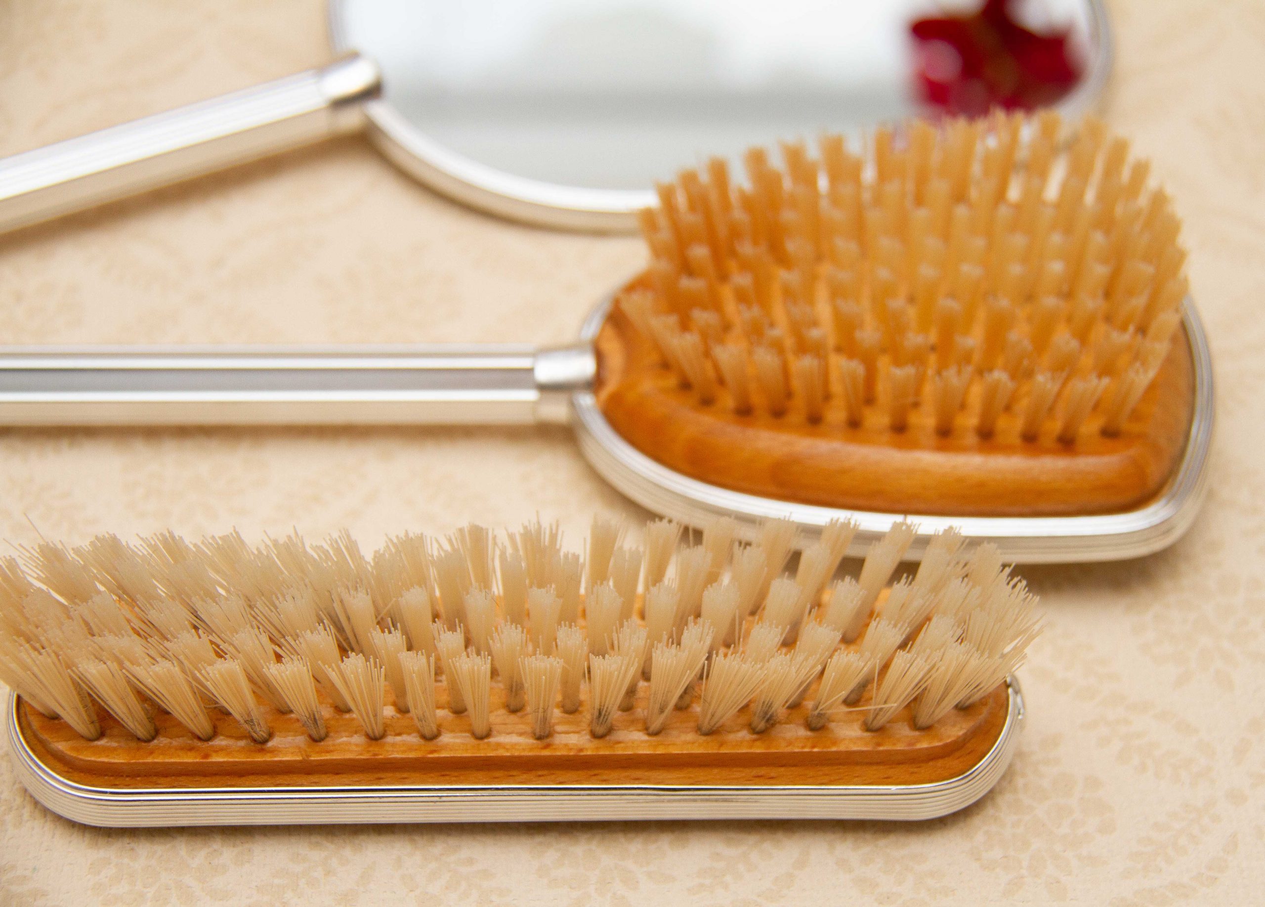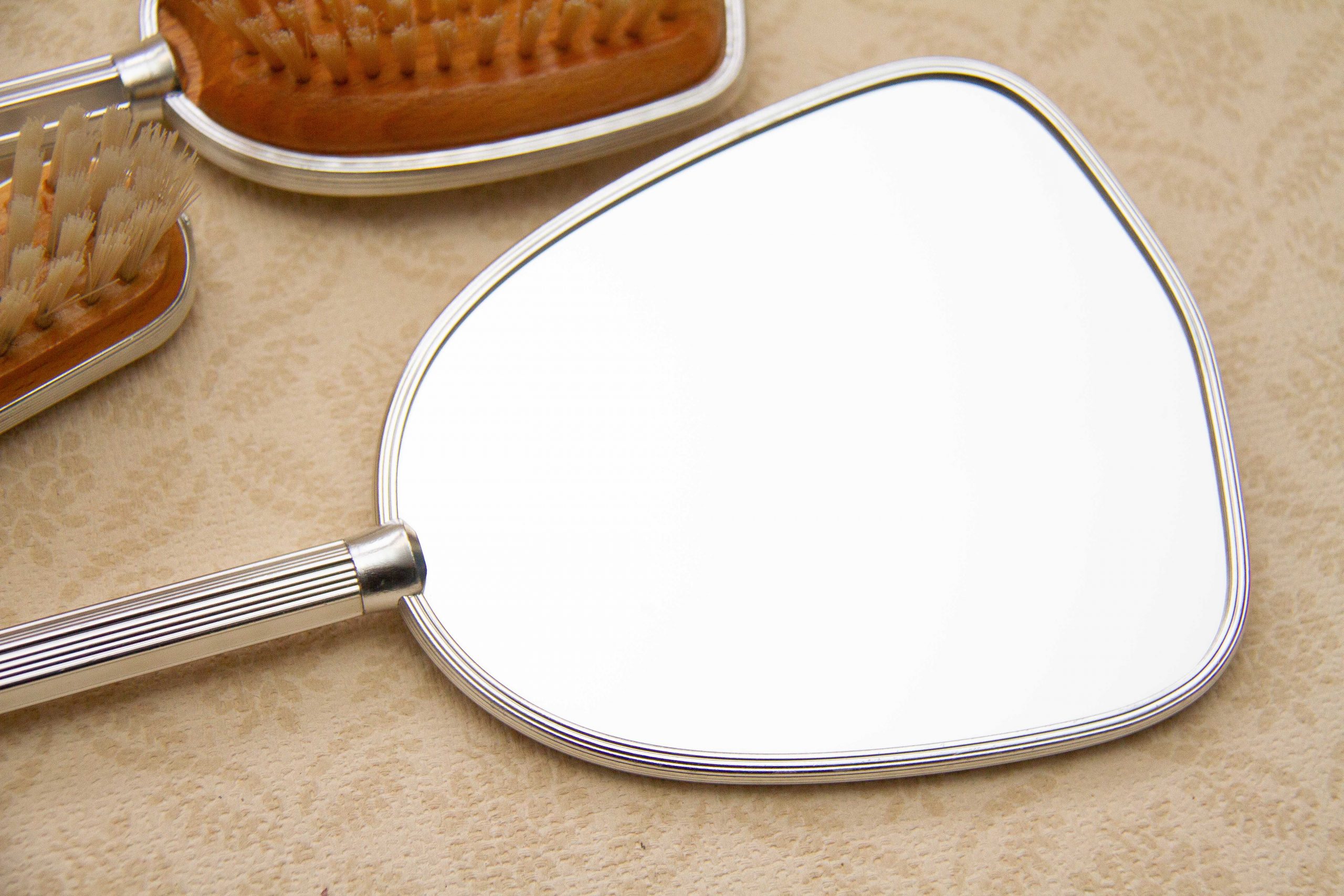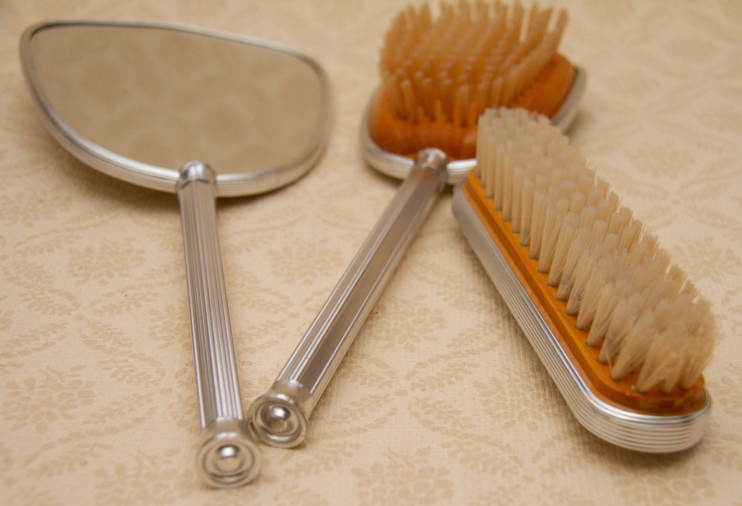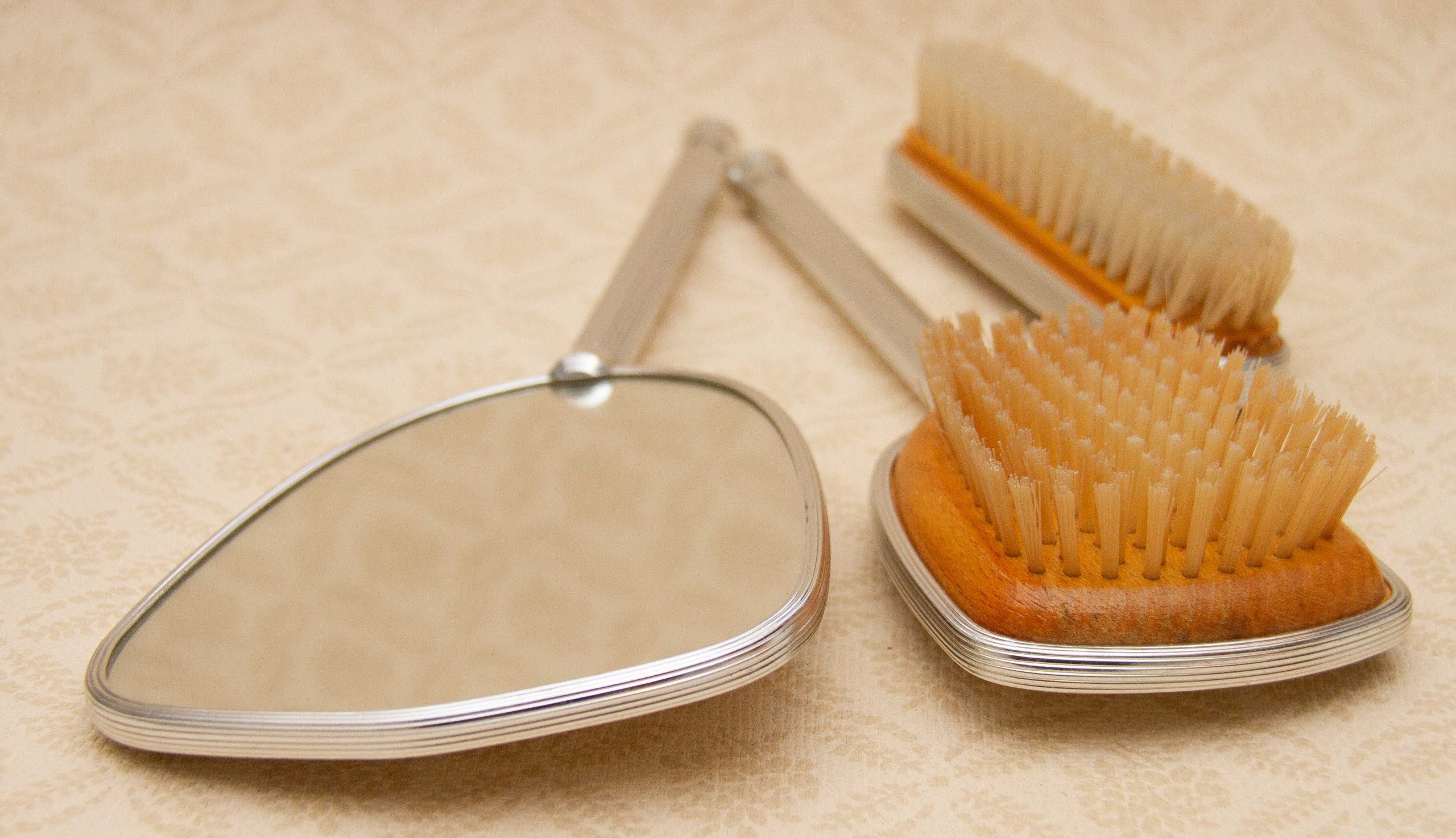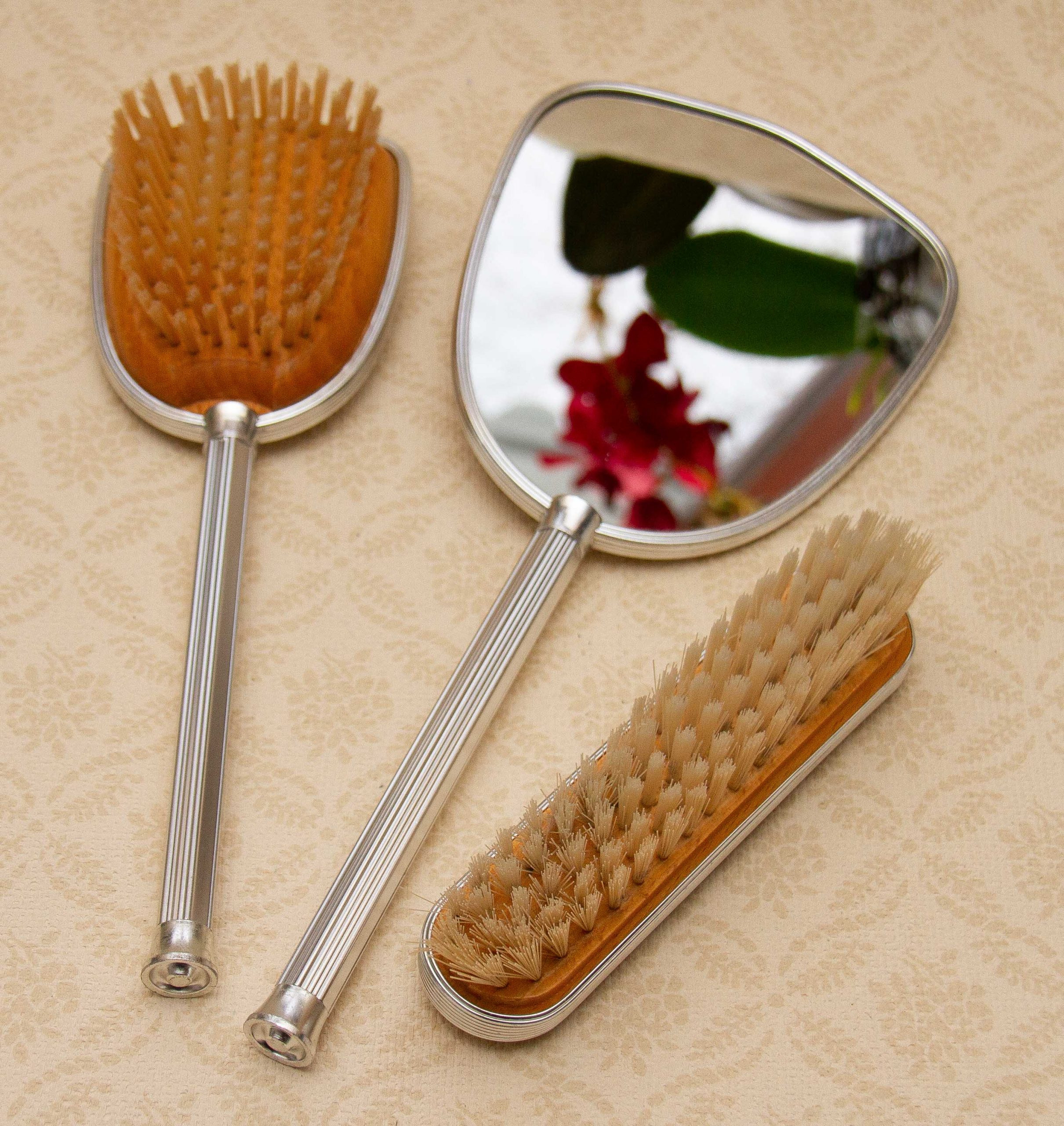Approximate Measurements: Mirror 12″ long, Brush with handle 10½”, small brush 6¼”